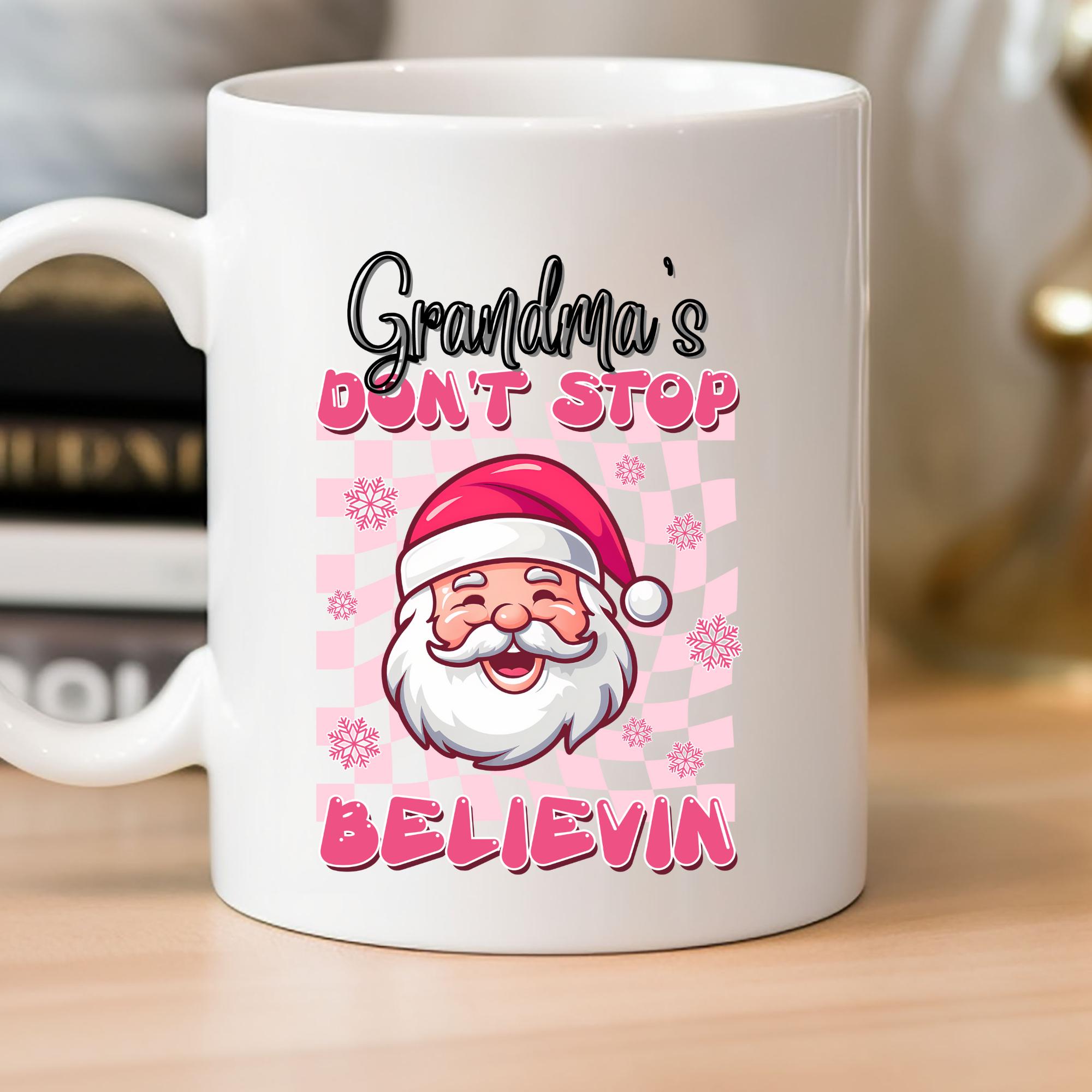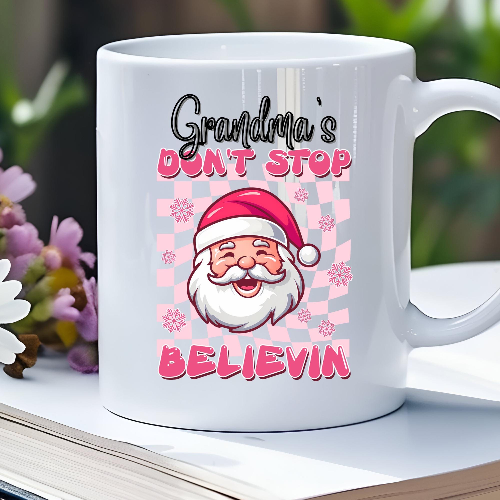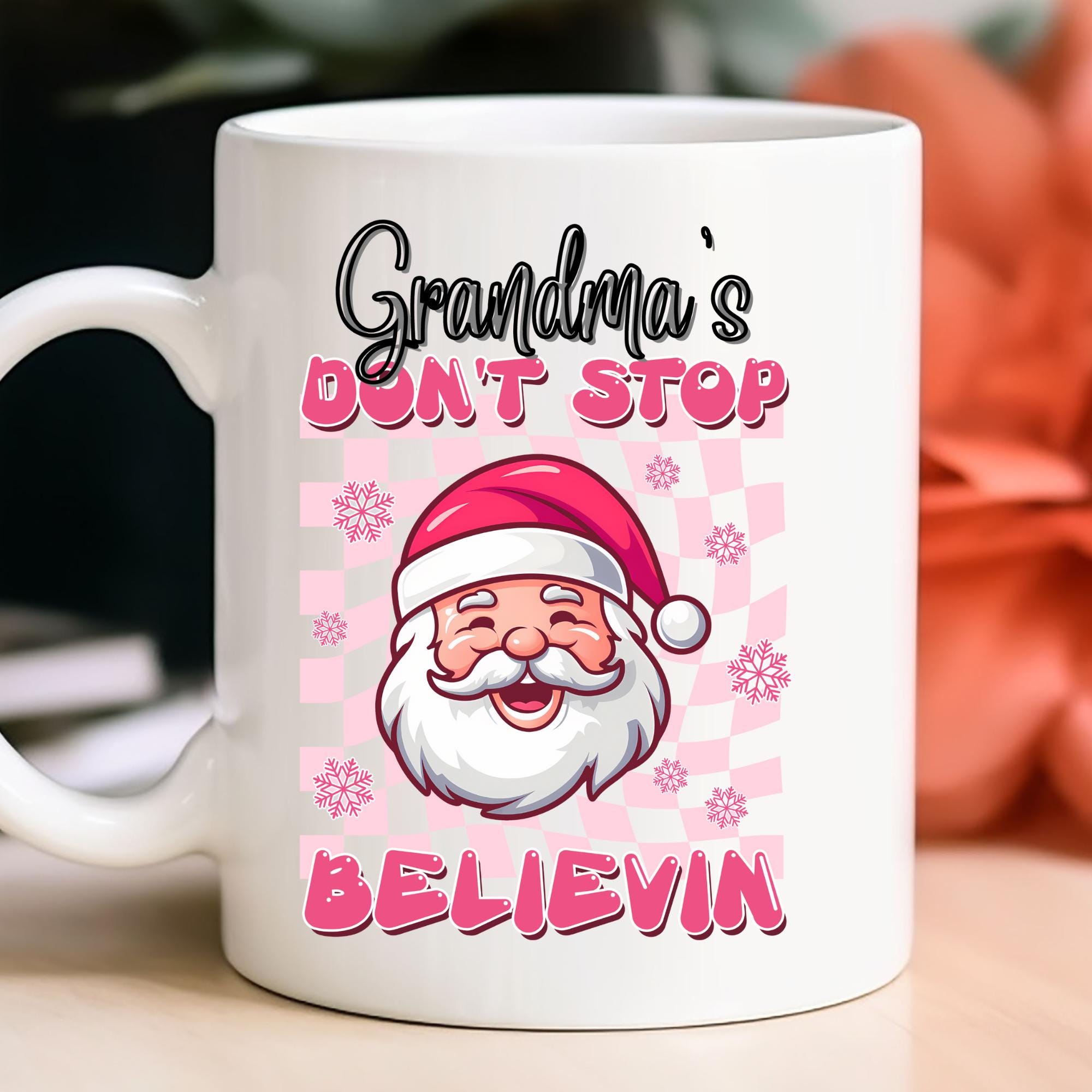 Believe Grandma Gift Pink Xmas mug,Xmas Mom Gift Grandma Believe Gifts,Christmas Believe gift Grandma pink gift,Christmas Gift Pink Grandma