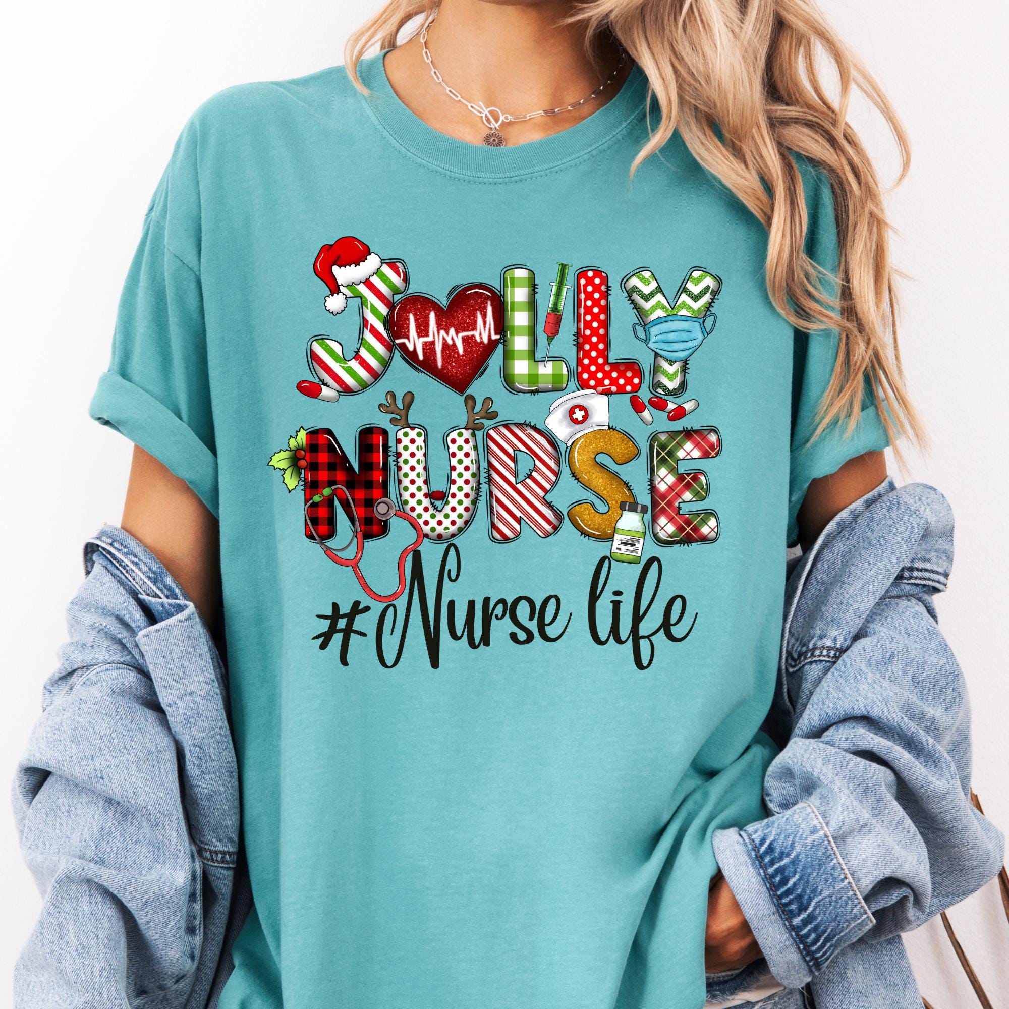 Festive RN Graphic Tee, Nursing School Grad Shirt, ER Staff Holiday Gift