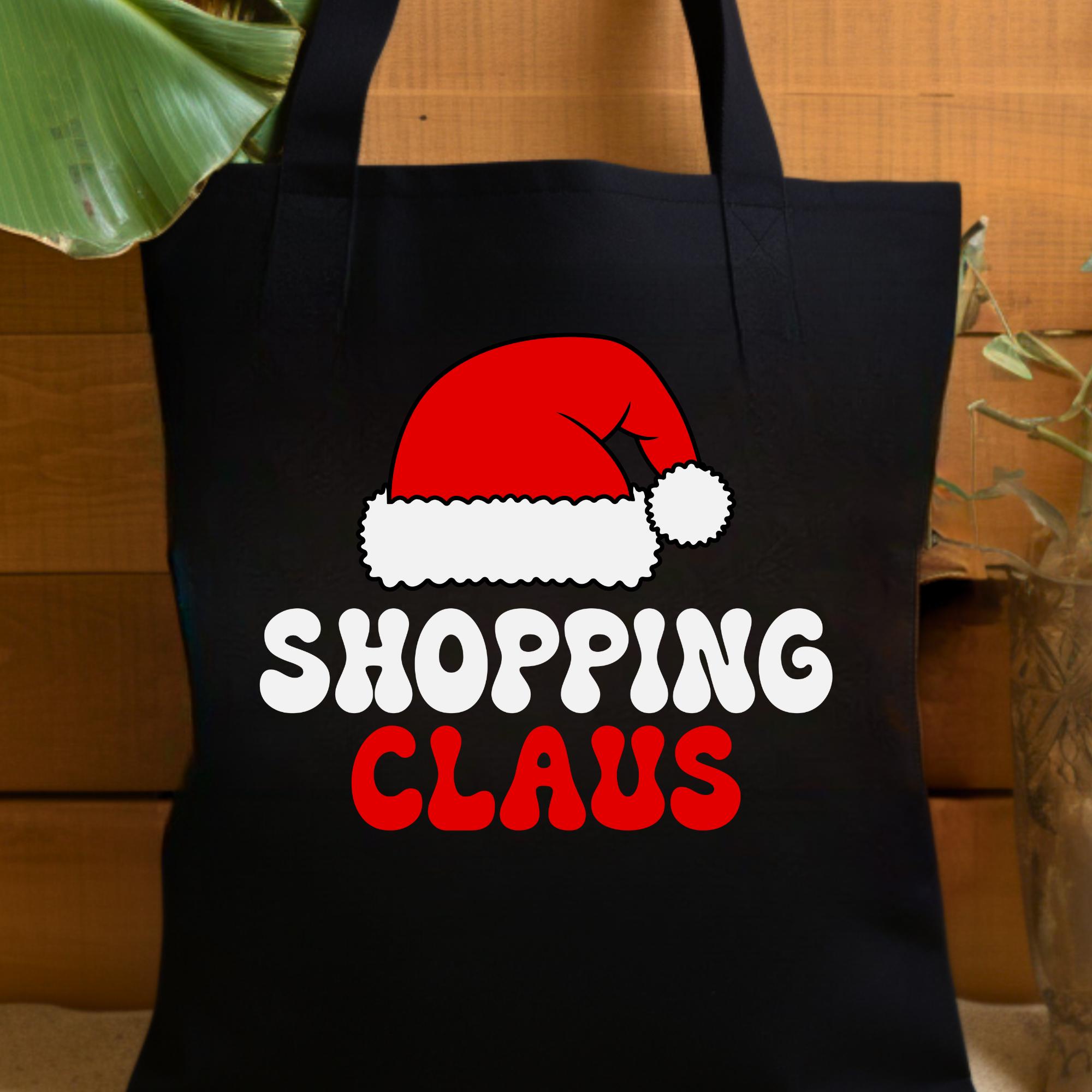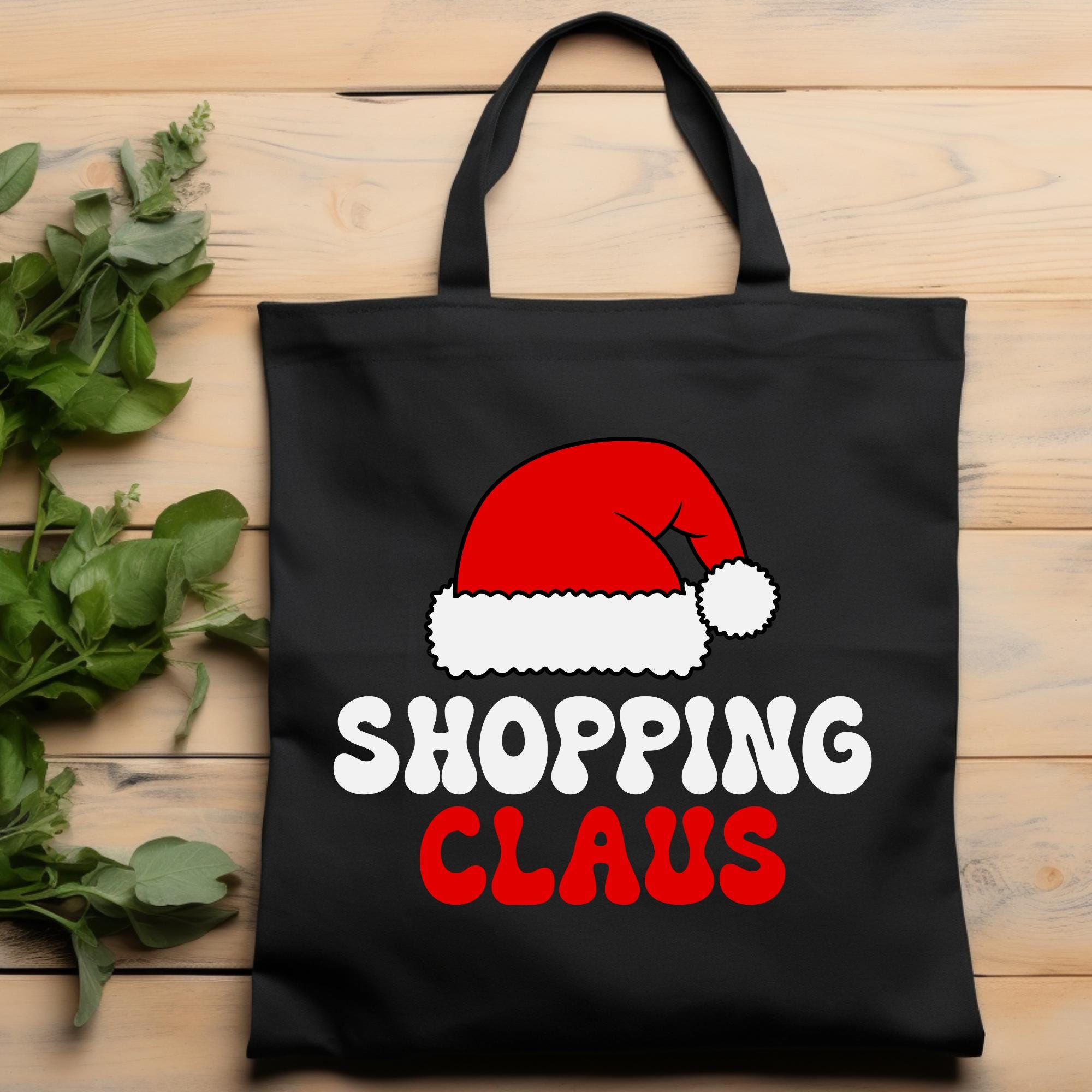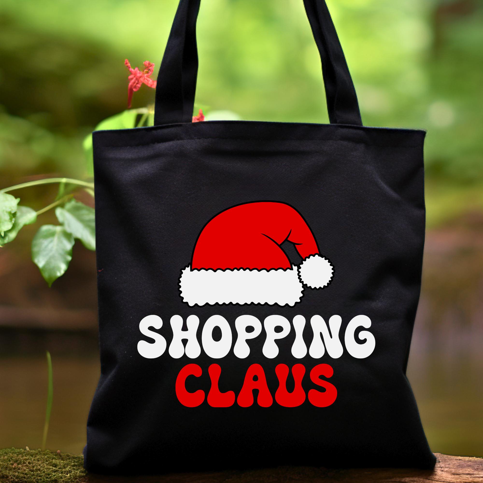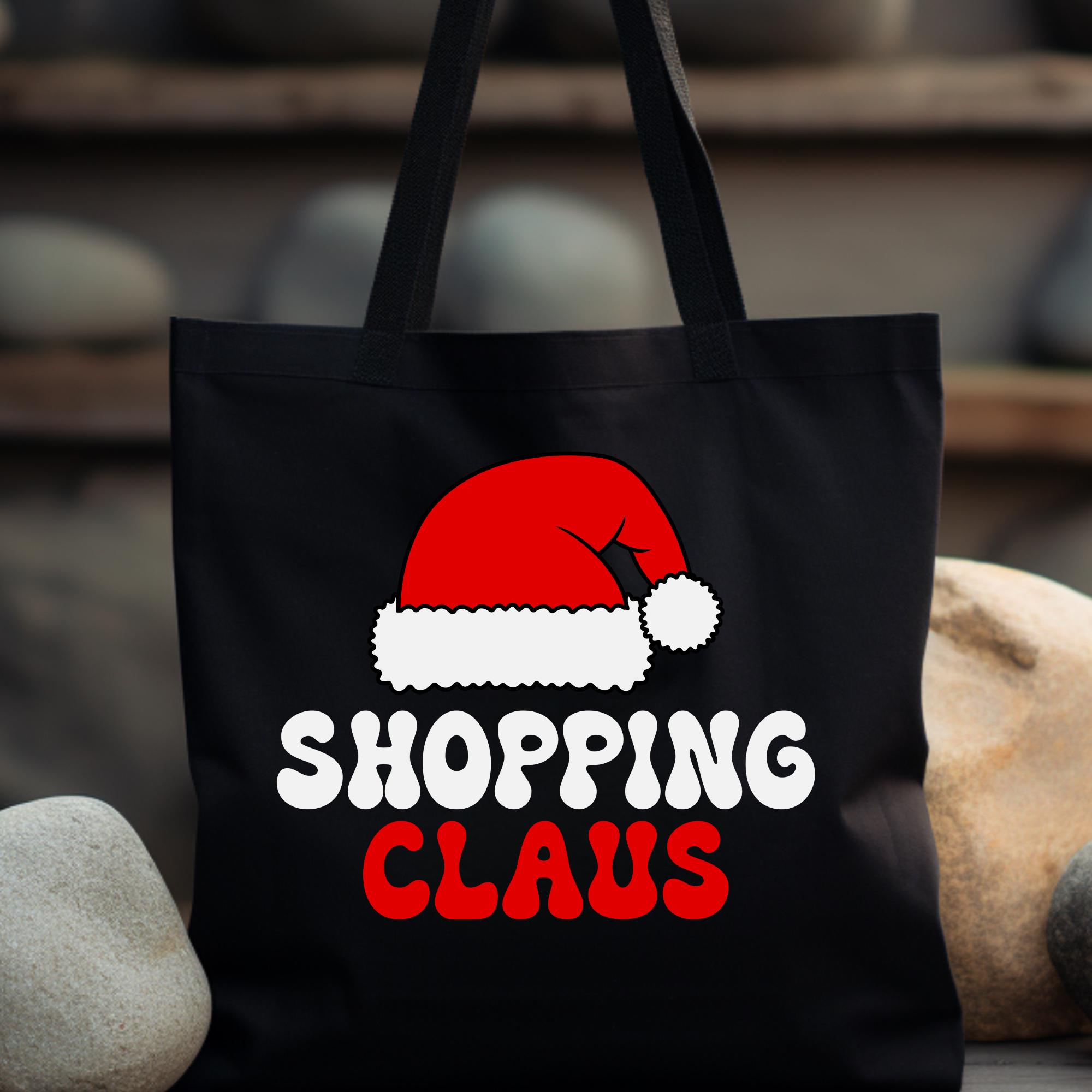 Shopping Claus Tote Bag gives off a festive and cheerful vibe, perfect for the holiday season. Ideal for anyone looking to add a touch of Christmas spirit to their shopping trips or daily errands. Relevant for Christmas, winter holiday, and gift-giving occasions.