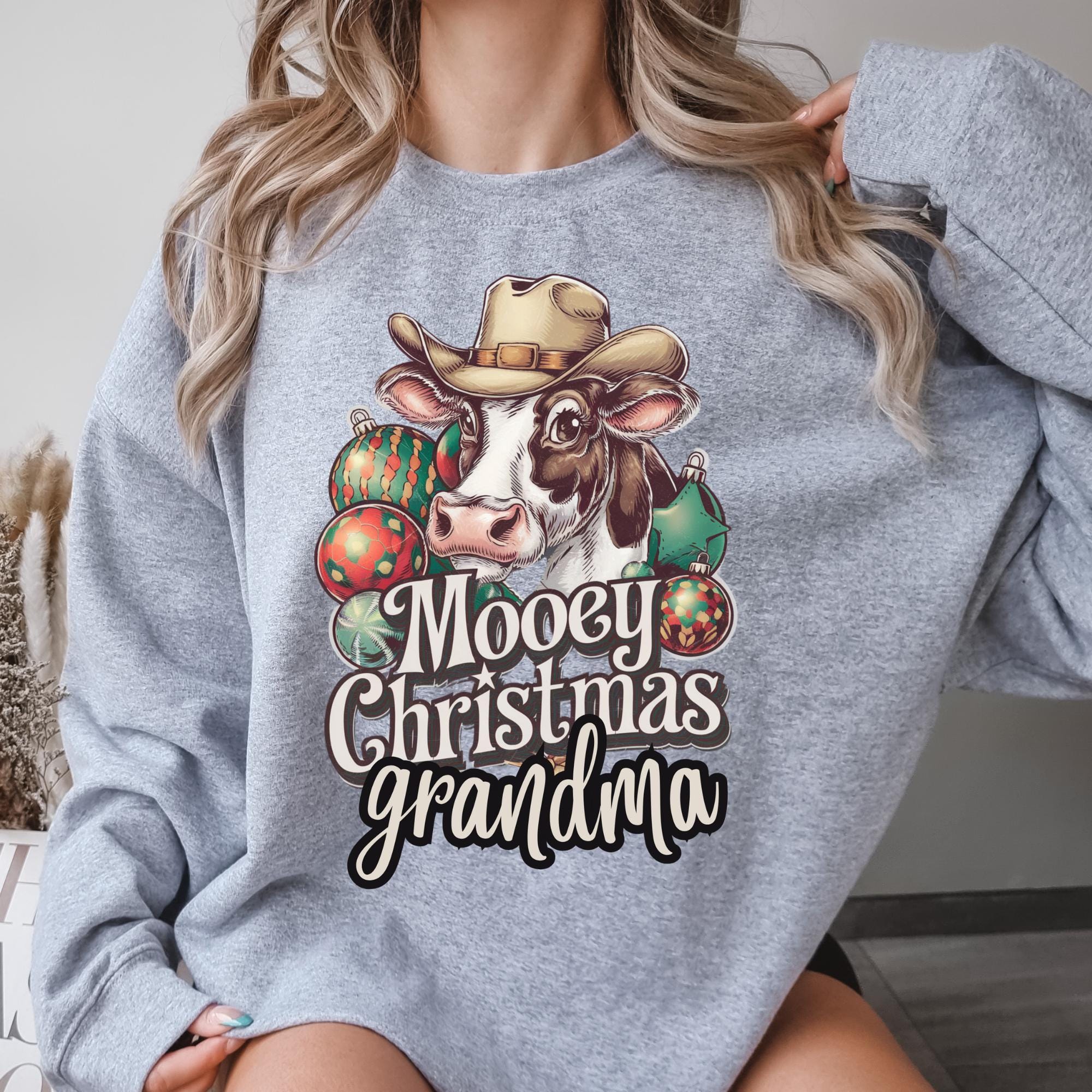 Celebrate the holiday season with our charming grandma Christmas shirt, perfect for any trendy country girl or loving grandmother. This cute heifer gift features a delightful design that embodies the spirit of Christmas while adding a touch of humor to your holiday gatherings. Made for comfort and style, our funny xmas shirt and grandma cow sweater are not only warm but also a unique way to show appreciation for local farms. Whether you're gifting it as a funny Christmas gift or wearing it proudly to spread cheer, this heifer sweatshirt and barnyard shirt Christmas is guaranteed to bring joy. Don’t miss the chance to support local cows while looking fabulous in our merry Christmas shirt!