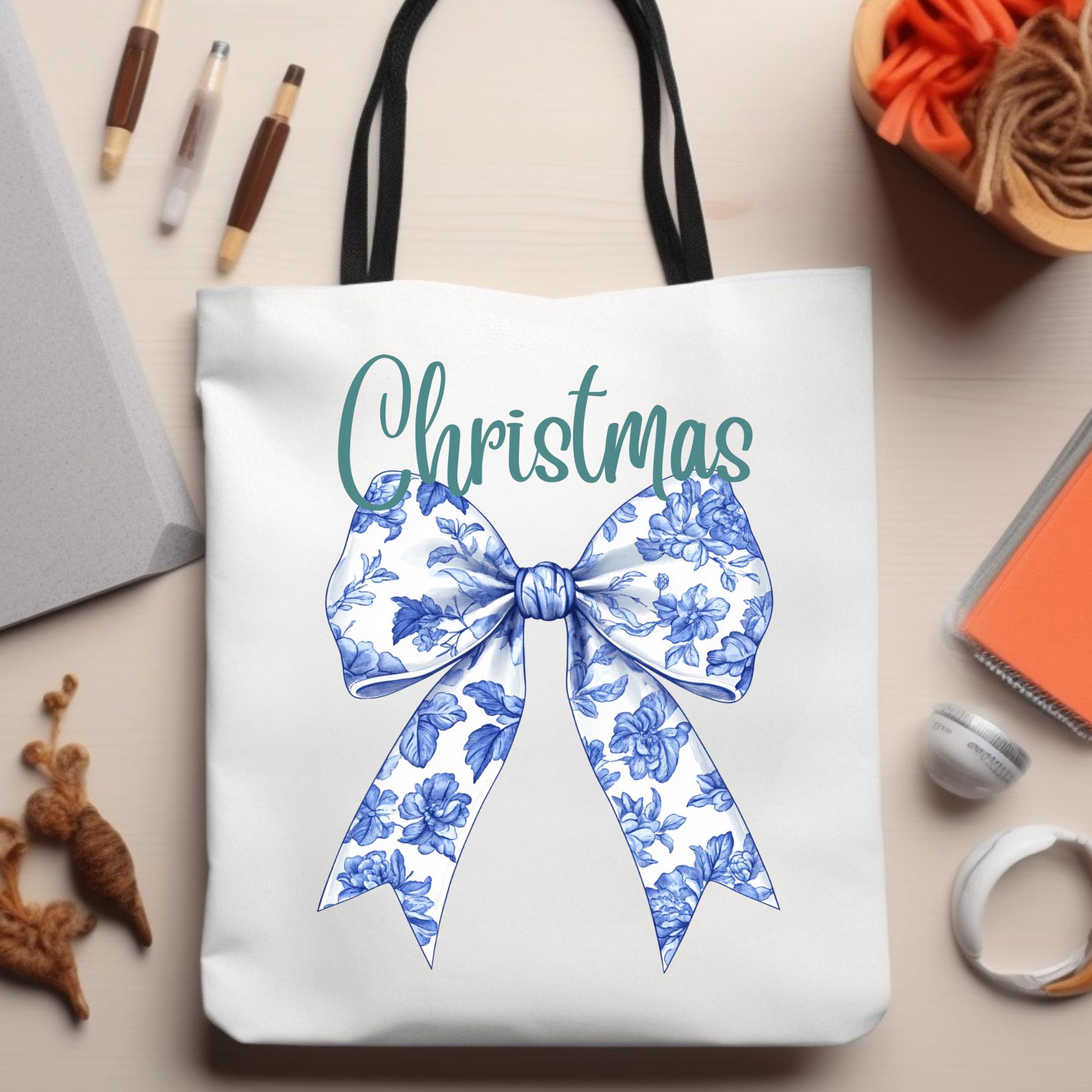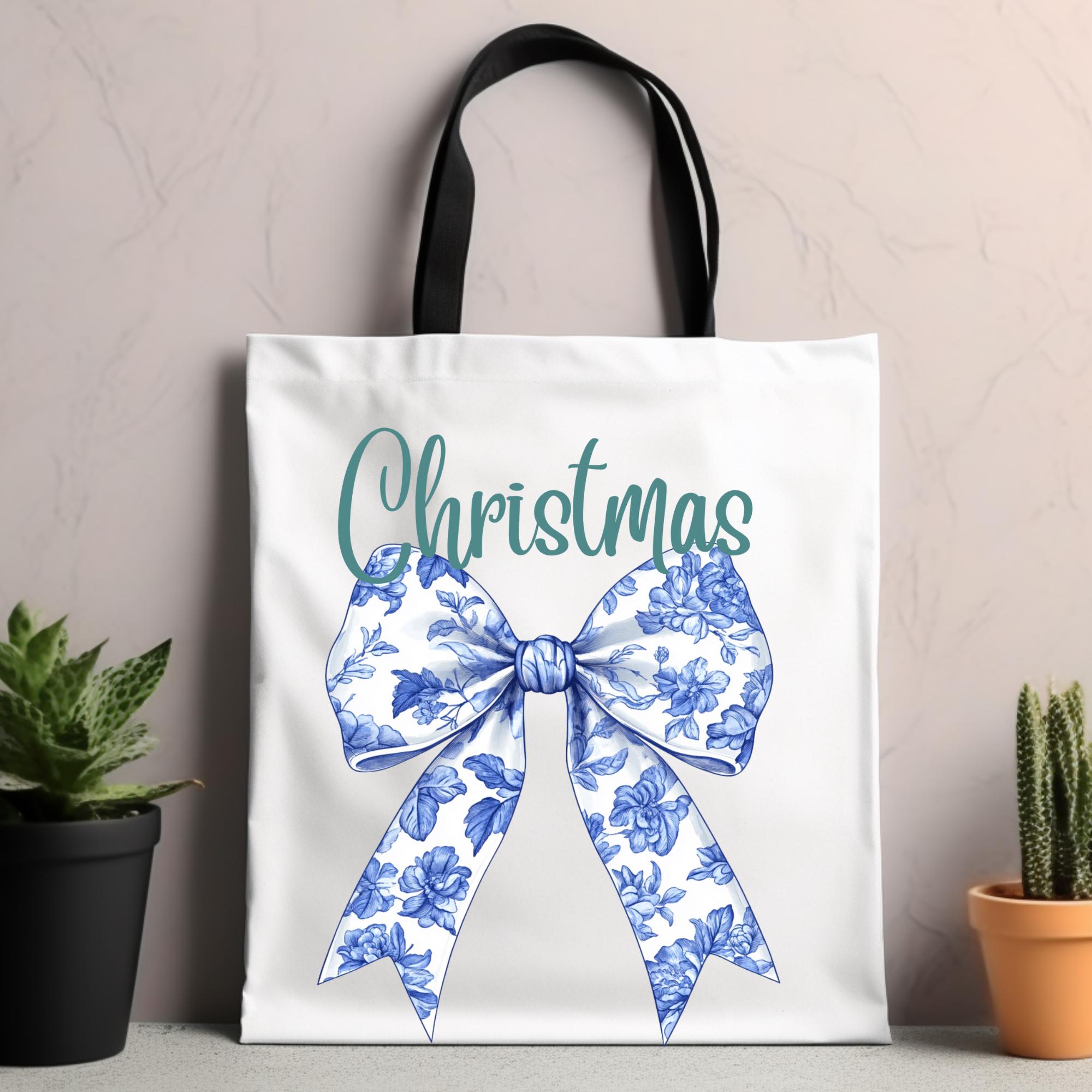Coquette Christmas Bow Tote Bag - Festive Holiday Gift, Stylish Canvas Shoulder tote, Reusable Shopping Tote, Gift for Her, Present for her