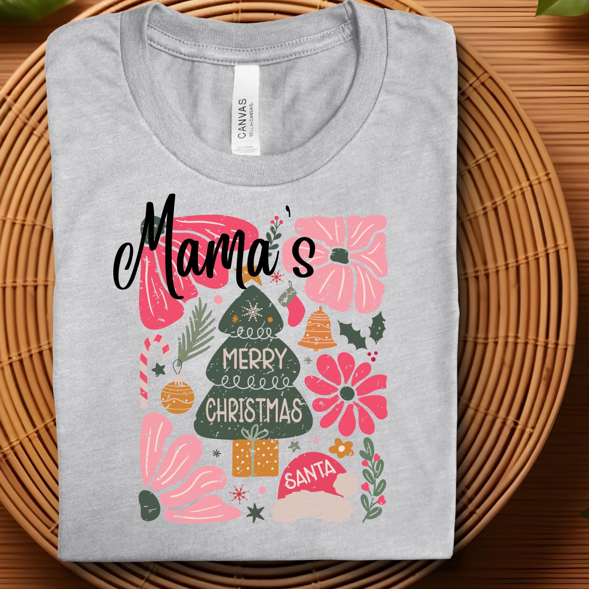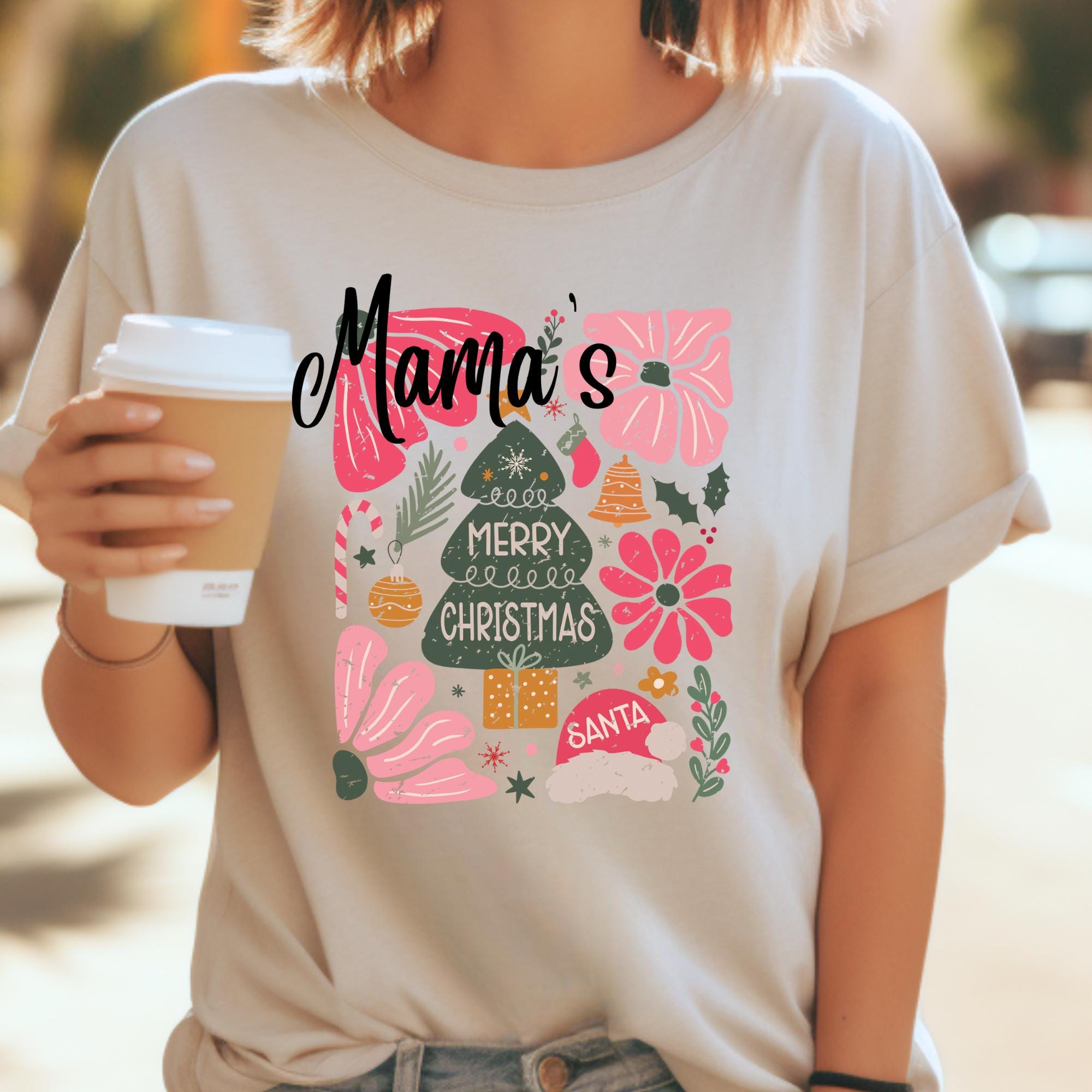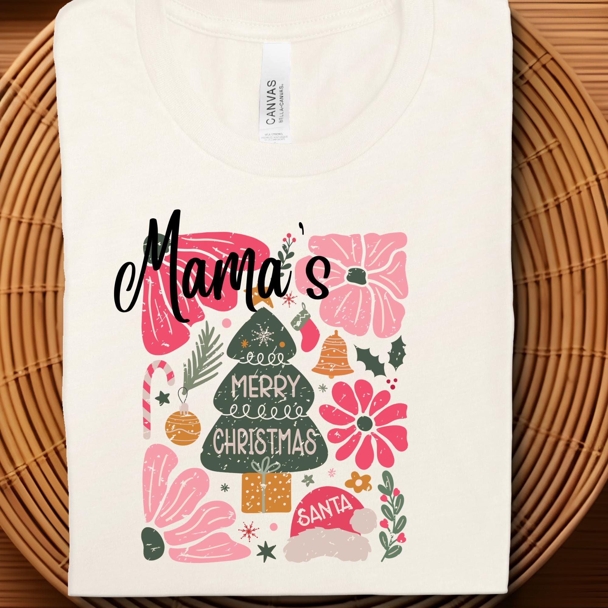Mama Christmas Tree T-Shirt | Boho Style Holiday Gift for Moms | Cute & Fun Festive Tee Christmas gift ,Mama Xmas gift tee