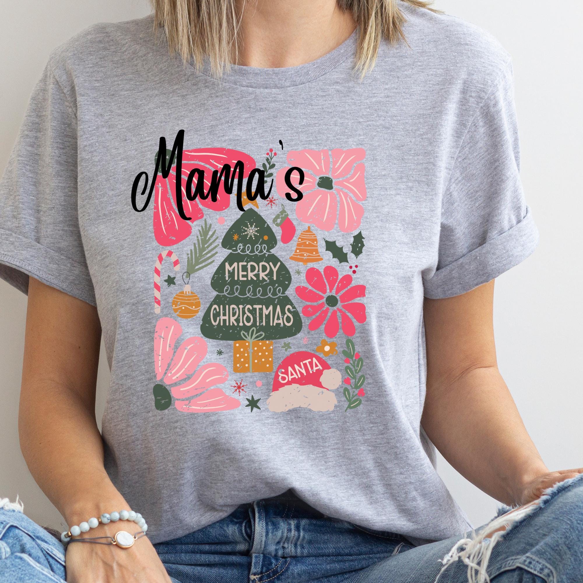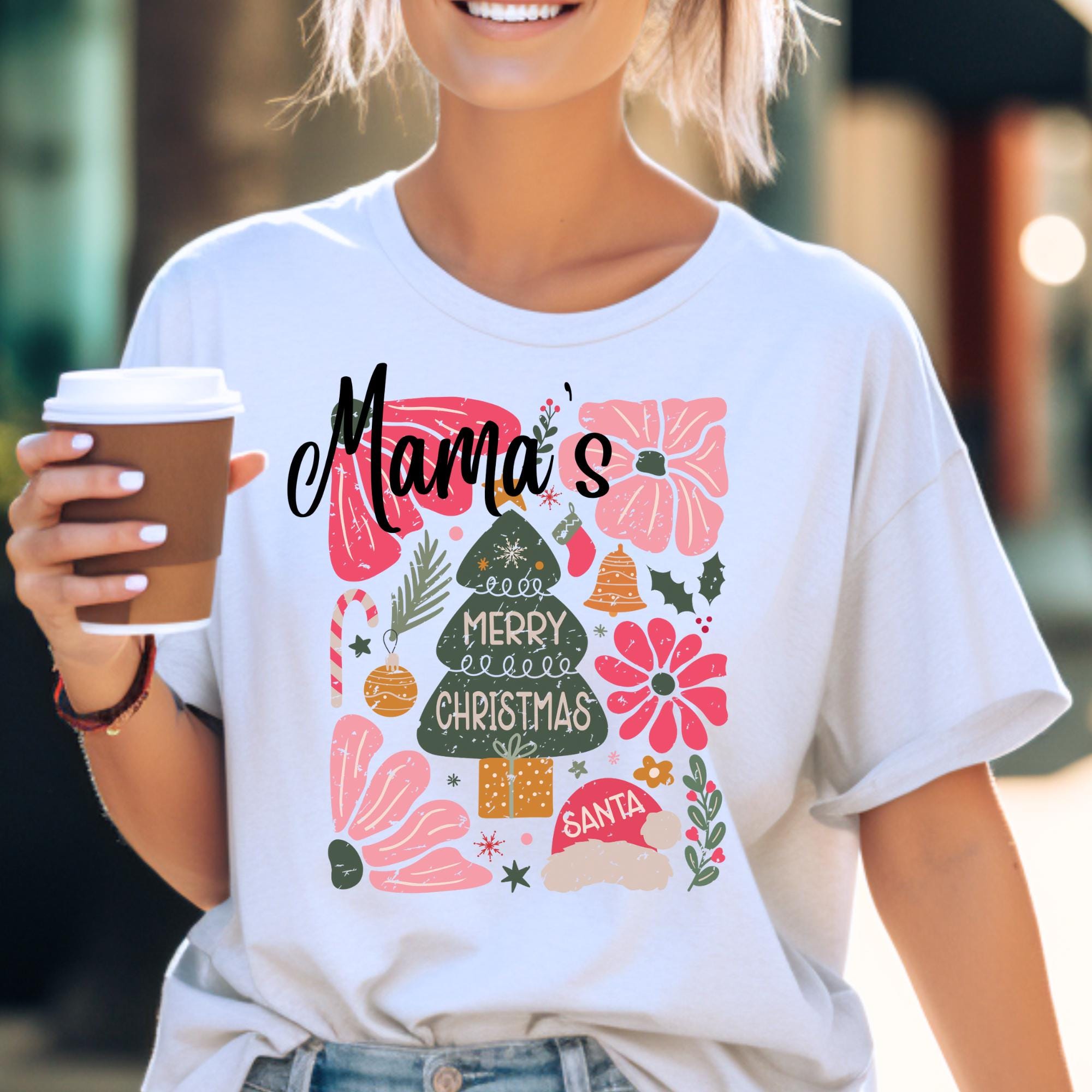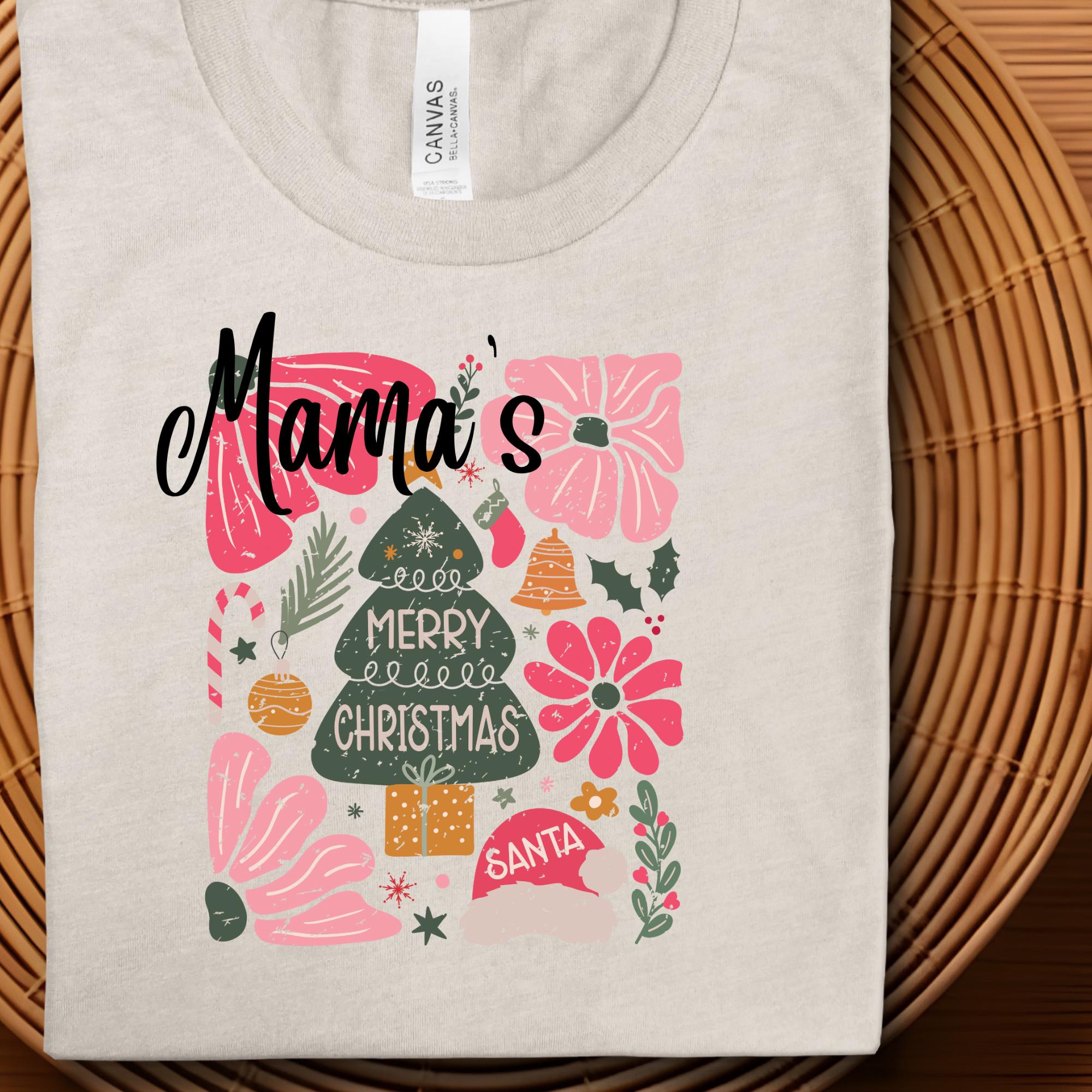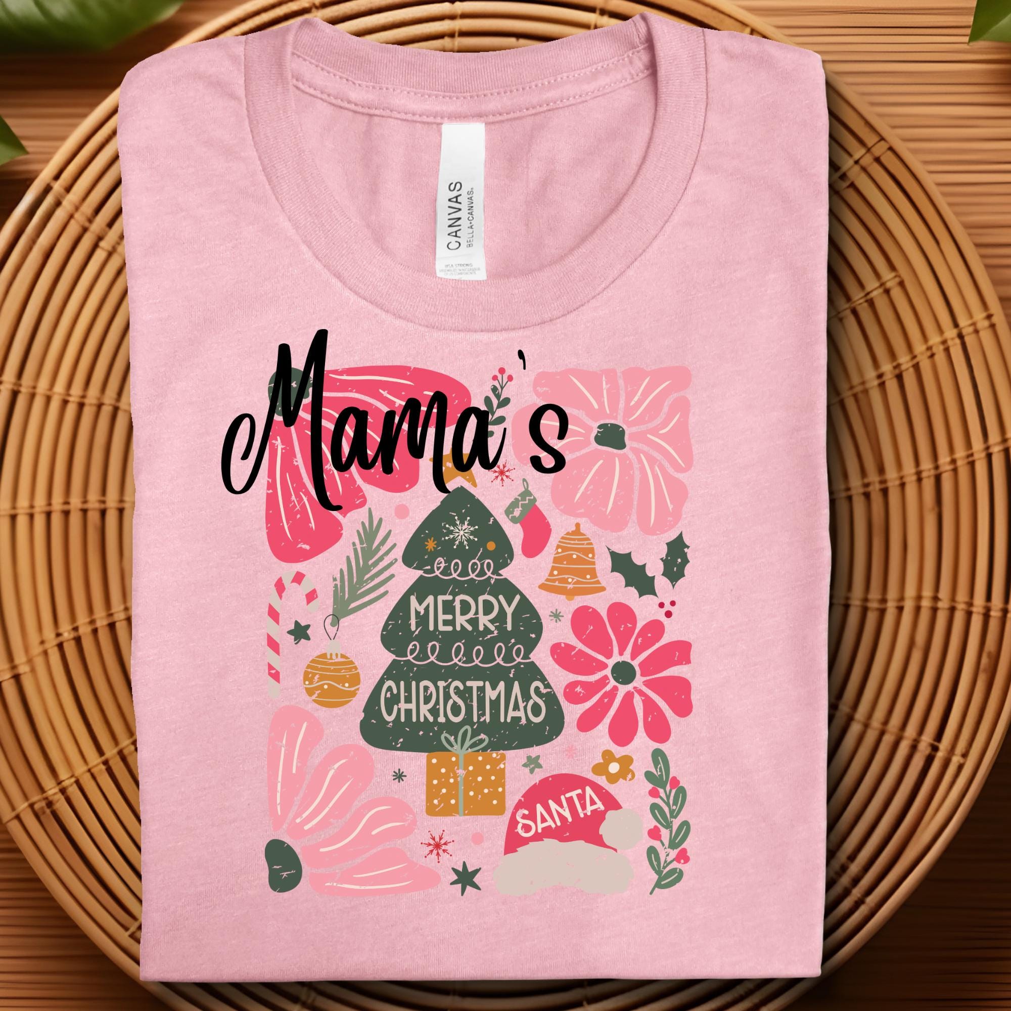 Mama Christmas Tree T-Shirt | Boho Style Holiday Gift for Moms | Cute & Fun Festive Tee Christmas gift ,Mama Xmas gift tee