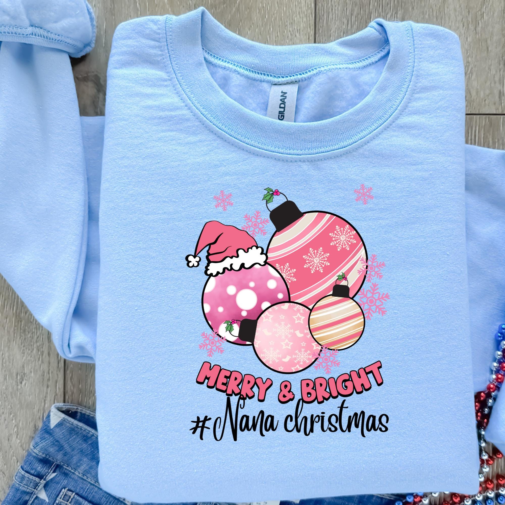 This Nana Sweatshirt Christmas Sweatshirt exudes a festive and cheerful vibe, perfect for spreading holiday joy. It is a great addition to anyone's casual wardrobe, especially those looking to celebrate Christmas in style.
