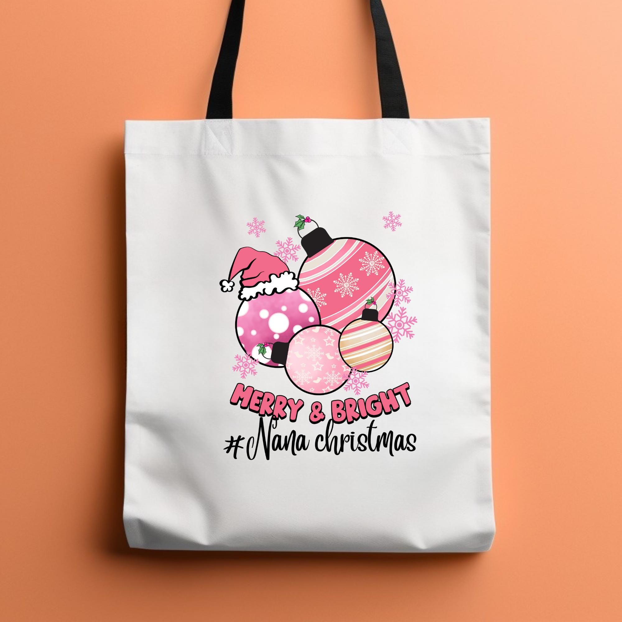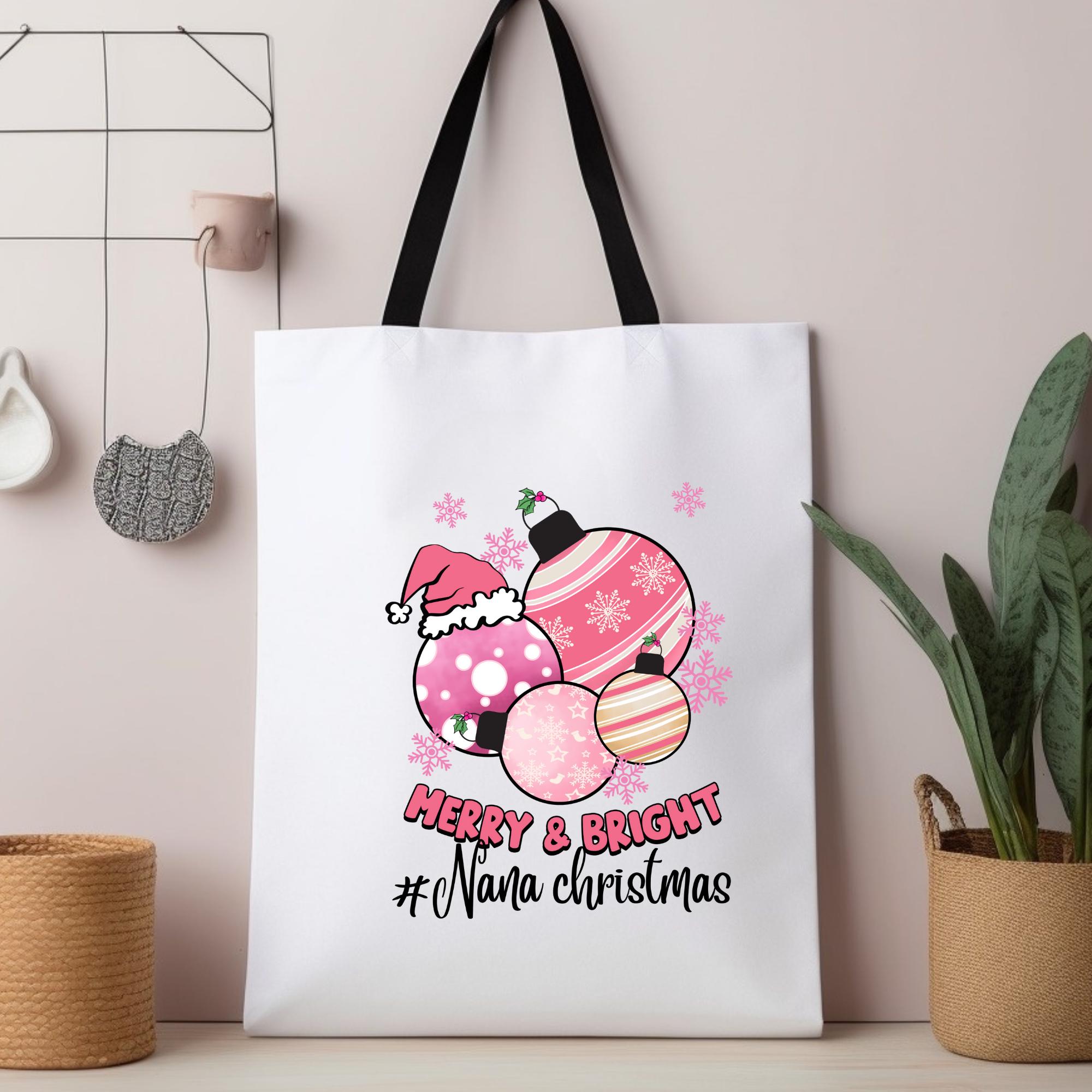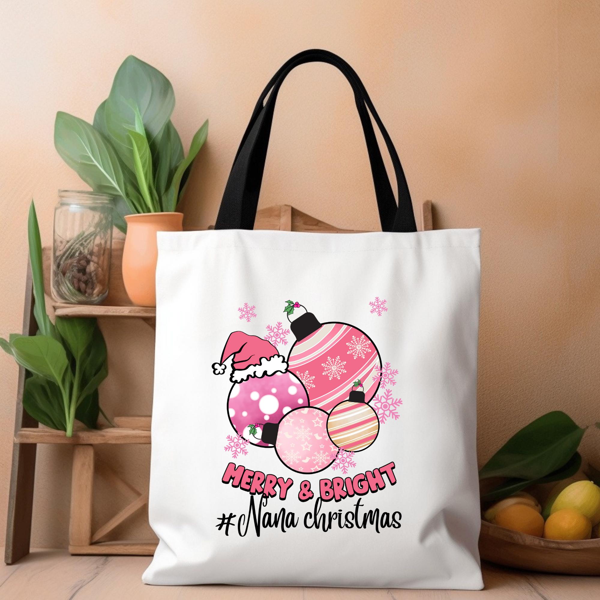 Looking for the perfect Christmas Nana Tote Bag Holiday Tote Bags, Holiday Gift Bags Merry Christmas Tote Bag holiday surprise? Our Christmas gift tote bag is an ideal choice for anyone wanting to spread joy this season. This merry Christmas cute tote bag isn't just stylish, it's also eco-friendly, making it a thoughtful gift for her or anyone on your list. Whether you need holiday tote bags for family gatherings or xmas gift tote bags to bring cheer to friends, our Christmas gift bags are versatile and practical. Plus, it’s perfect for carrying gifts, decorations, or even your scrumptious holiday treats. Make your festivities more enjoyable with our Christmas family gift bags, including the fun Santa tote bag or the adorable Christmas tree bag! Get ready to celebrate with our xmas canvas tote bags that are sure to delight.