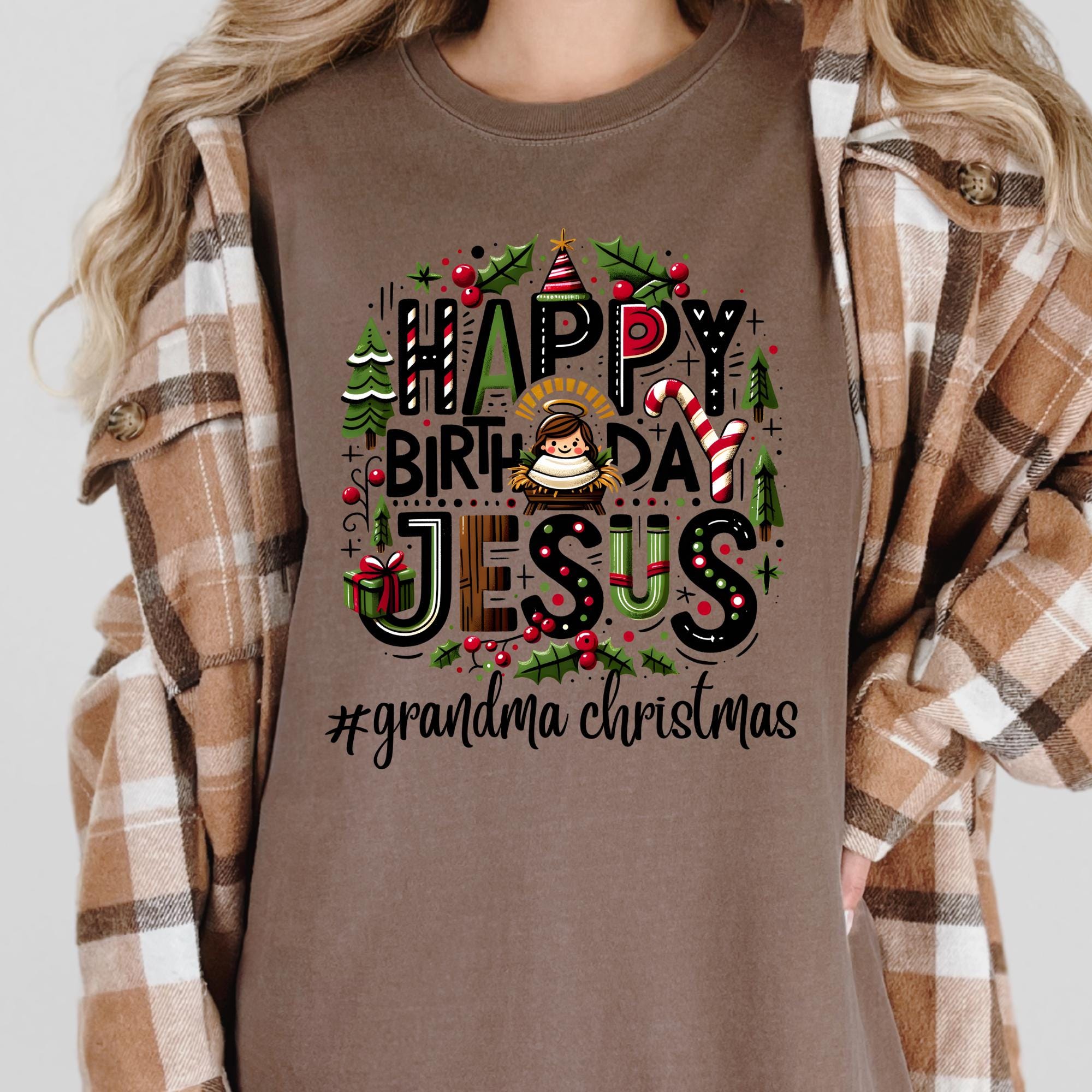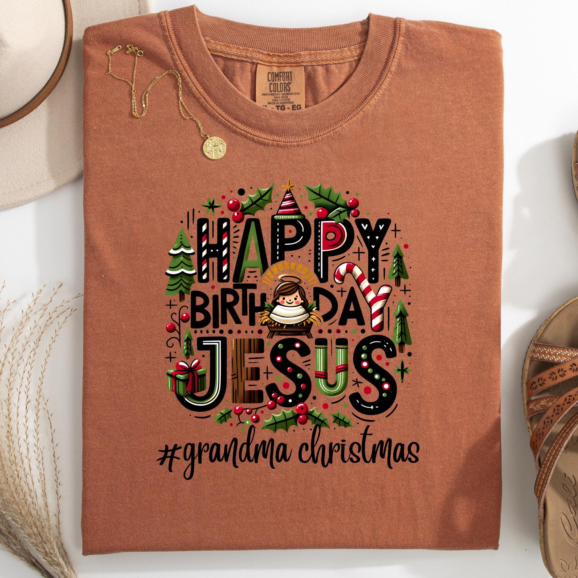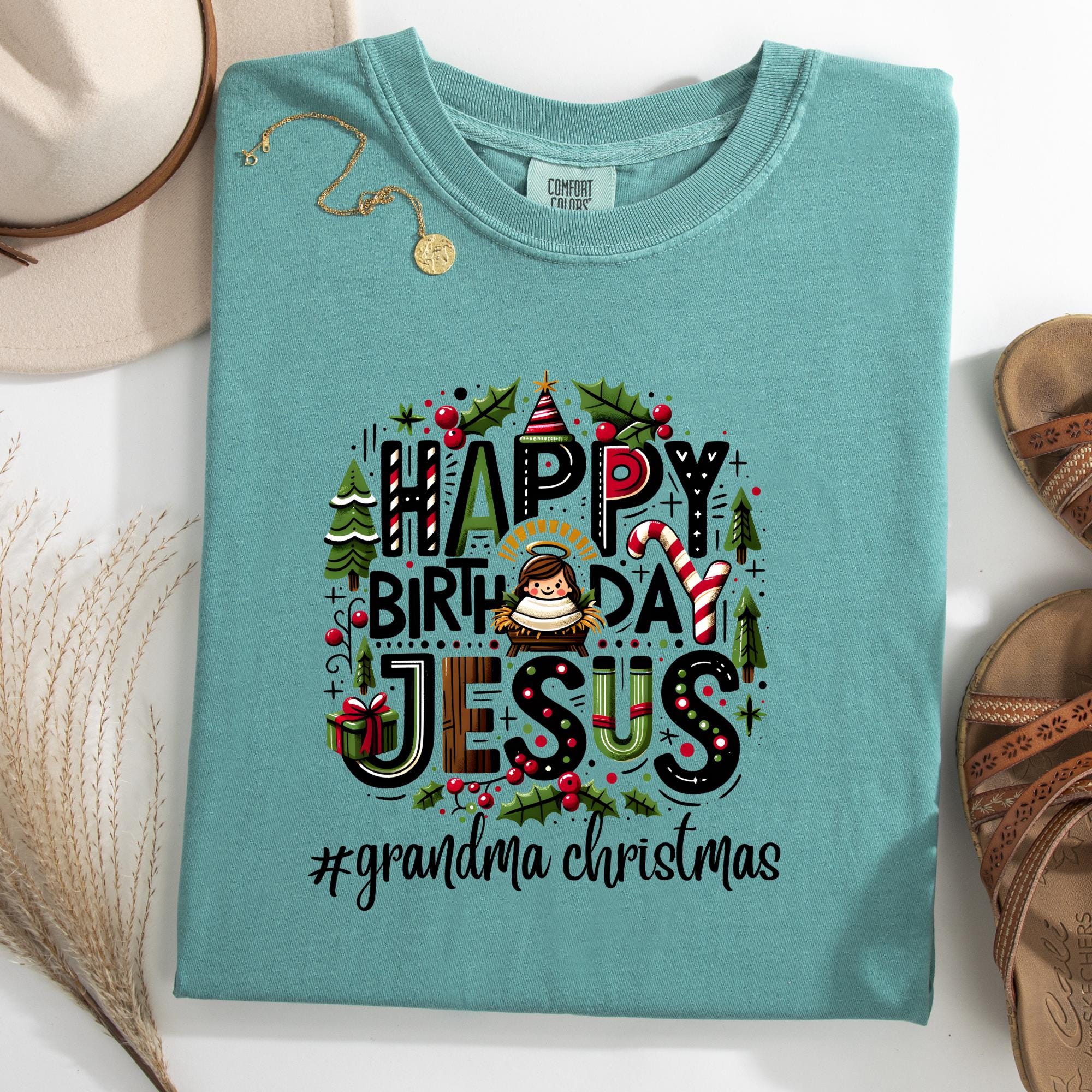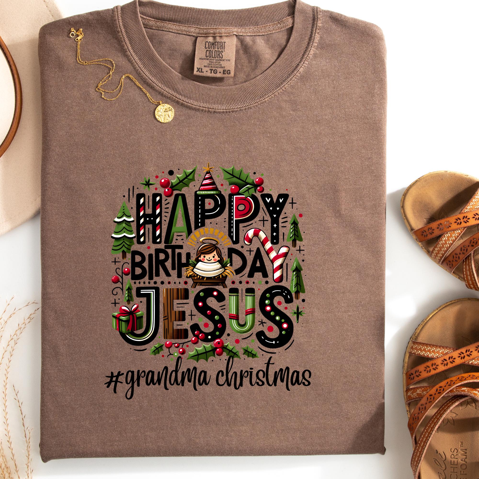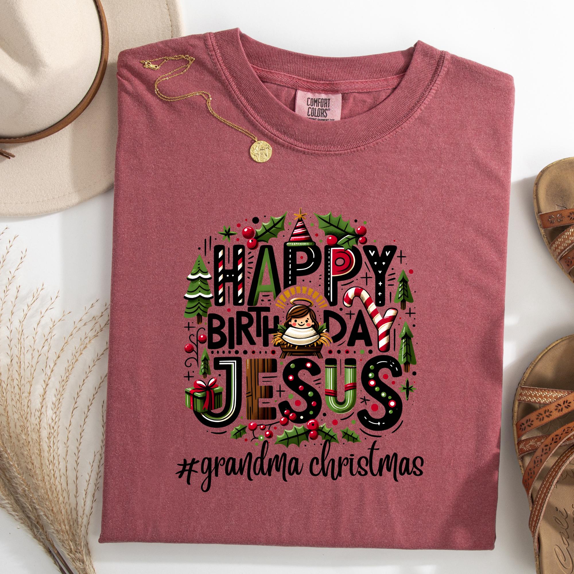 Grandma Christmas Comfort Color T-shirt, Grandma Gift Tee for Women, Holiday Season Garment-Dyed Shirt