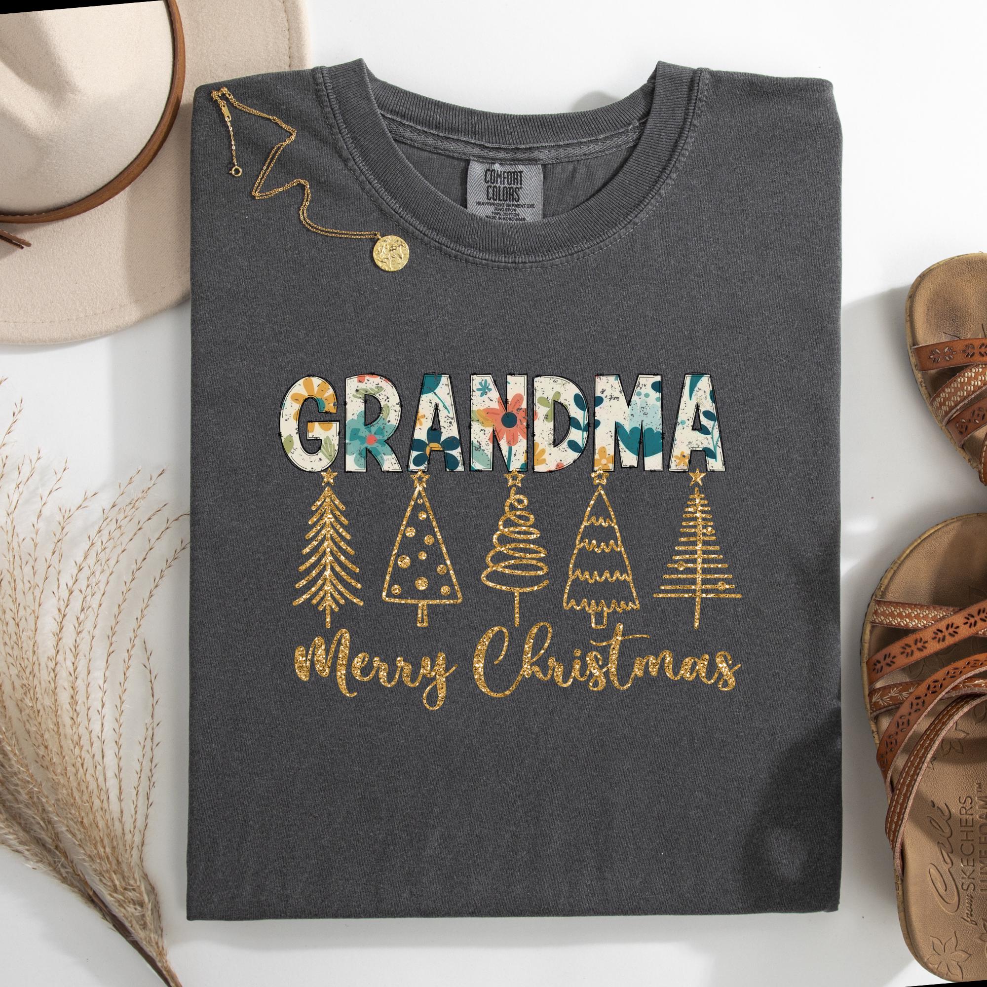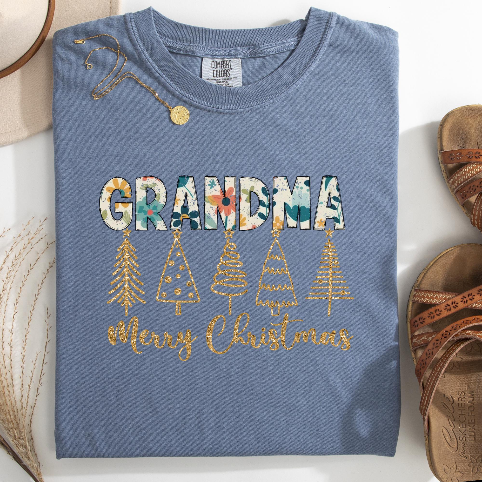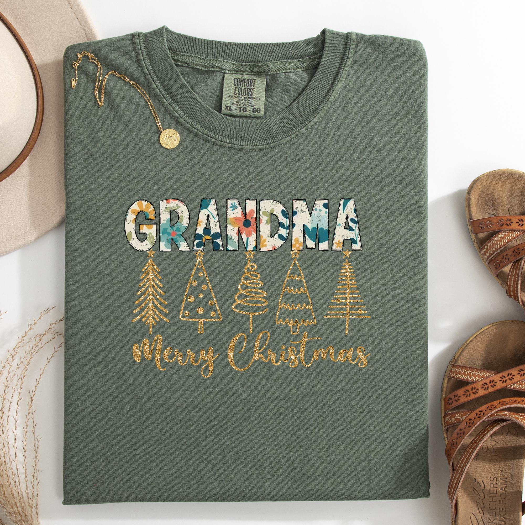 Grandma Golden Christmas Tree Garment-Dyed T-shirt, Comfort Color Tee, Christmas Gift for Grandma, Grandma Shirt gift
