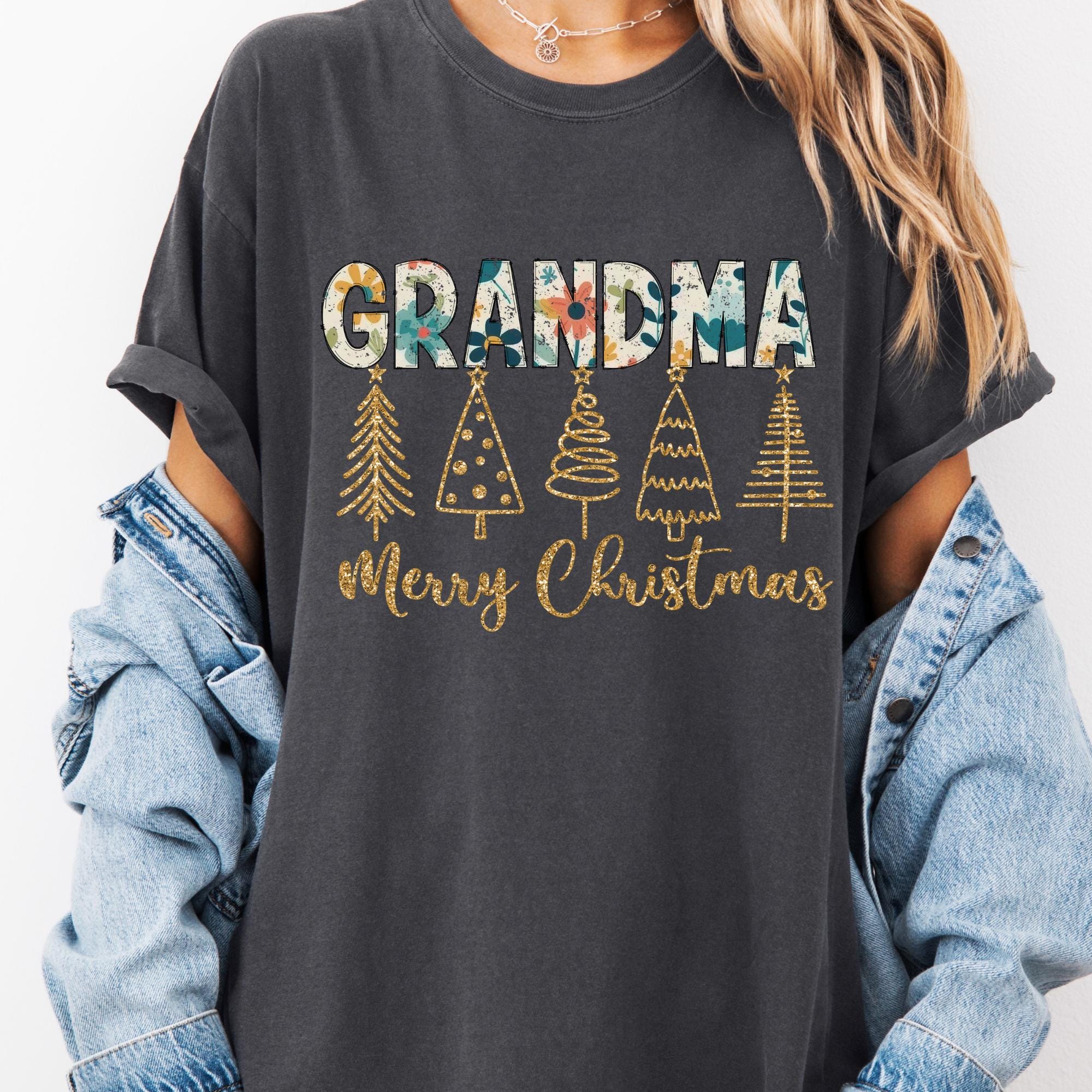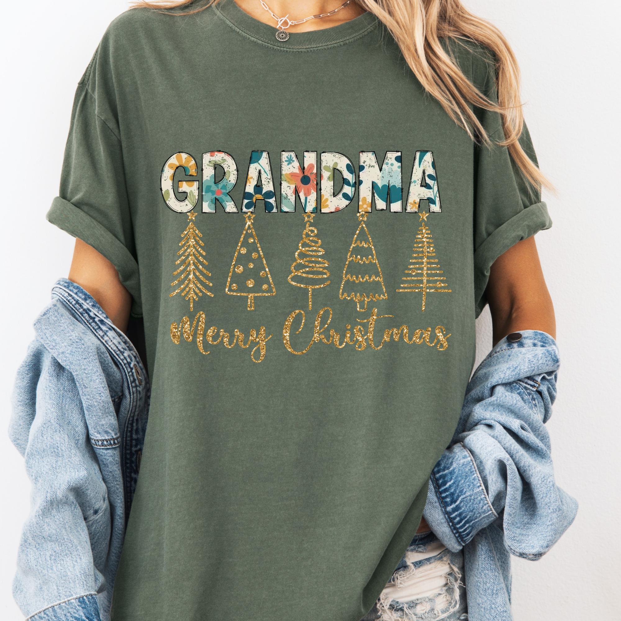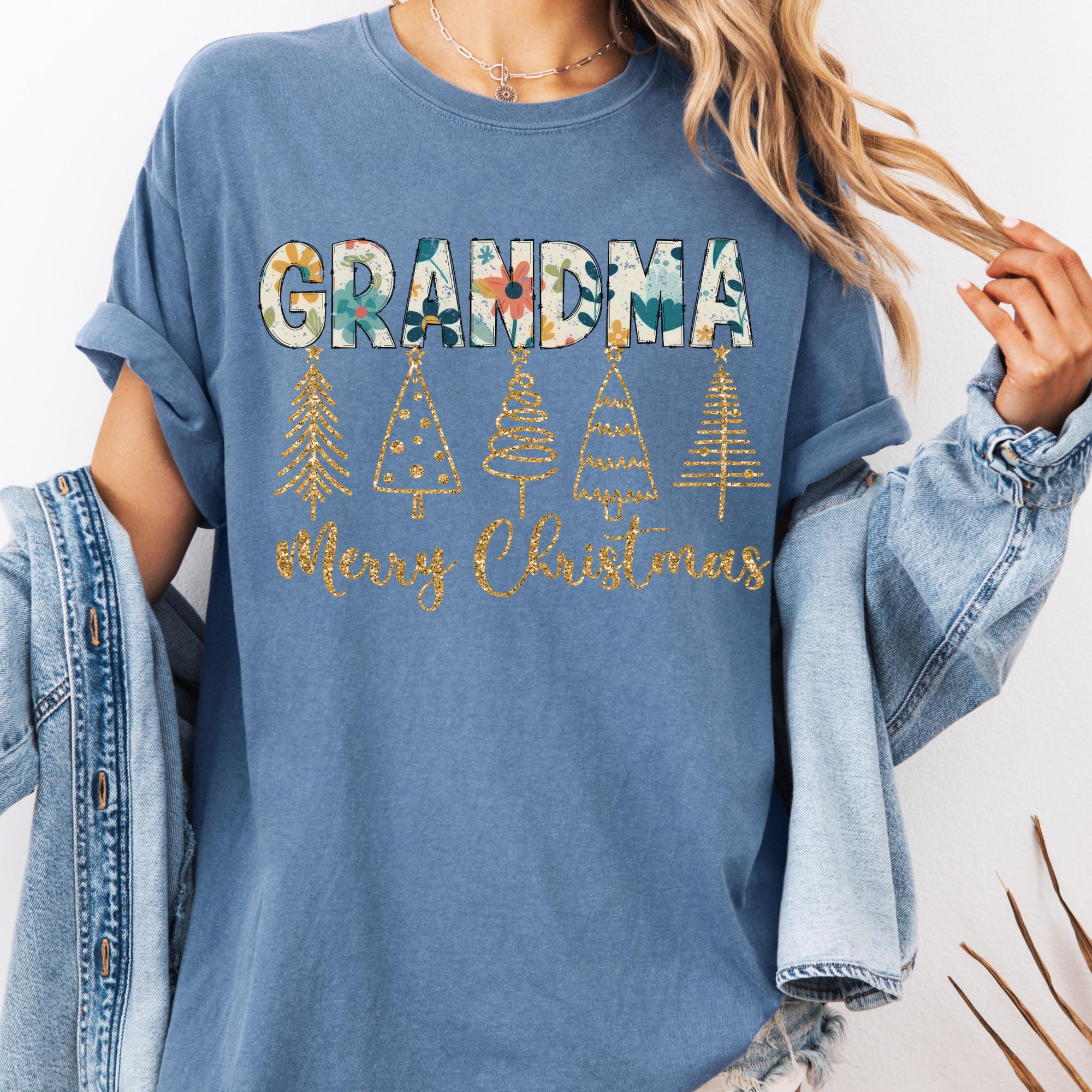 Grandma Golden Christmas Tree Garment-Dyed T-shirt, Comfort Color Tee, Christmas Gift for Grandma, Grandma Shirt gift