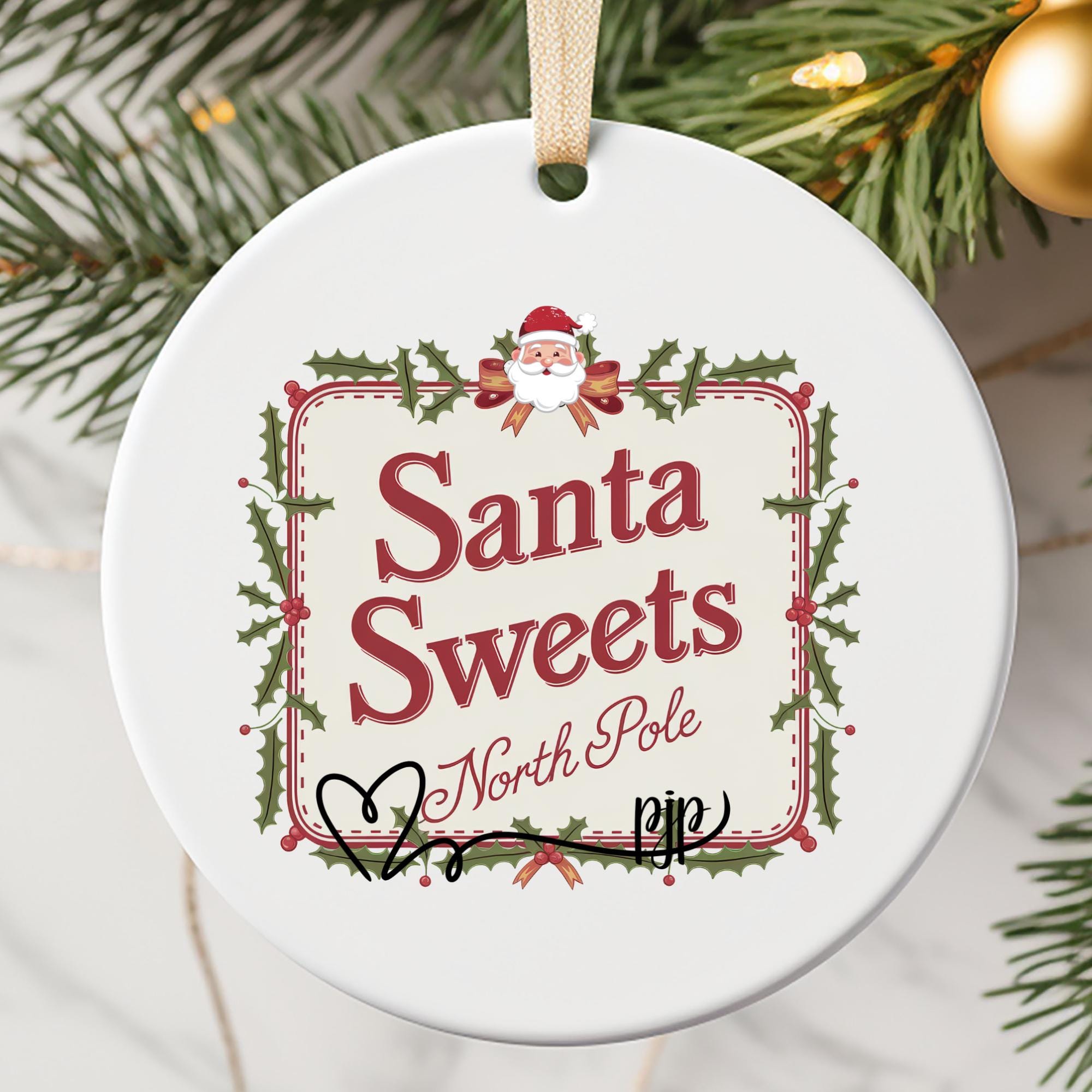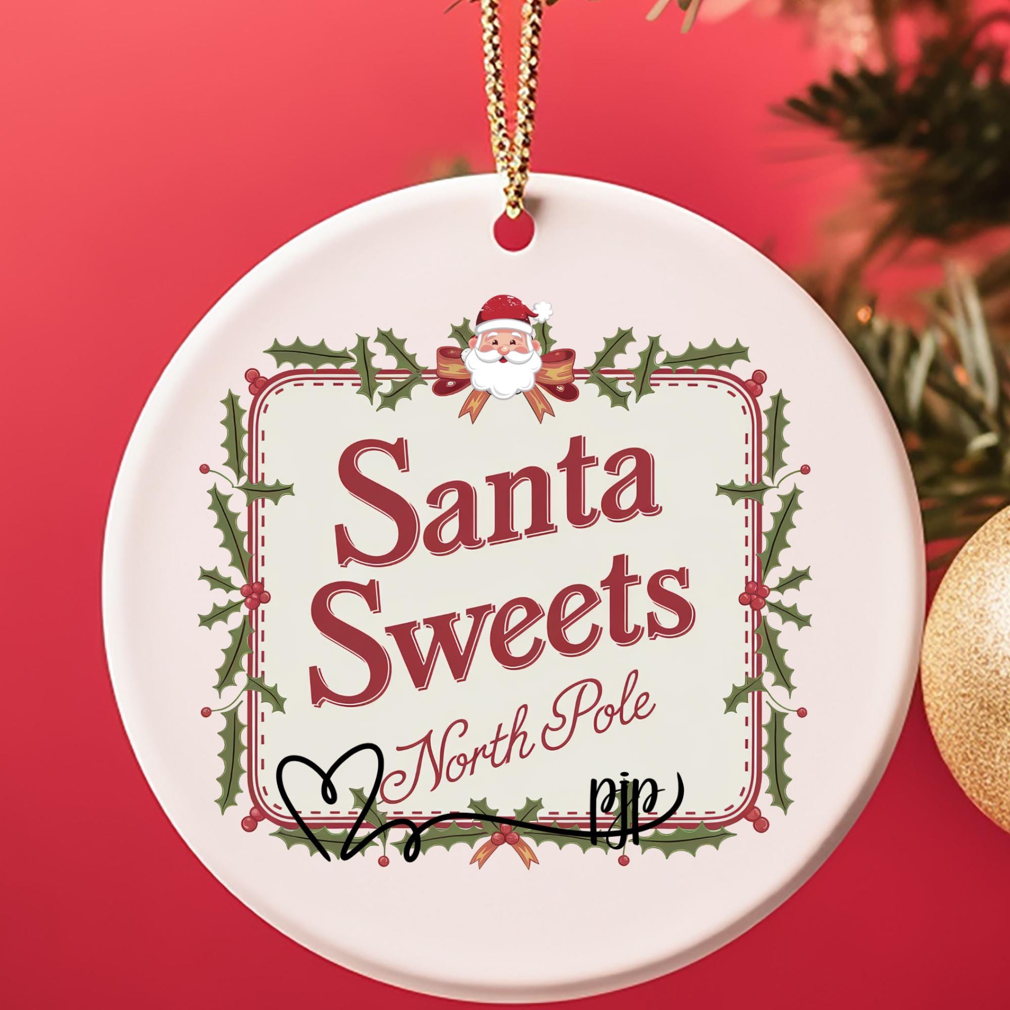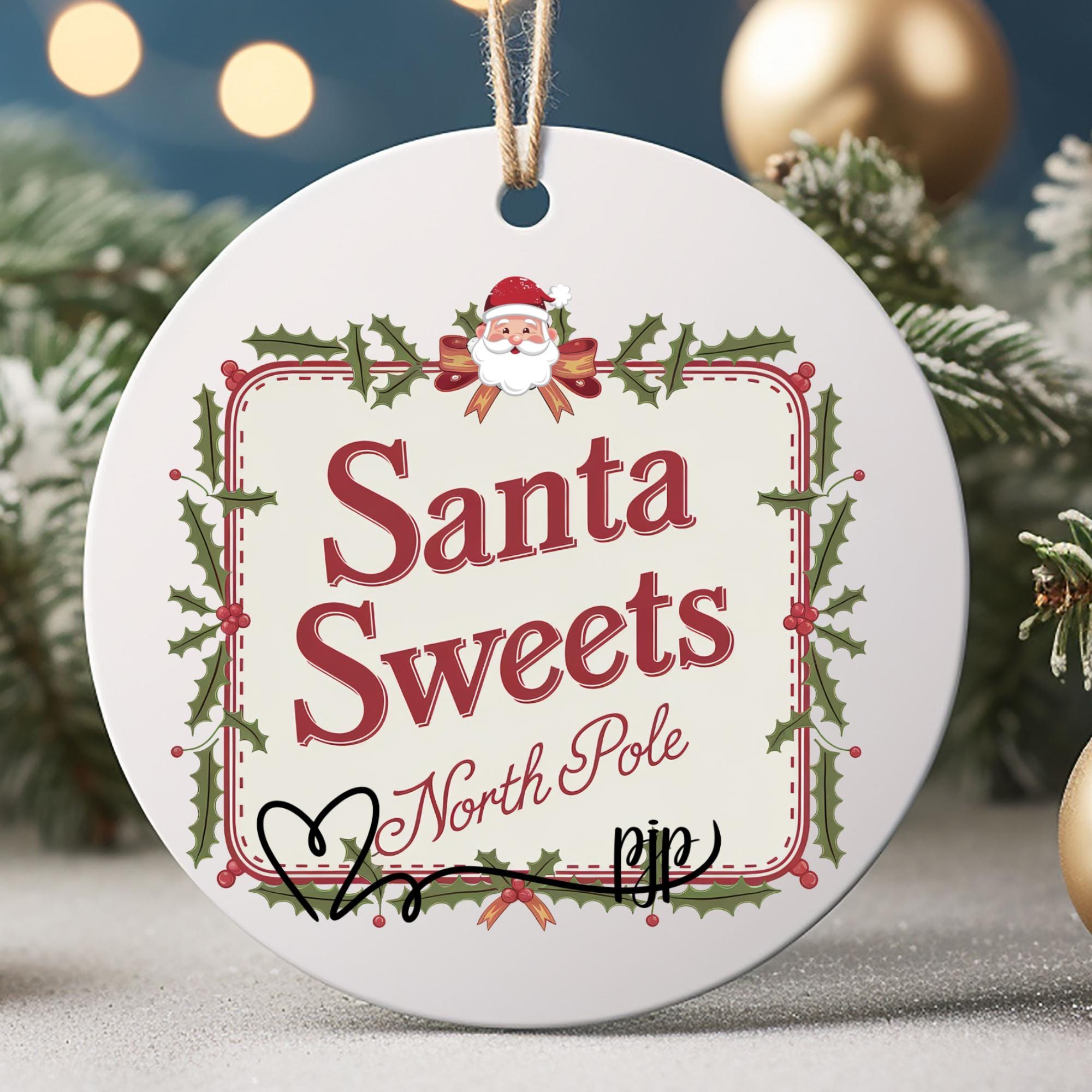 Celebrate the festive season with these North Pole Candy Shop ornaments. Made from durable aluminum with vibrant colors. Hang them on your Christmas tree or gift them to a loved one for a touch of holiday cheer. Perfect for Christmas decor enthusiasts and collectors.