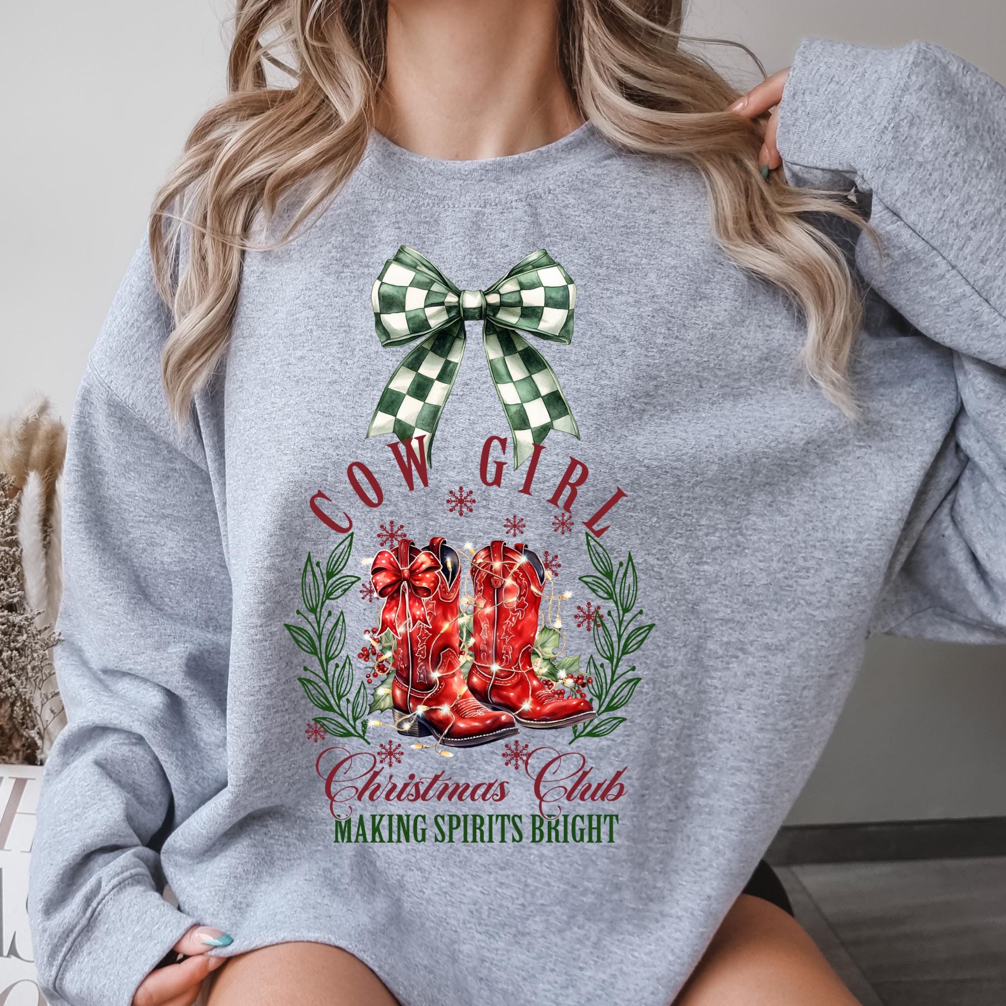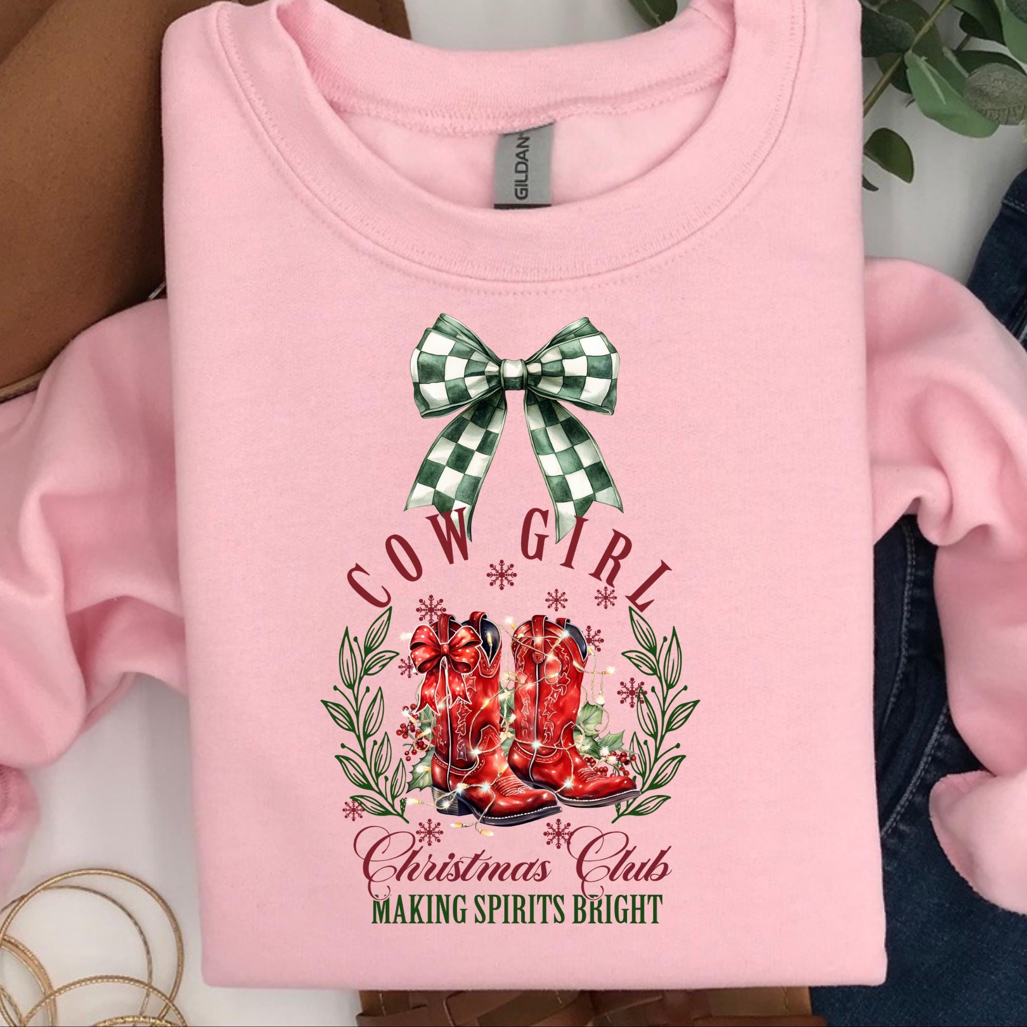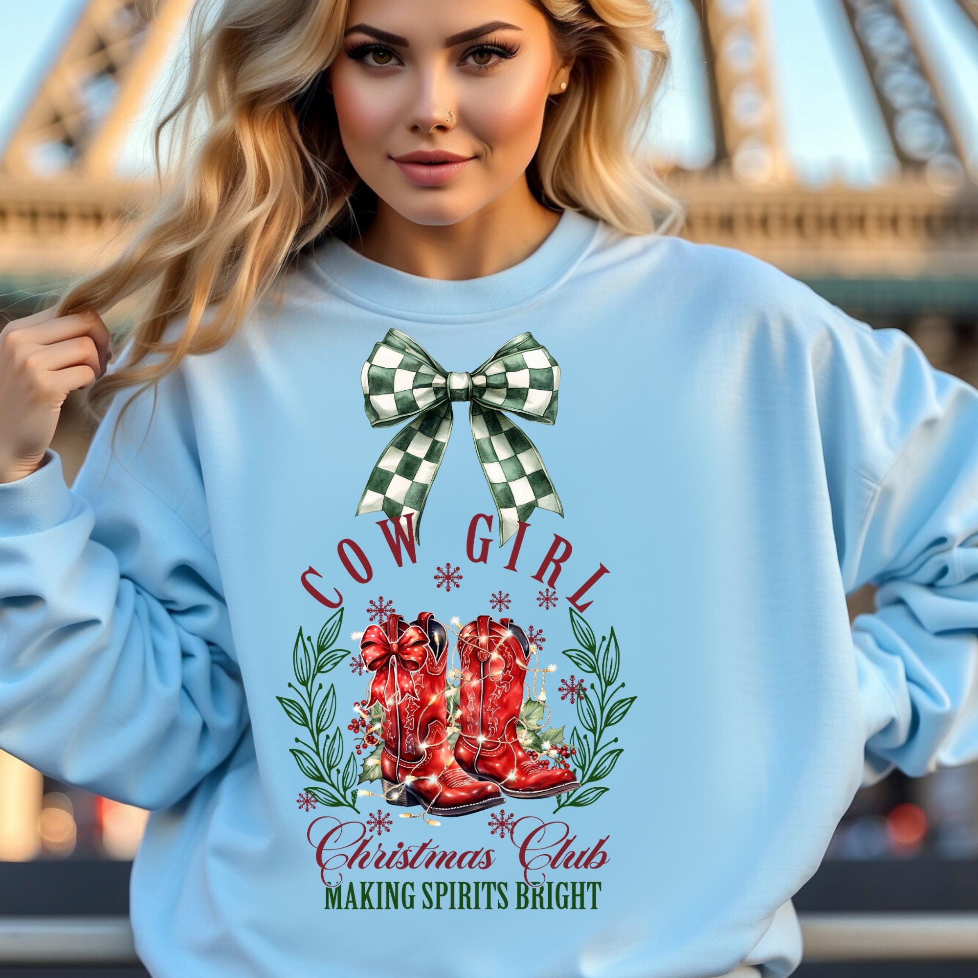 Cowgirl Club Sweatshirt, Cowgirl Girly Xmas Gift, Women's Clothing, Rodeo Apparel,Western Fashion, Horse Lover Gift,Cowgirl boots Xmas shirt