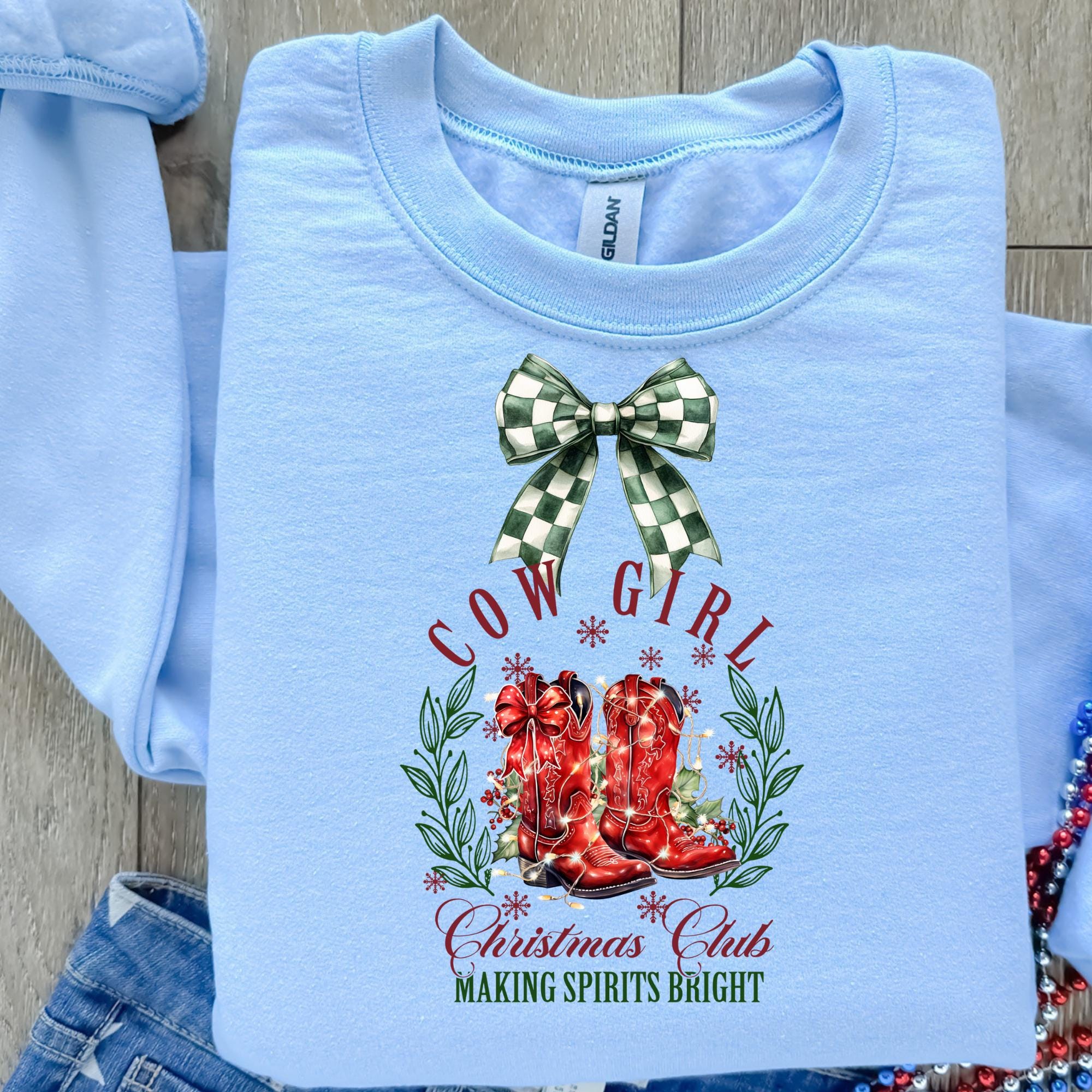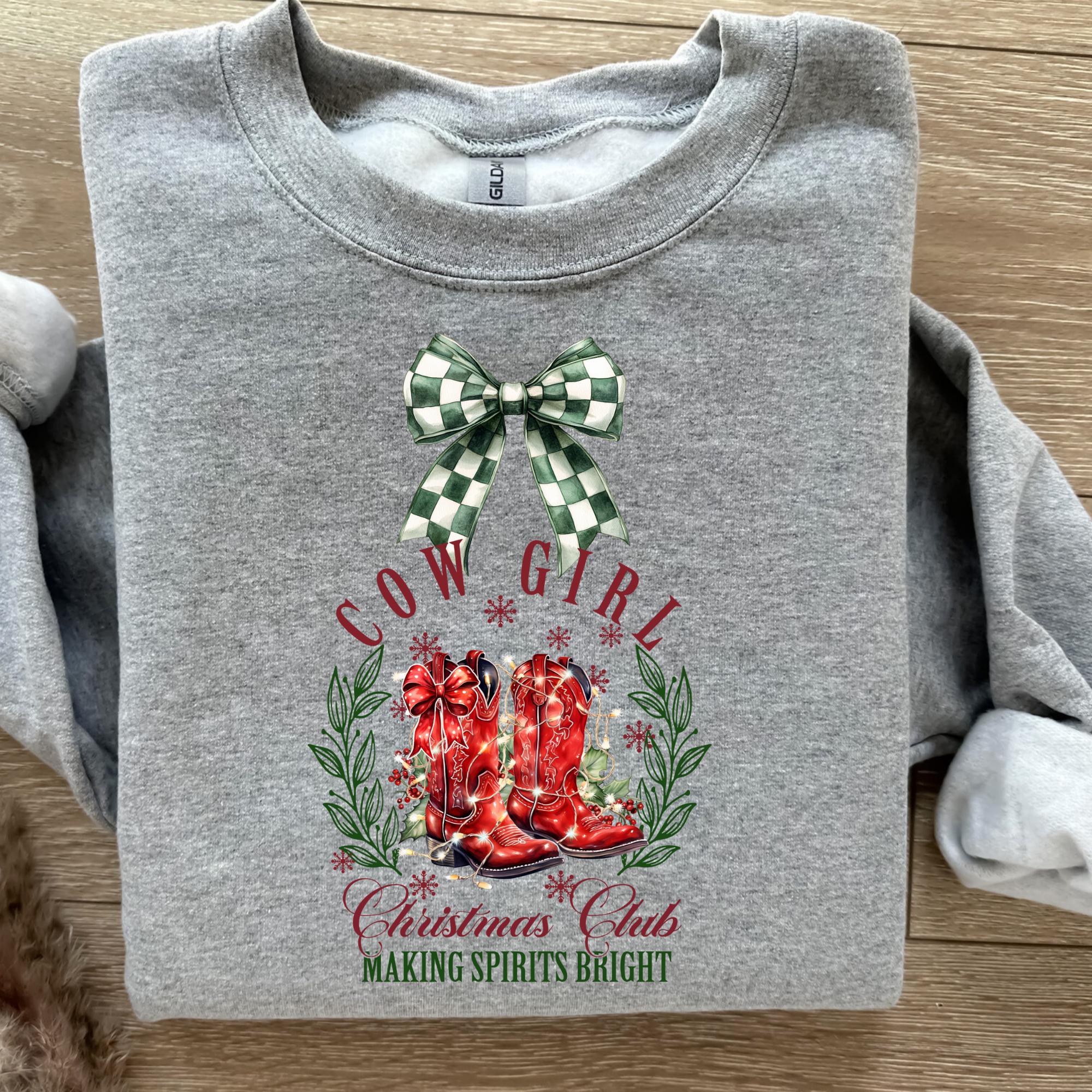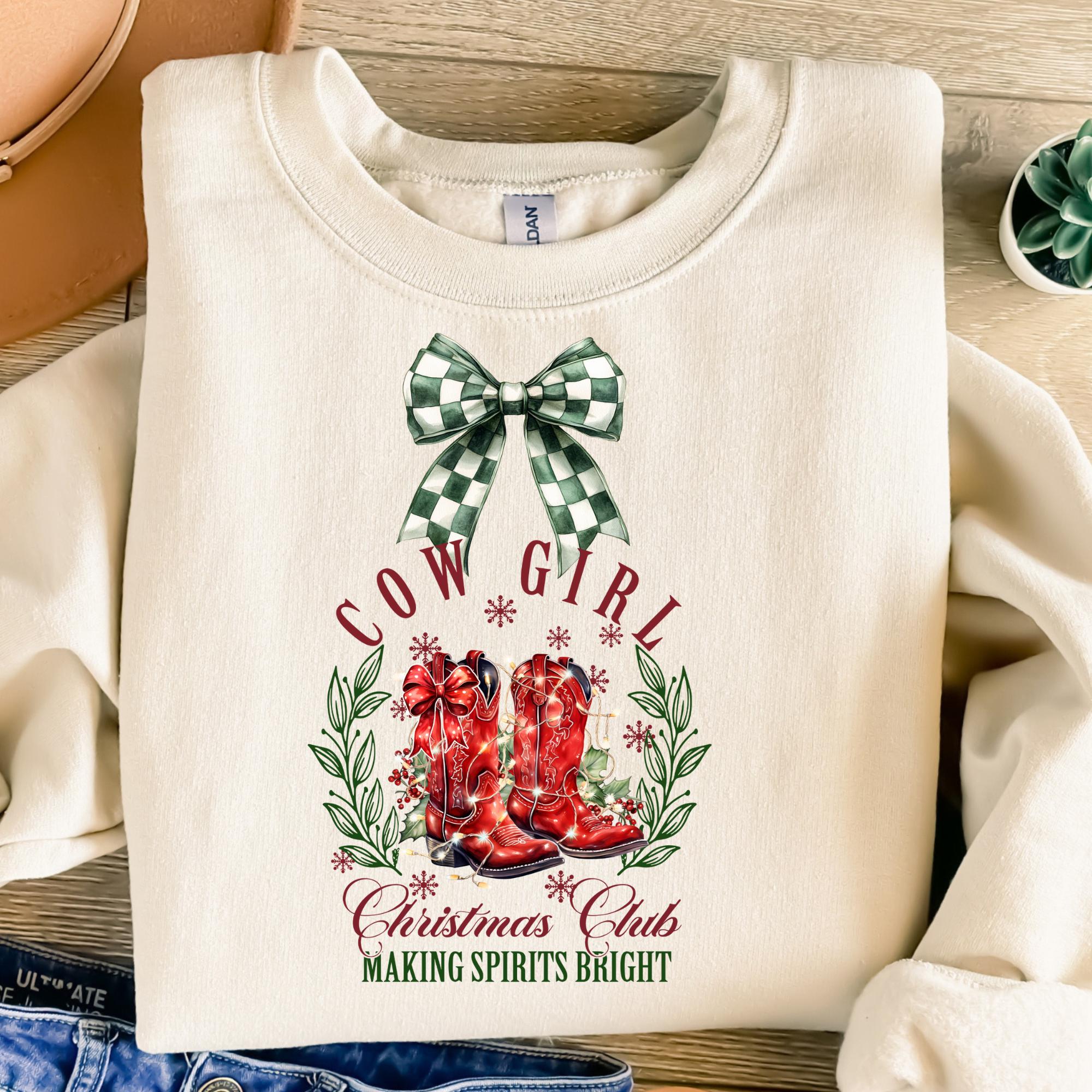 Cowgirl Club Sweatshirt, Cowgirl Girly Xmas Gift, Women's Clothing, Rodeo Apparel,Western Fashion, Horse Lover Gift,Cowgirl boots Xmas shirt