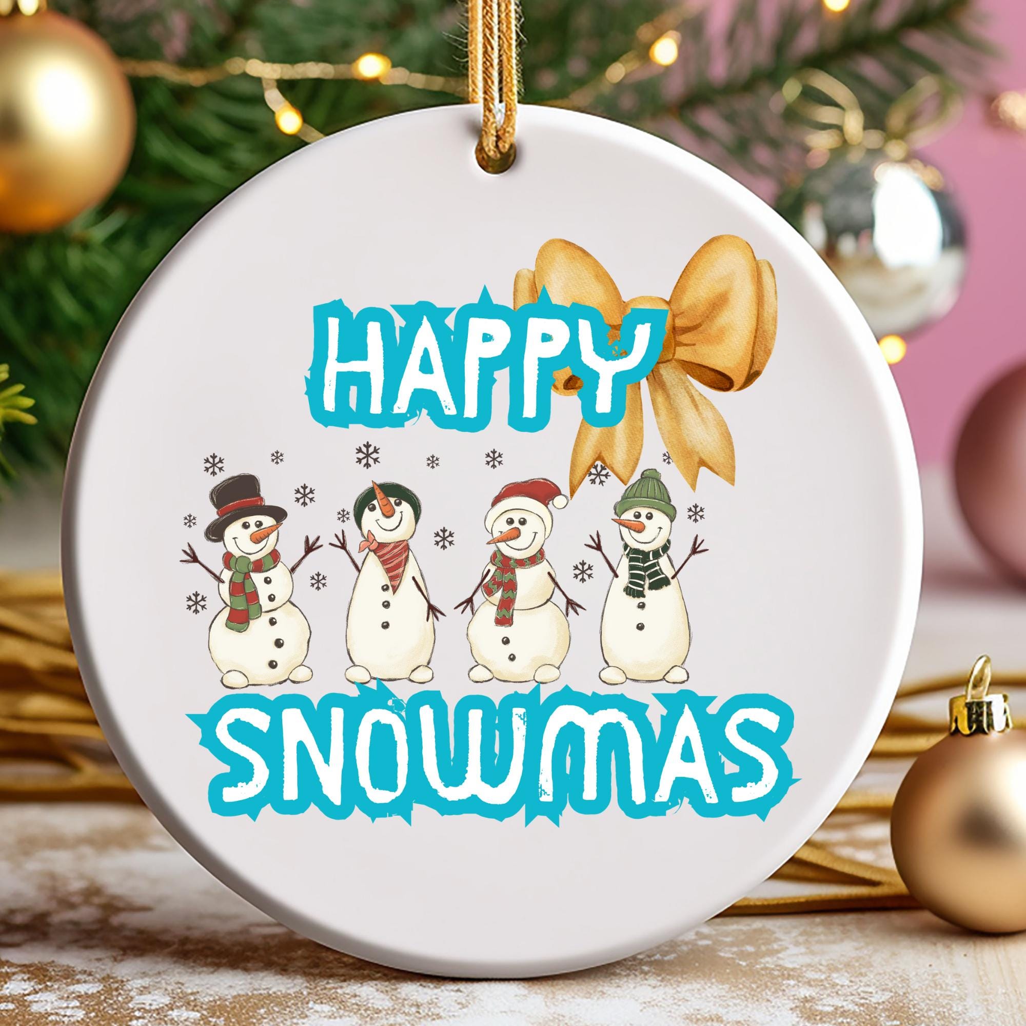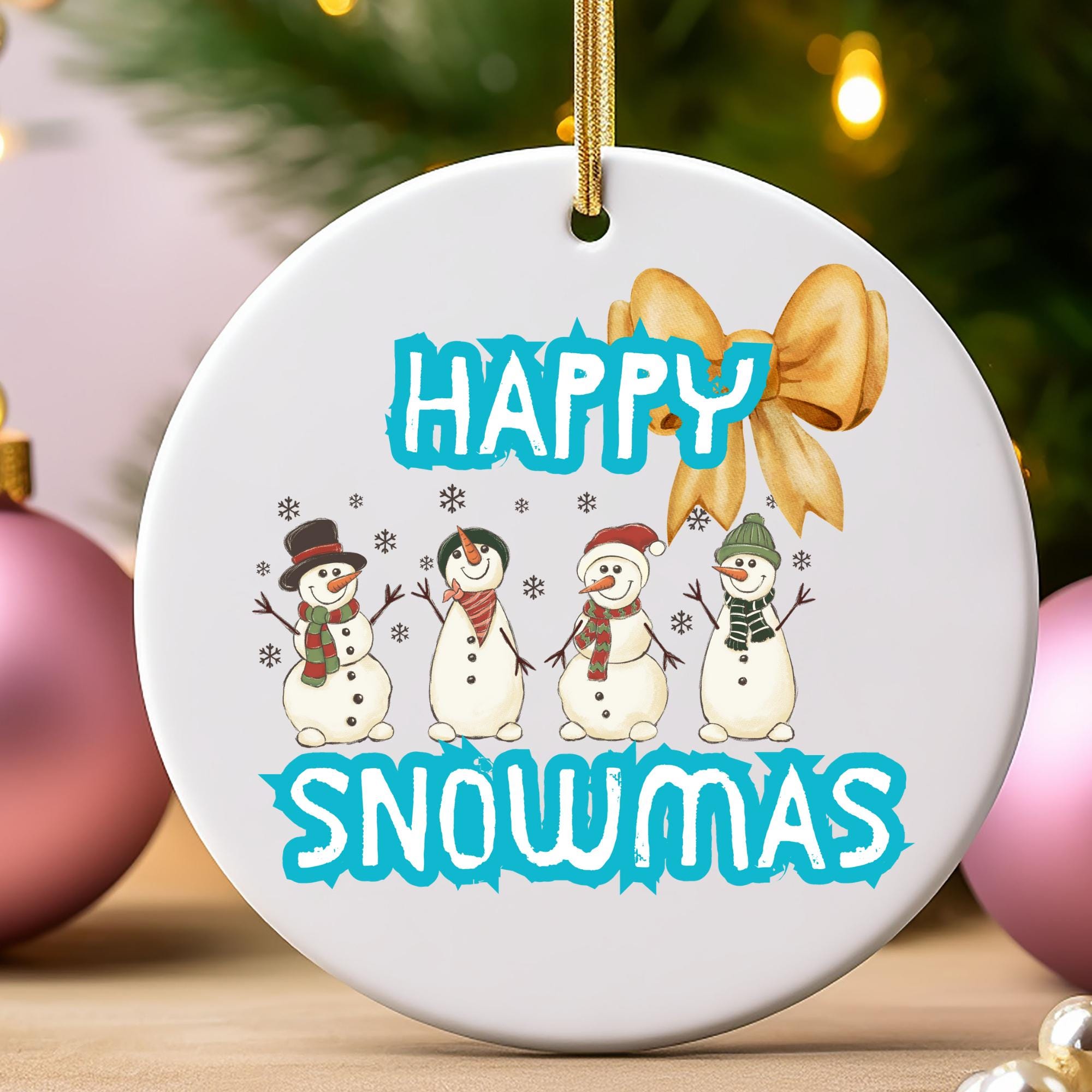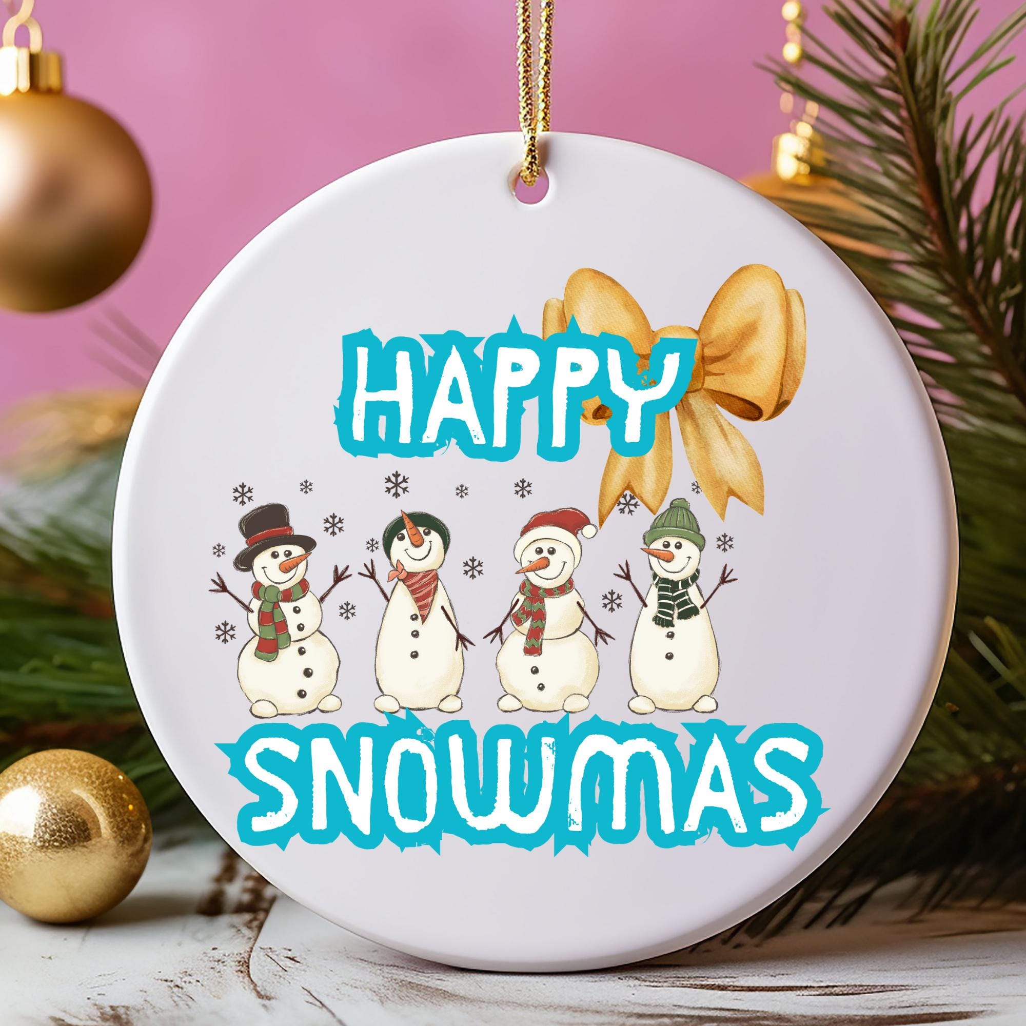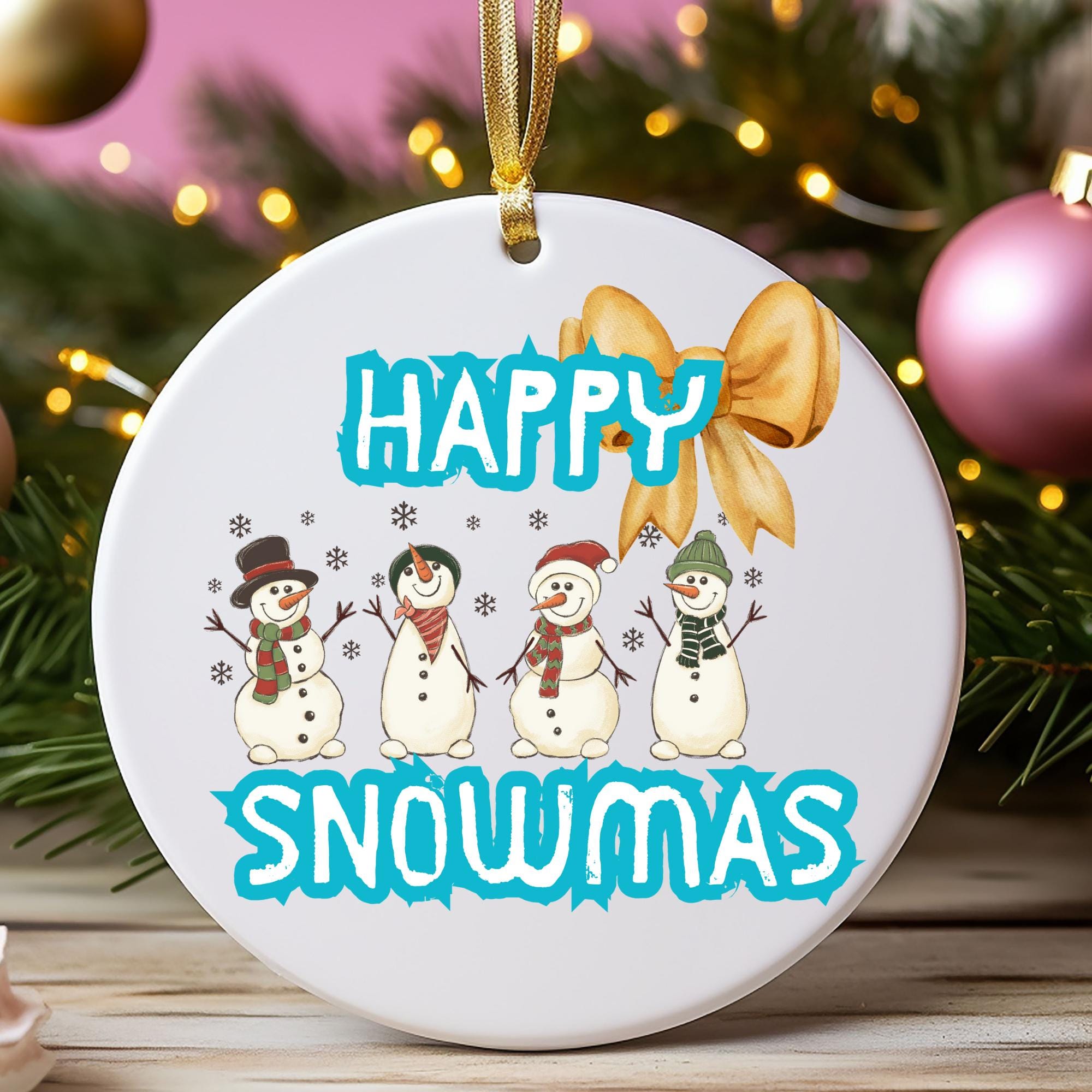 Happy Snowman Bow Ornament Gift, Christmas Tree Decor, Holiday Gift, Winter Decoration, Festive Ornament, Metal Ornament