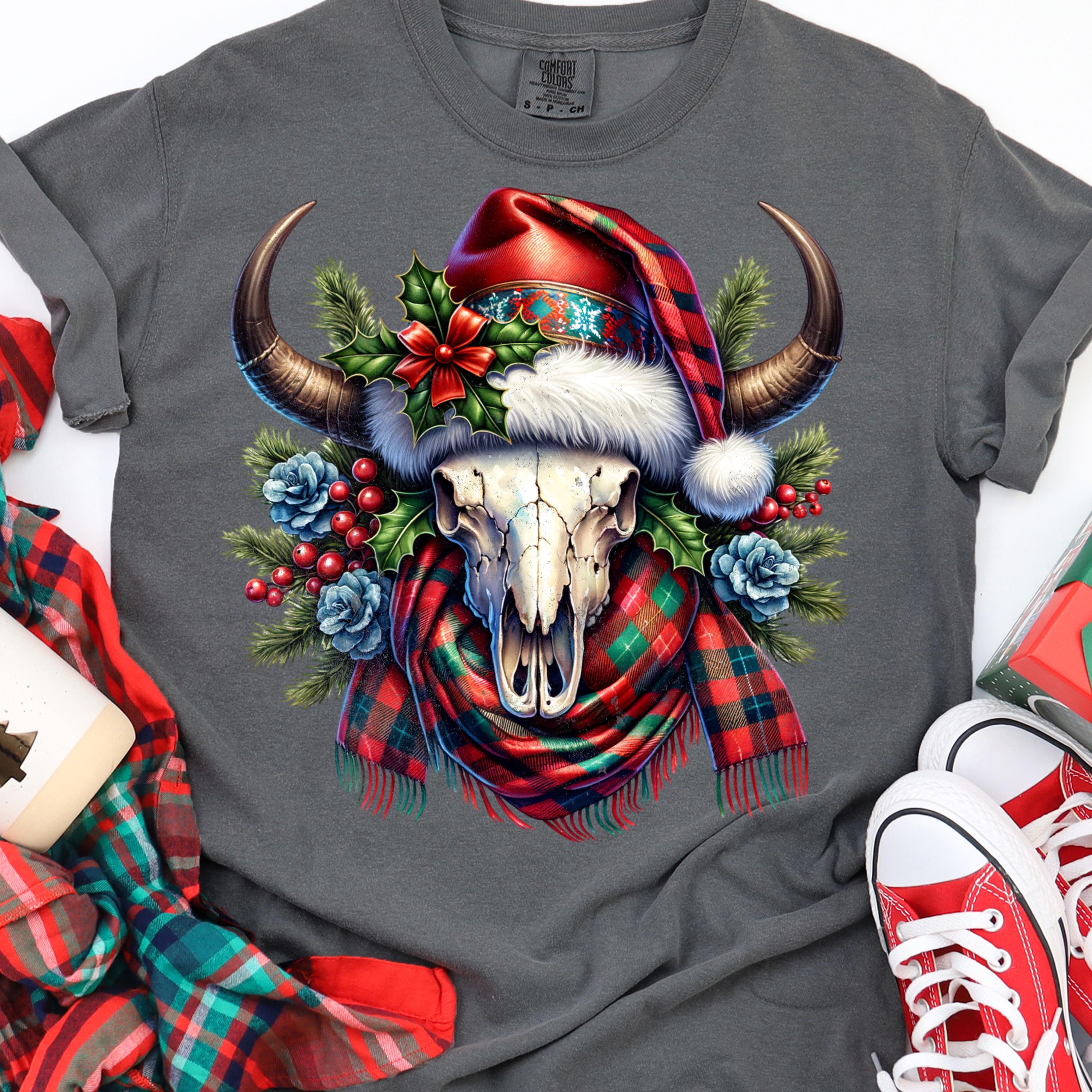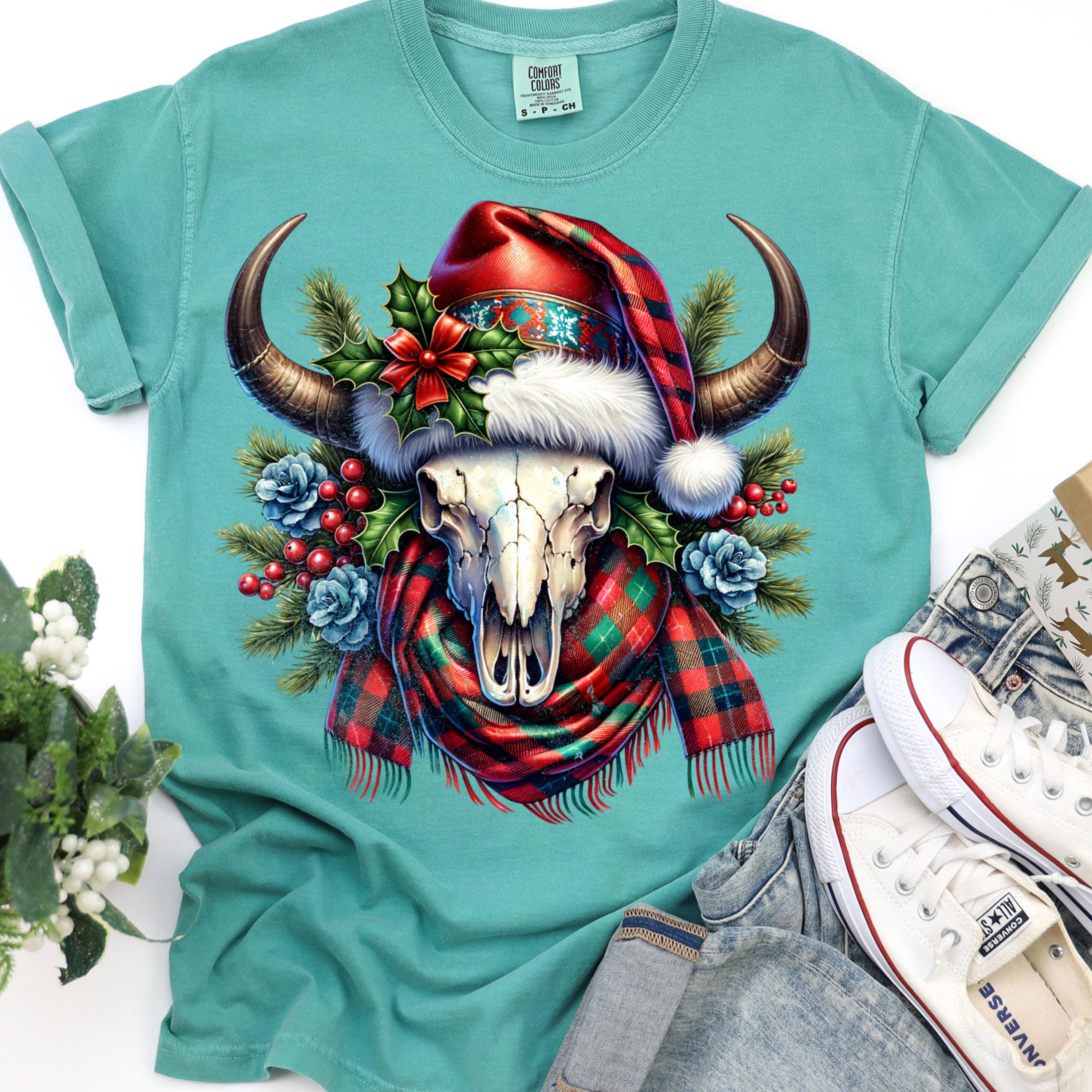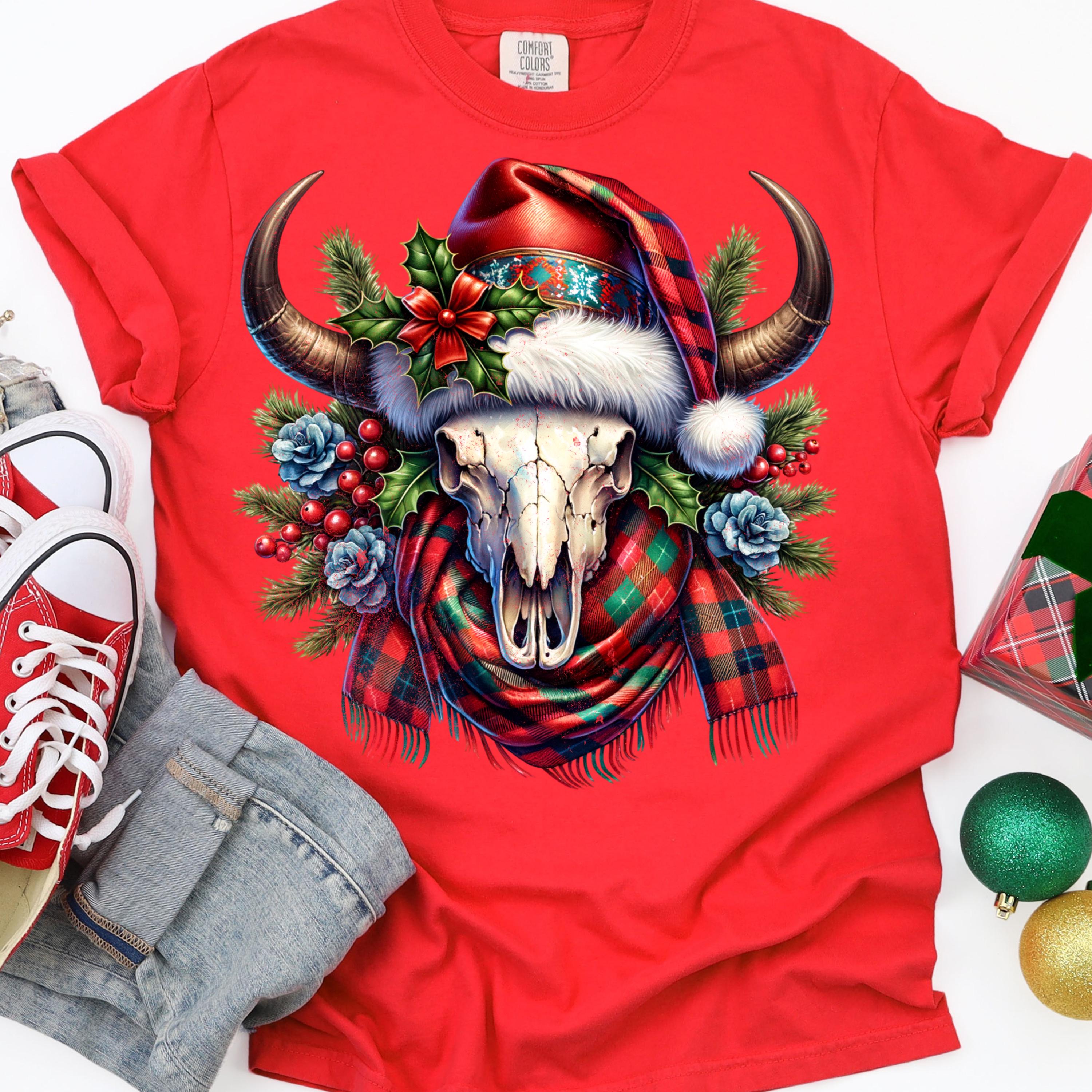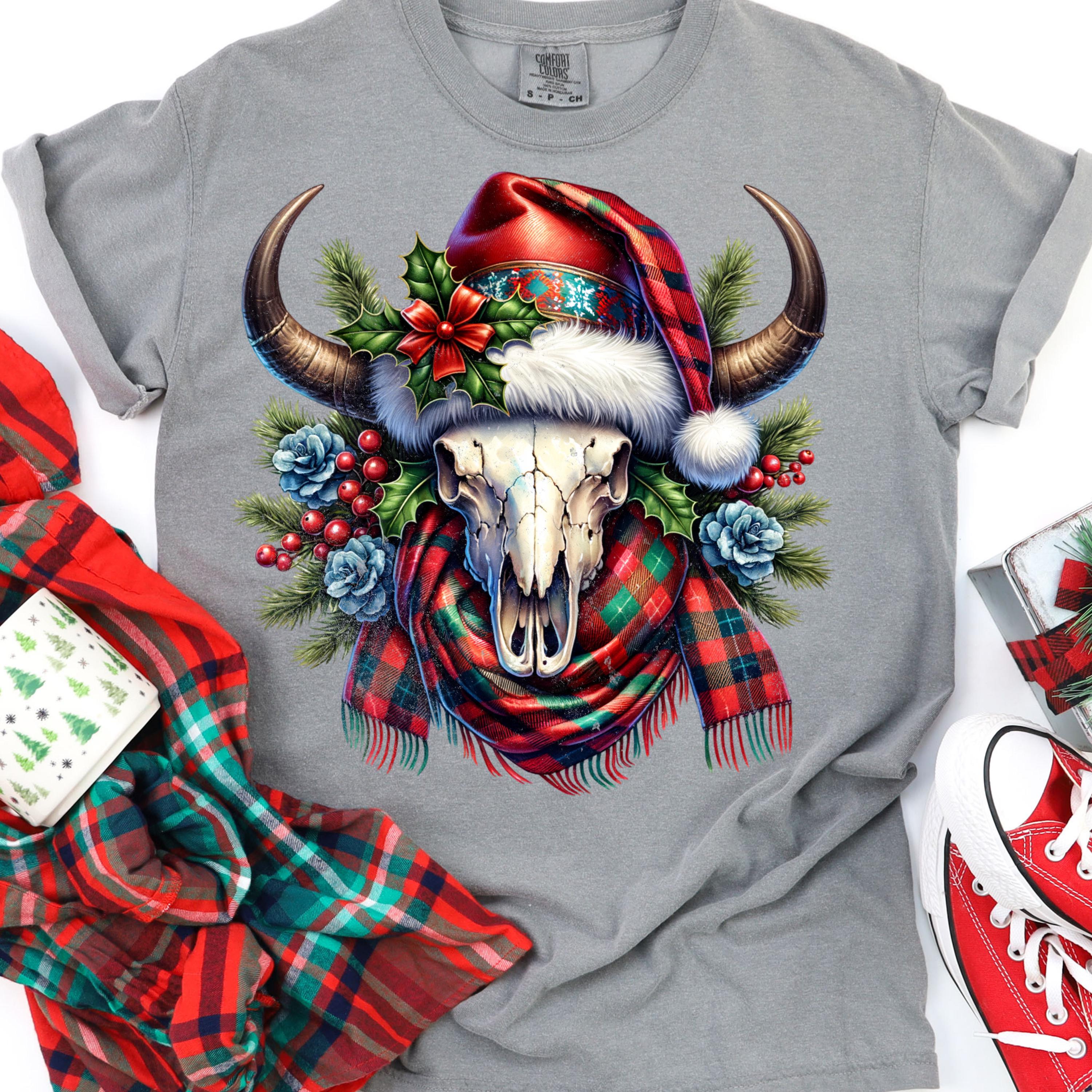 Western Christmas Skull T-Shirt, Holiday Cow gift Tee