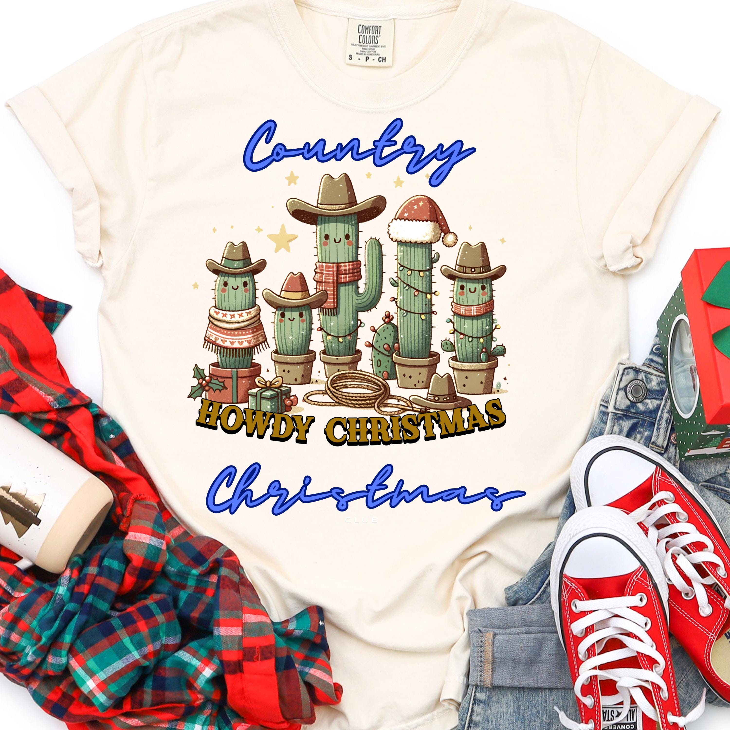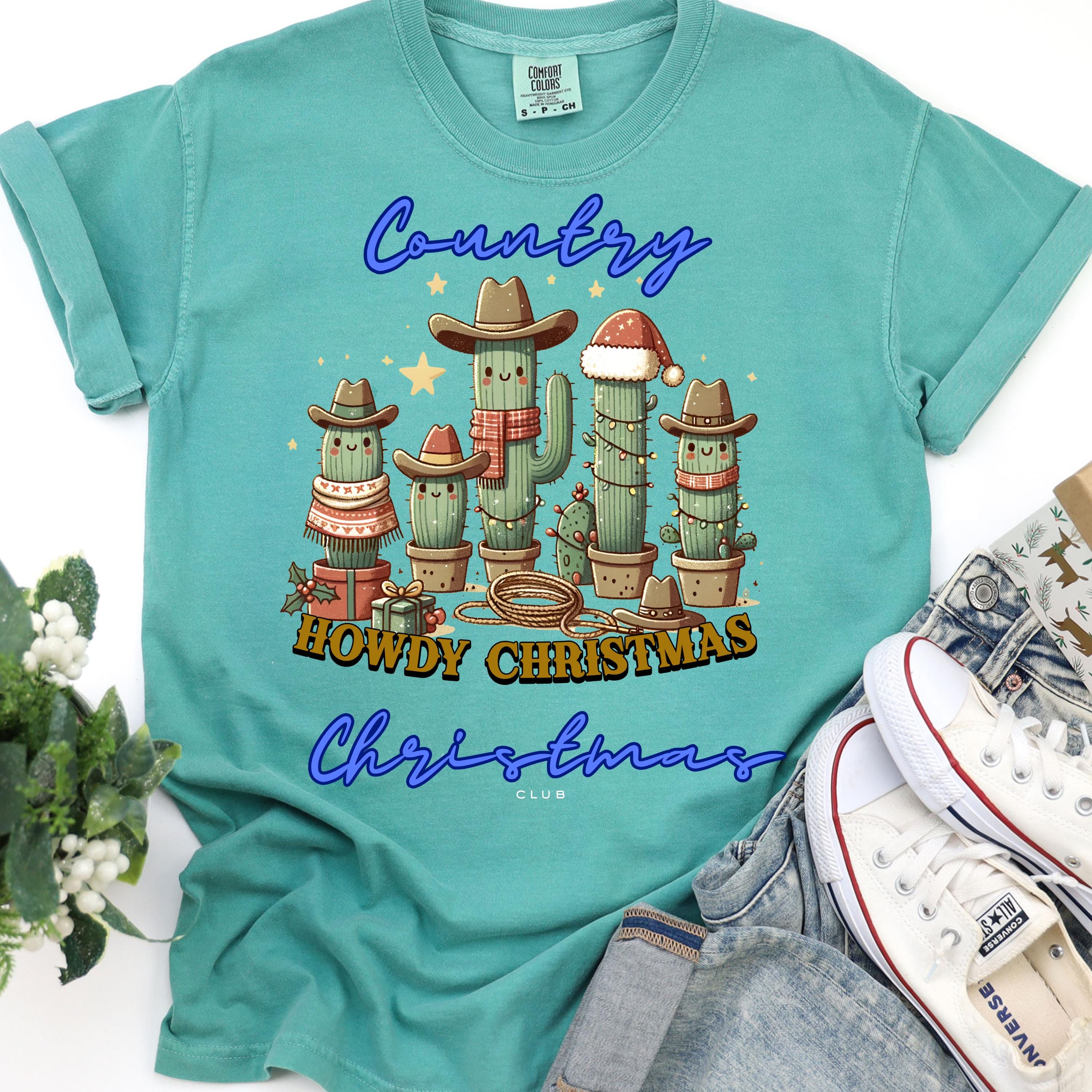 Howdy Cactus Tee Gift for Western Fans, Festive Cowboy T-Shirt, Xmas Cactus Shirt