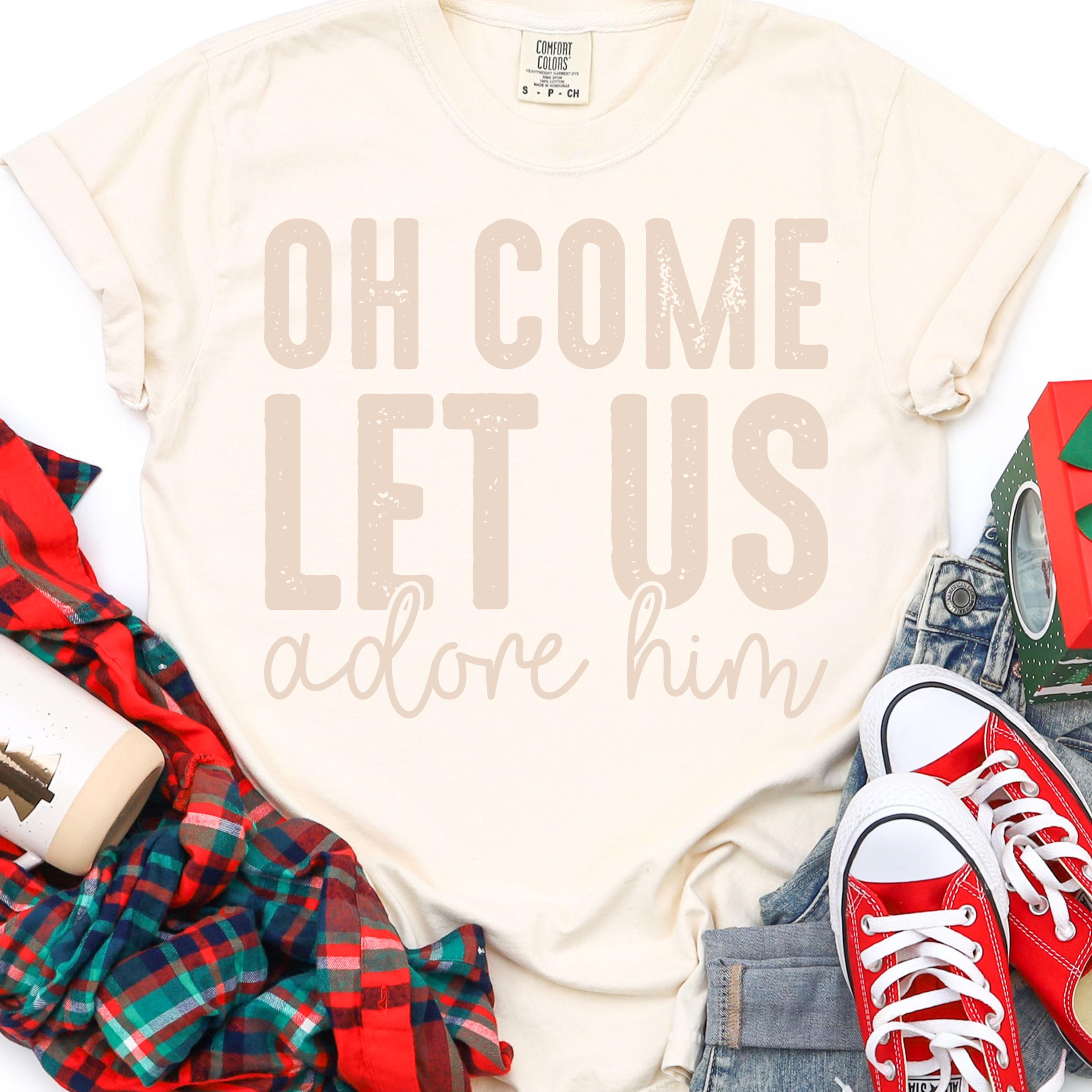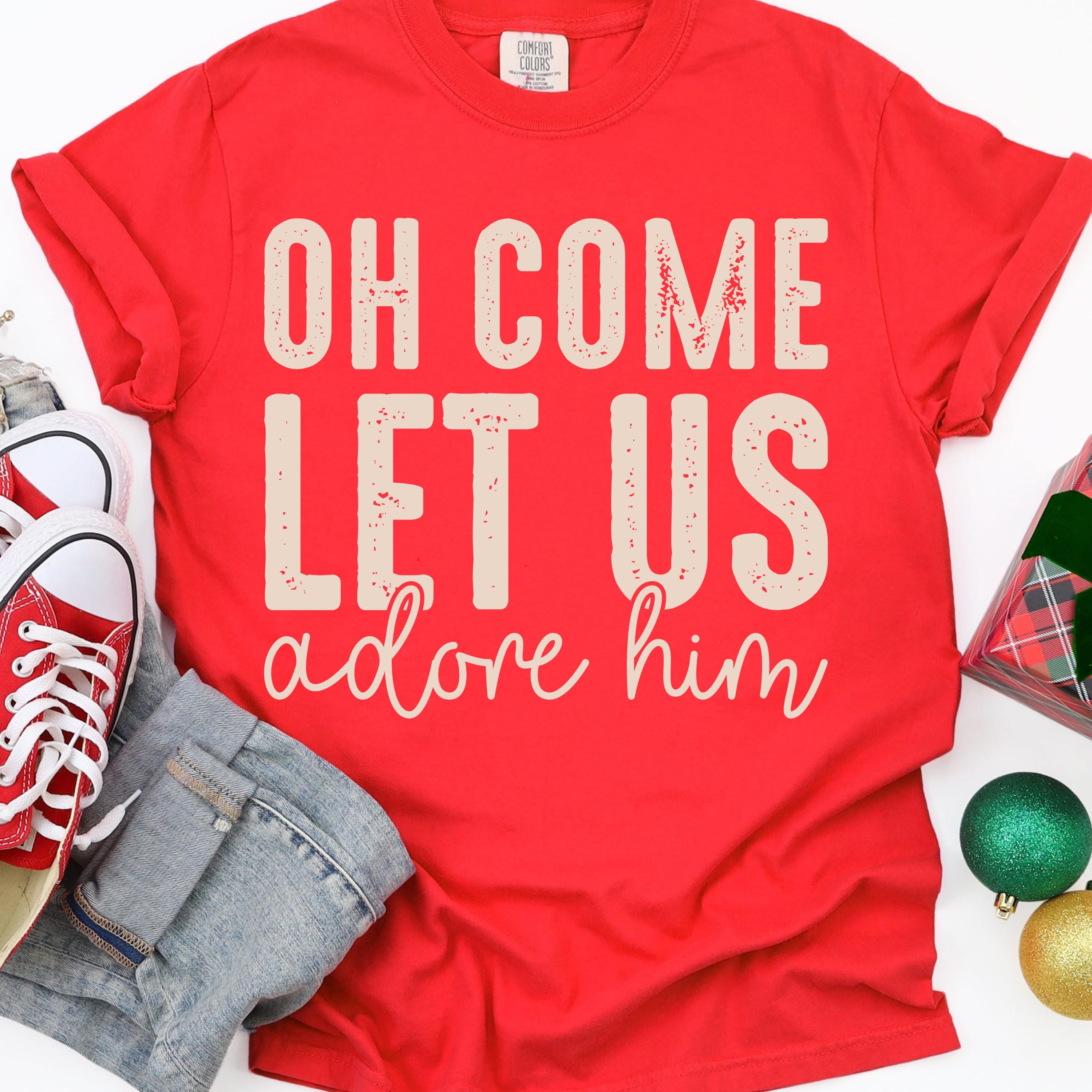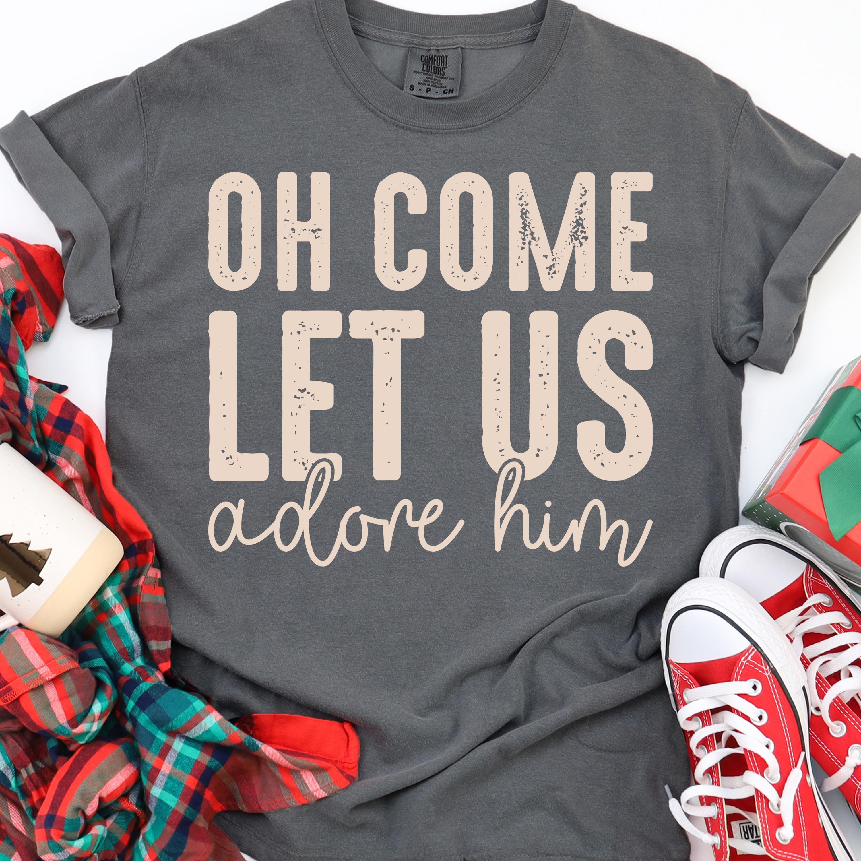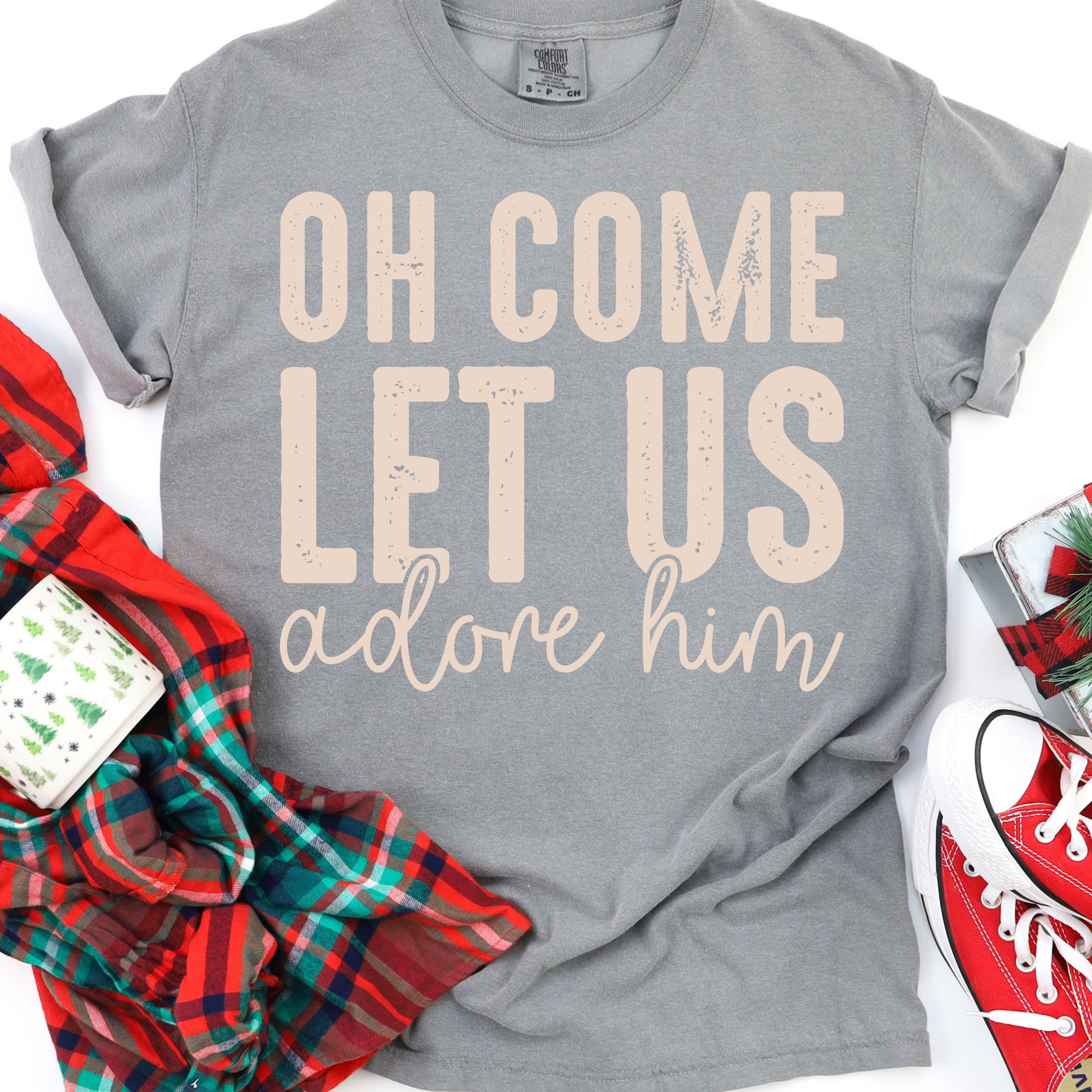 Oh Come Let Us Adore Him Tee, Religious T-Shirt Festive Gift, Christian Holiday Shirt