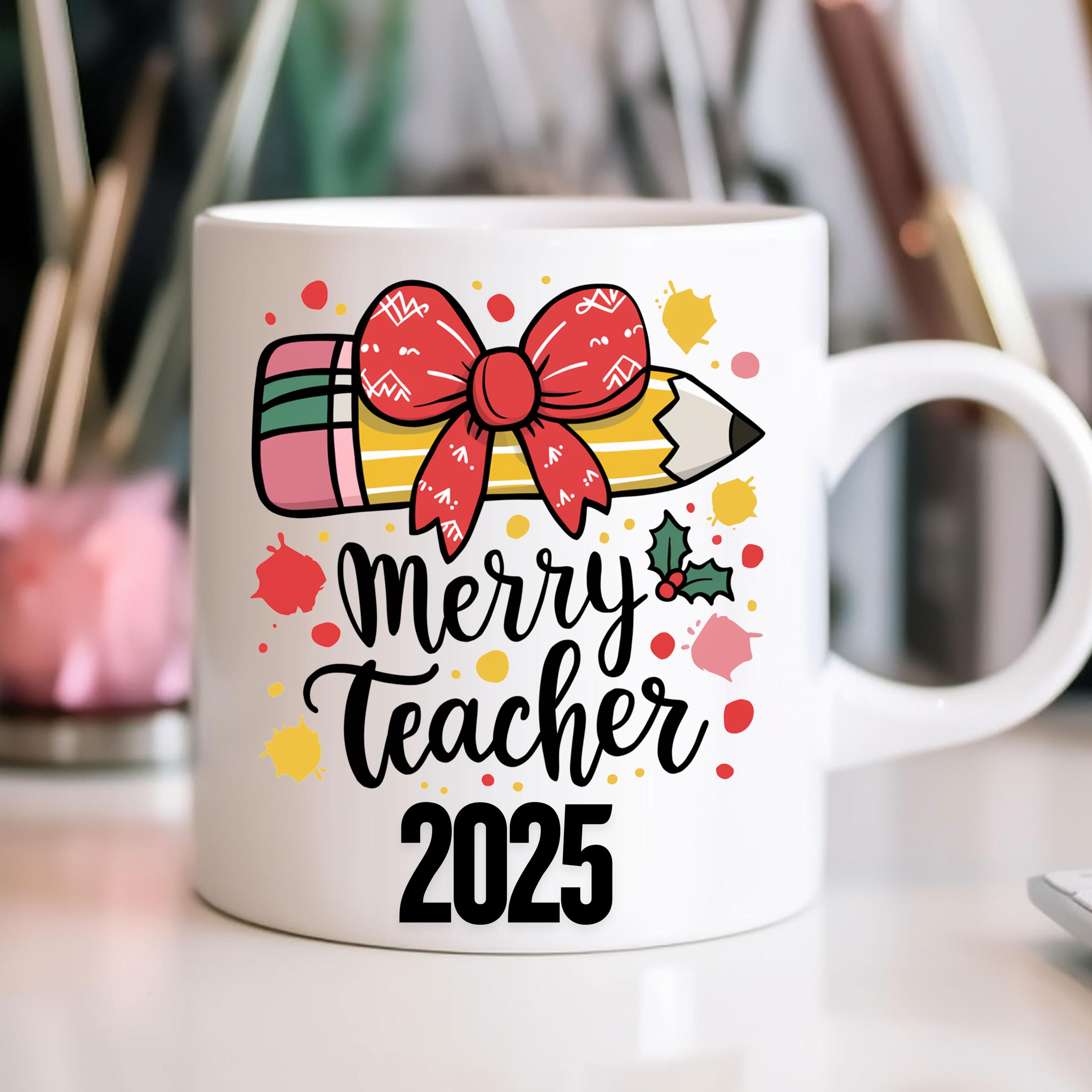 Christmas Teacher Ceramic Mug, Merry Teacher 2025 Gift for Groups