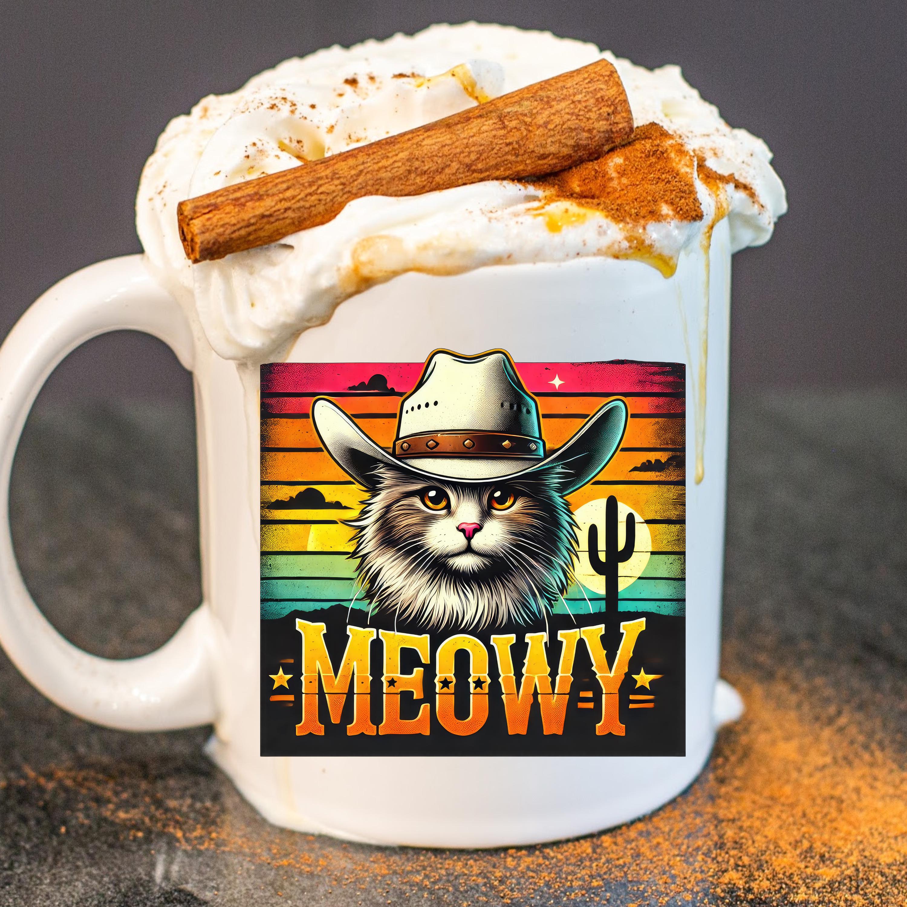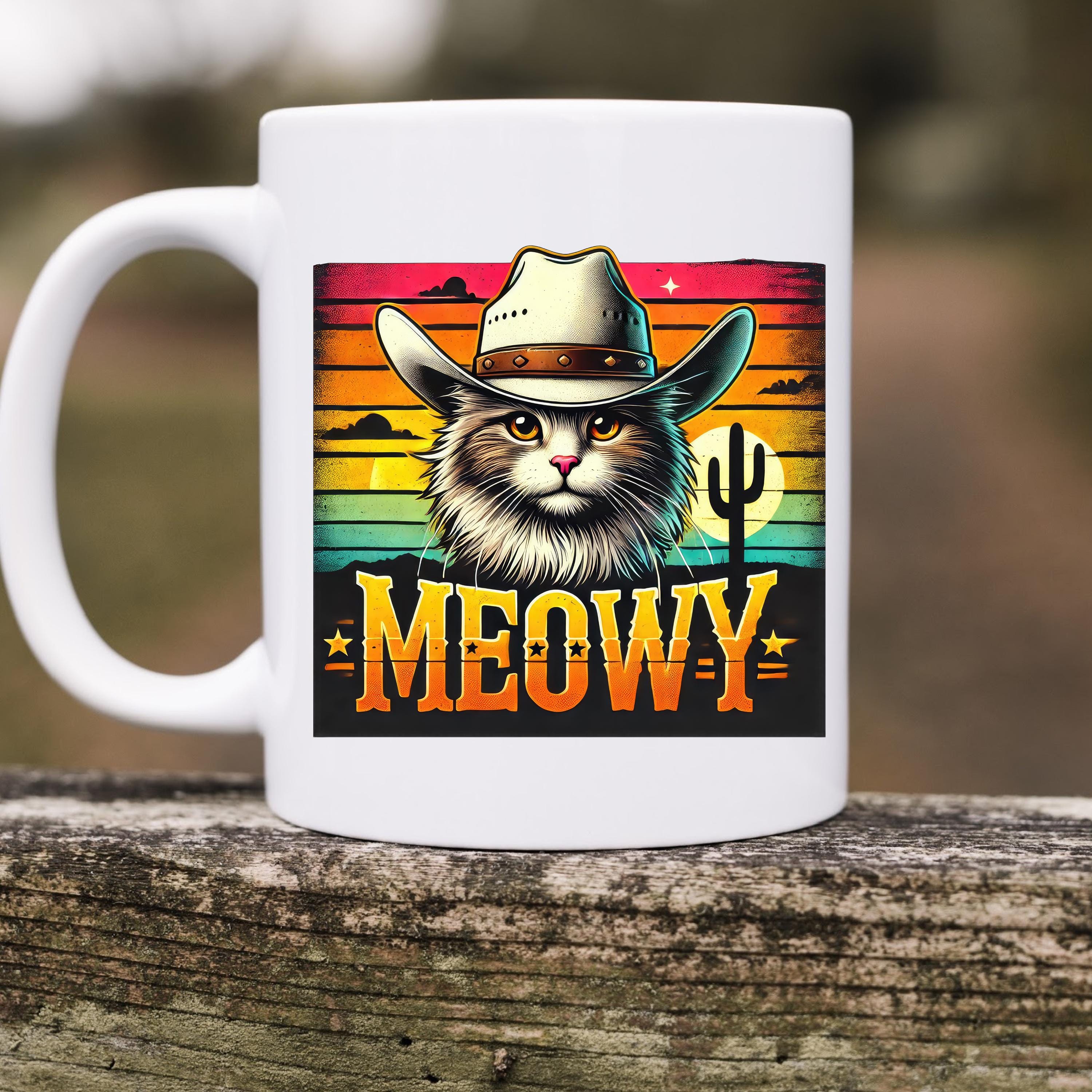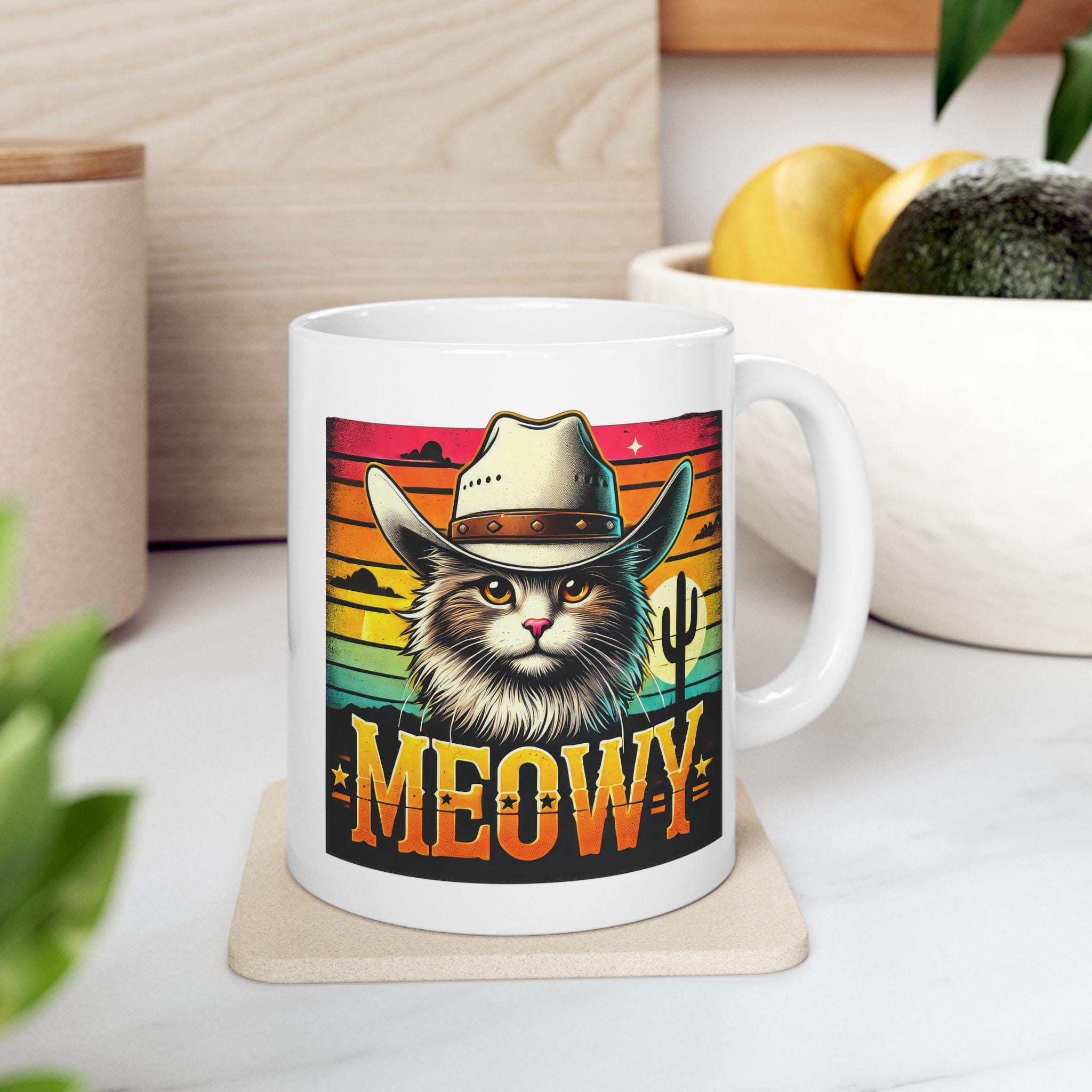 This Meow Western Cat mug is a perfect gift for cat lovers. With vibrant colors and a cute design, this coffee cat mug will add a touch of whimsy to your morning routine. It is relevant for cat lovers, animal enthusiasts, and those who enjoy playful and fun designs. Perfect for gifting on birthdays, holidays, or just to show some love.