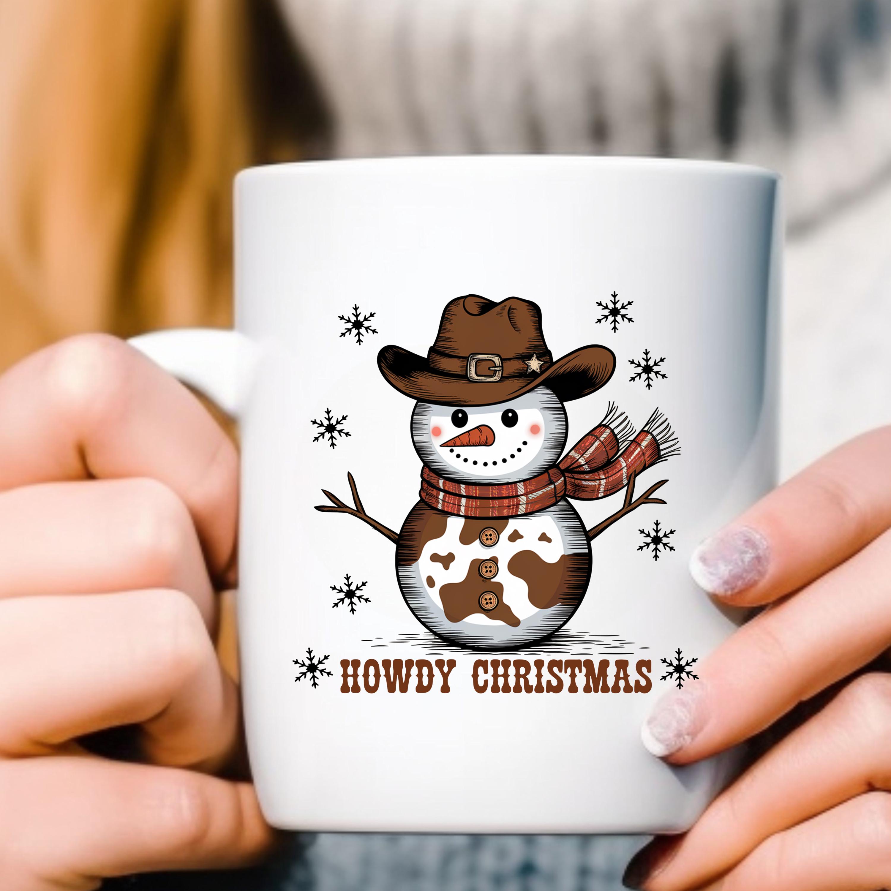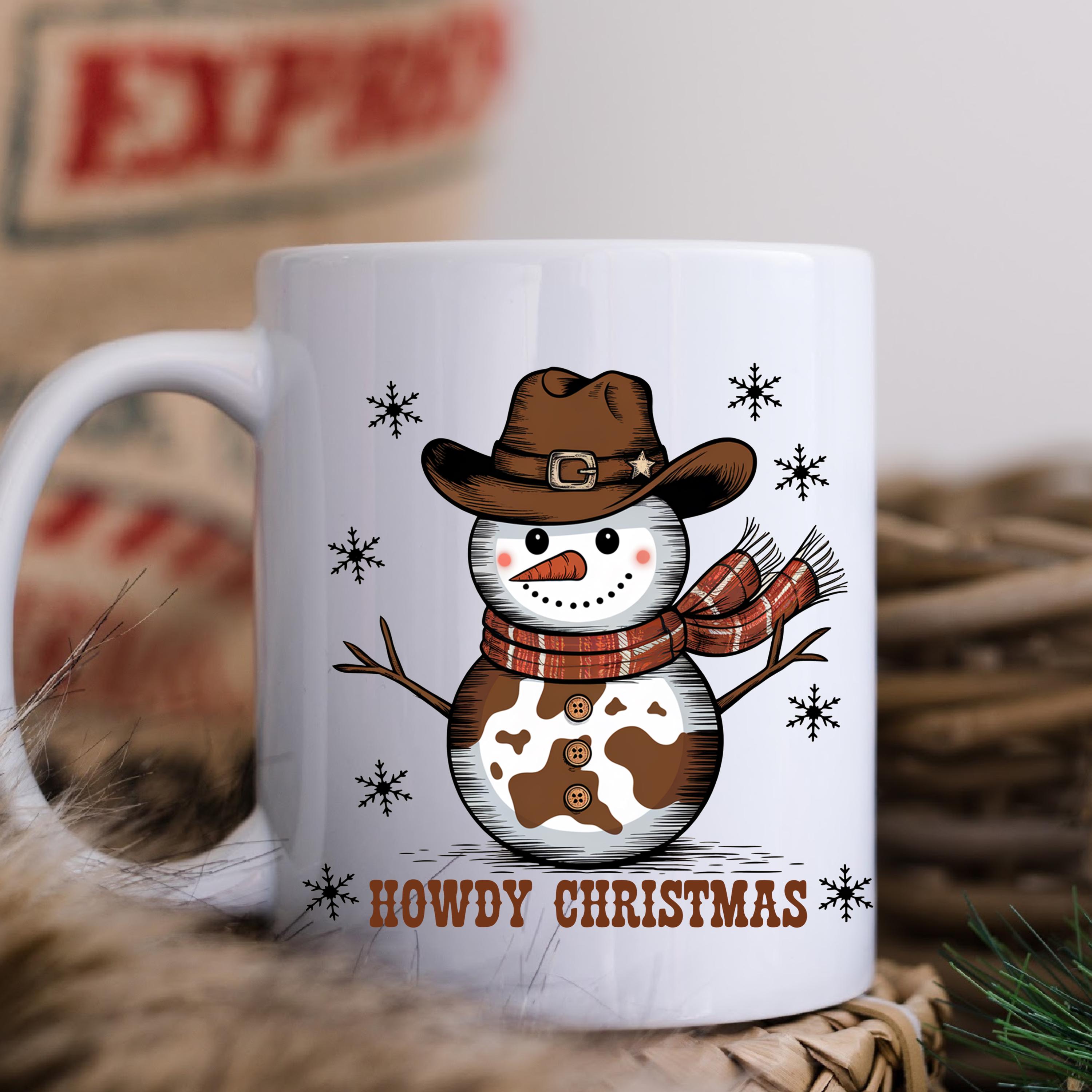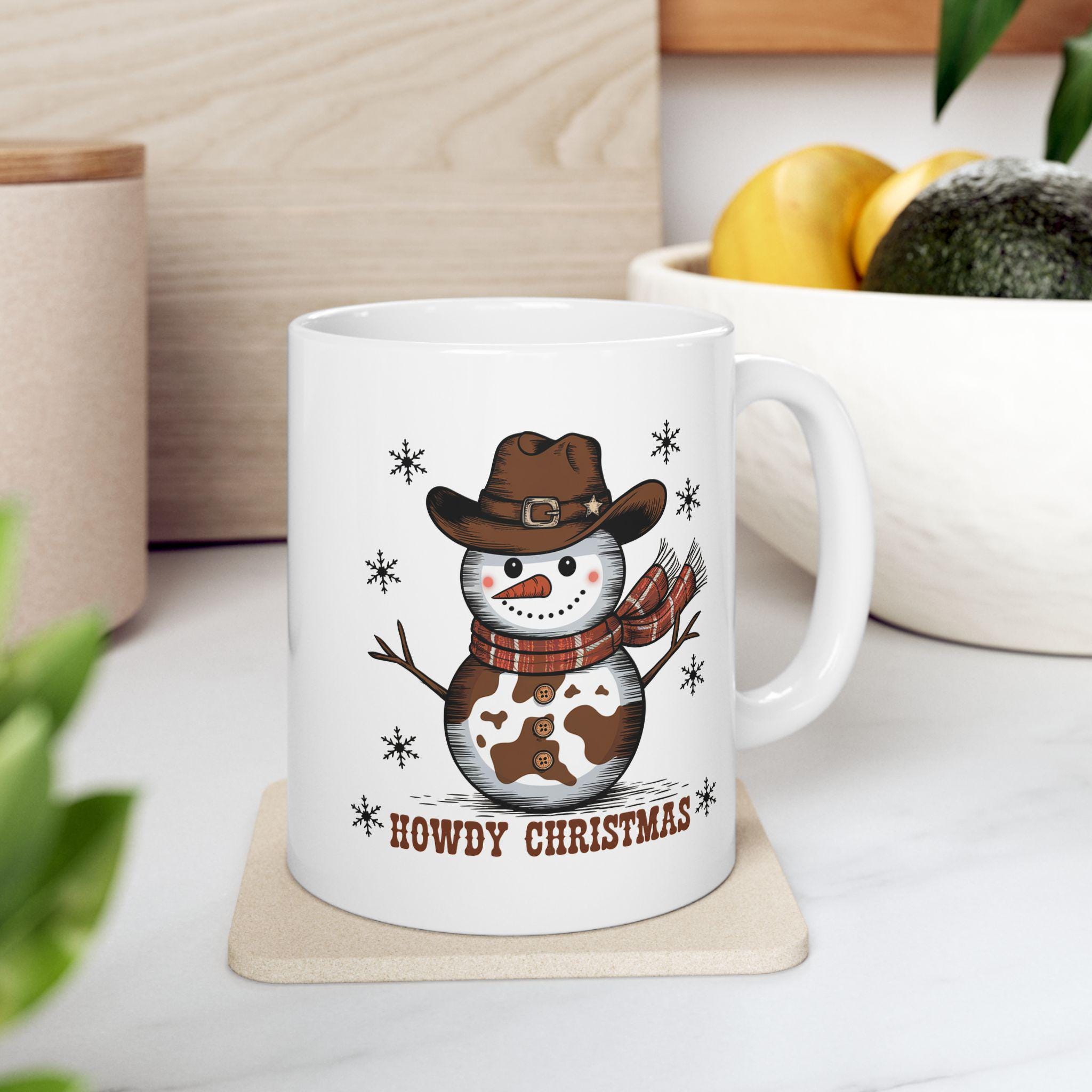 This snowman mug is perfect for anyone who loves cowboy christmas and makes a great gift for cowboy christmas enthusiasts.