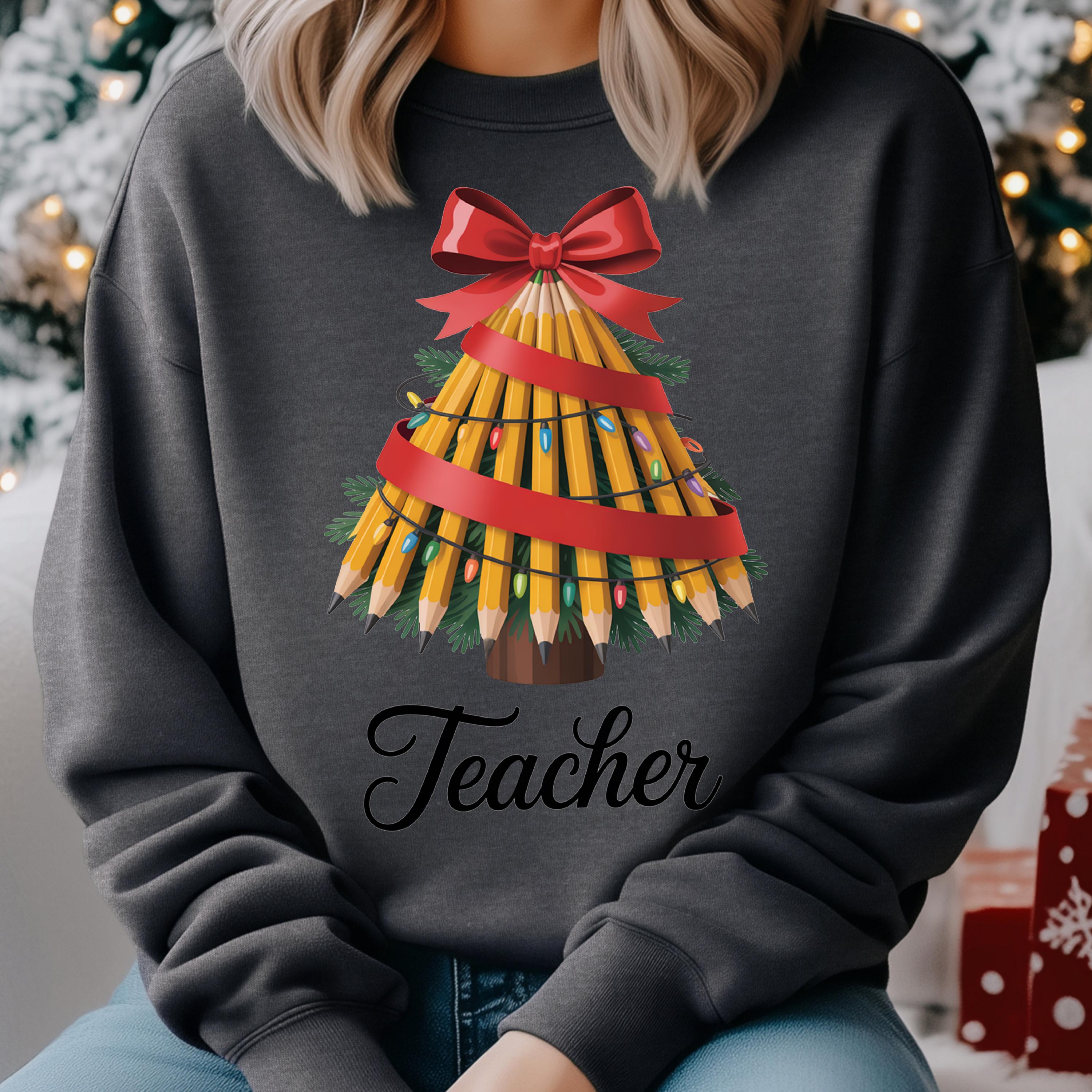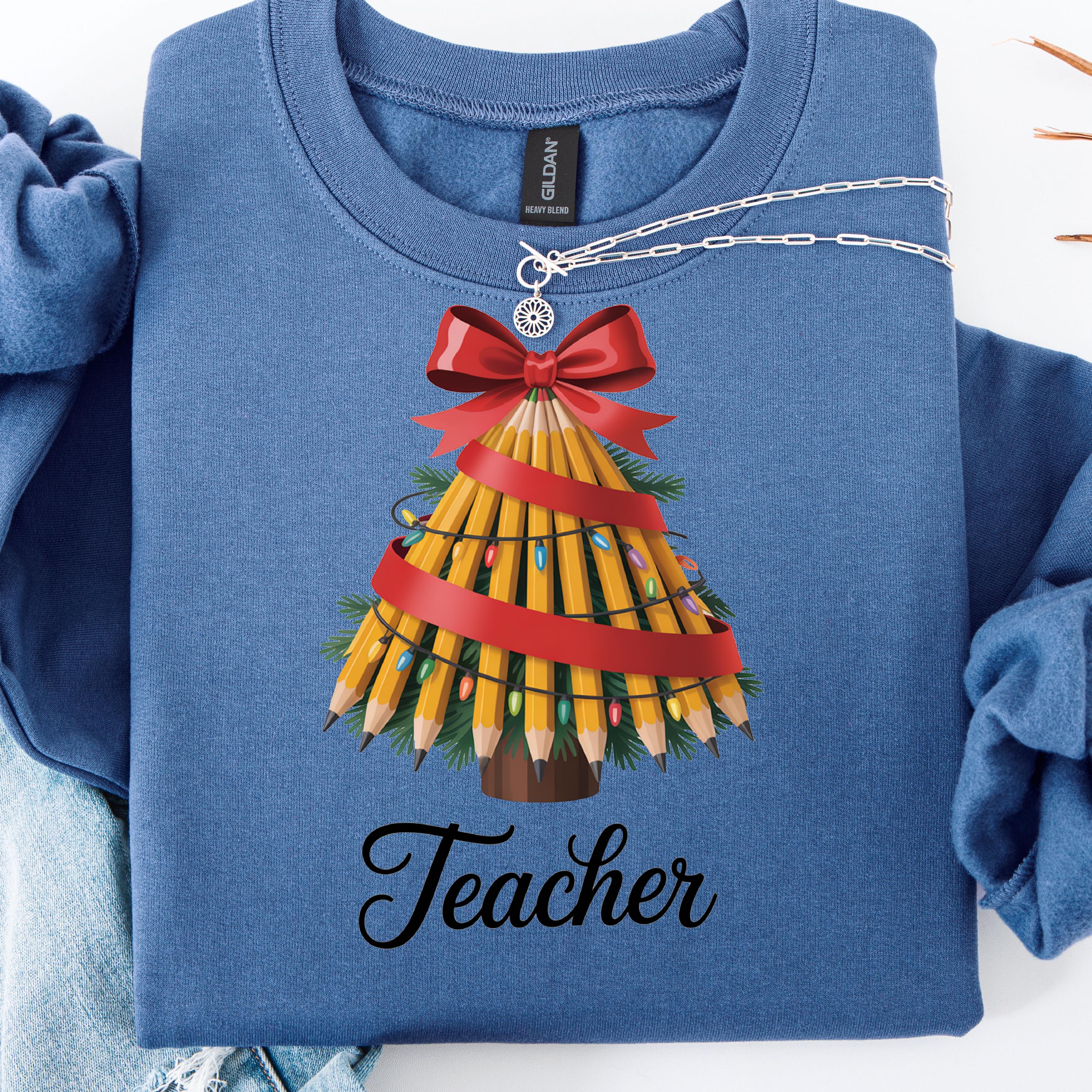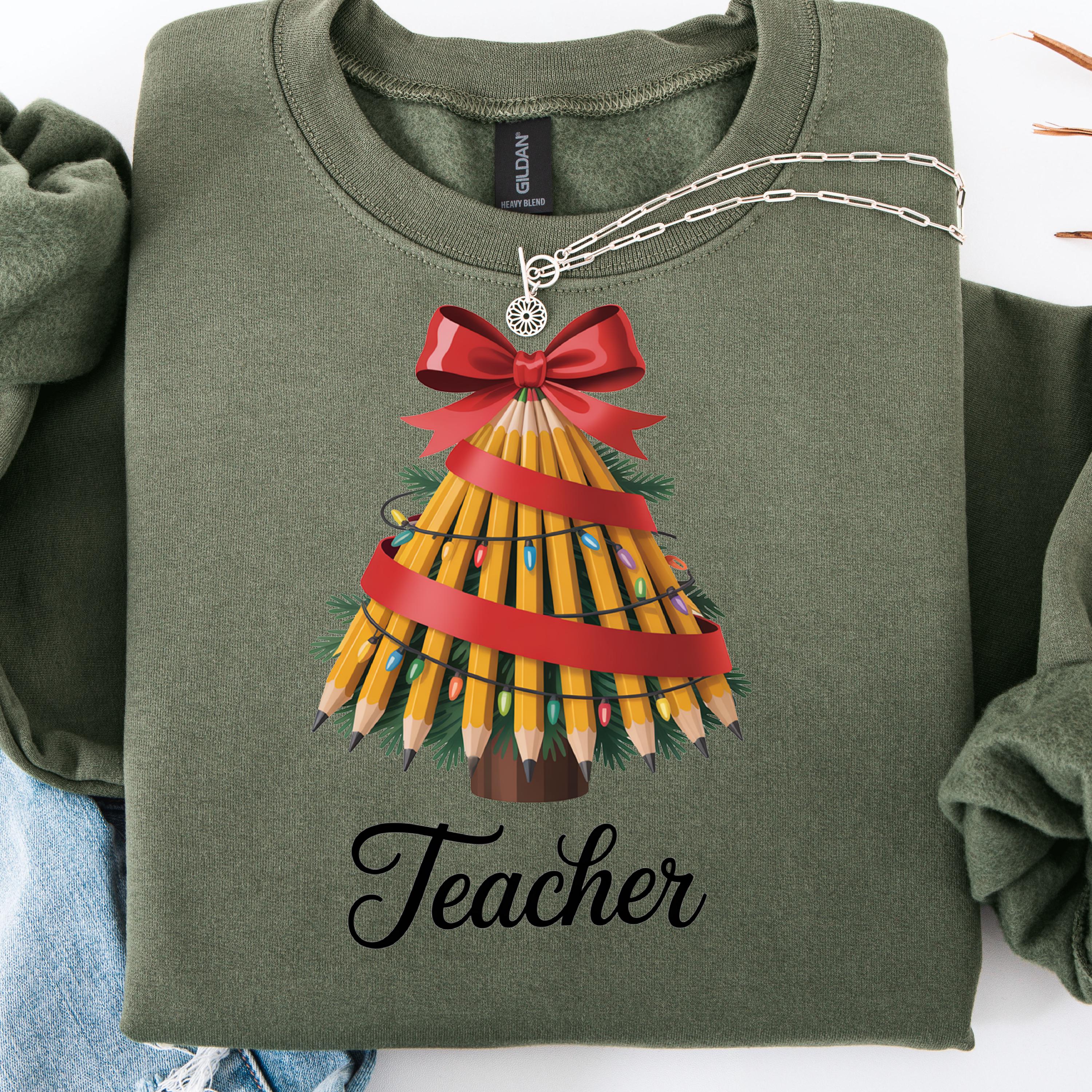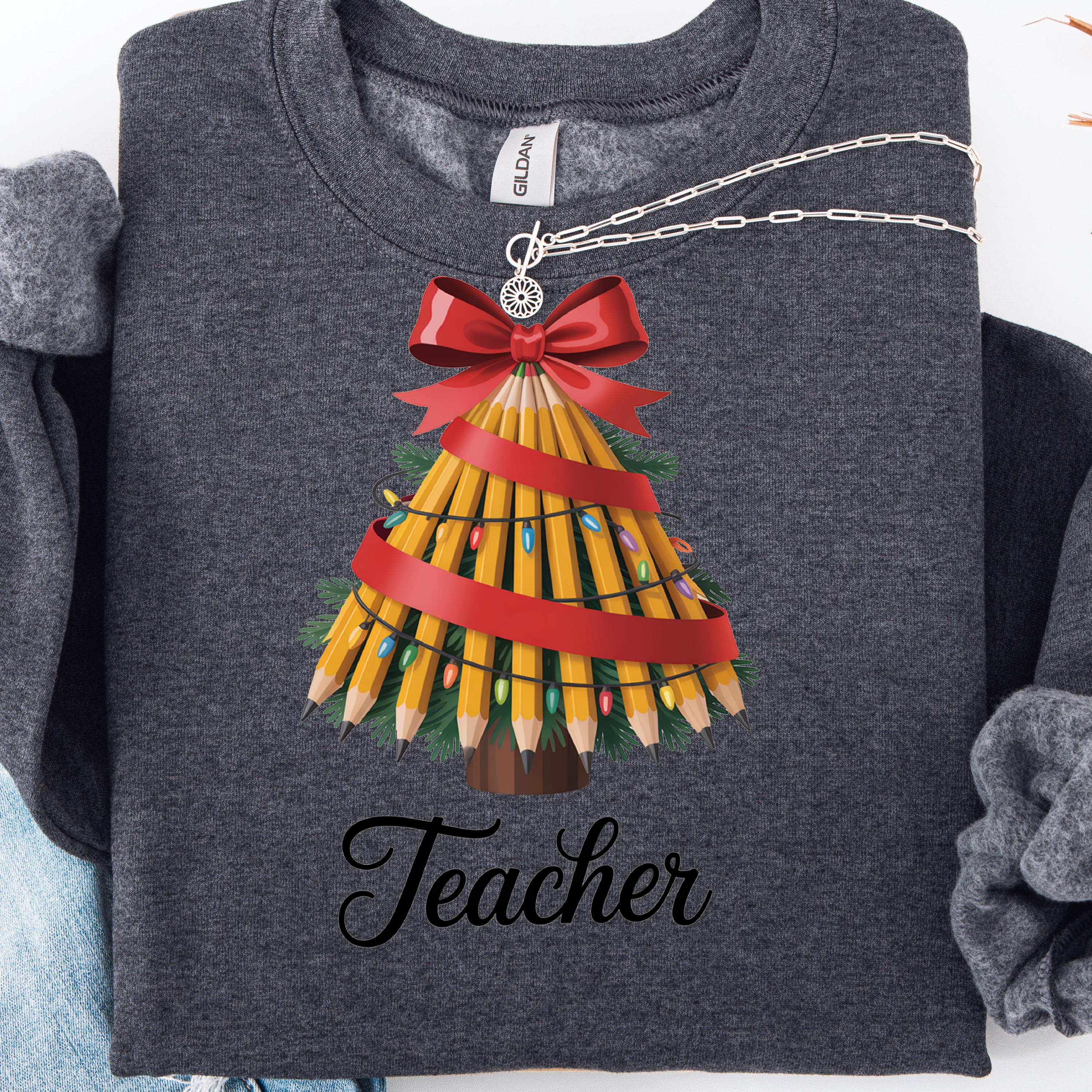 Teacher Christmas Shirt, Pencil Tree sweatshirt for Educators, Holiday Teacher Gift