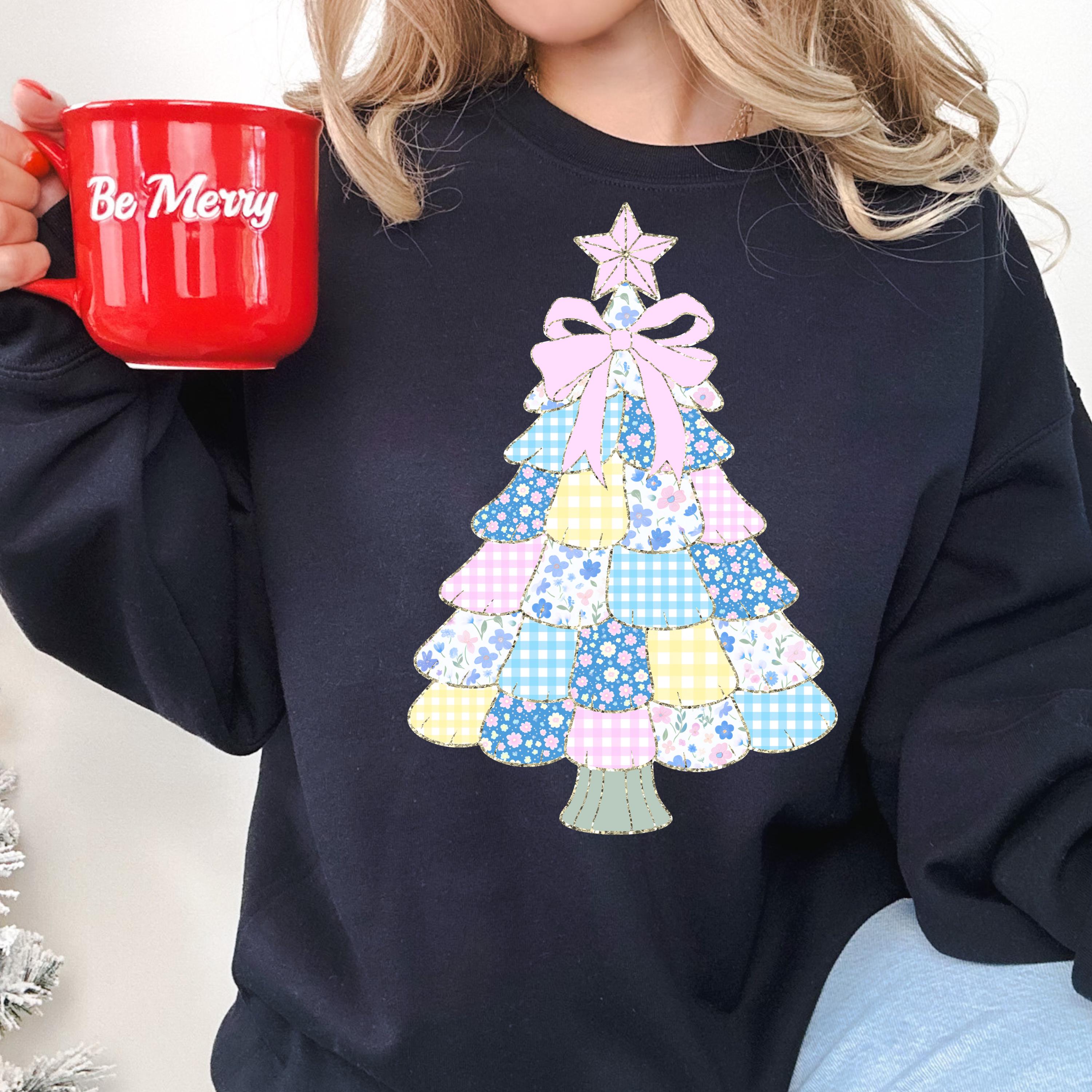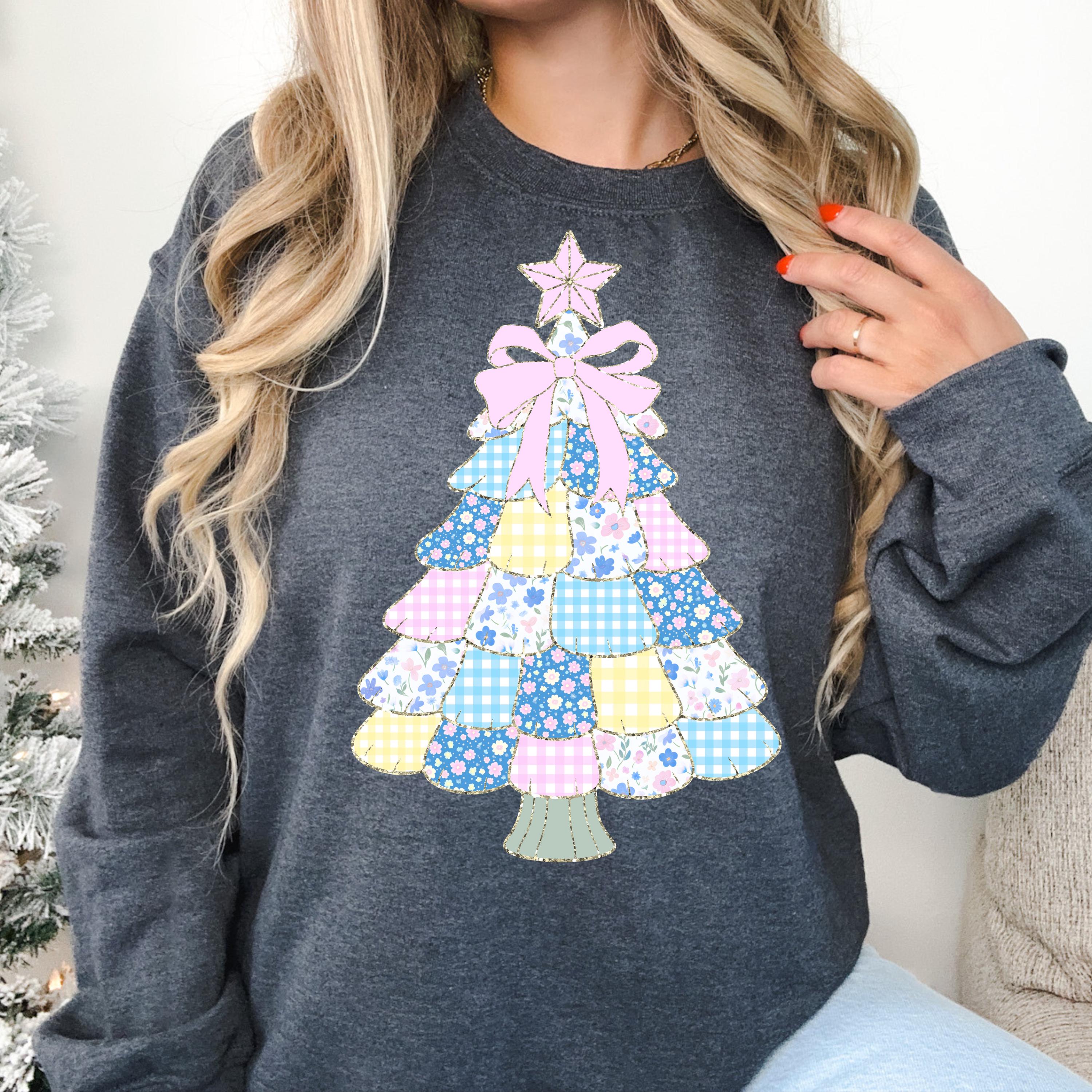 Patchwork Christmas Tree Shirt, Festive Sweater for Holiday Xmas Tree Gift