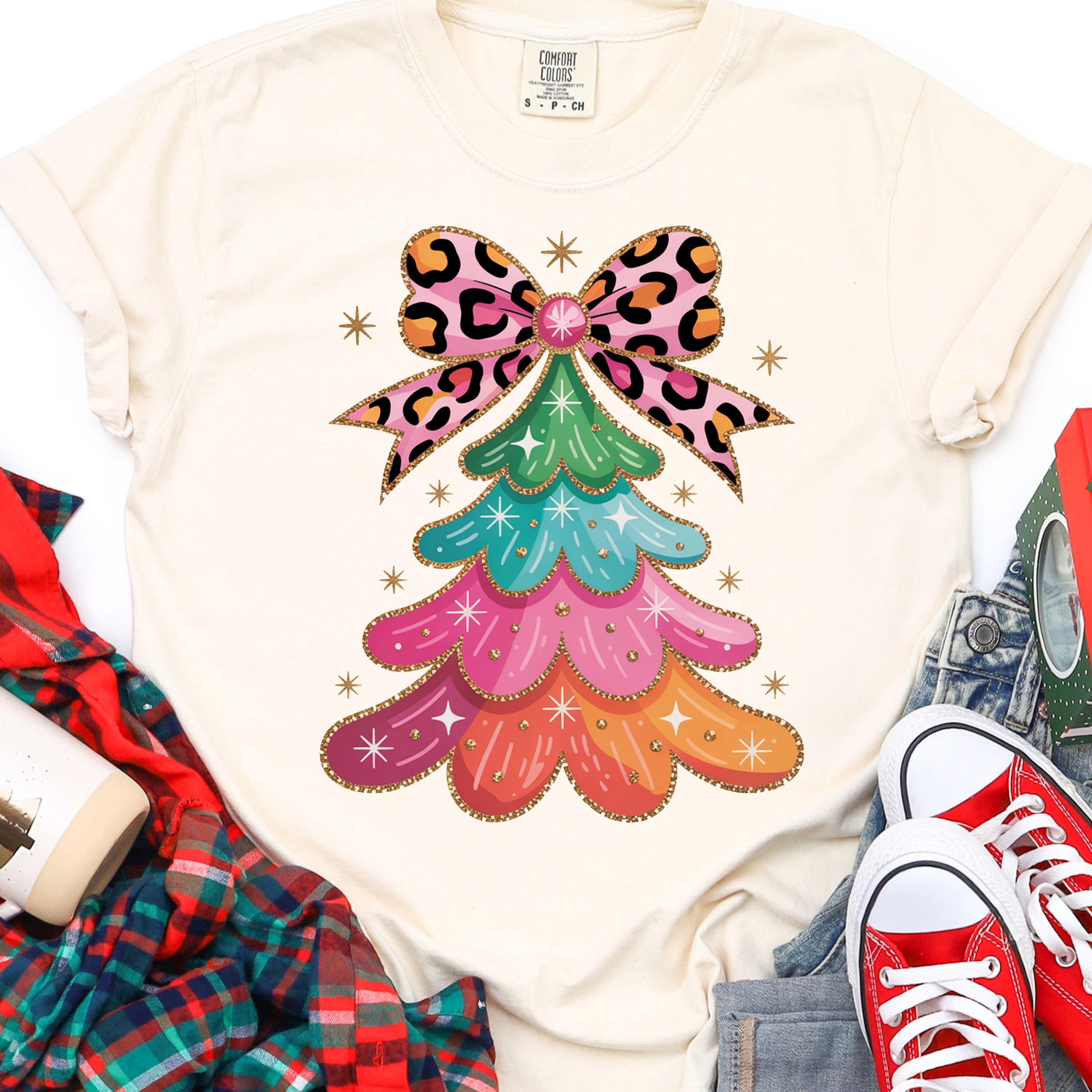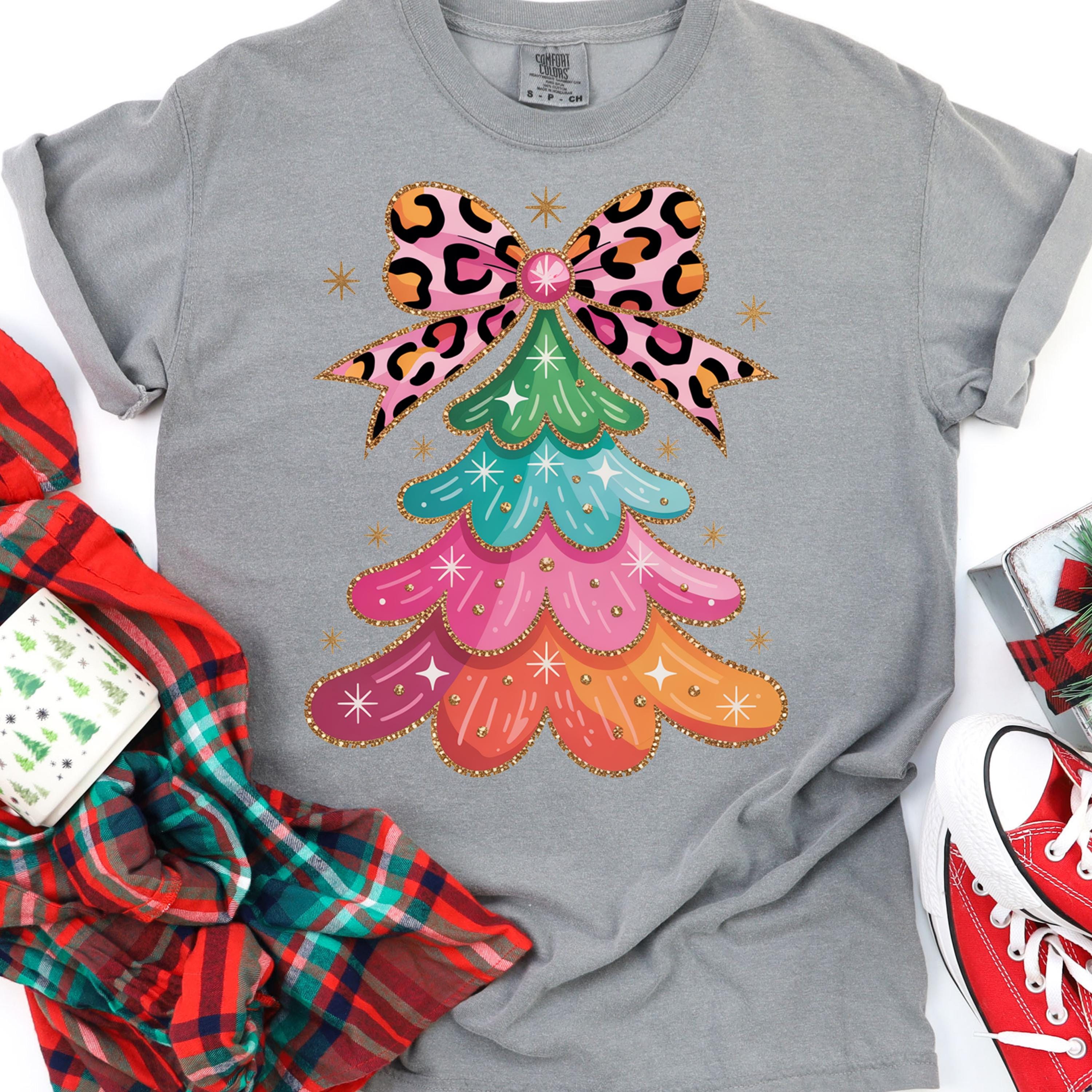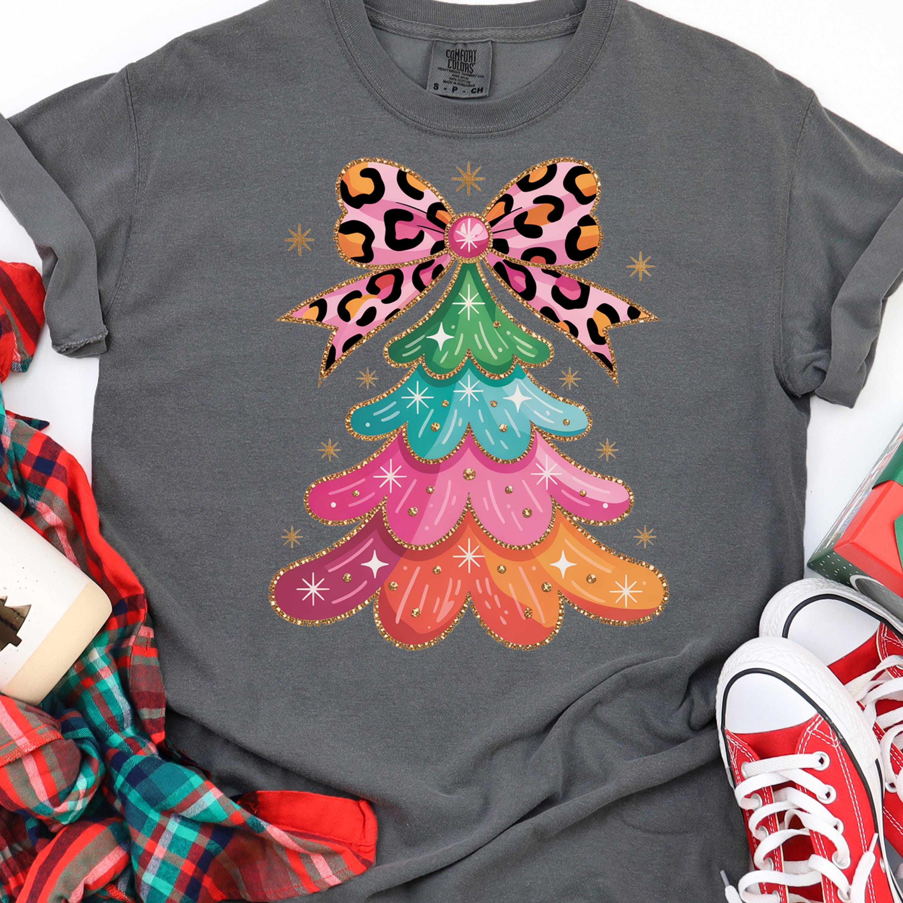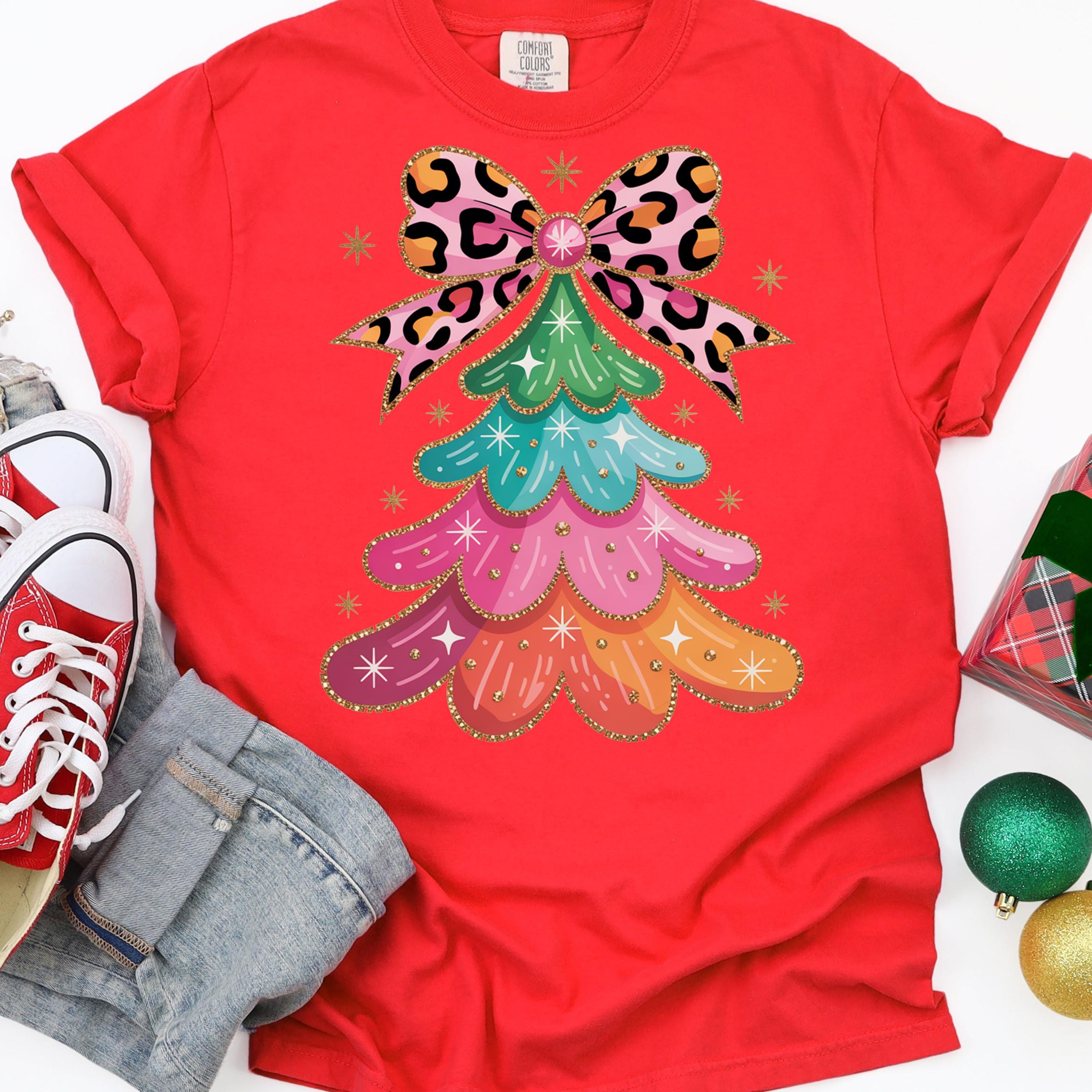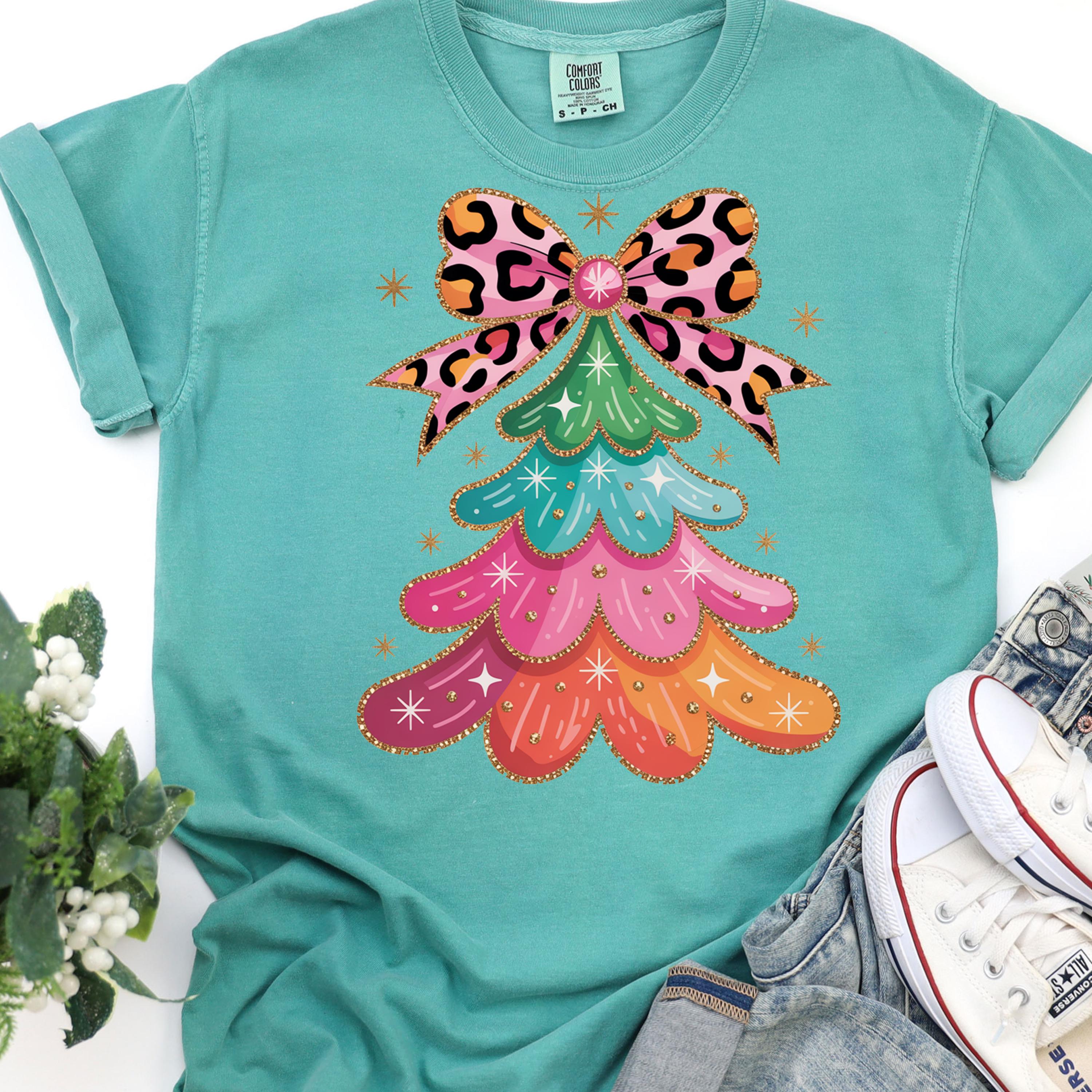 Leopard Bow Christmas Tree Shirt - Holiday Graphic Tee