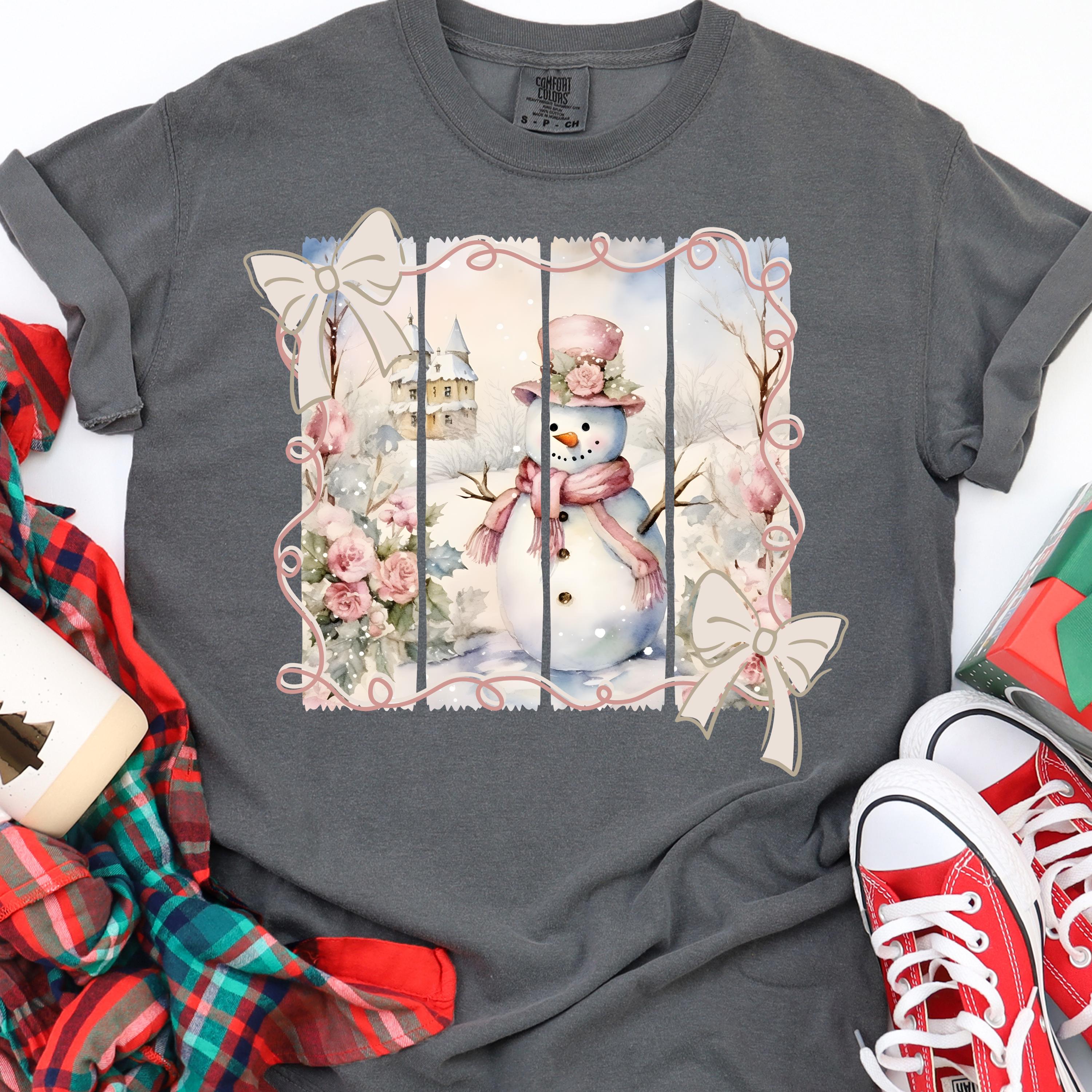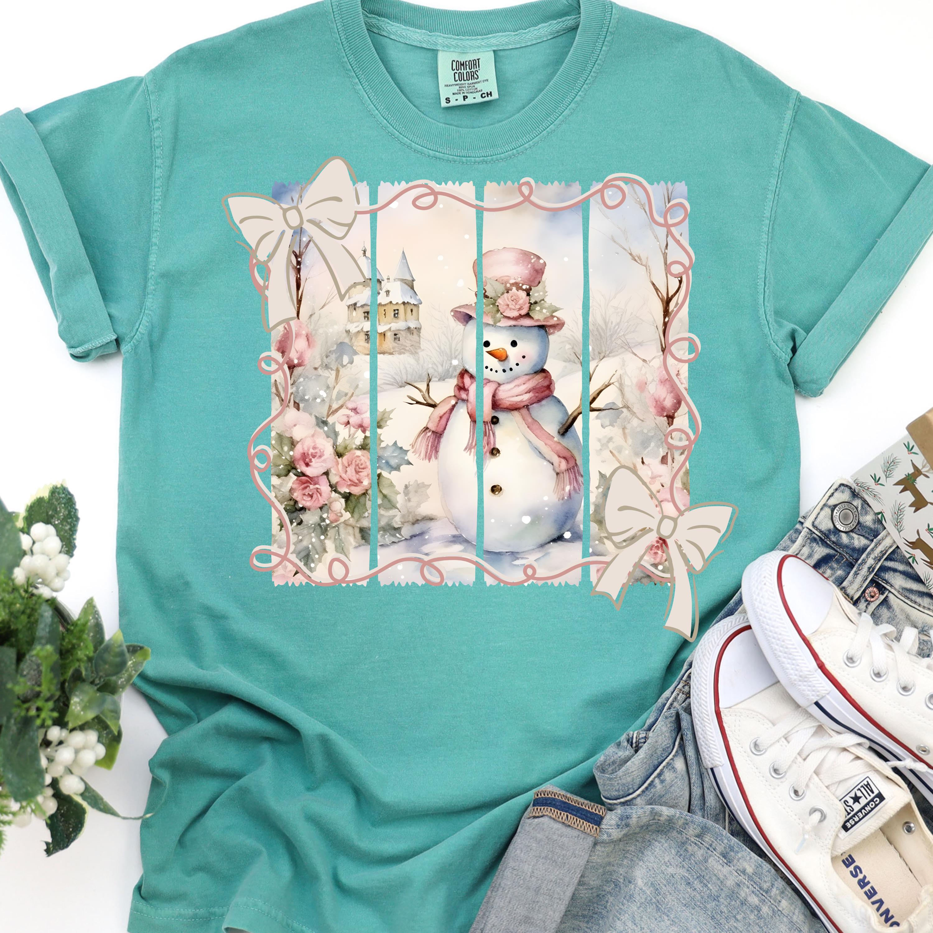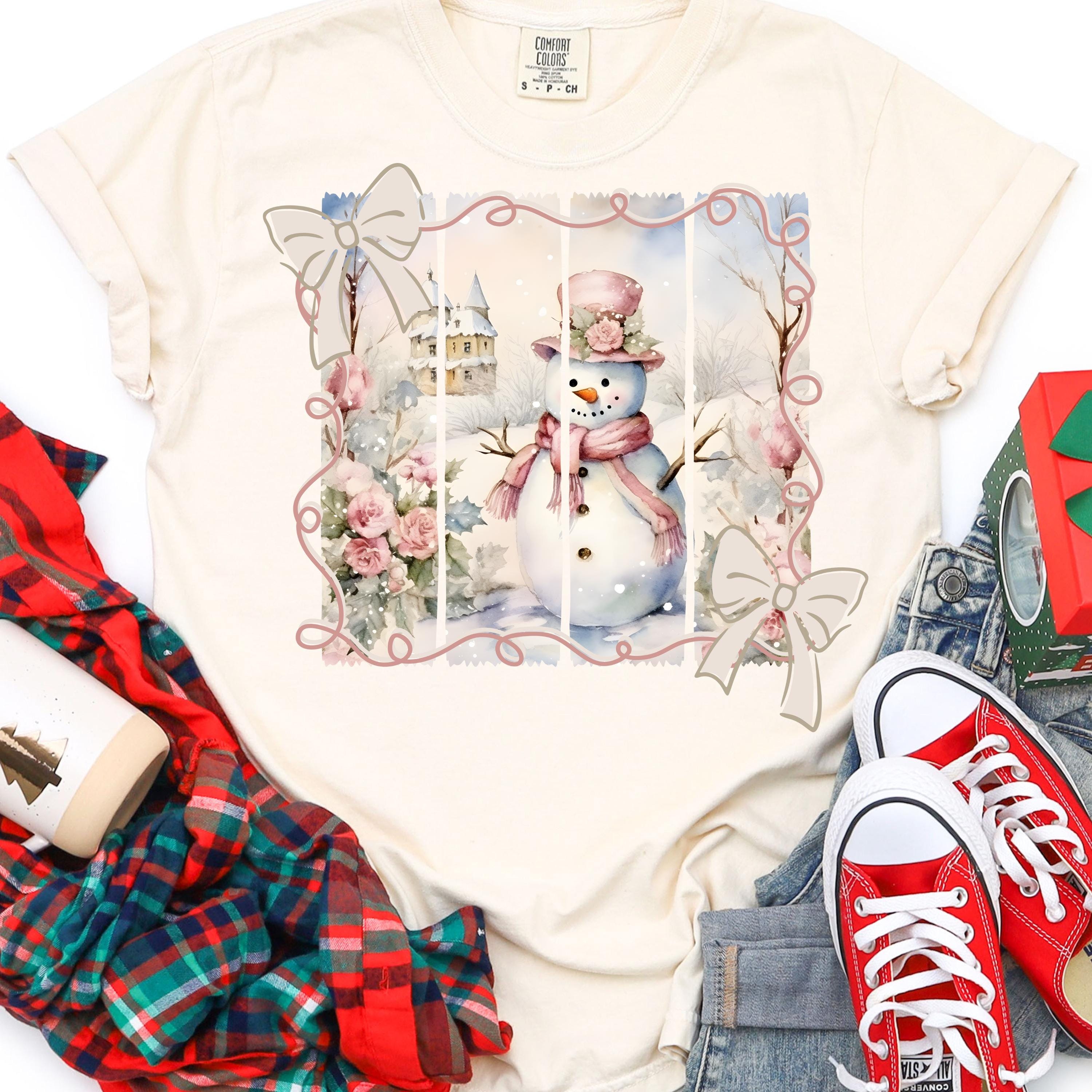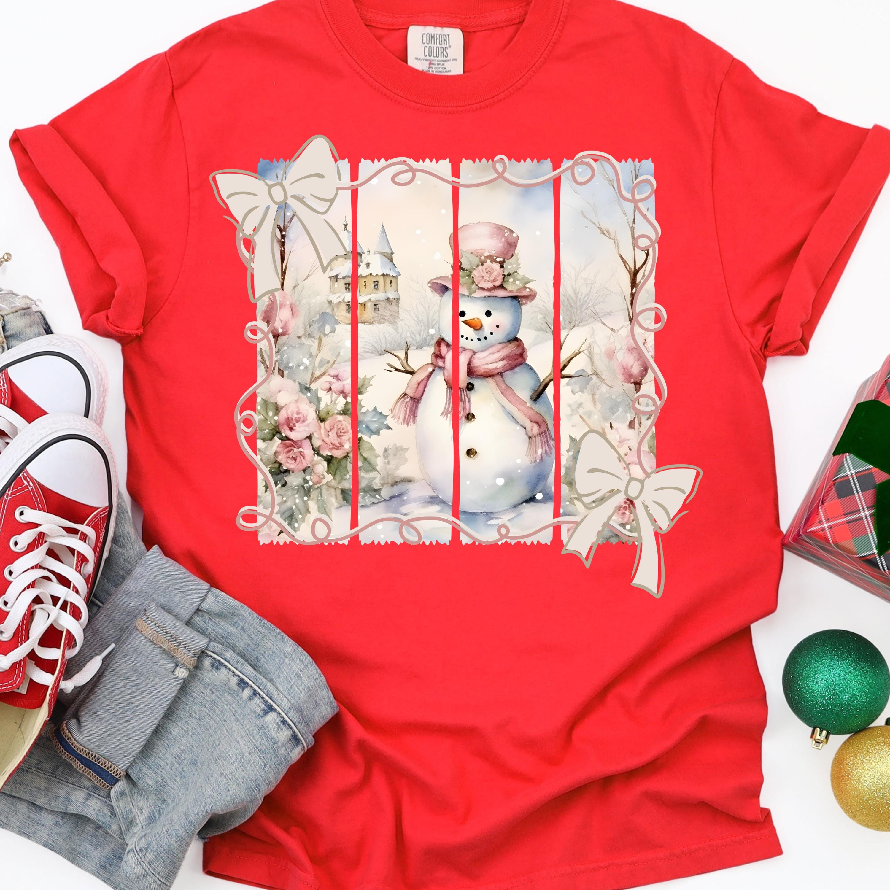 Coquette Snowman Christmas Shirt, Festive Tee for Winter Wonderland