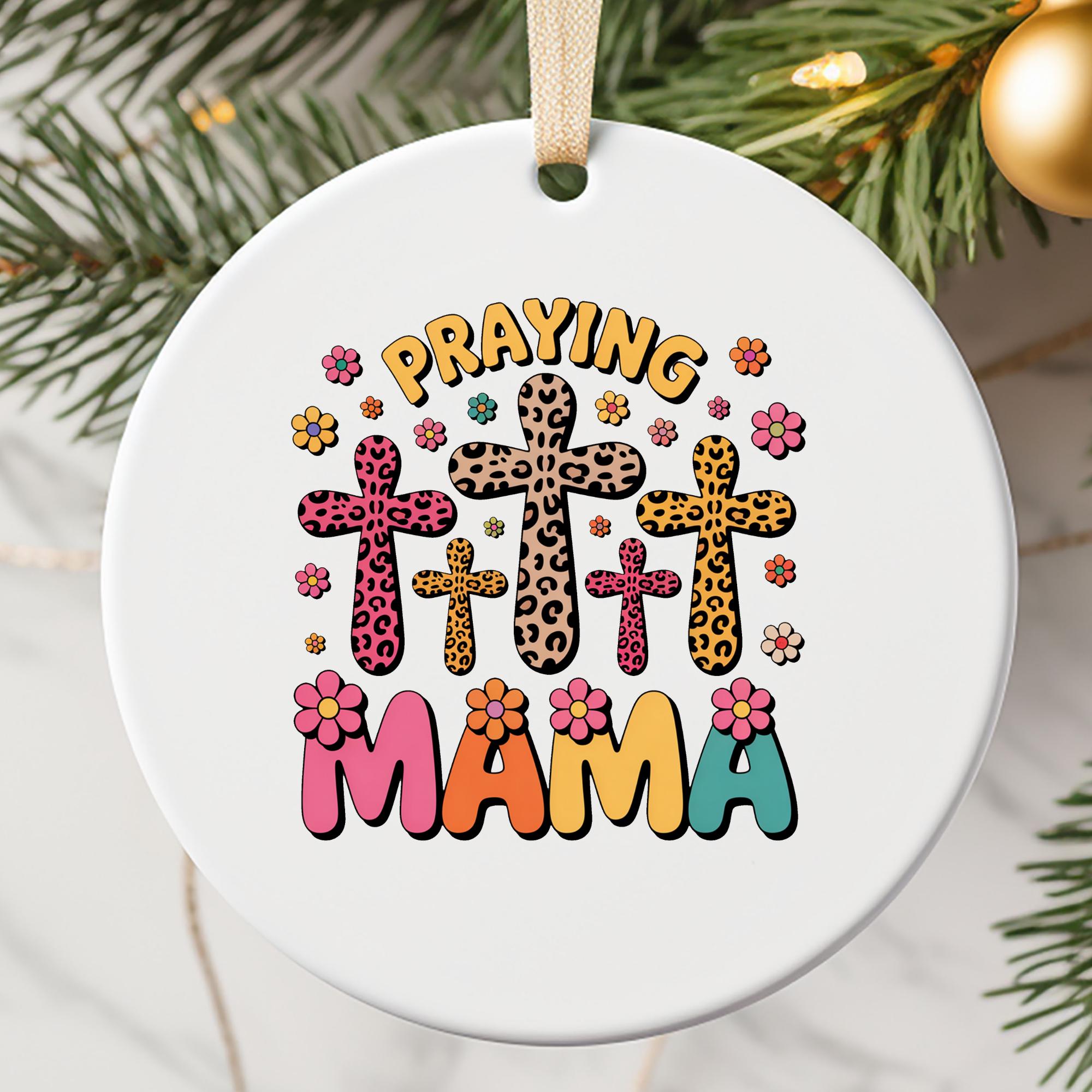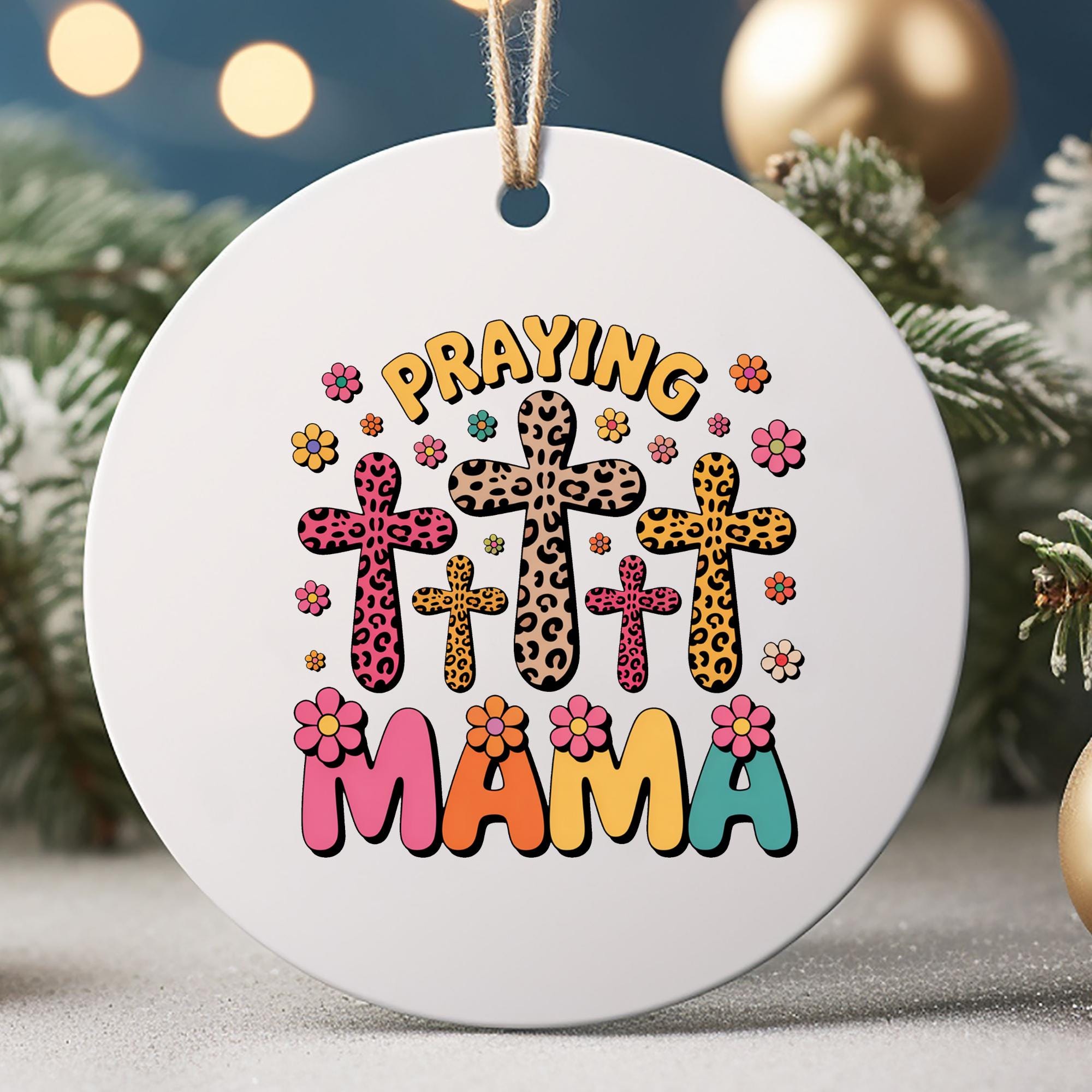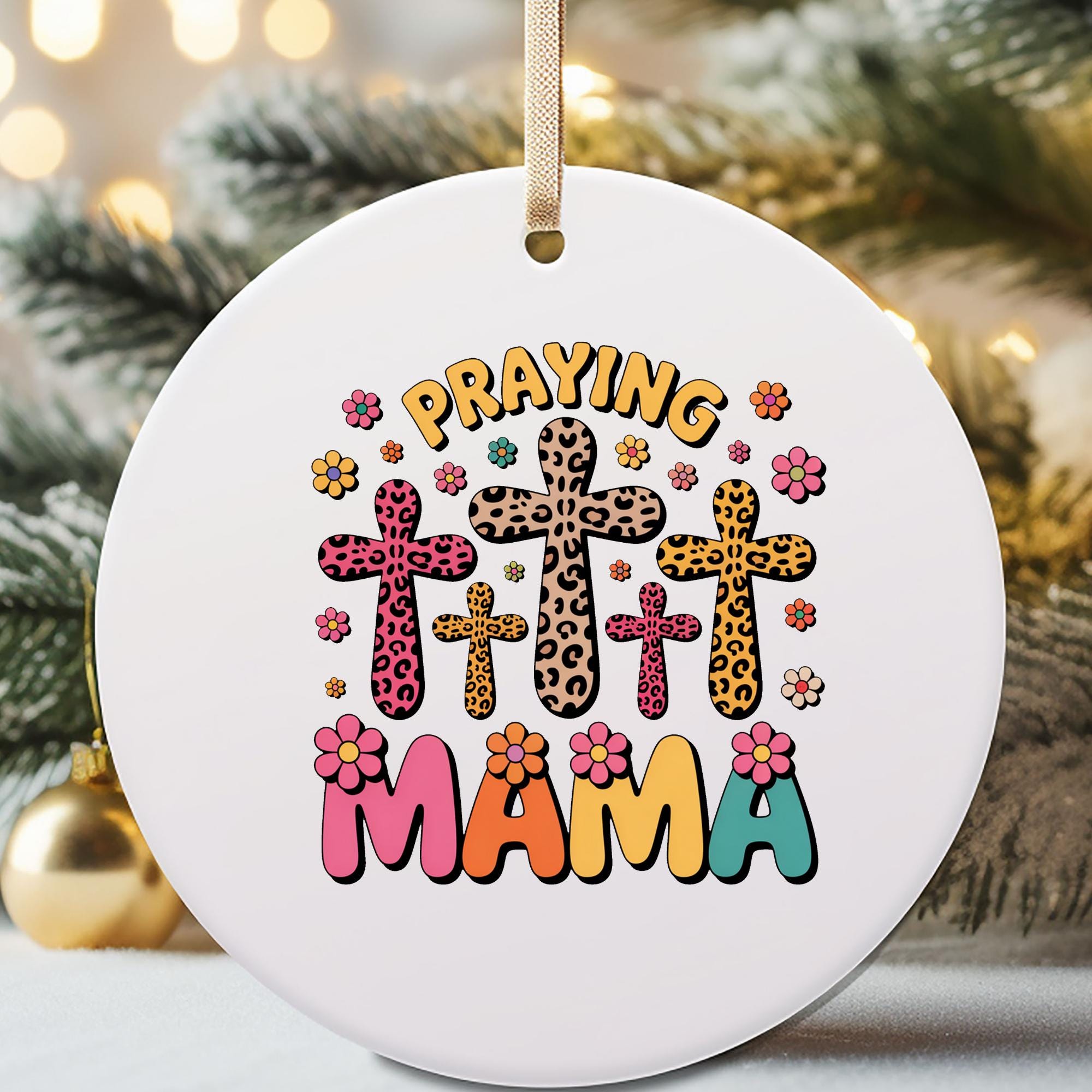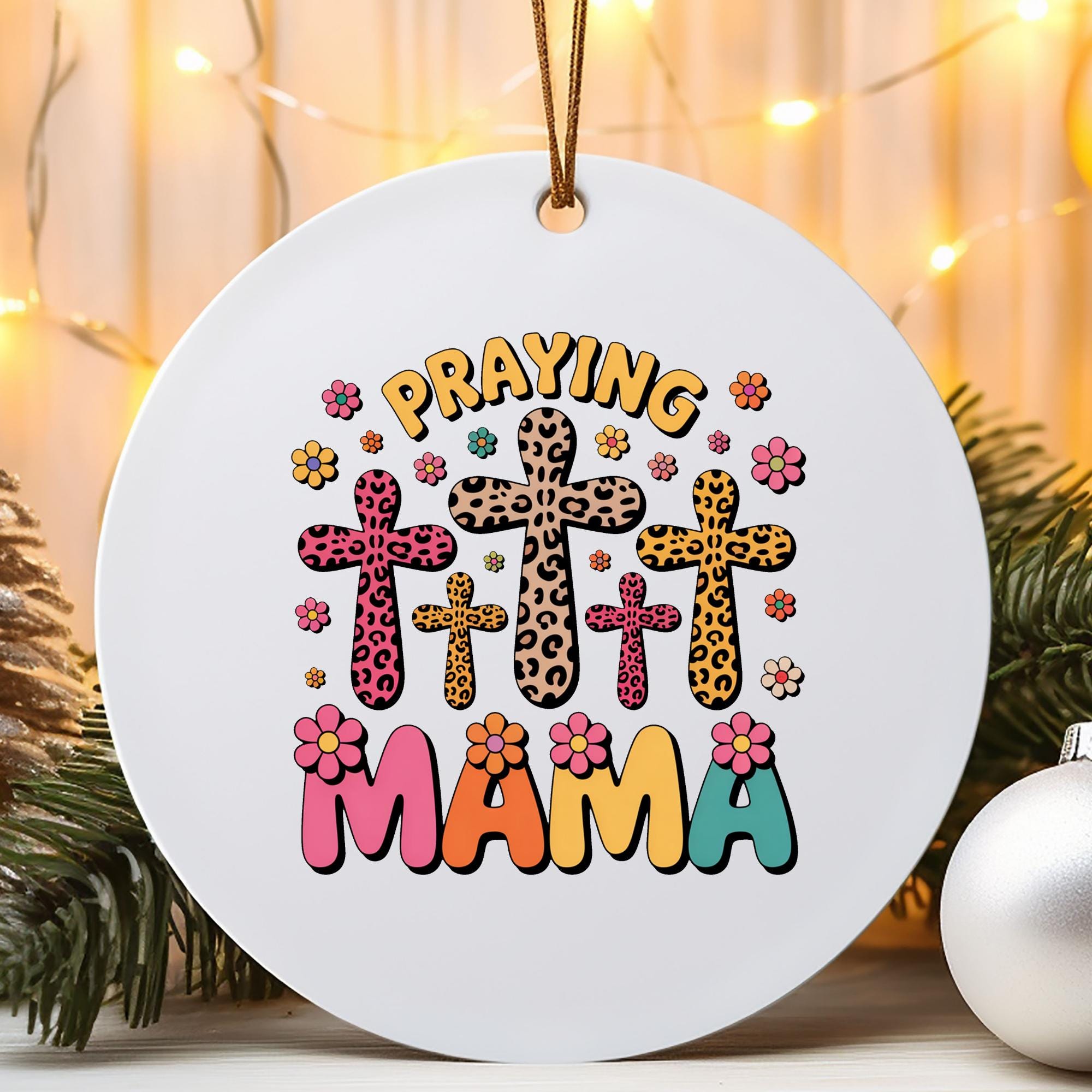 This Leopard Religious Mama ornament is a perfect Christian Mama gift for the holidays. The vibrant colors make a great addition to your Christmas tree. Made from durable aluminum material , this ornament comes with a red ribbon for hanging.