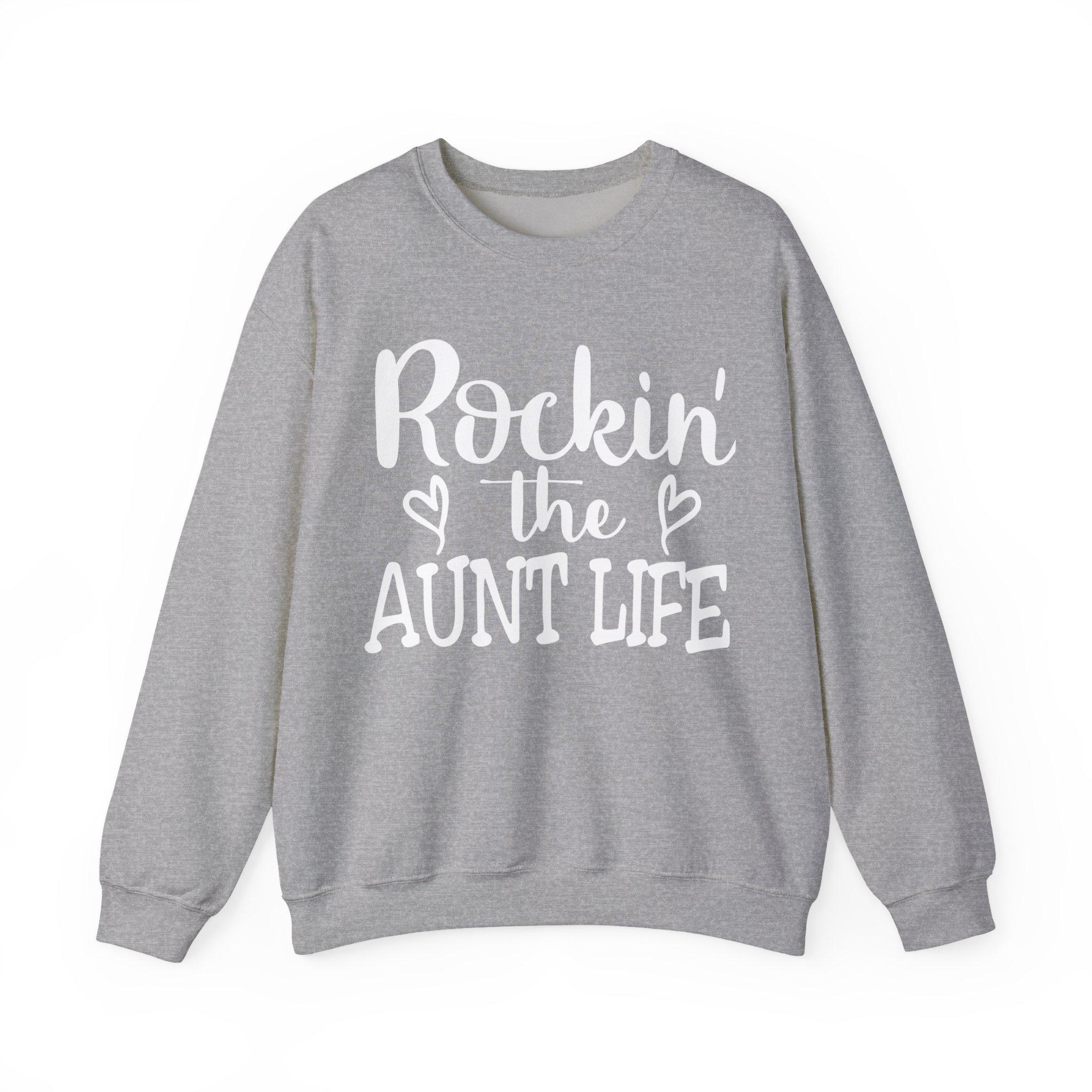 Rockin the Aunt life sweatshirt, perfect as a gift for Aunt on her birthday or Christmas. This heavy blend crewneck sweatshirt provides comfort and durability, with a classic fit and clean-cut style. Ideal for adults and relevant for birthdays and Christmas celebrations.
