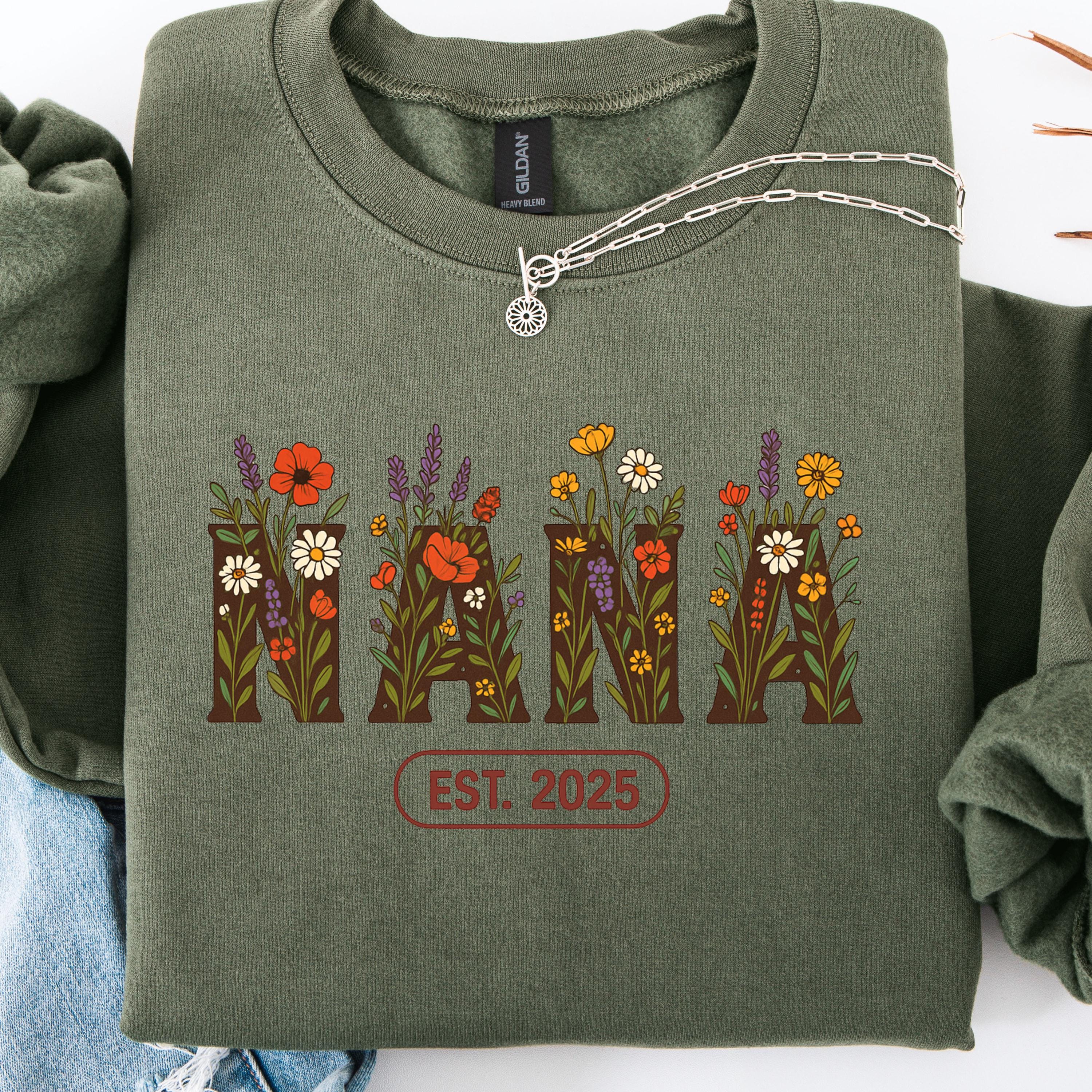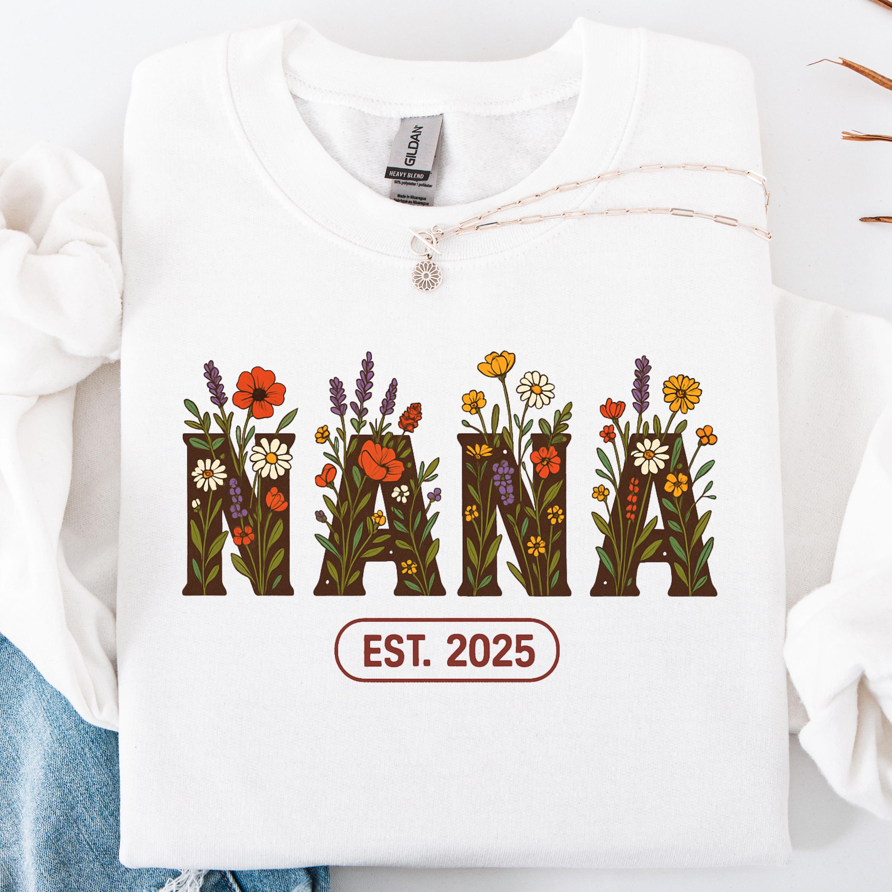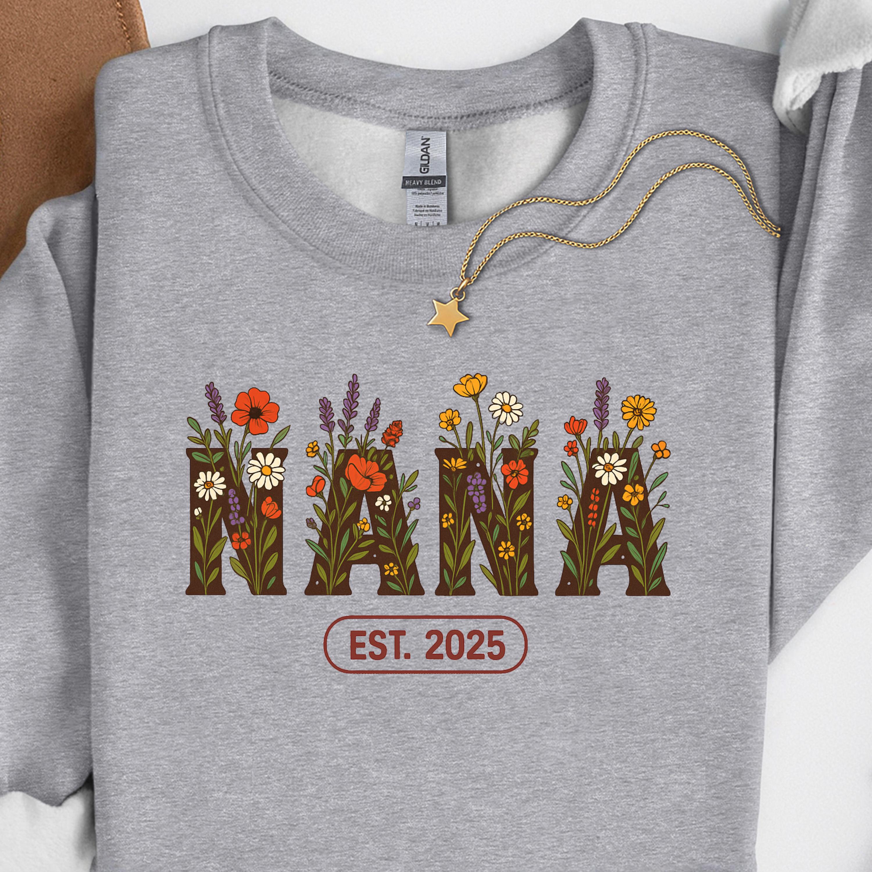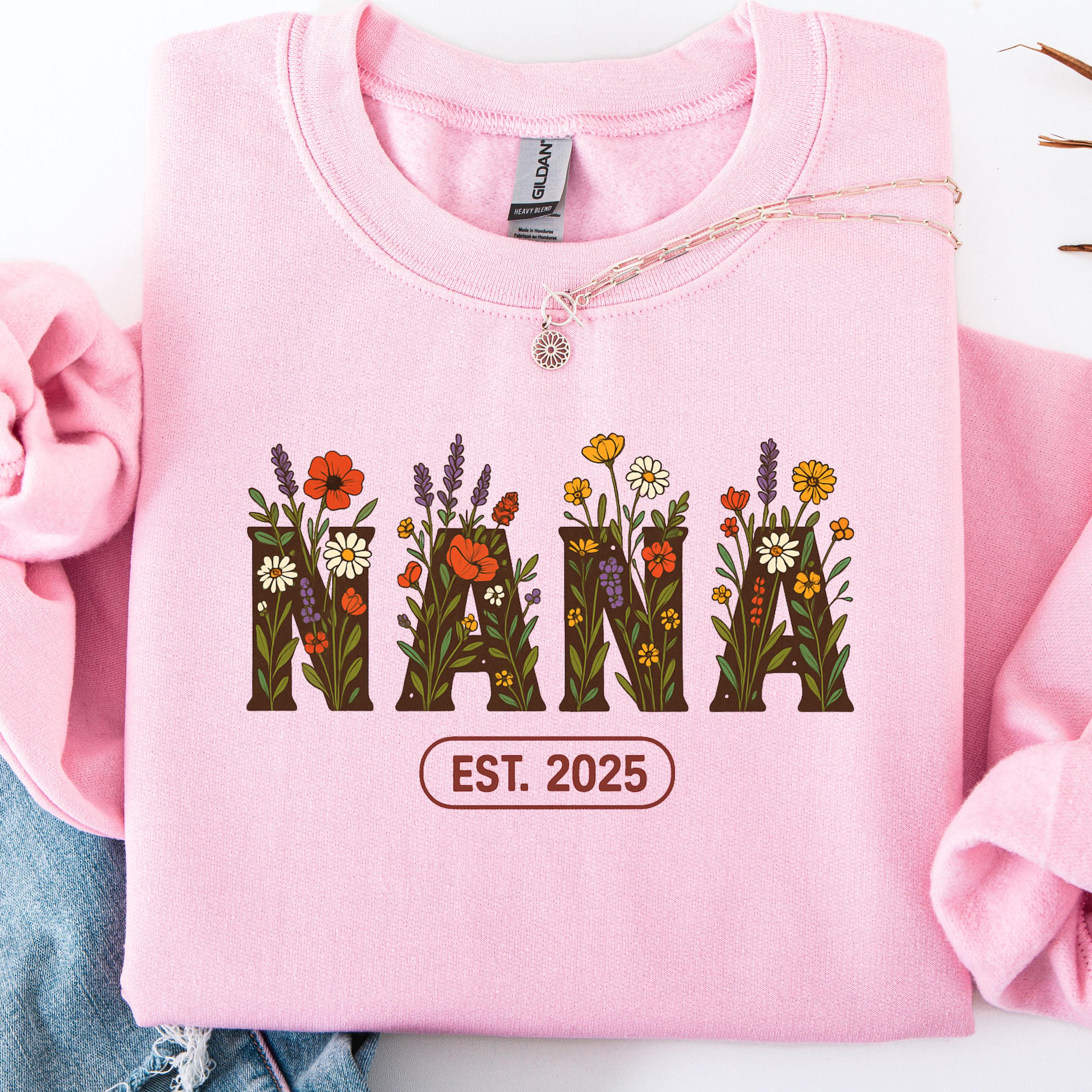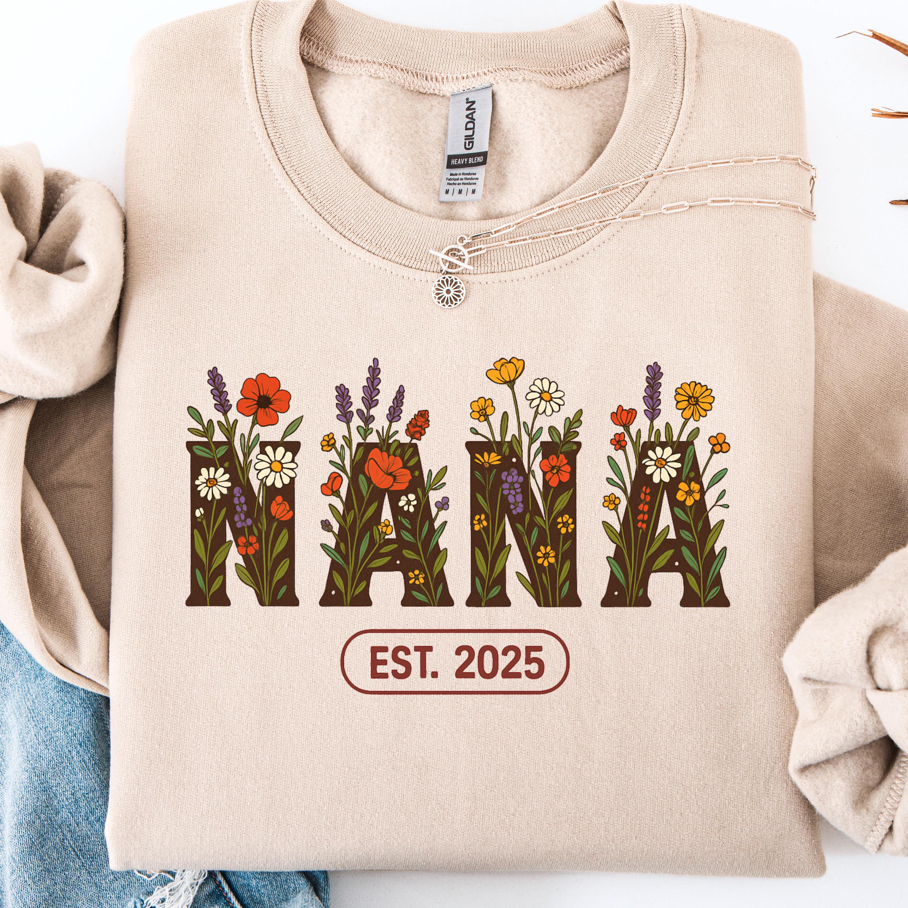 Wildflower Nana Sweatshirt, Custom Est. 2025, Grandma Gift