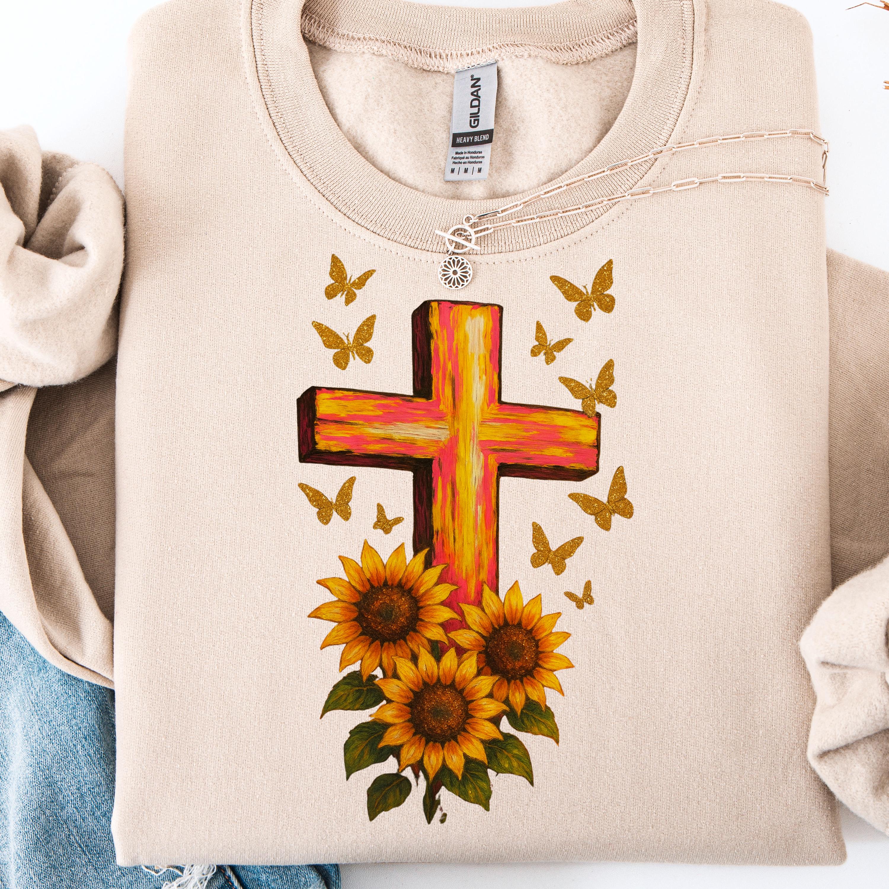 Christian Sunflower Cross Sweatshirt, Religious Faith Apparel
