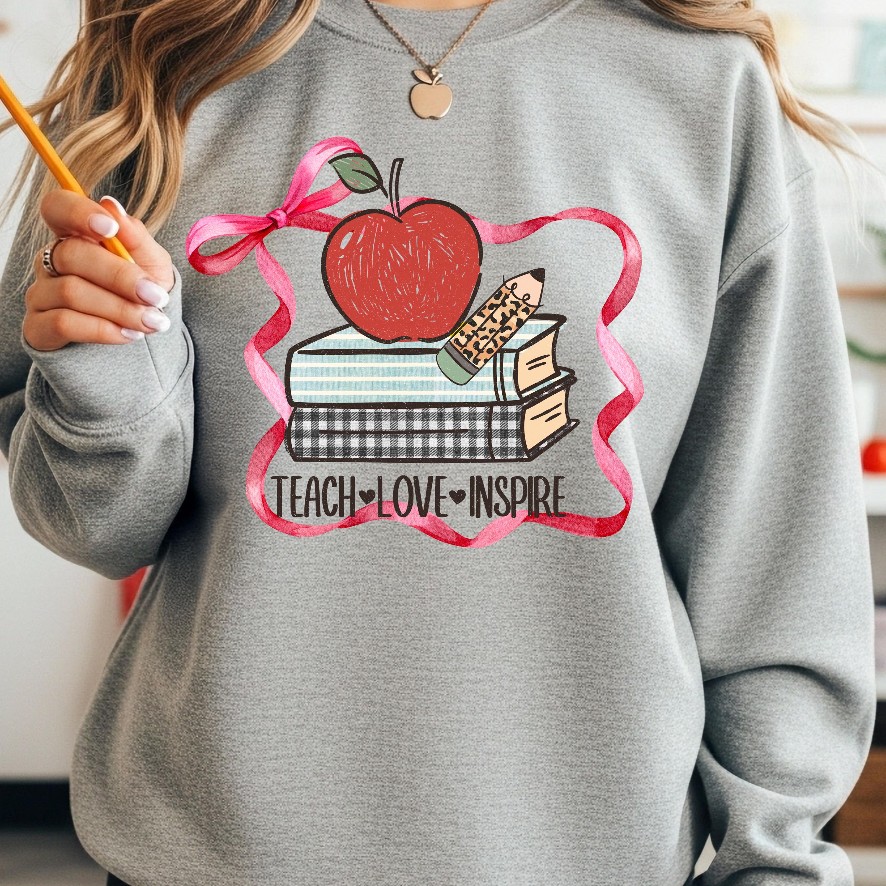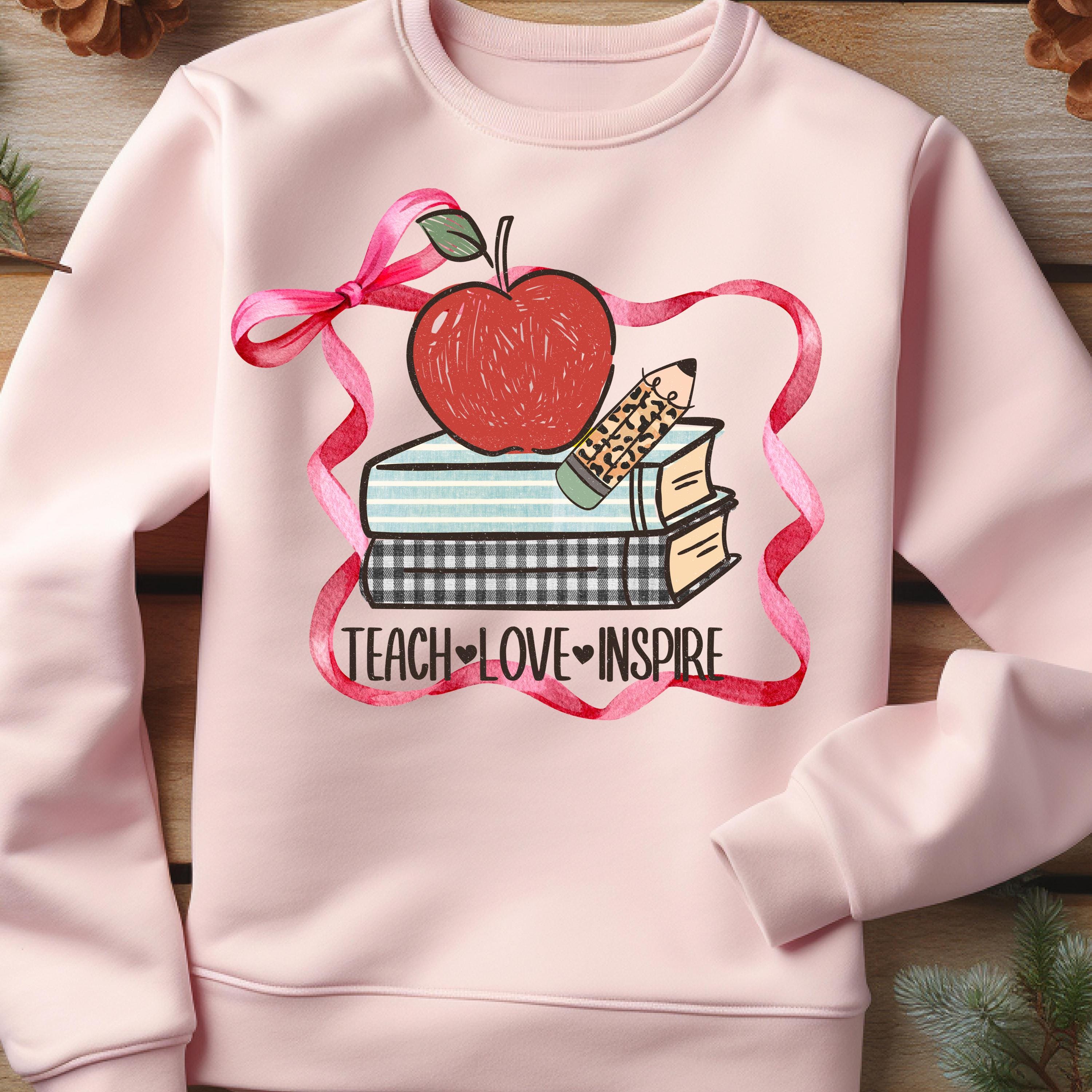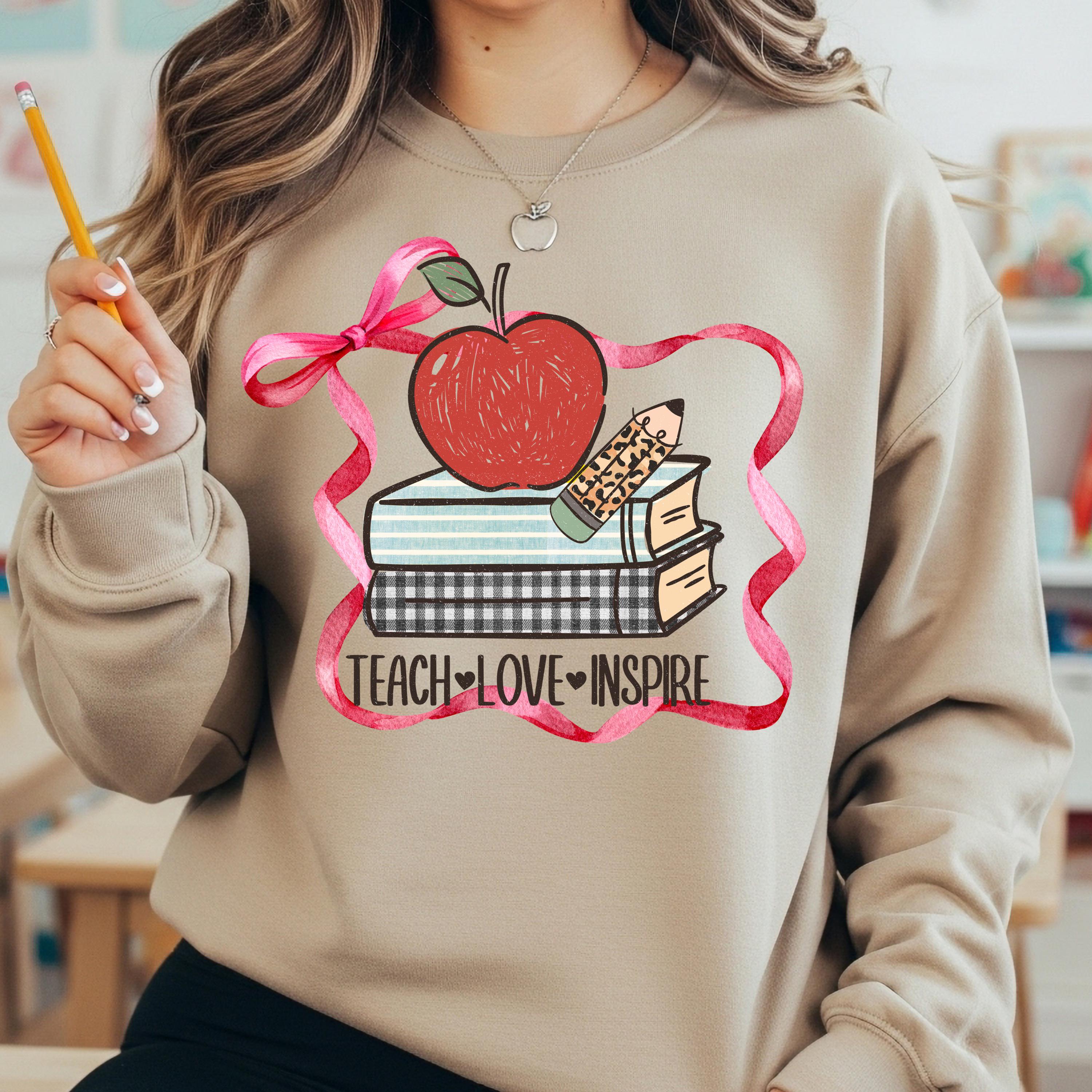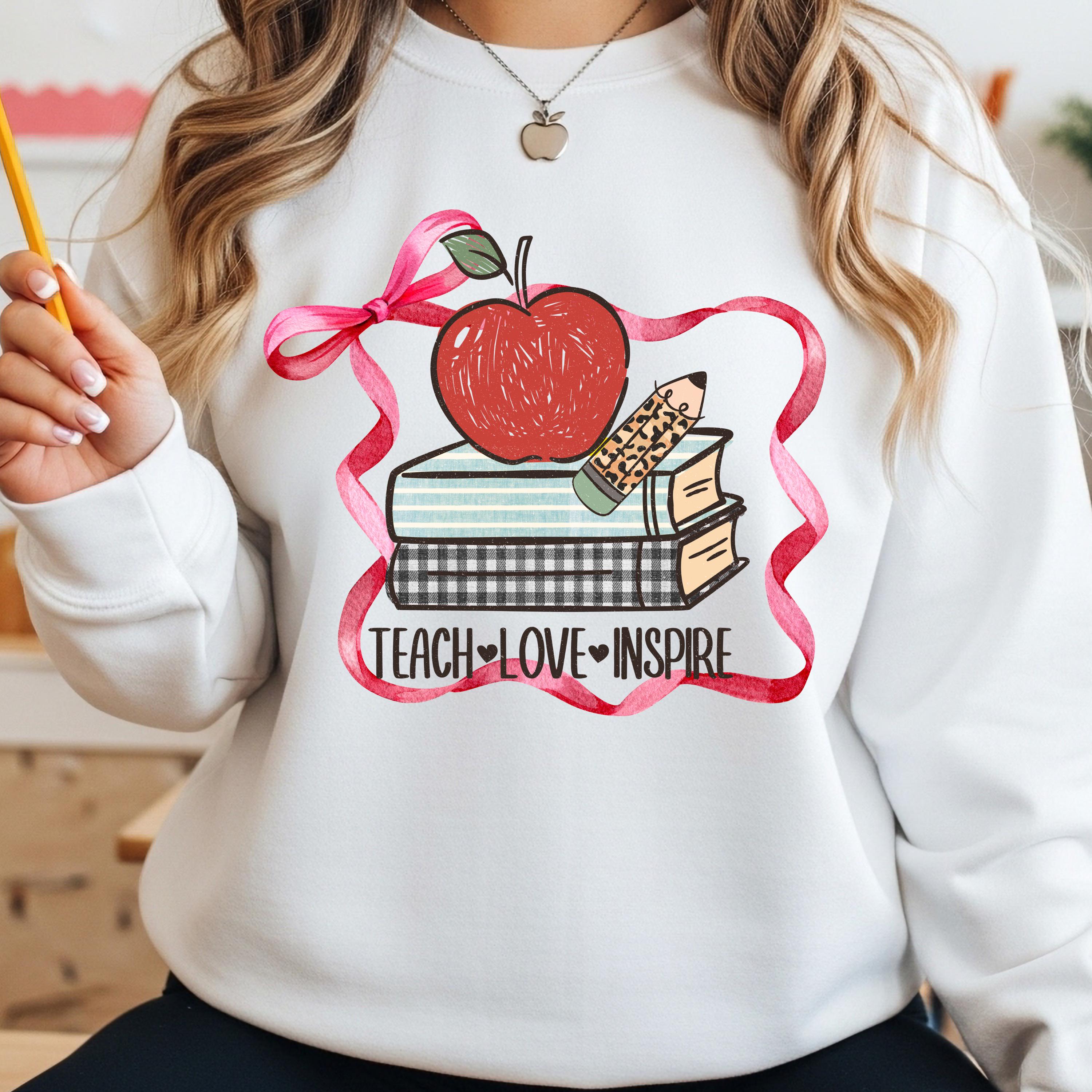 Teacher Inspiration Shirt, Teach Love Inspire Tee for Educators, Apple Pencil T-Shirt