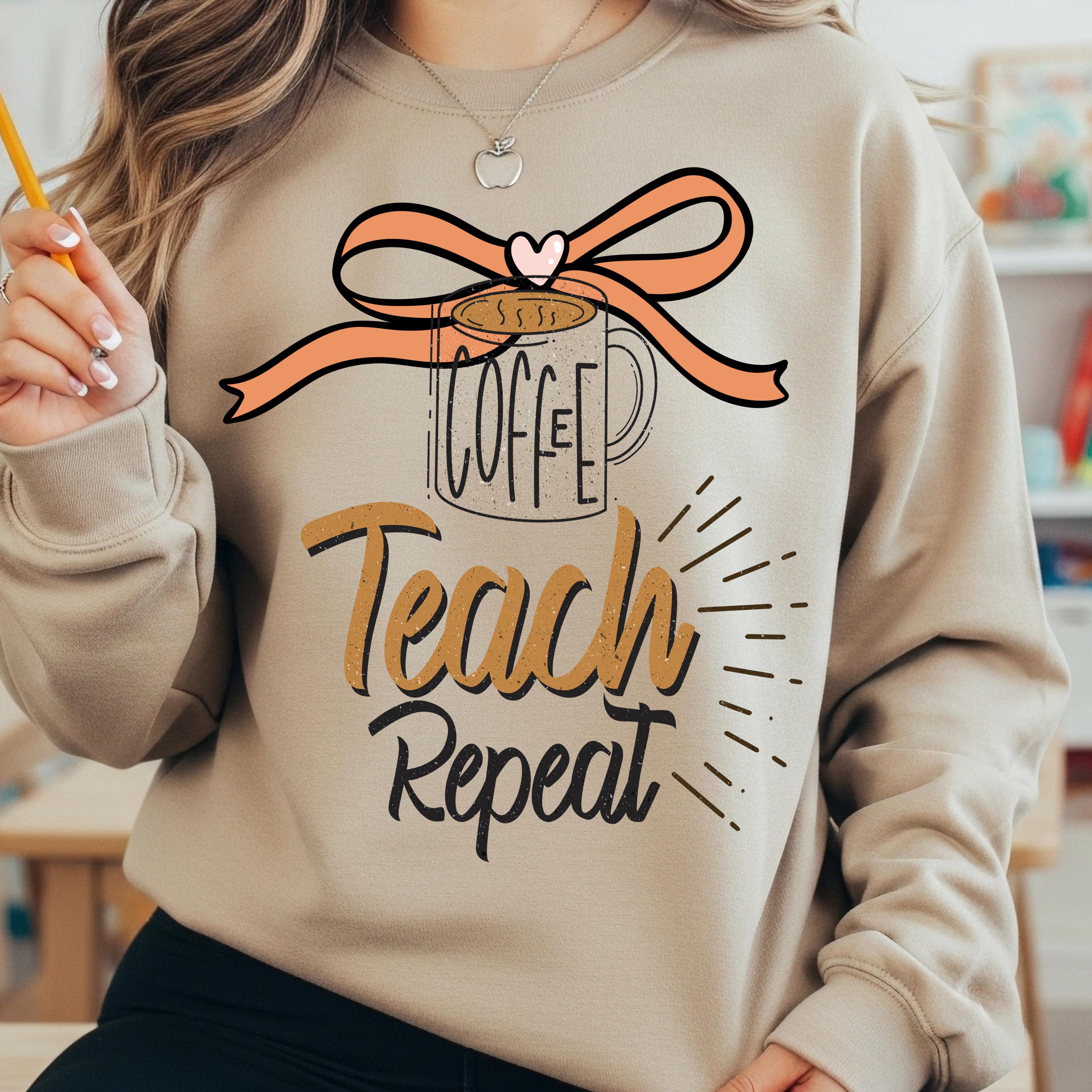 Coffee Teach Repeat Sweatshirt, Funny Teacher Shirt
