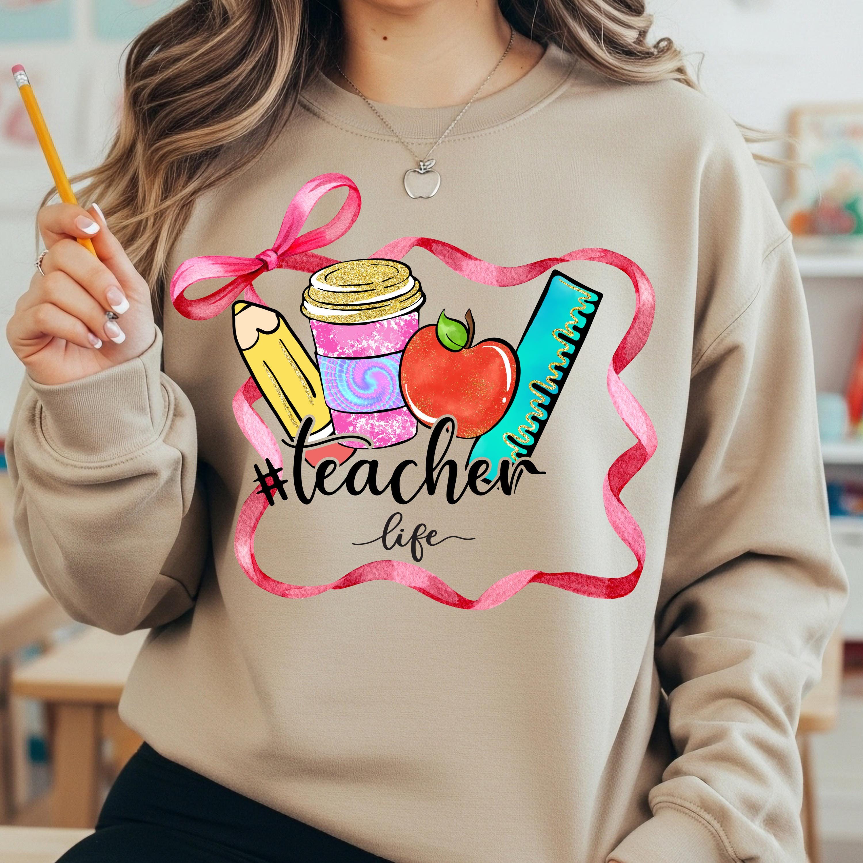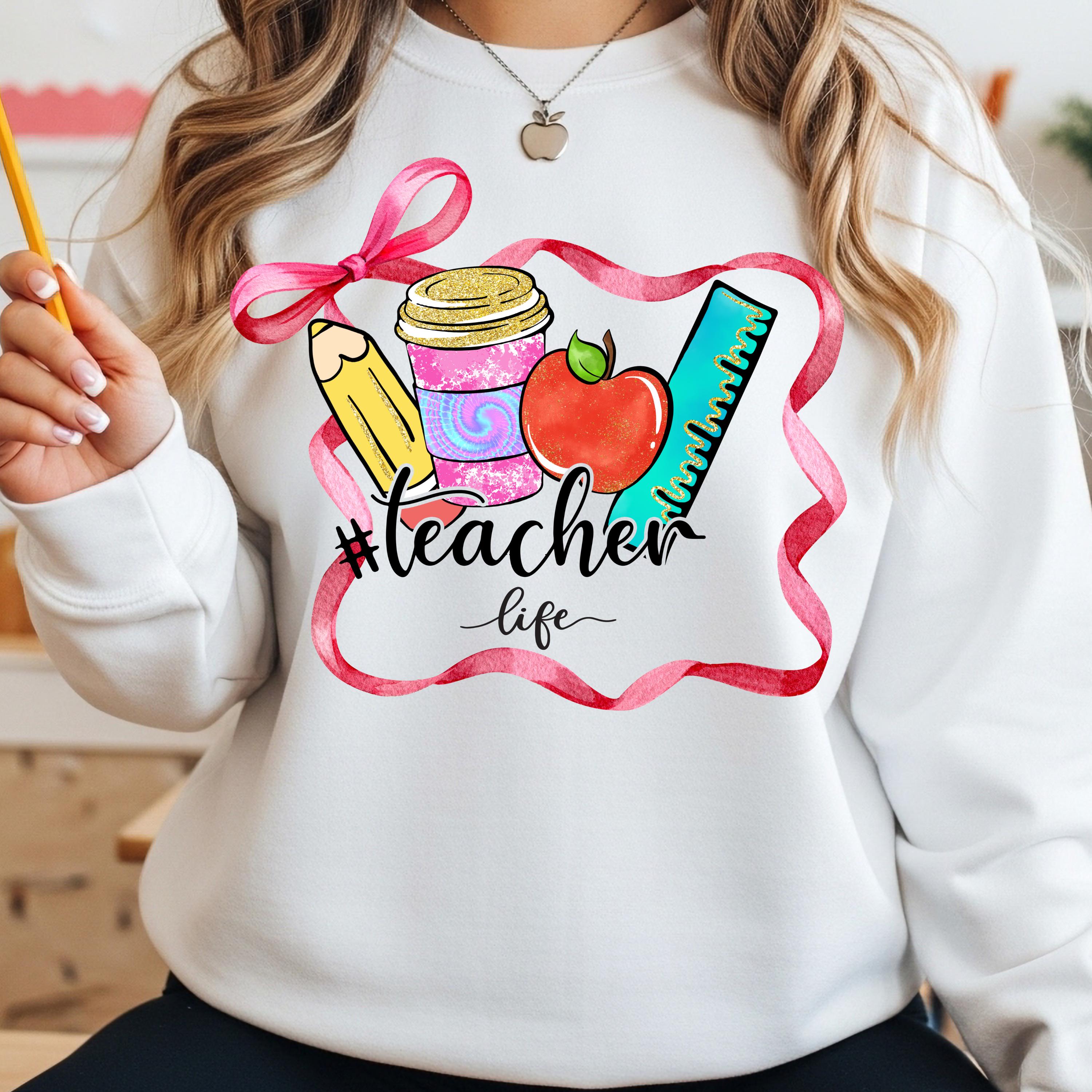 Teacher Life Bow Design Shirt, Teacher Appreciation Sweatshirt