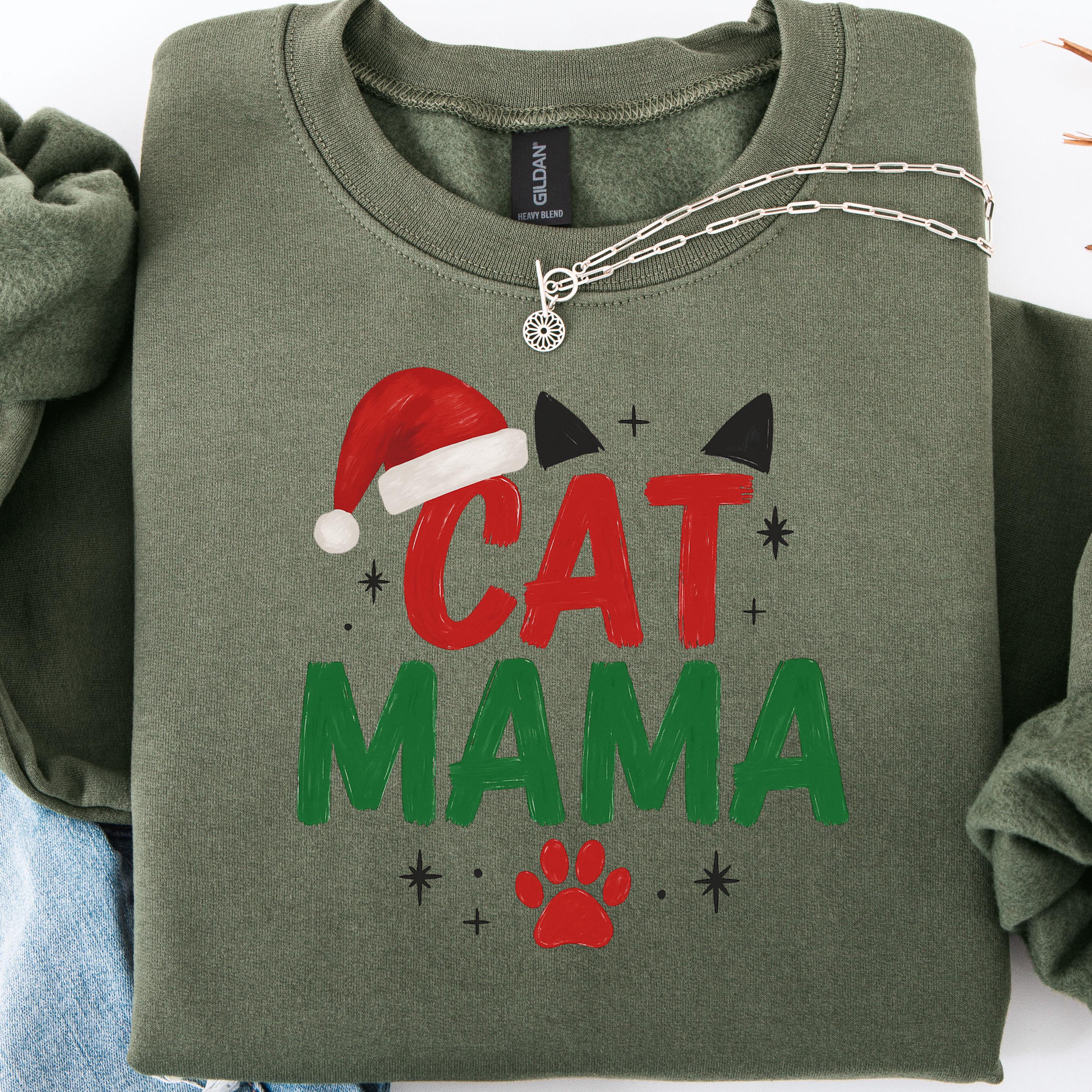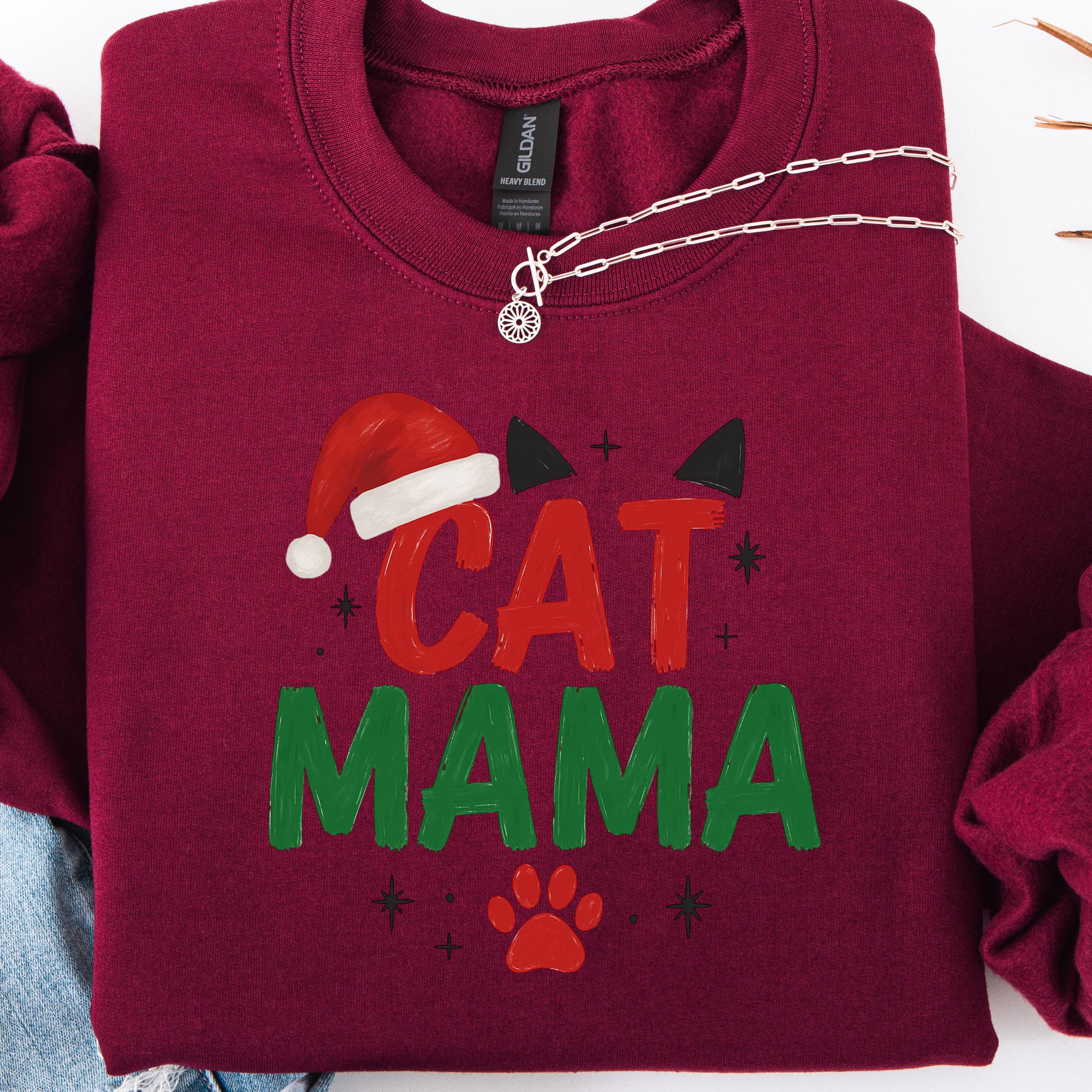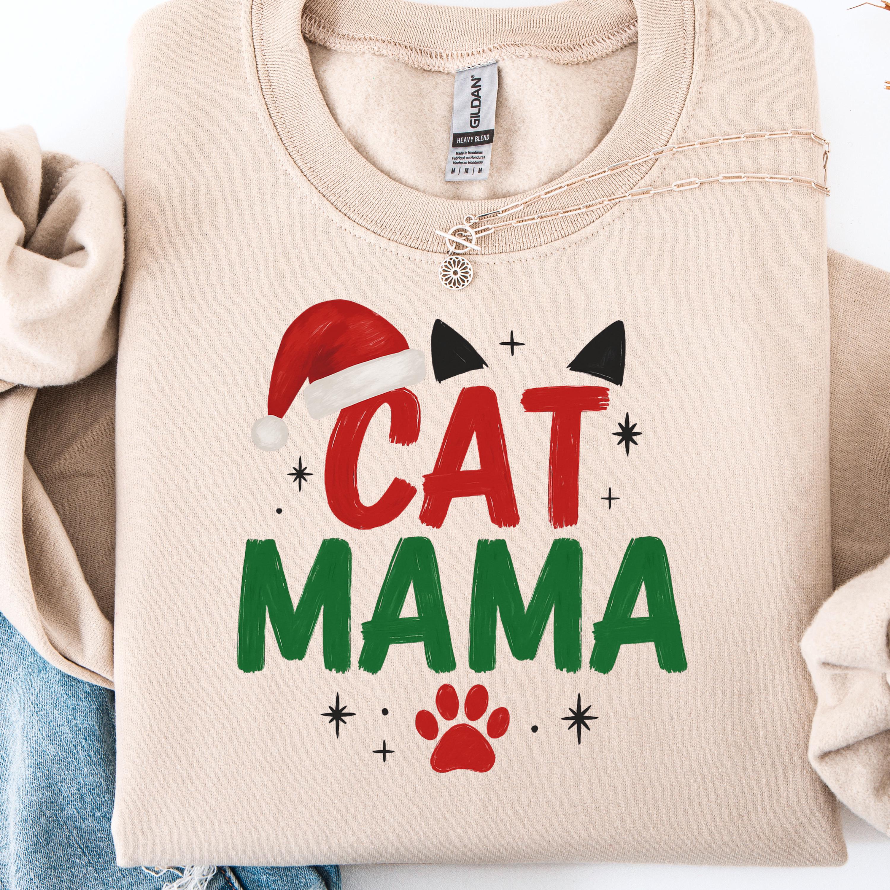 Cat Mama Shirt, Christmas Tee for Cat Lovers, Feline Parent Gift