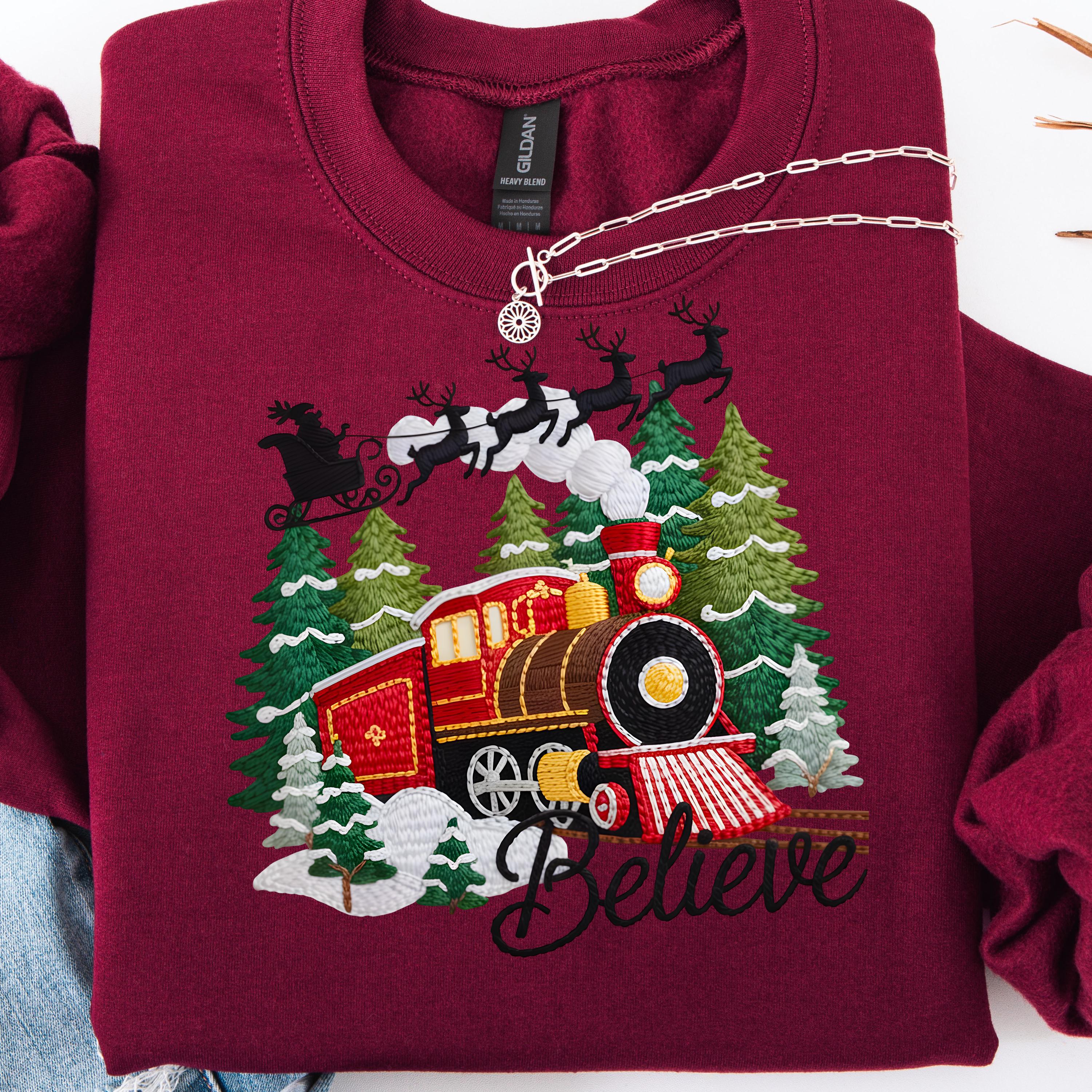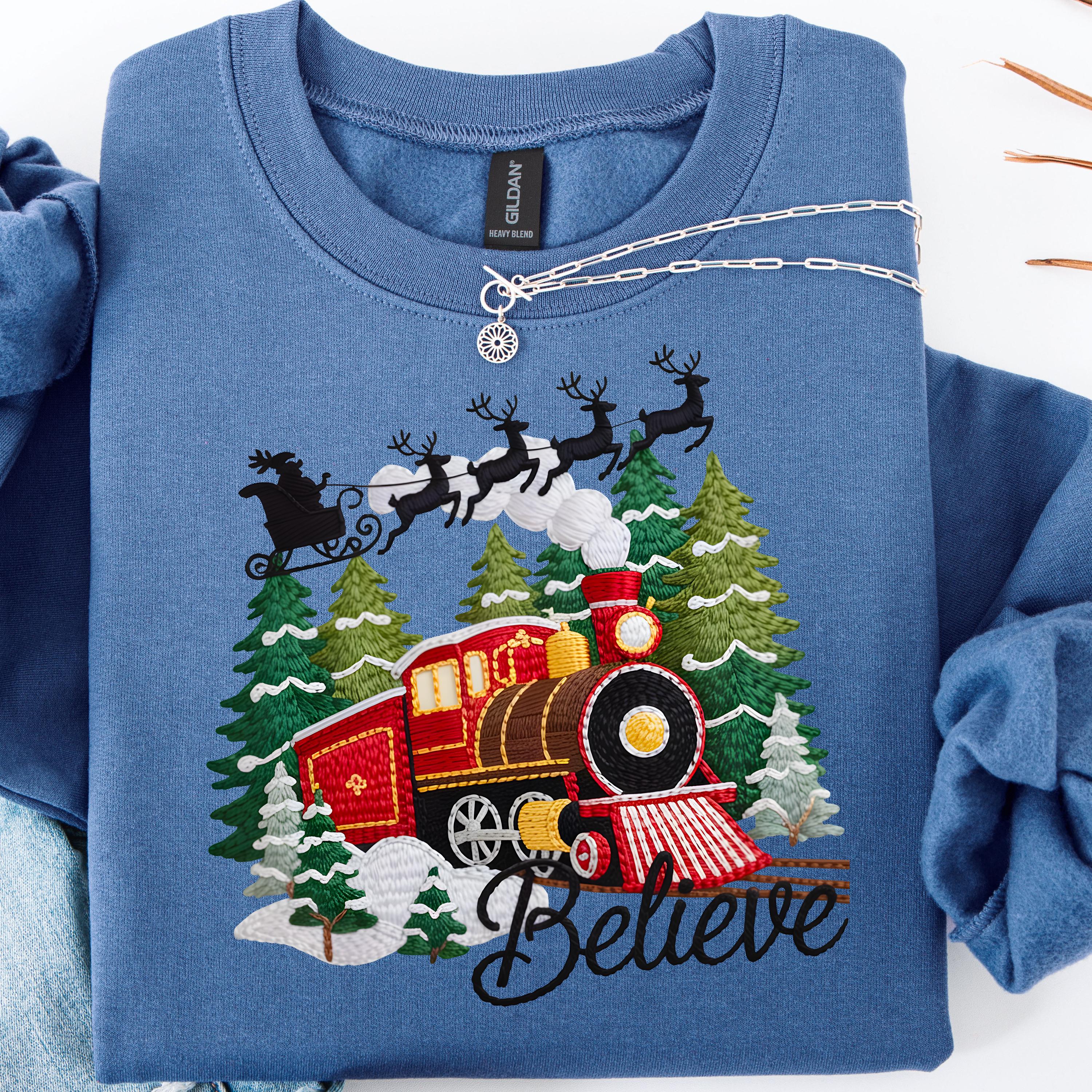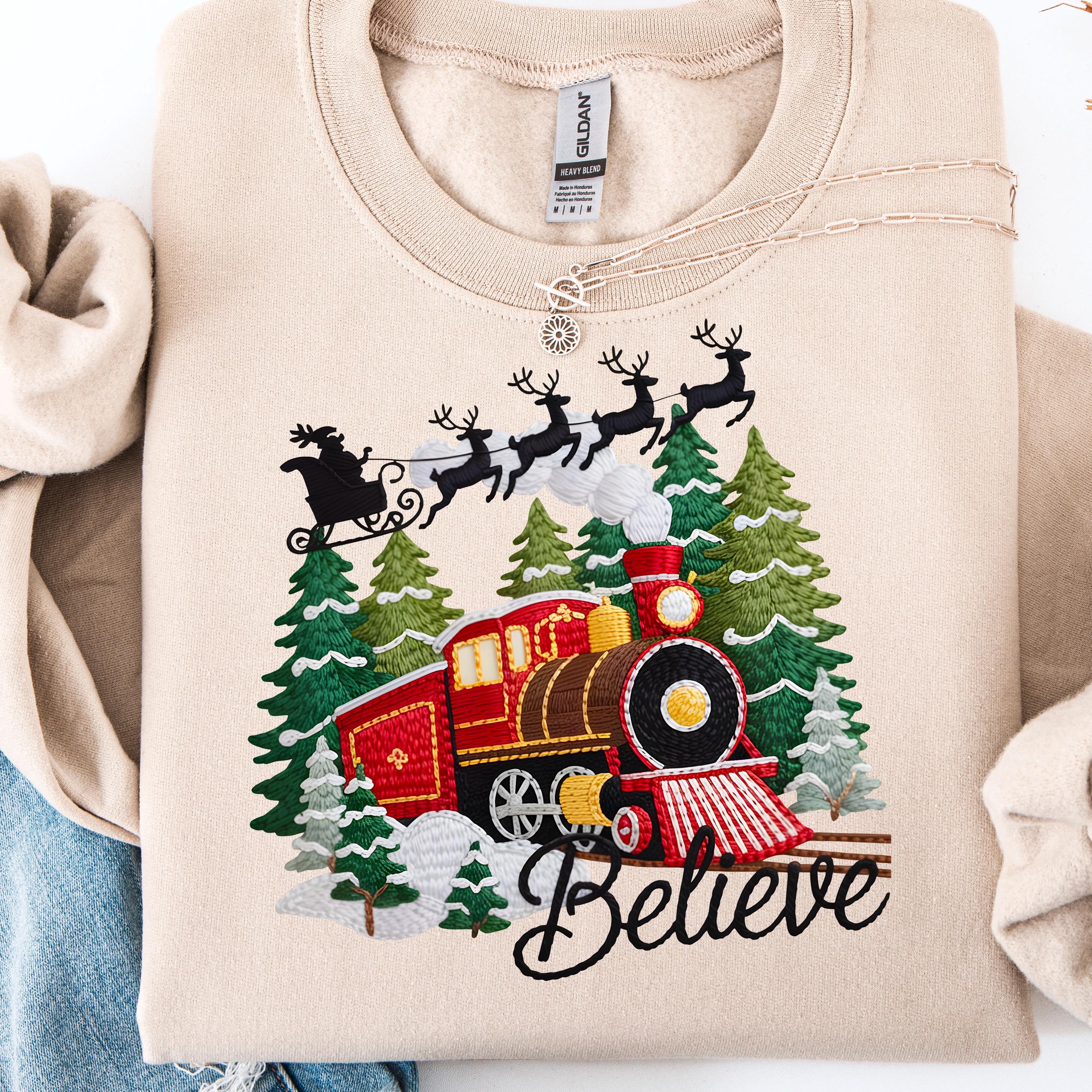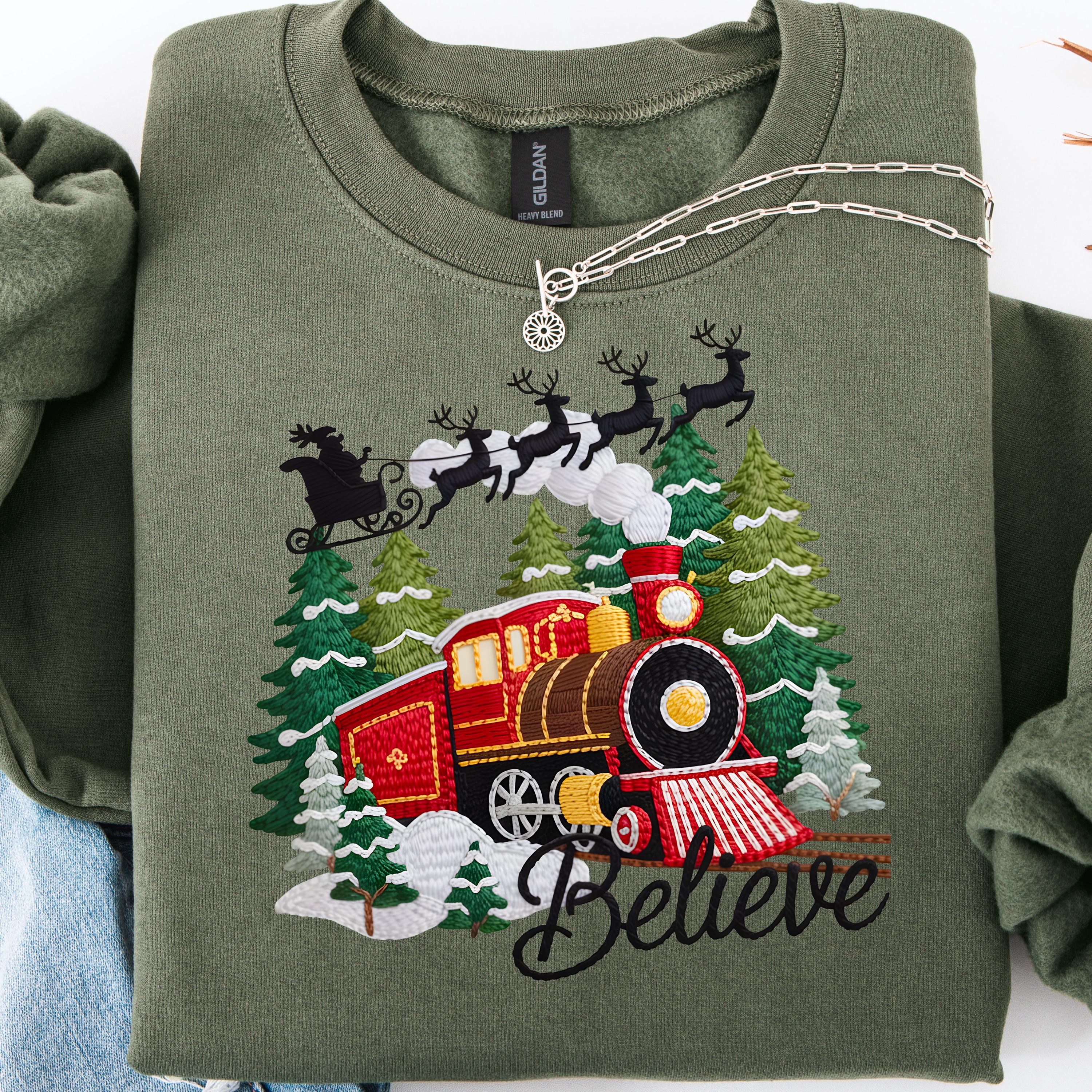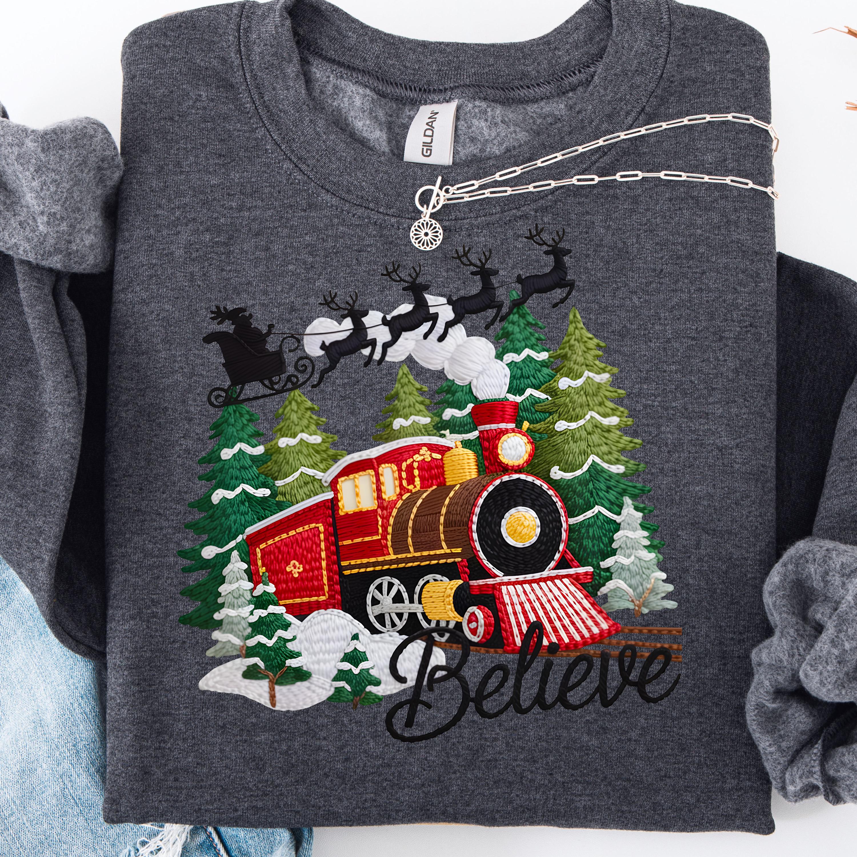 Christmas Train Sweatshirt, Holiday Believe Shirt