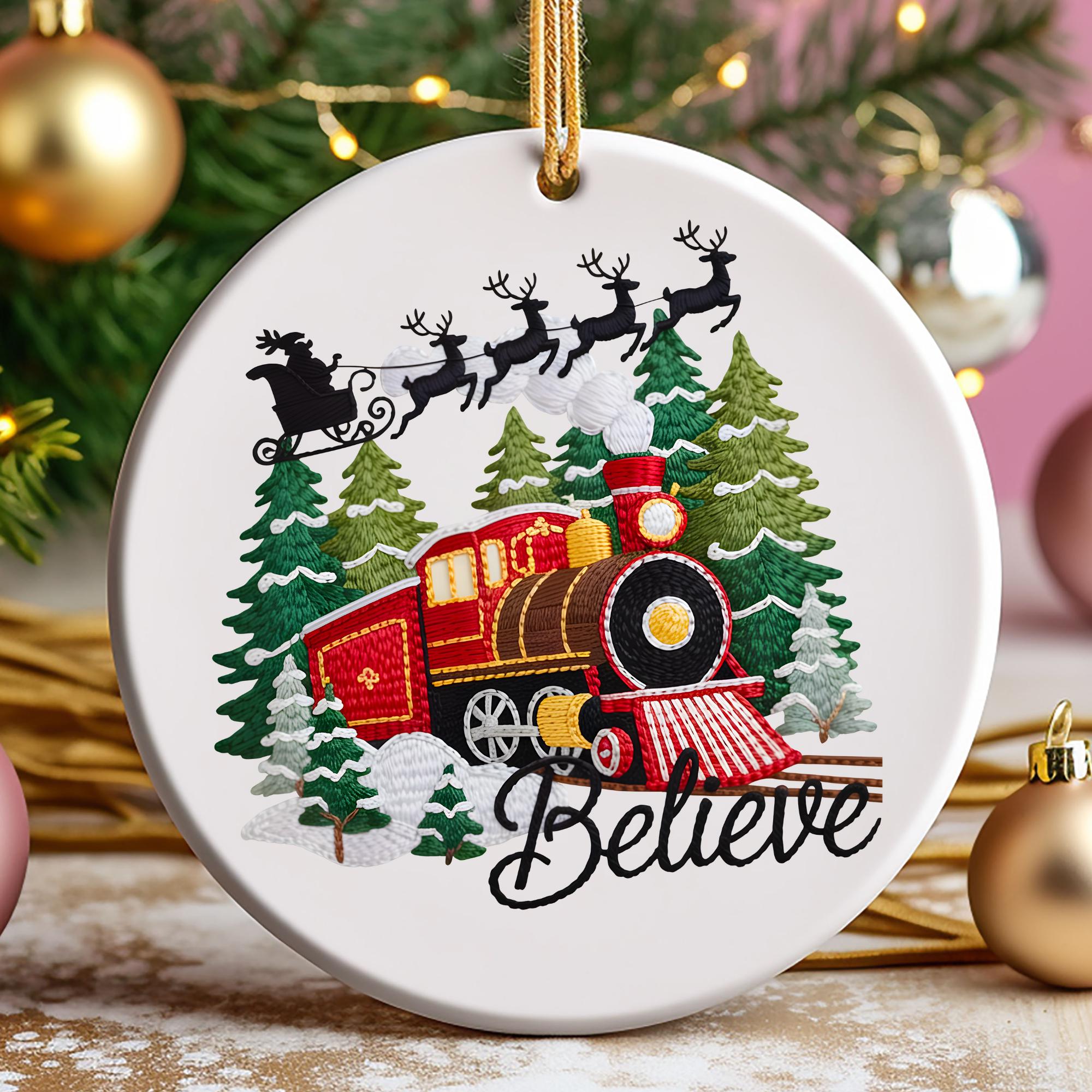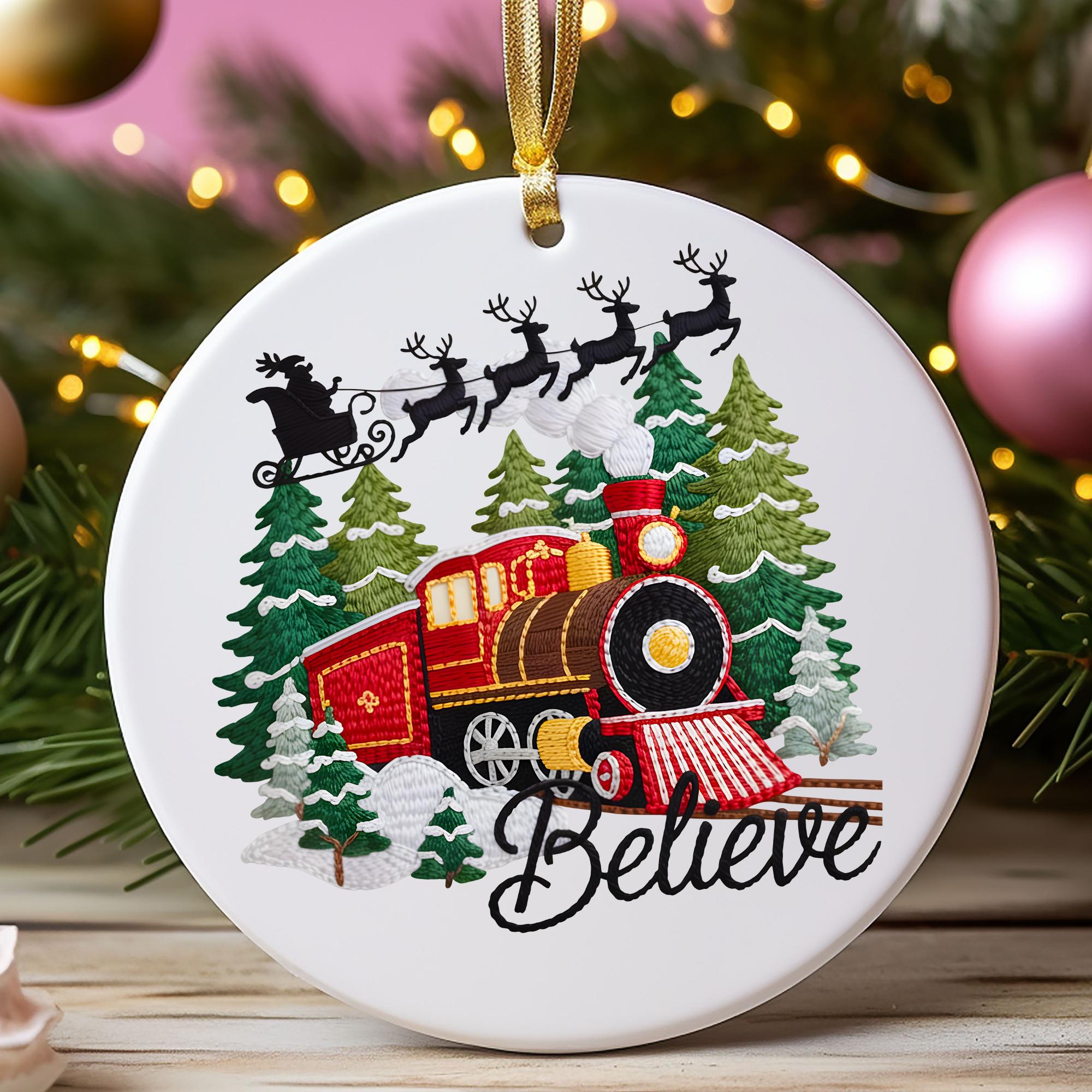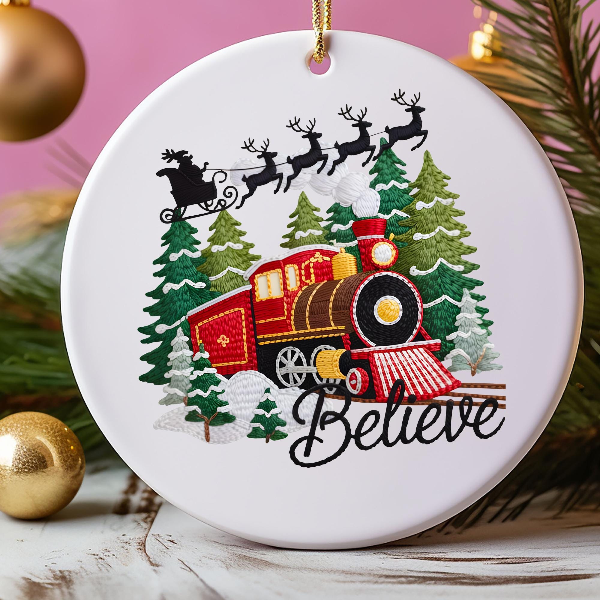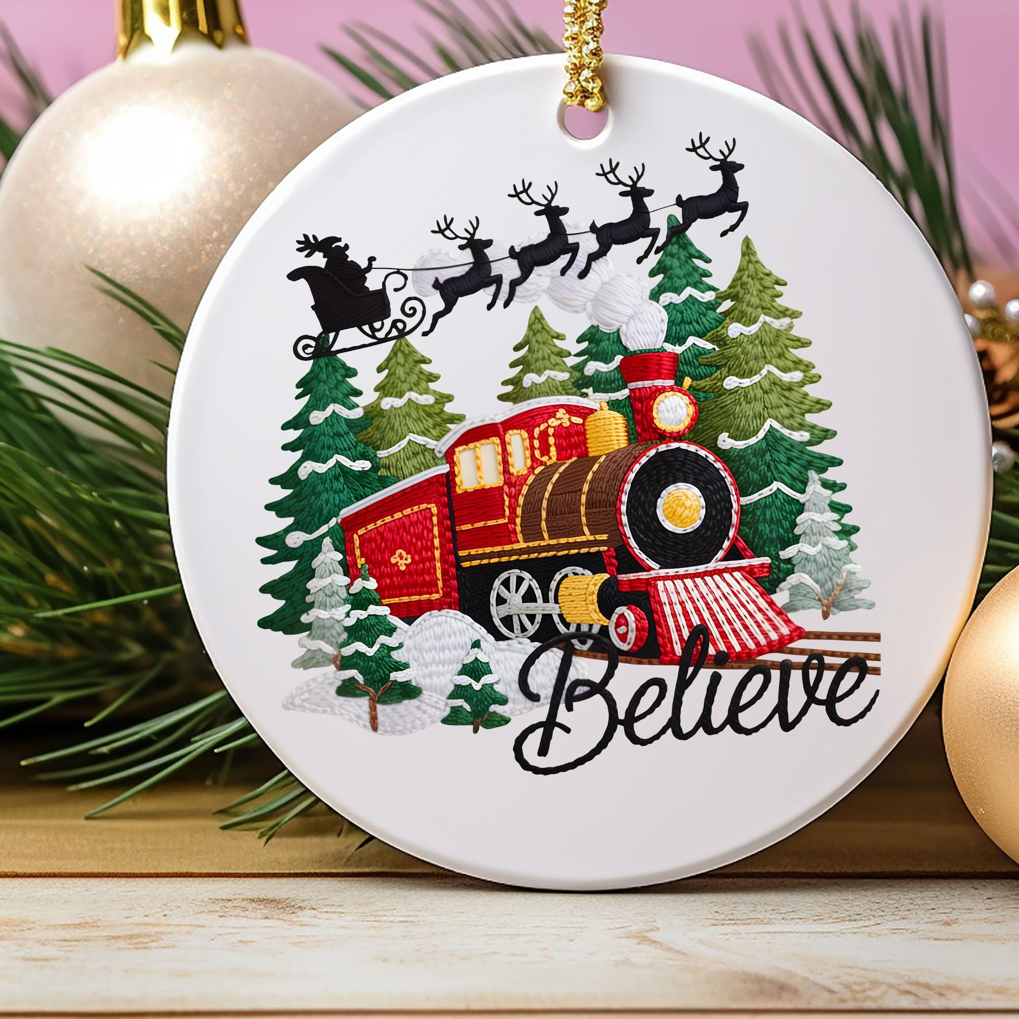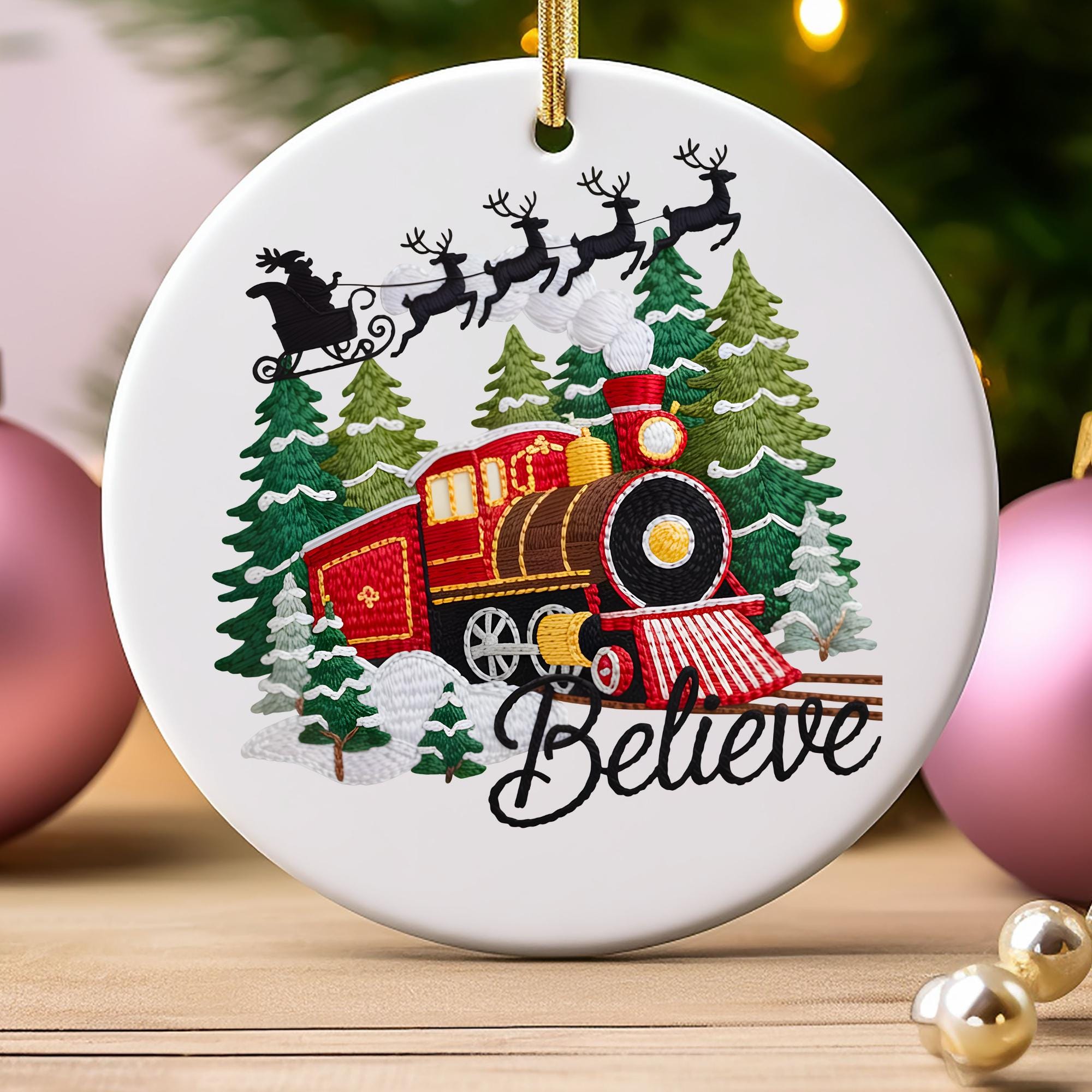 Santa Train Believe Ornament, Christmas Gift for Train Lovers