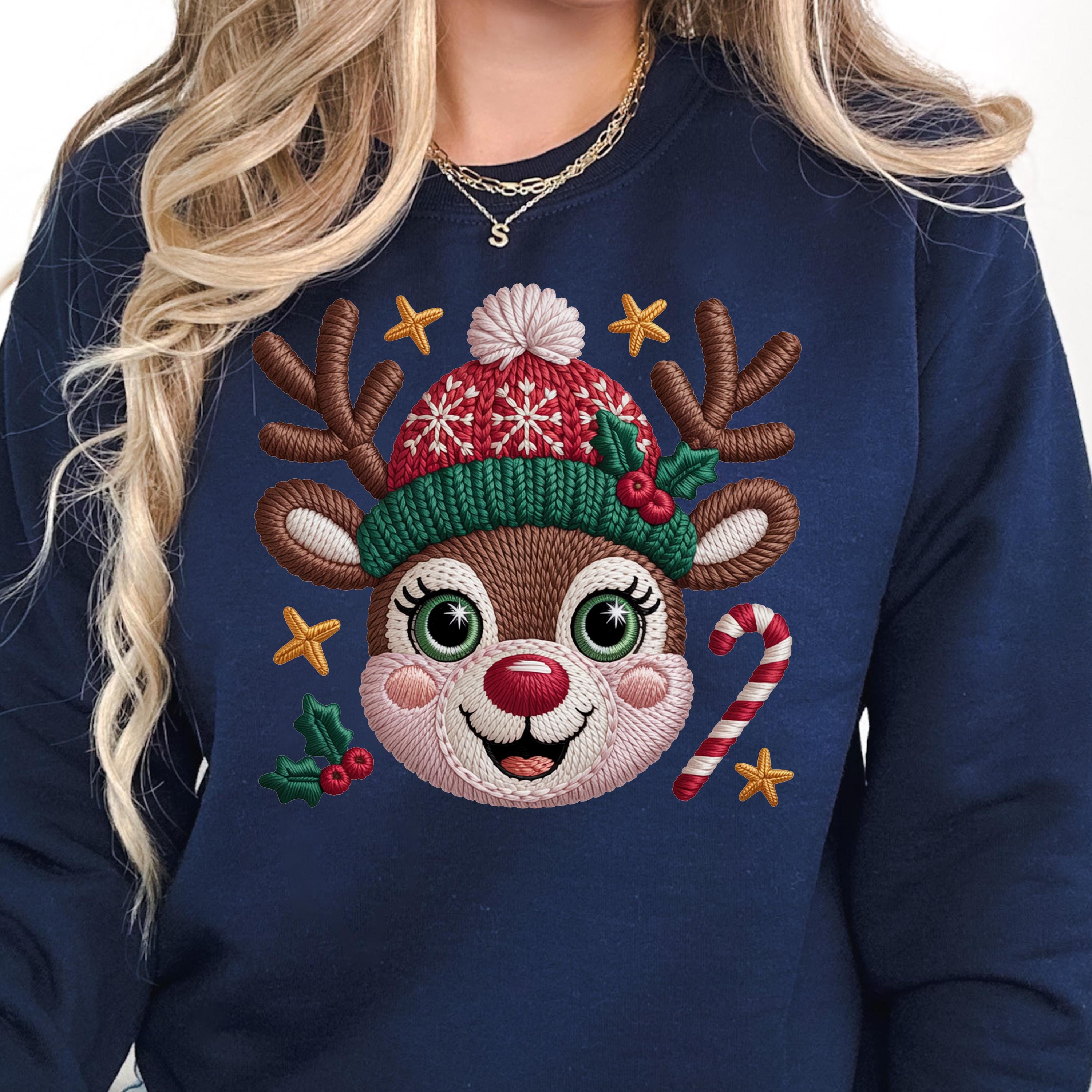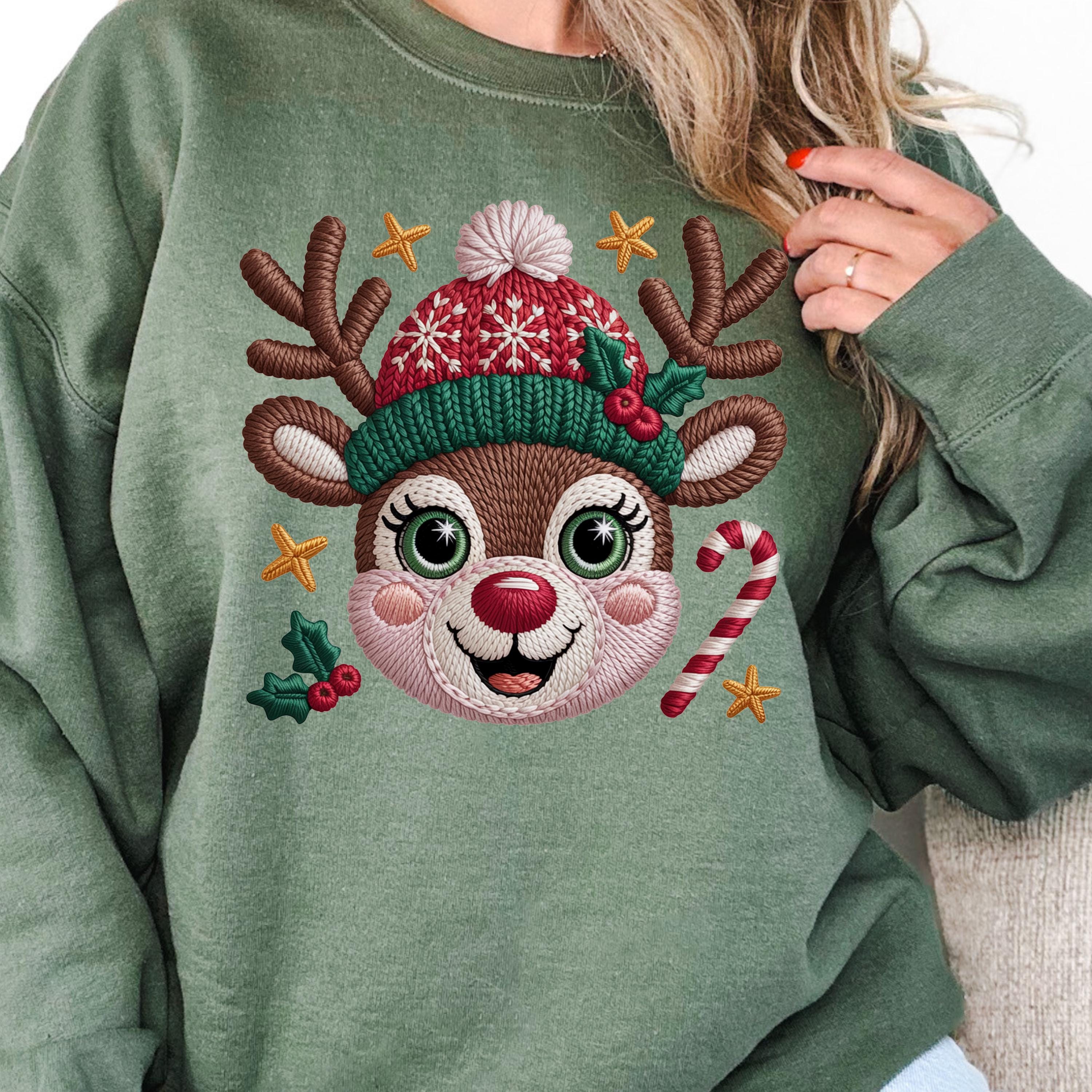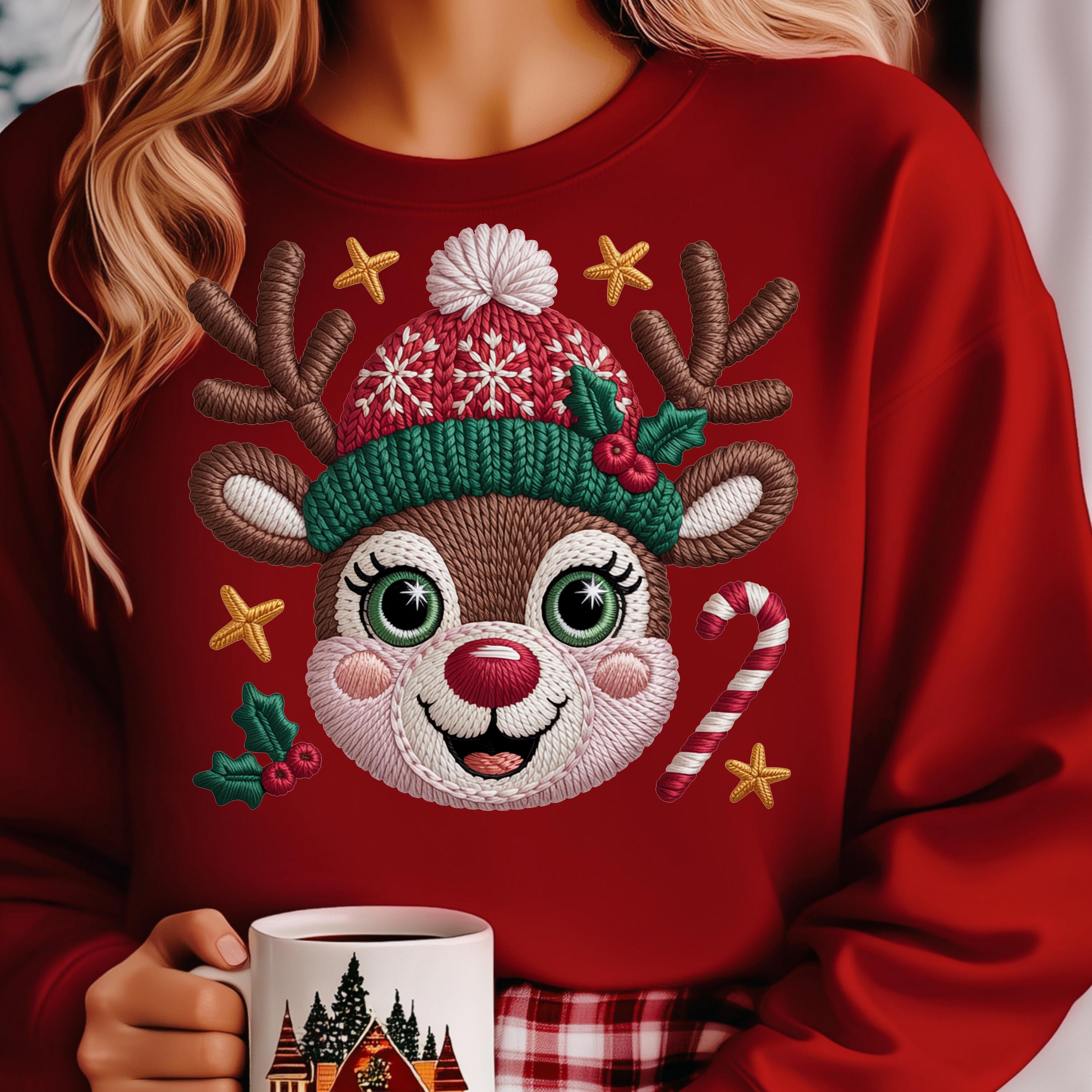Faux Yarn Christmas Reindeer Shirt, Festive Shirt Reindeer Gift