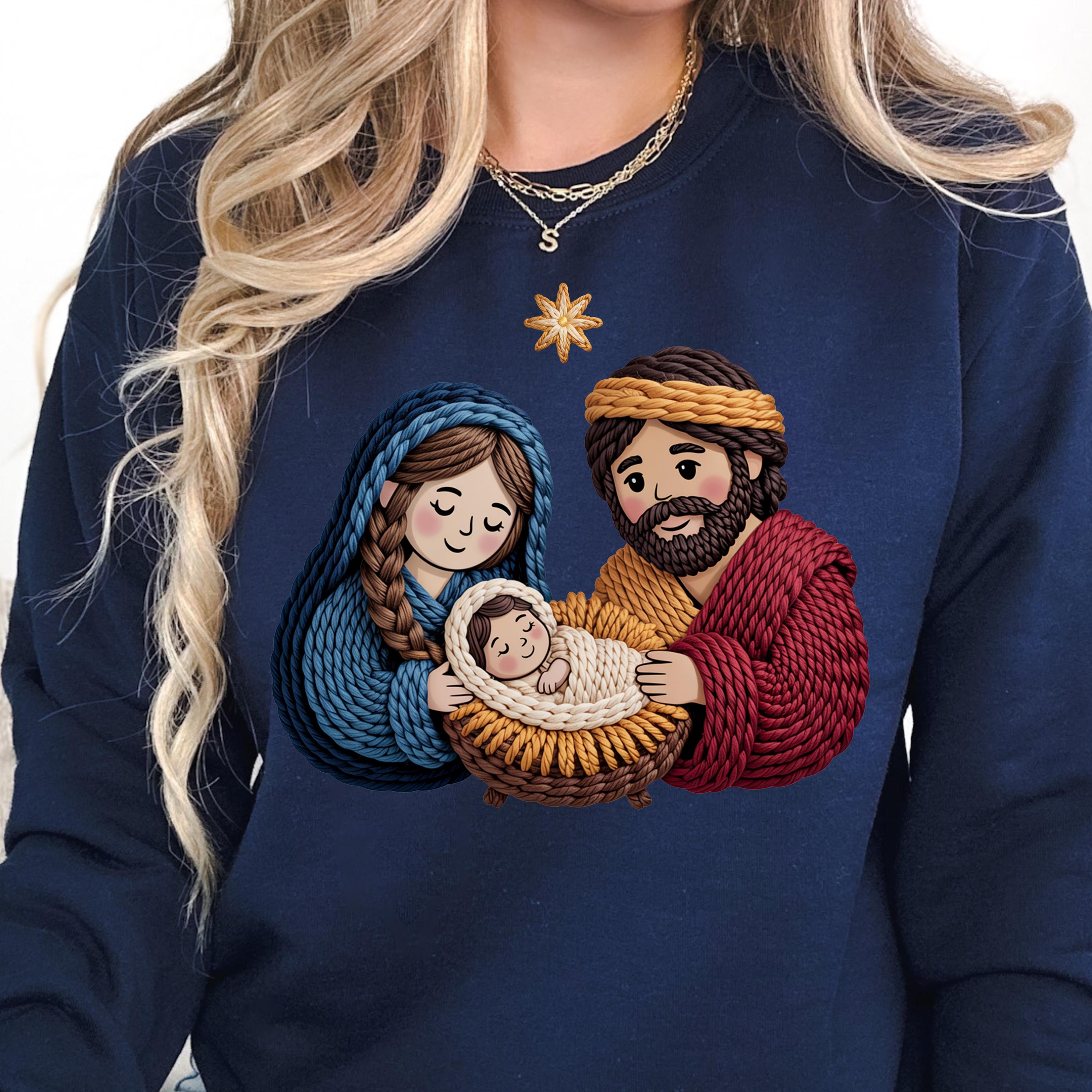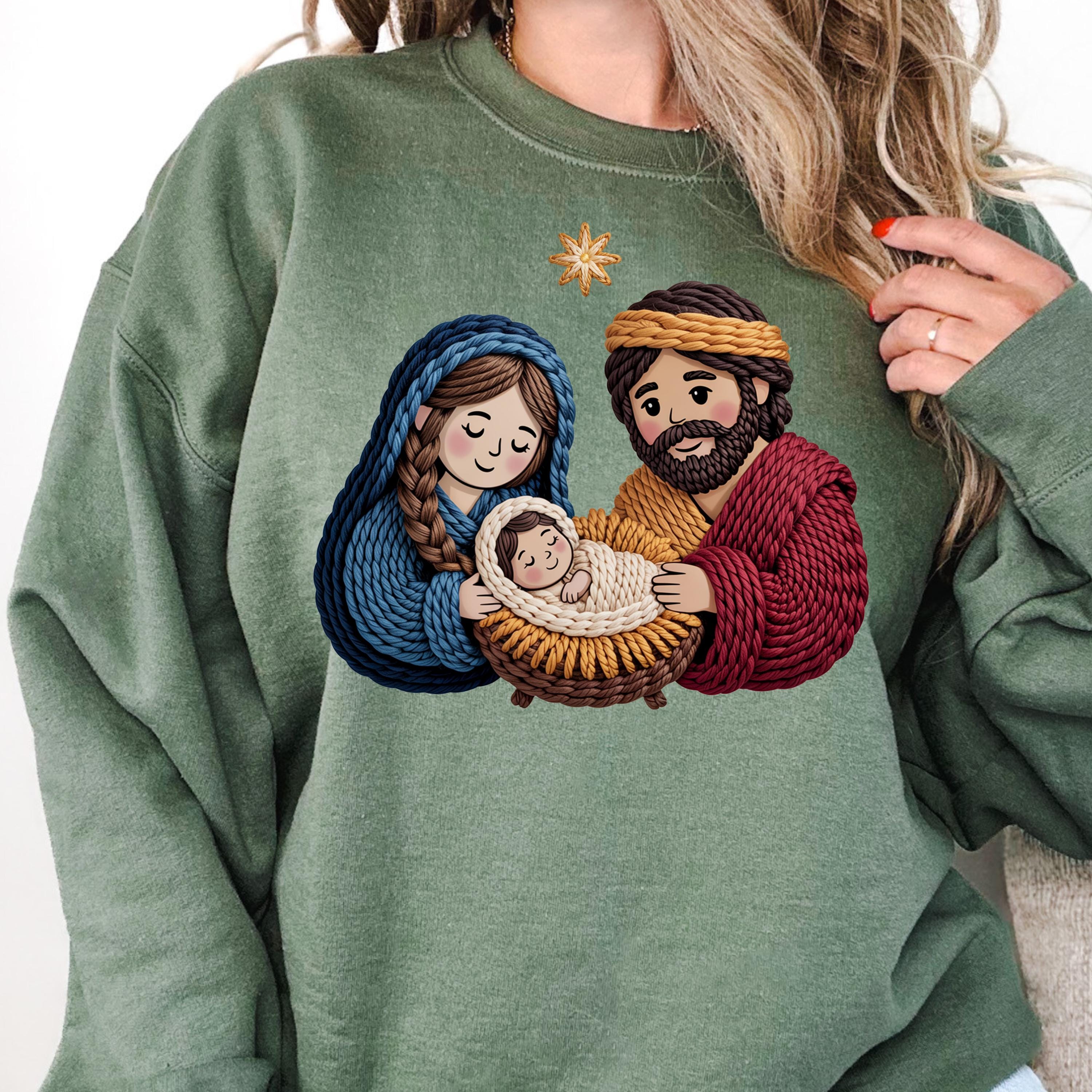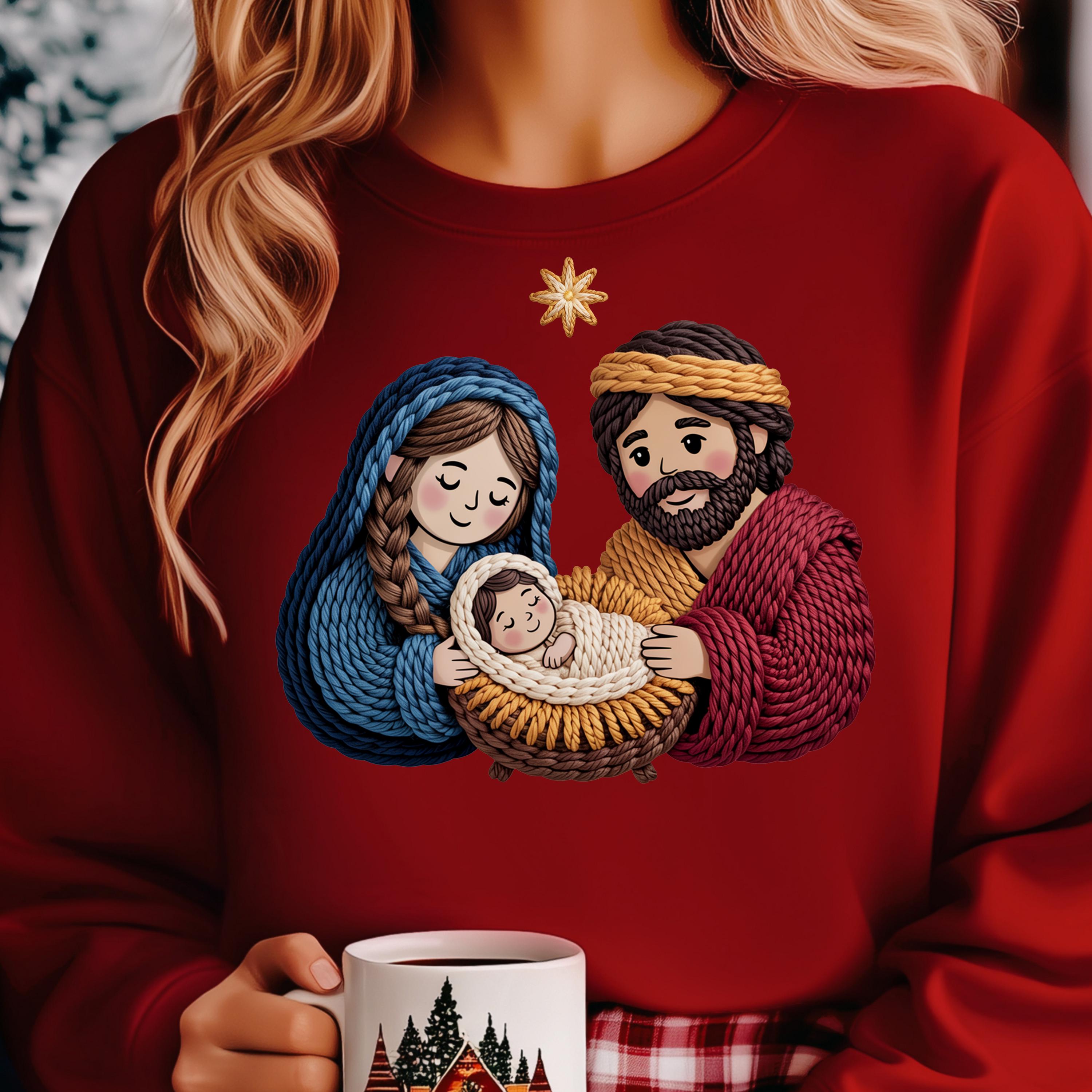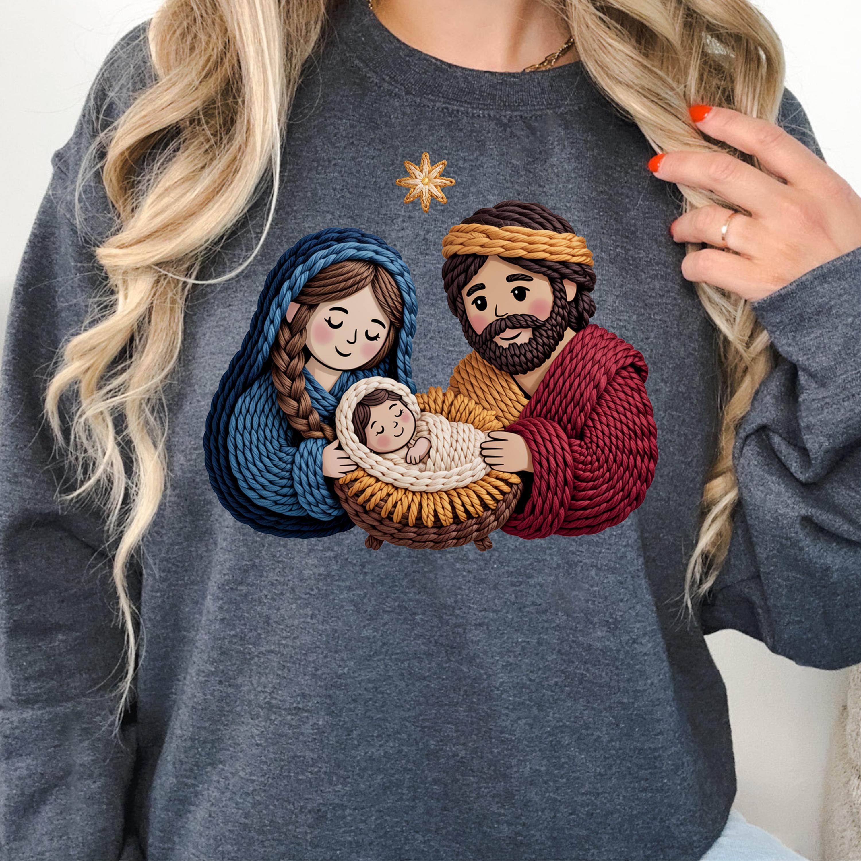 Faux Yarn Nativity Scene Shirt, Holy Family shirt for Christmas, Jesus Birth Shirt Religious Gift