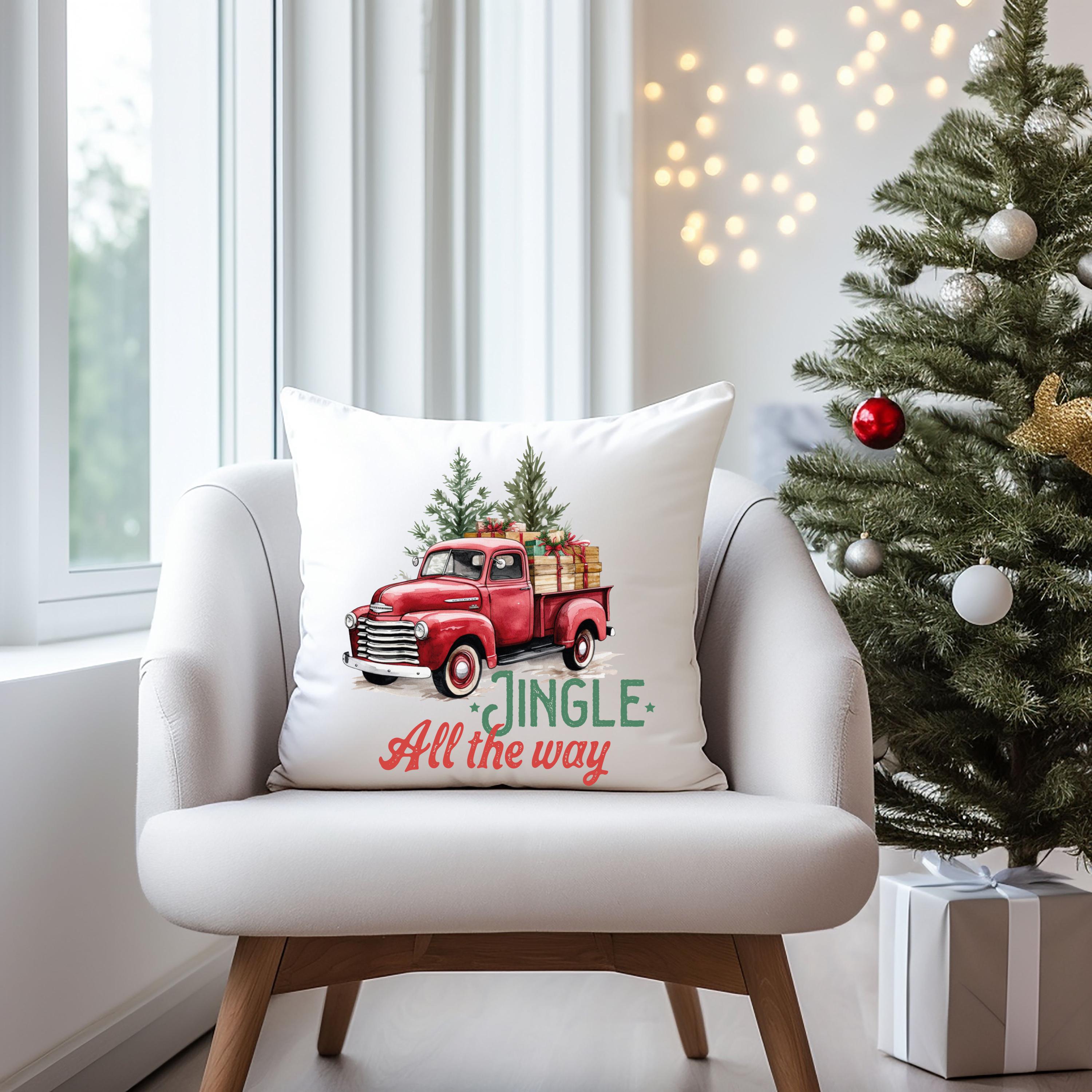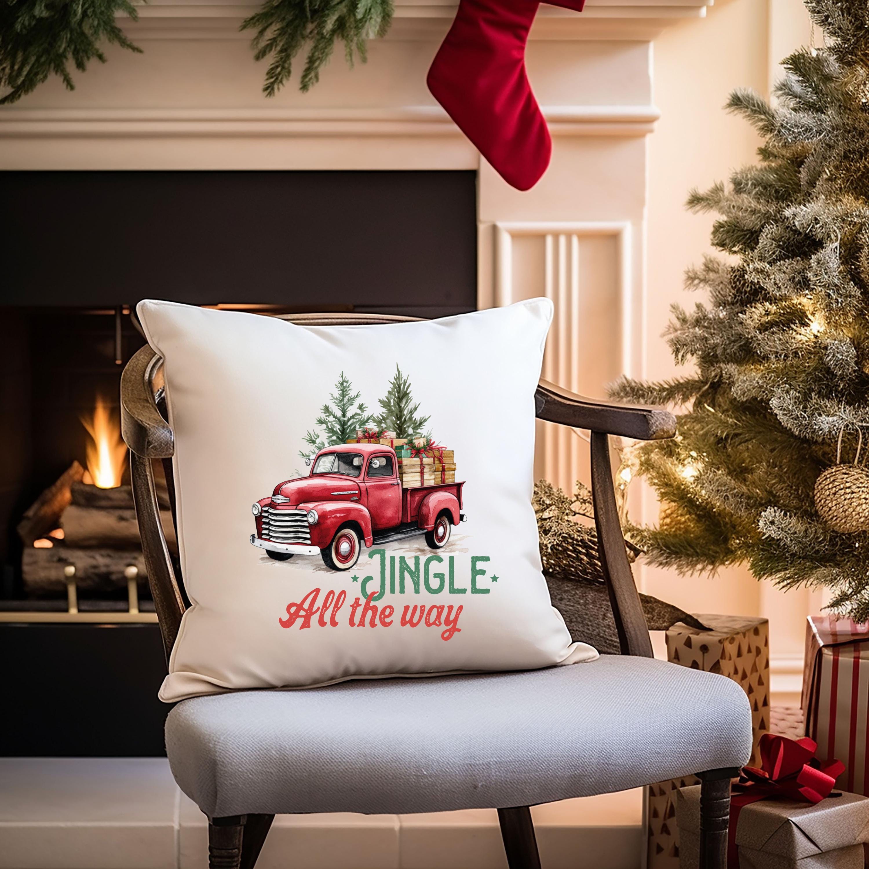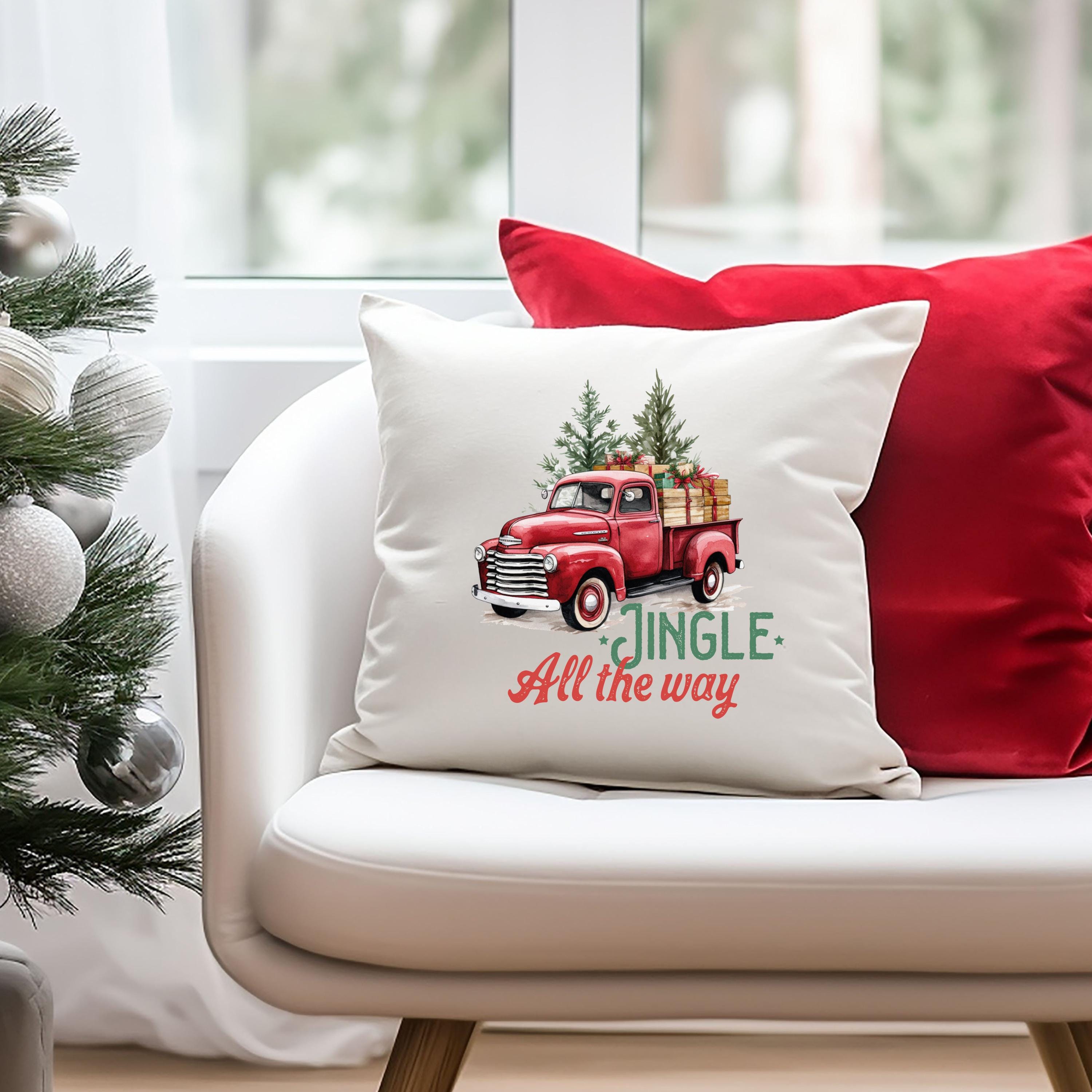 Christmas Truck Pillow Cover, Jingle All the Way Holiday Decor