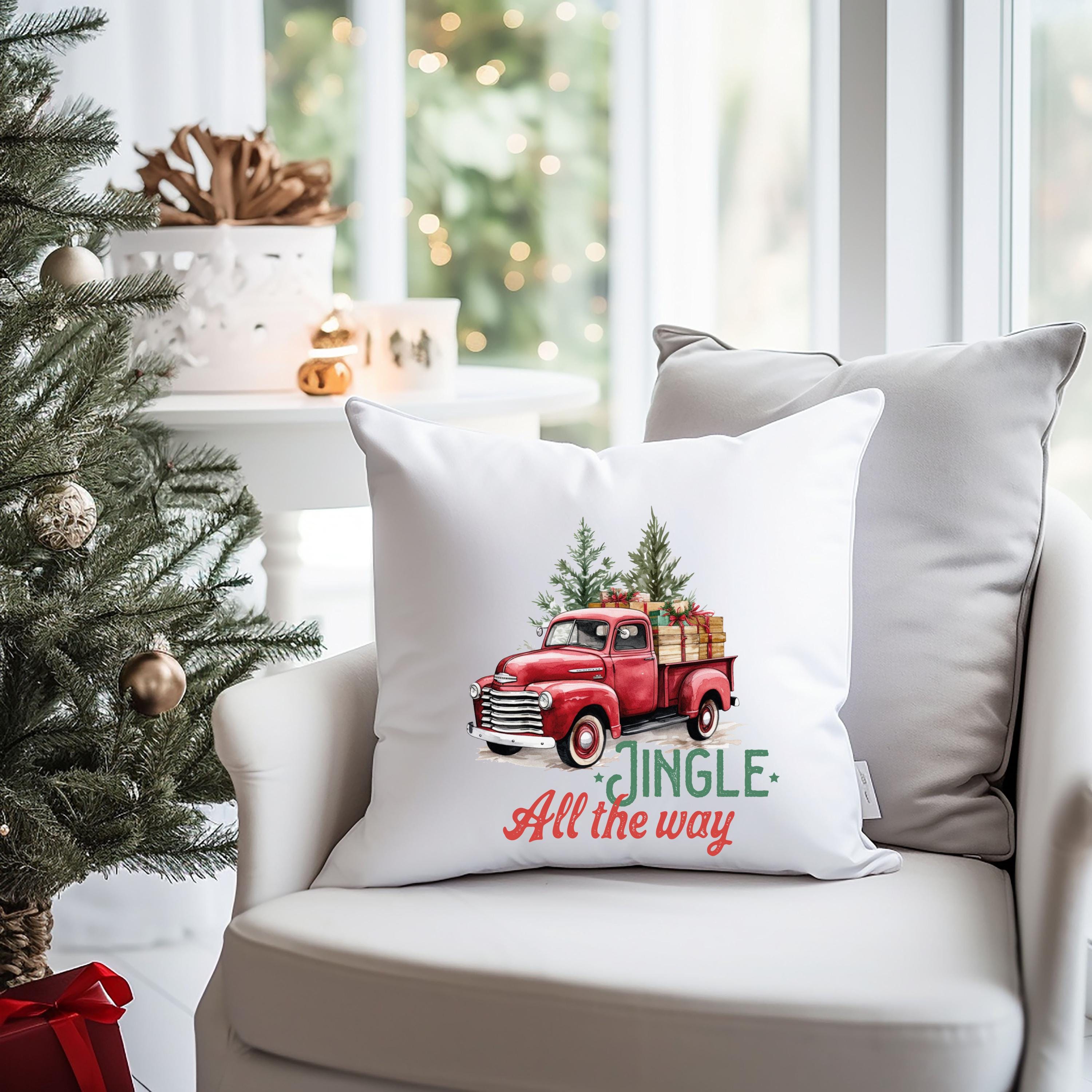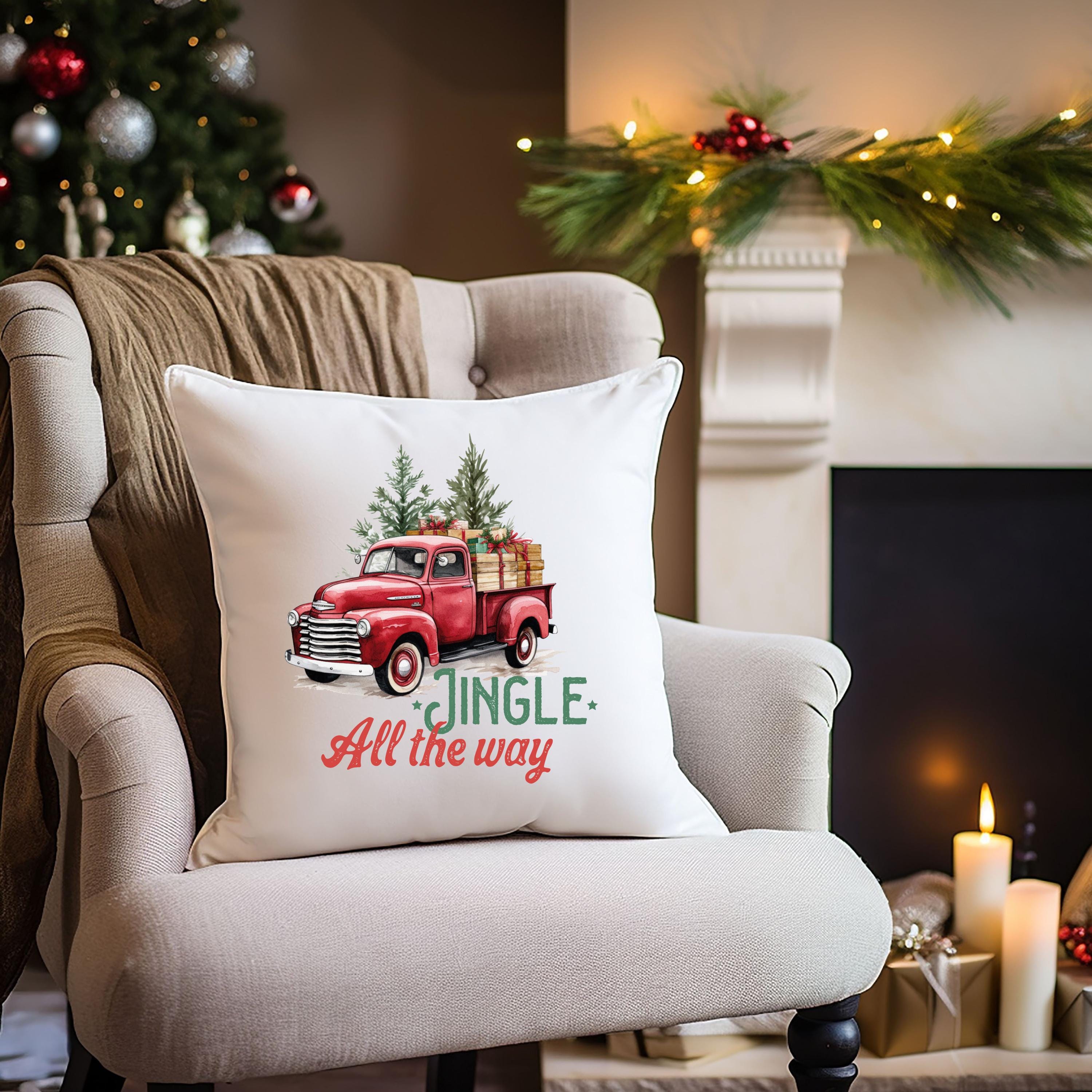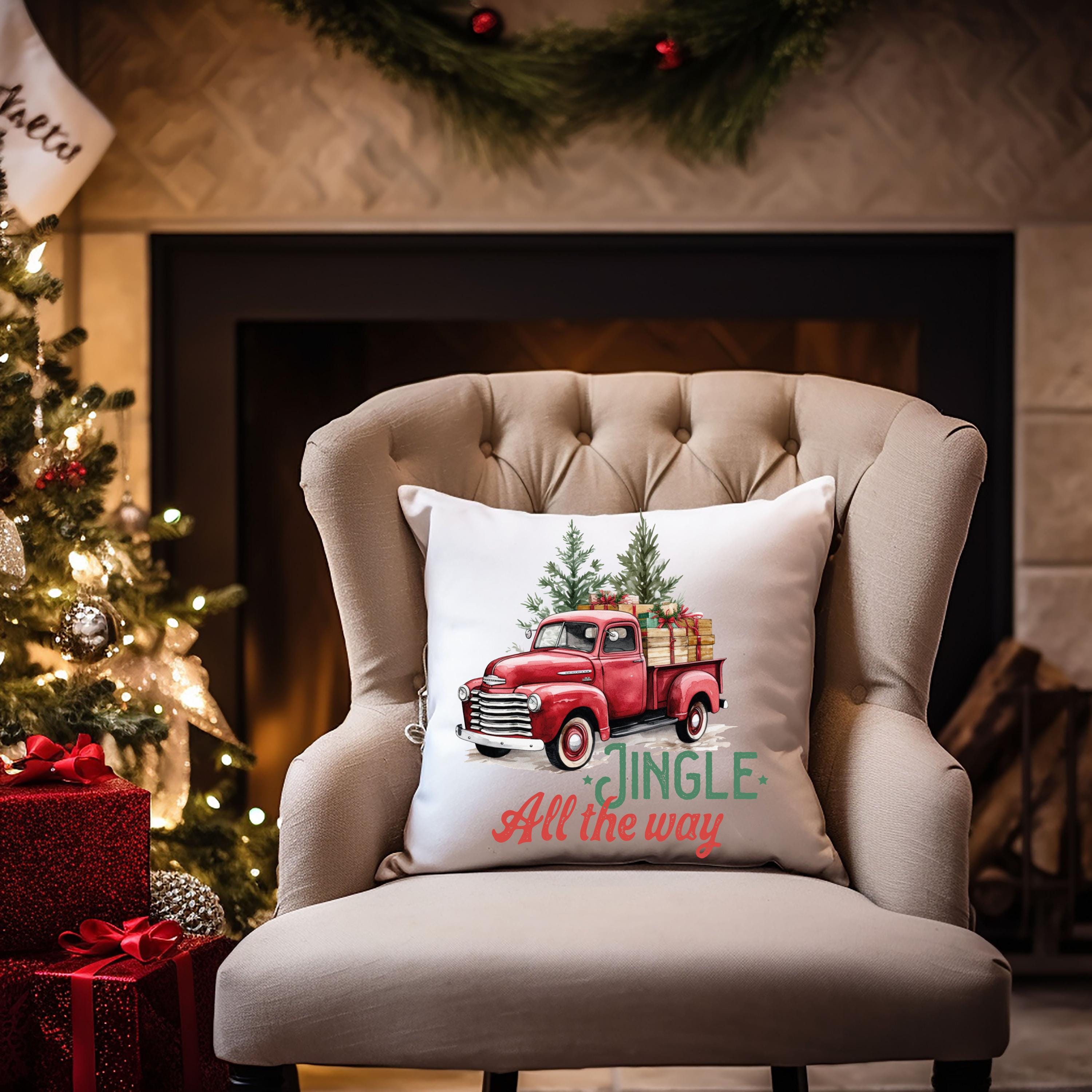 Christmas Truck Pillow Cover, Jingle All the Way Holiday Decor
