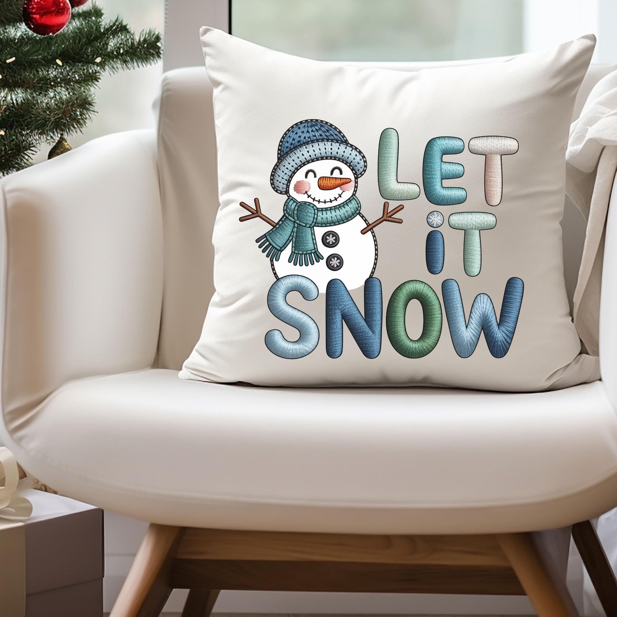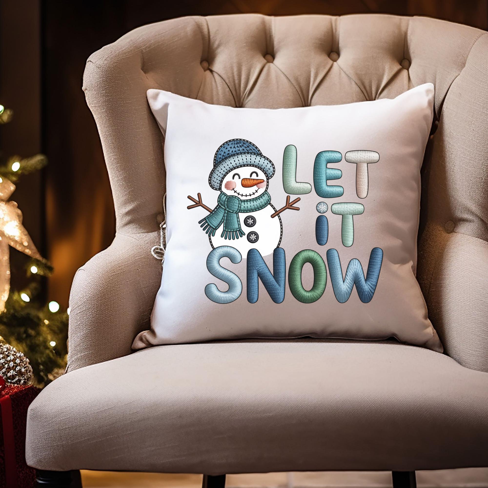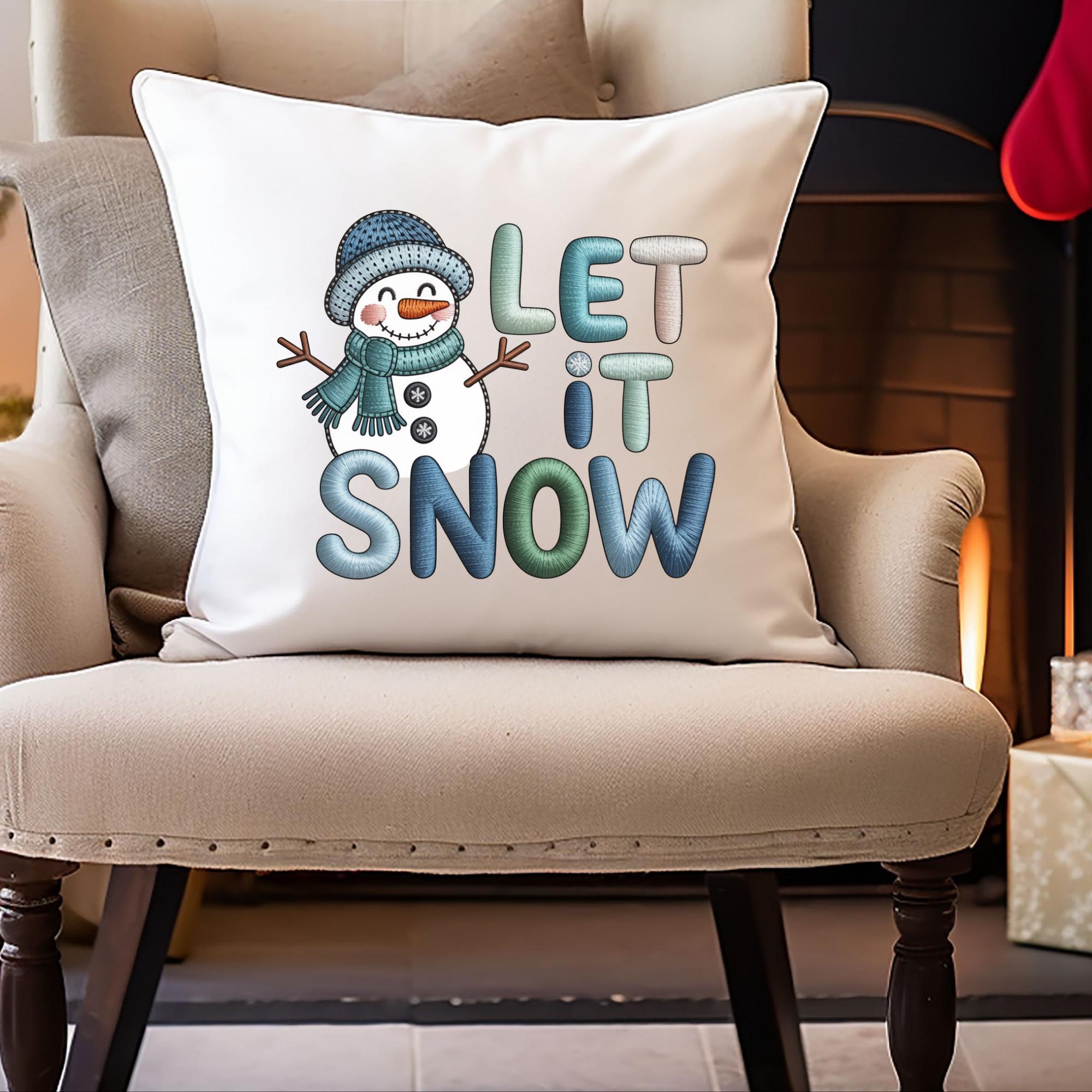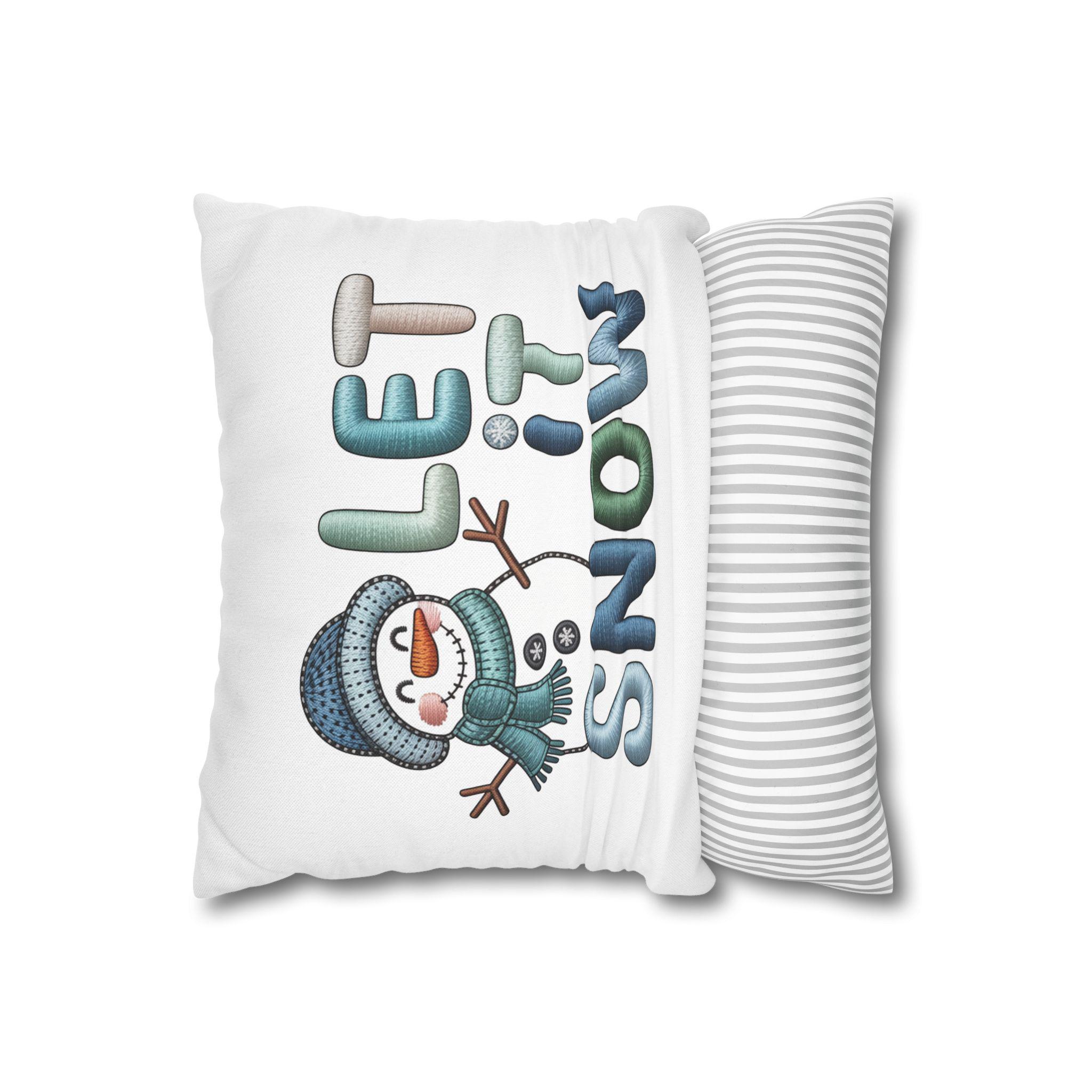 Cozy up your home decor with this Let it Snow Snowman pillowcase featuring a cute faux yarn snowman design. Perfect for adding a whimsical touch to your living room or bedroom during the holiday season. Ideal for those who love festive winter decor.
