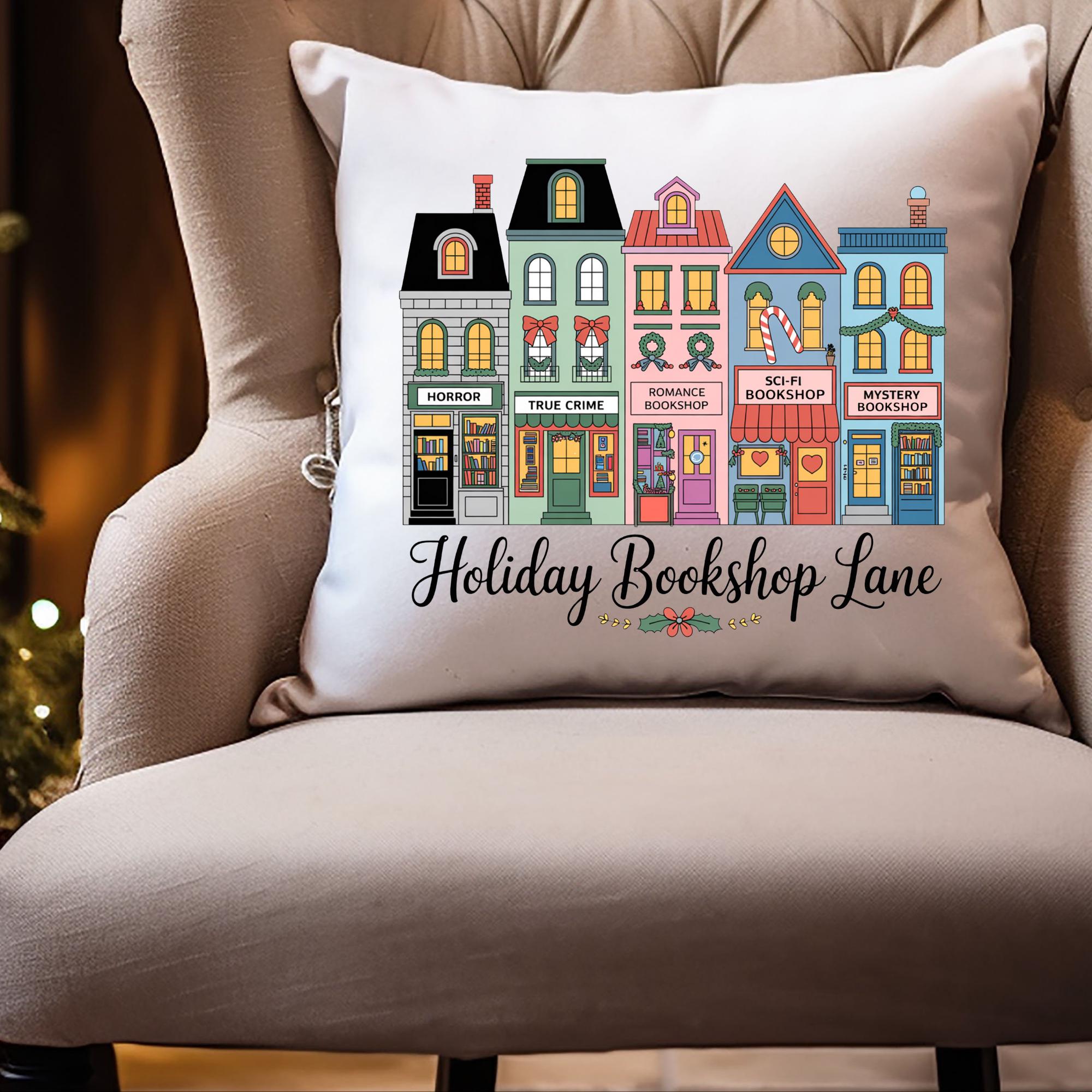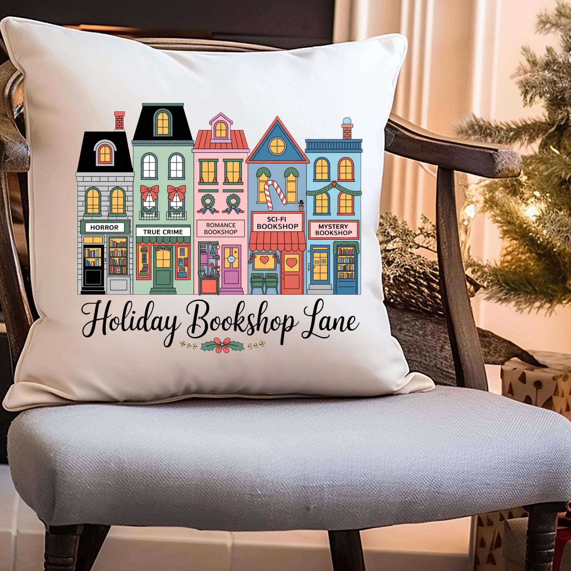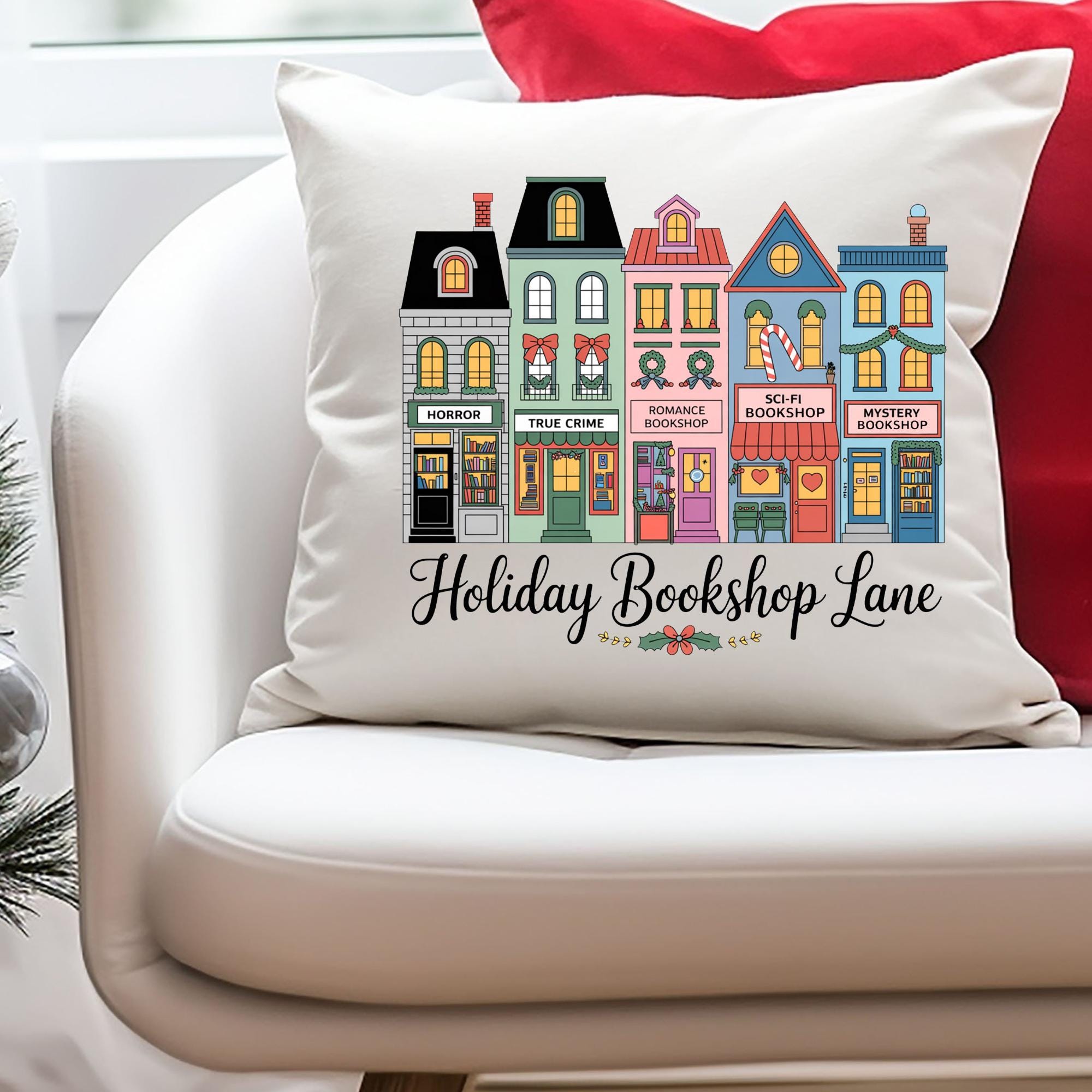 Holiday Bookshop Lane Pillow Sham, Literary Christmas Decor