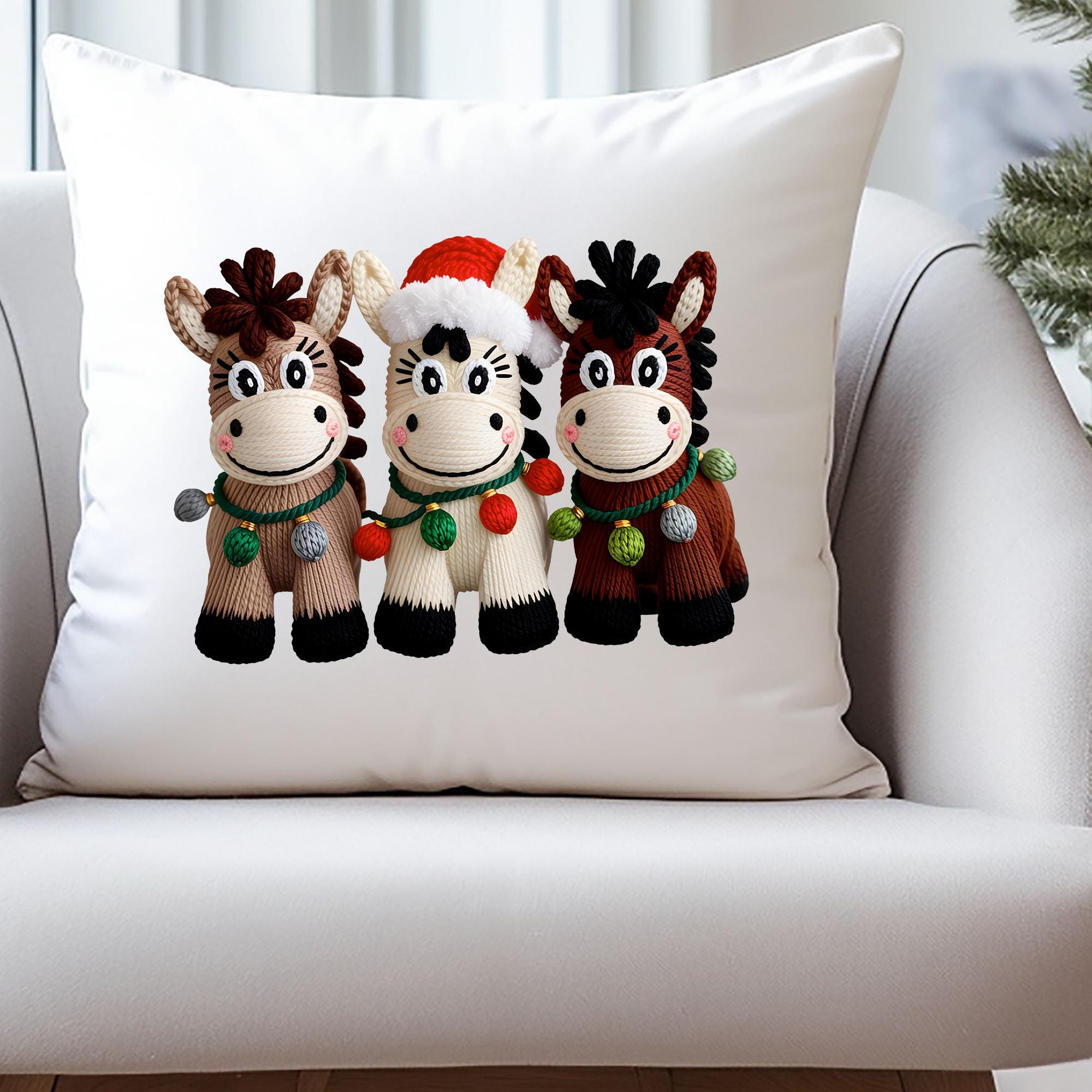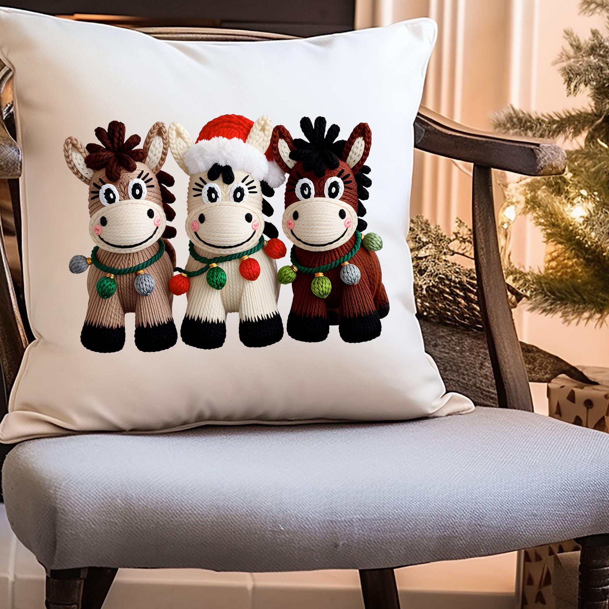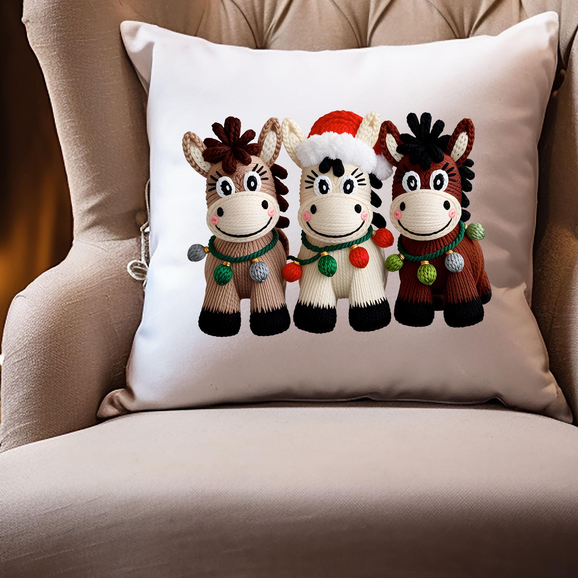 Christmas Horse Pillow Cover, Festive Holiday Decor