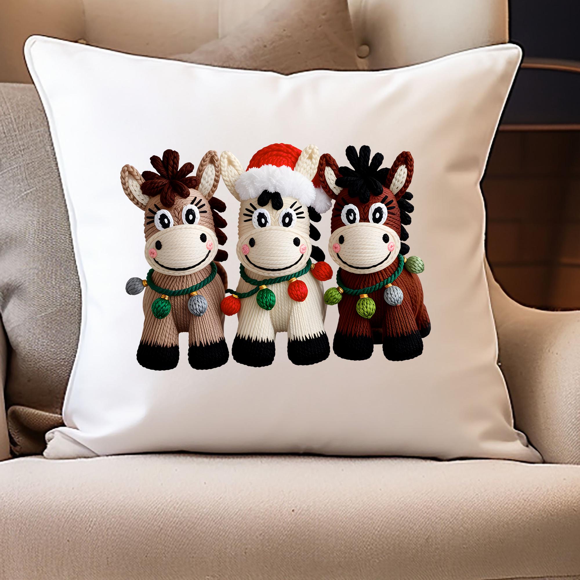 Faux Yarn Horse Christmas pillowcase, perfect for adding a festive touch to your home decor. This double-sided print pillowcase is made from 100% spun polyester, ensuring it retains its shape and doesn't wrinkle. The beige plastic zipper with a metal head complements the design beautifully. Ideal for those who love Christmas and festive decor.