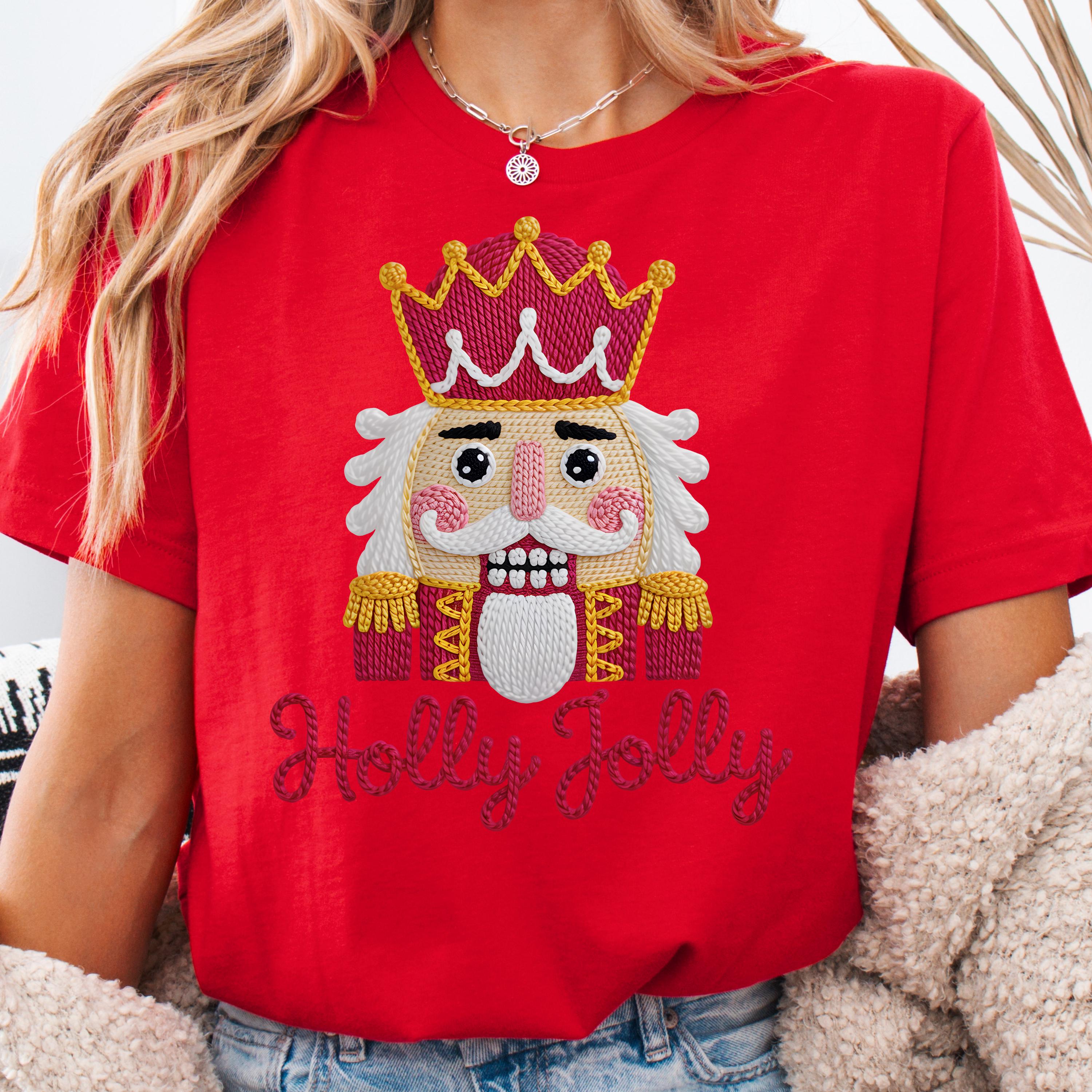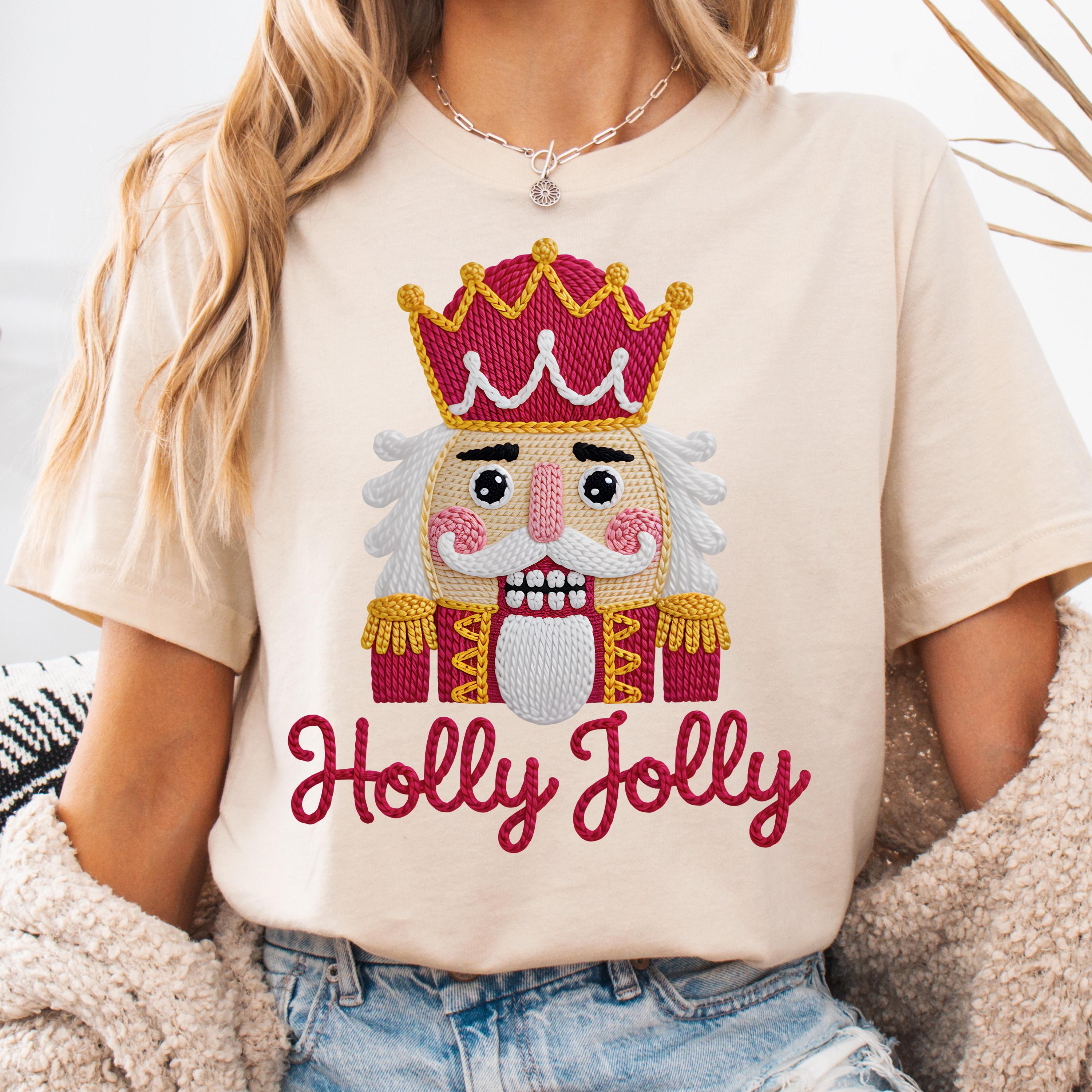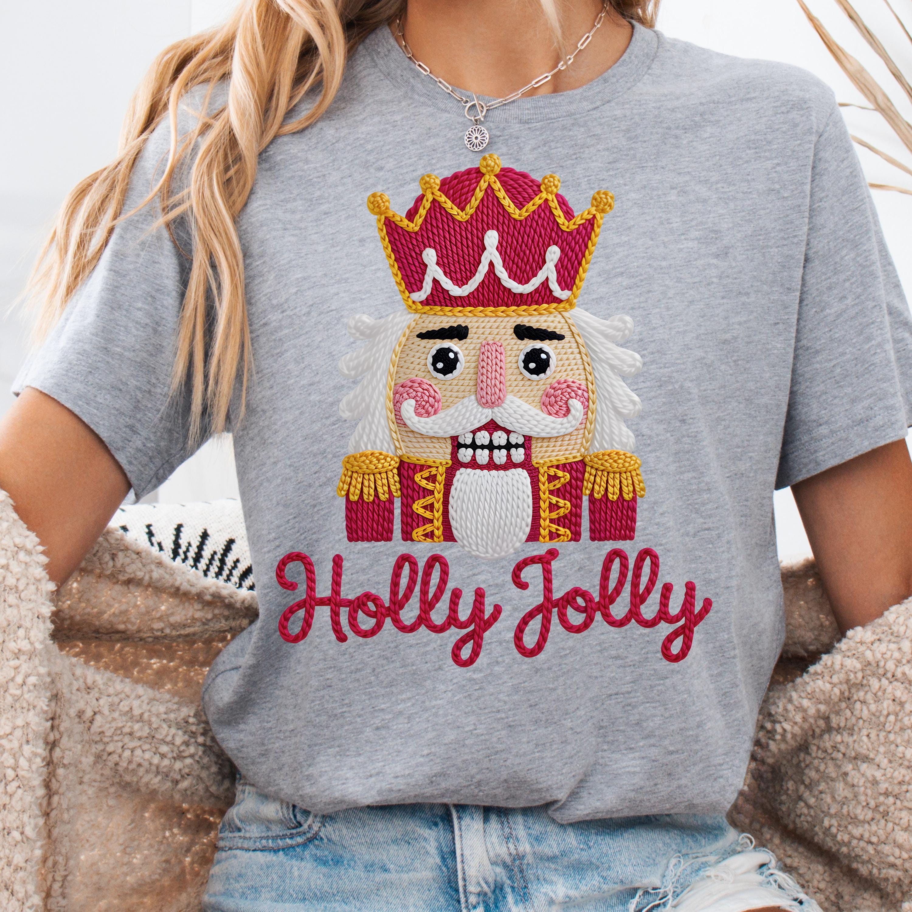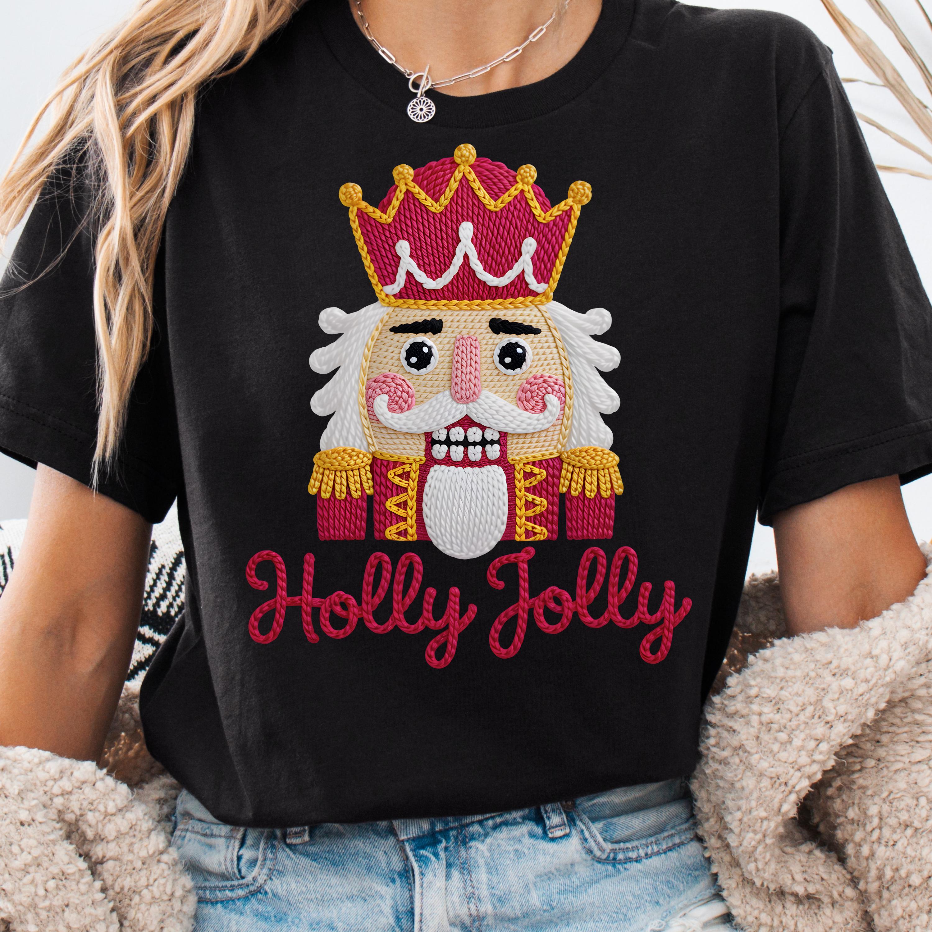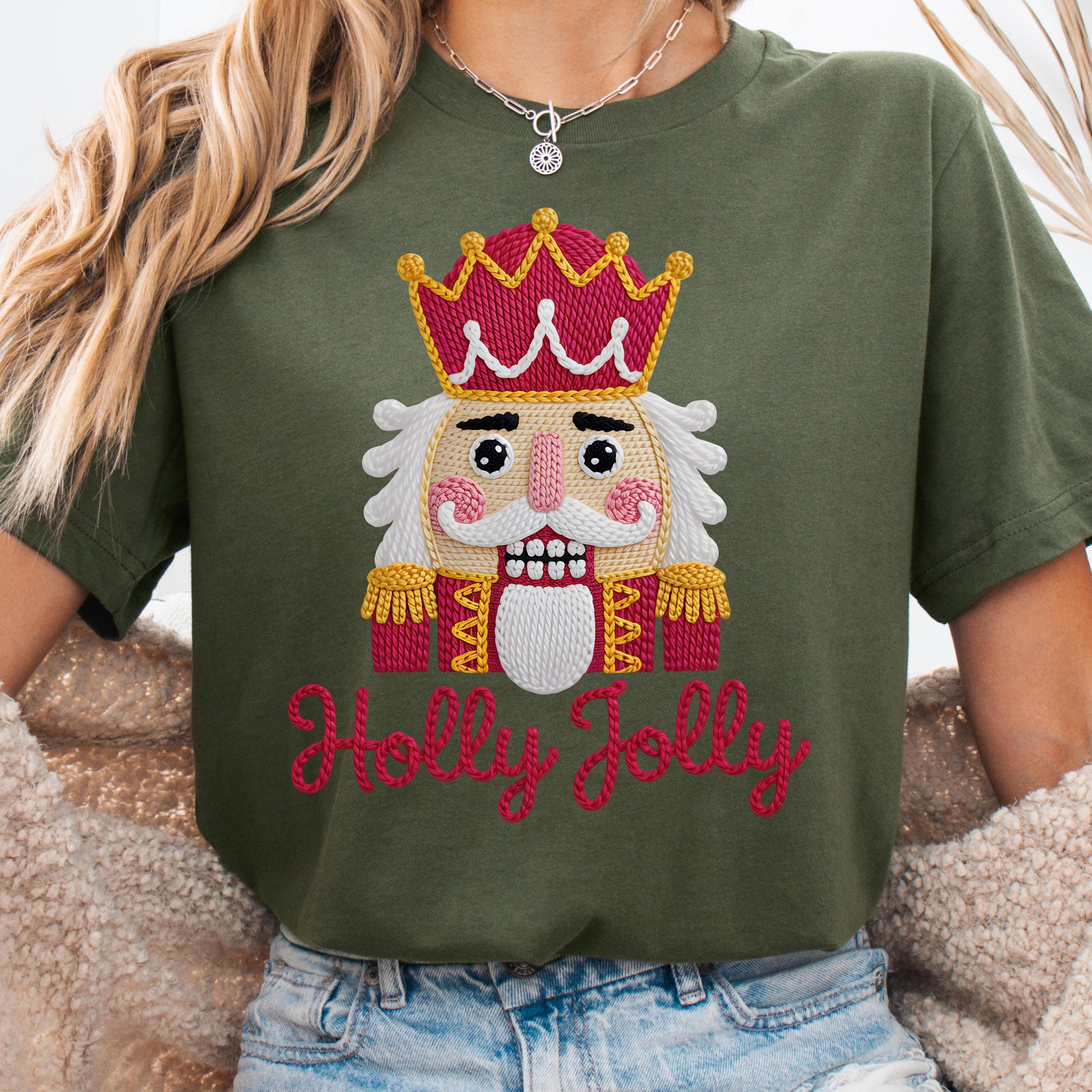 Faux Yarn Nutcracker Shirt, Holly Jolly Tee for Holiday Cheer, Festive Nutcracker Gift