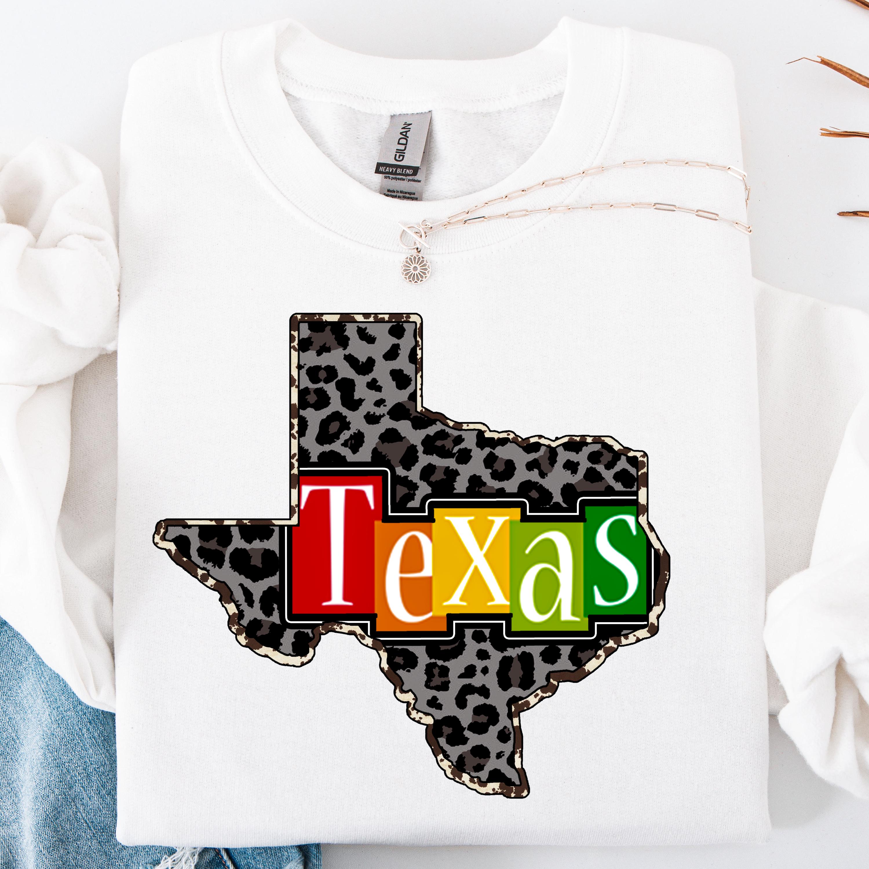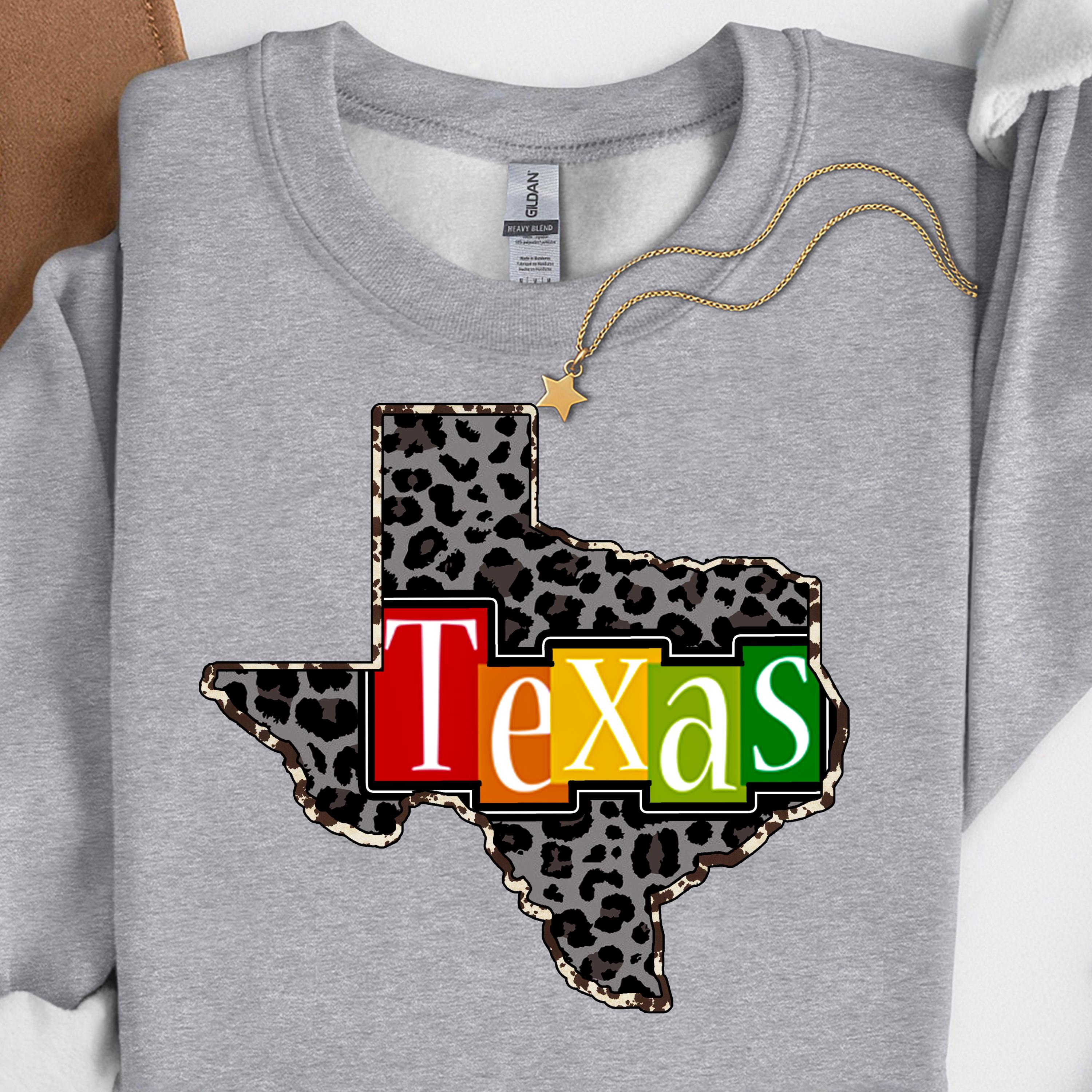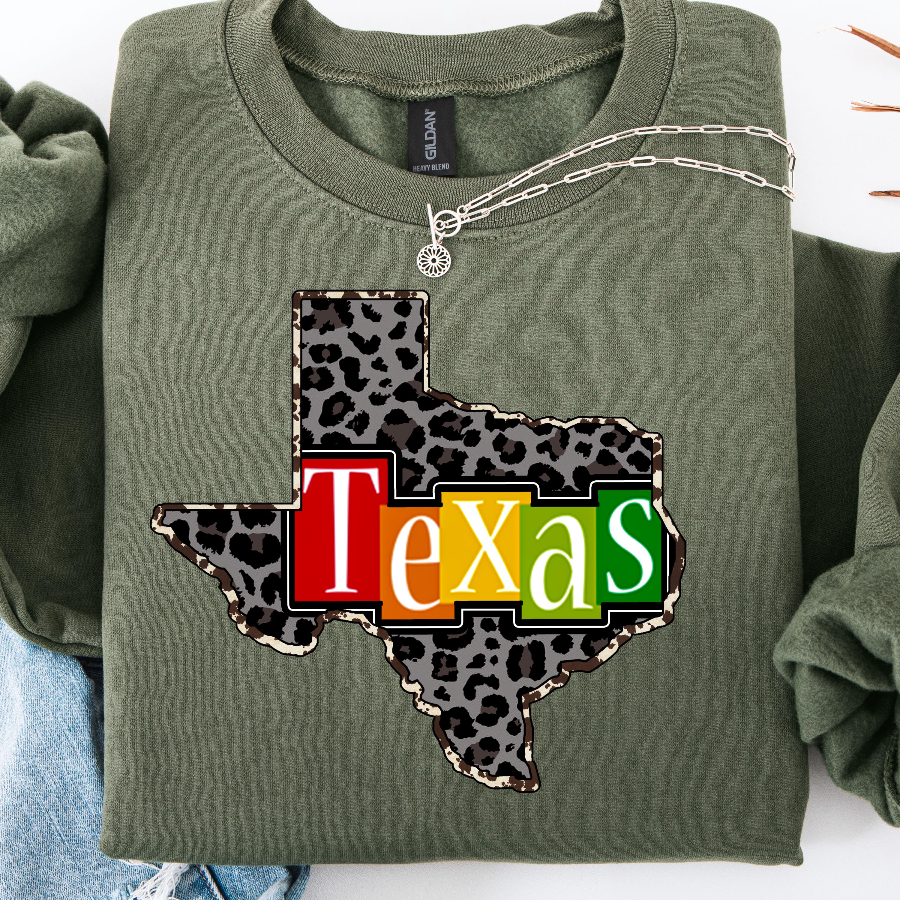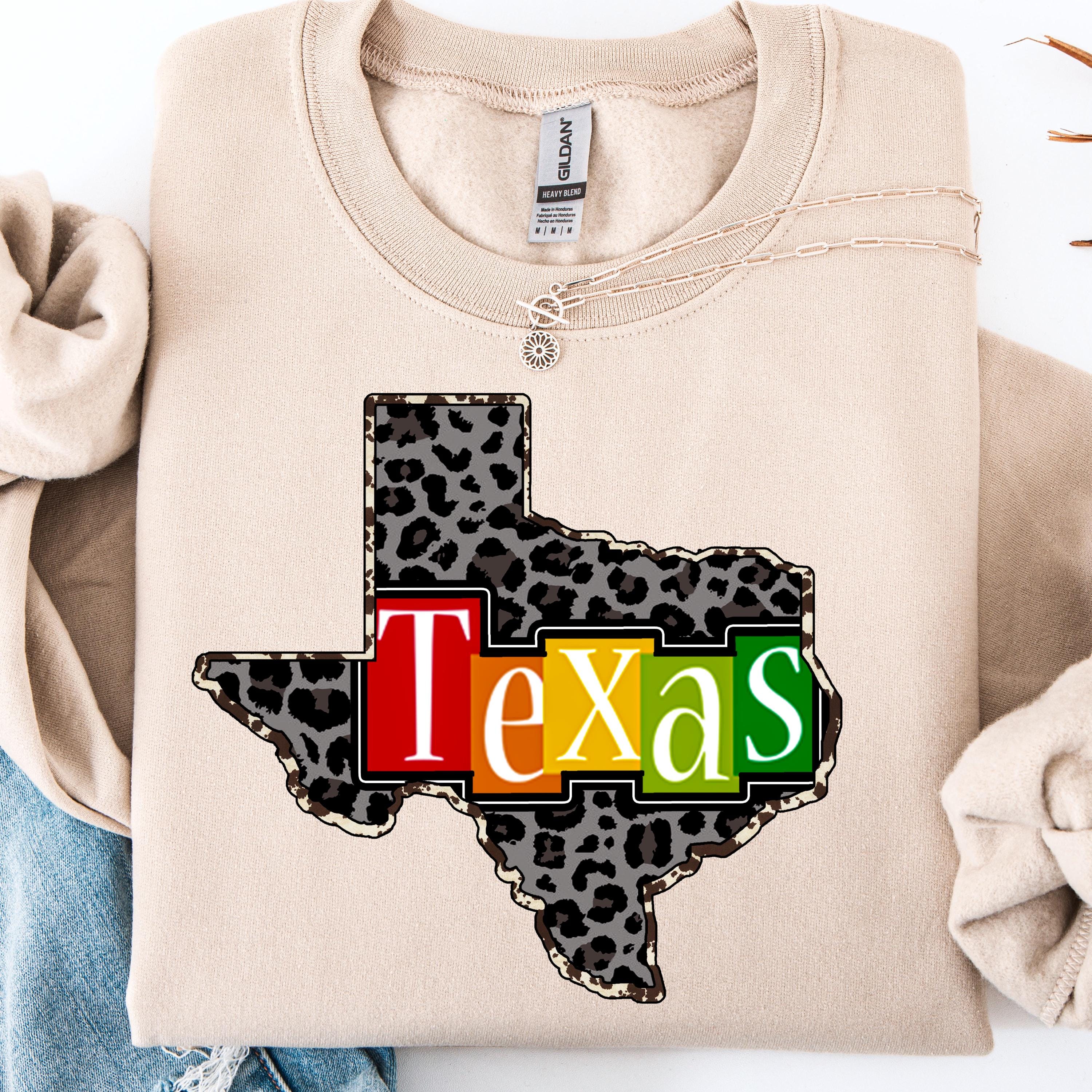 Leopard Texas Sweatshirt, Texas Mom Crewneck Jumper