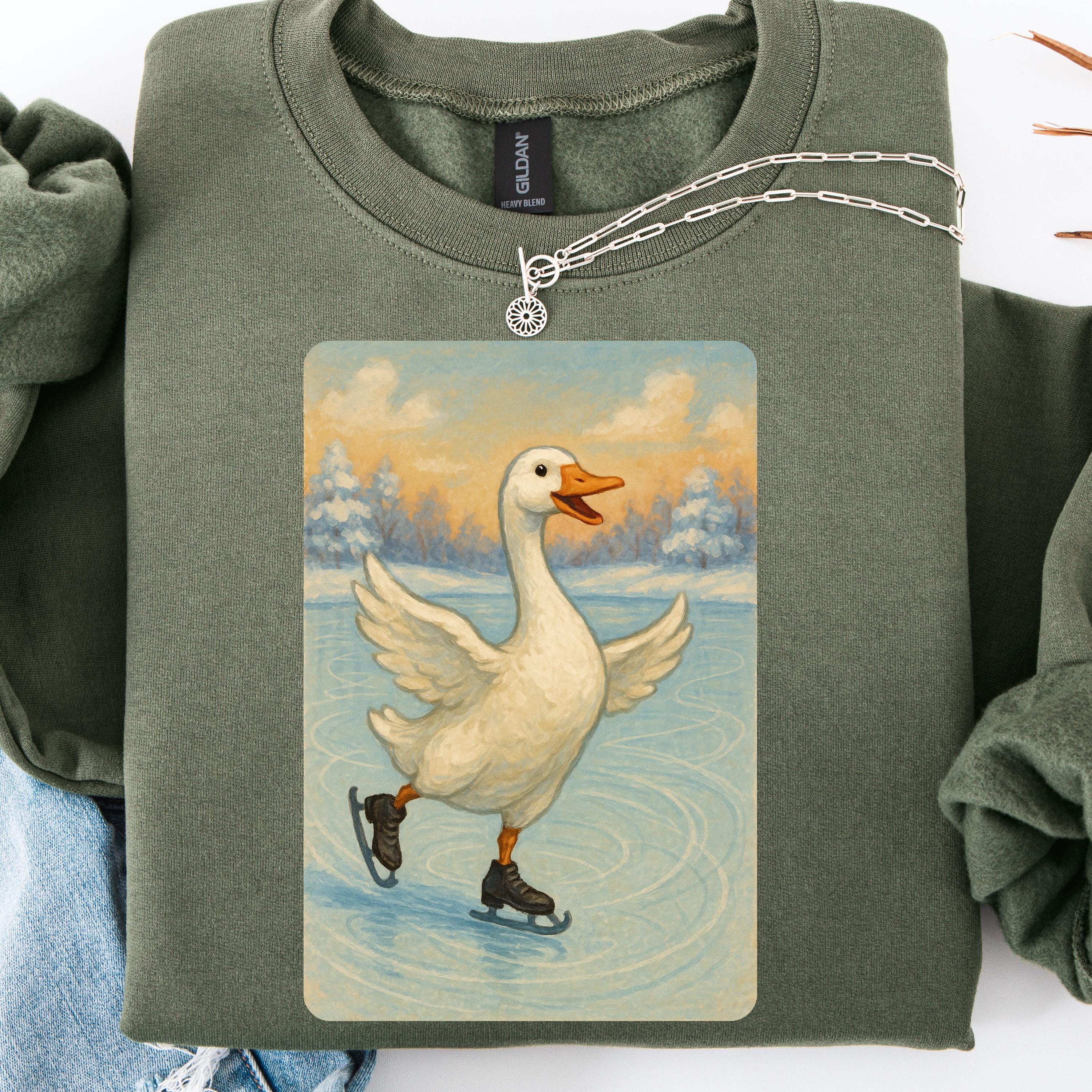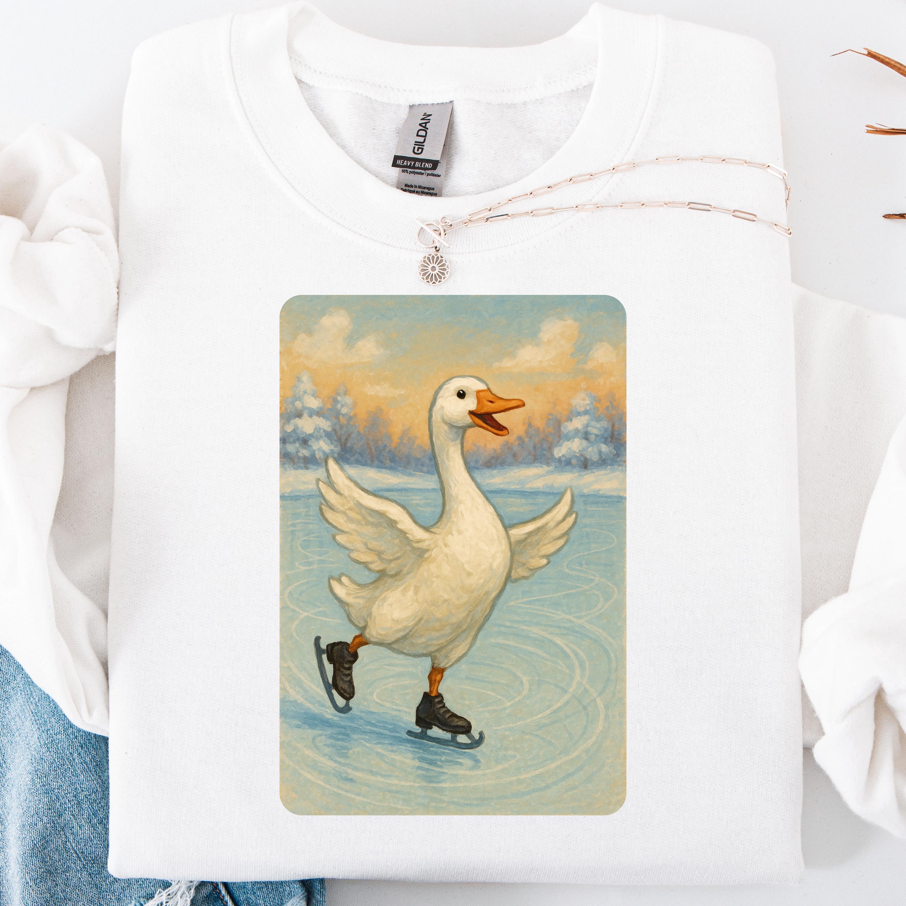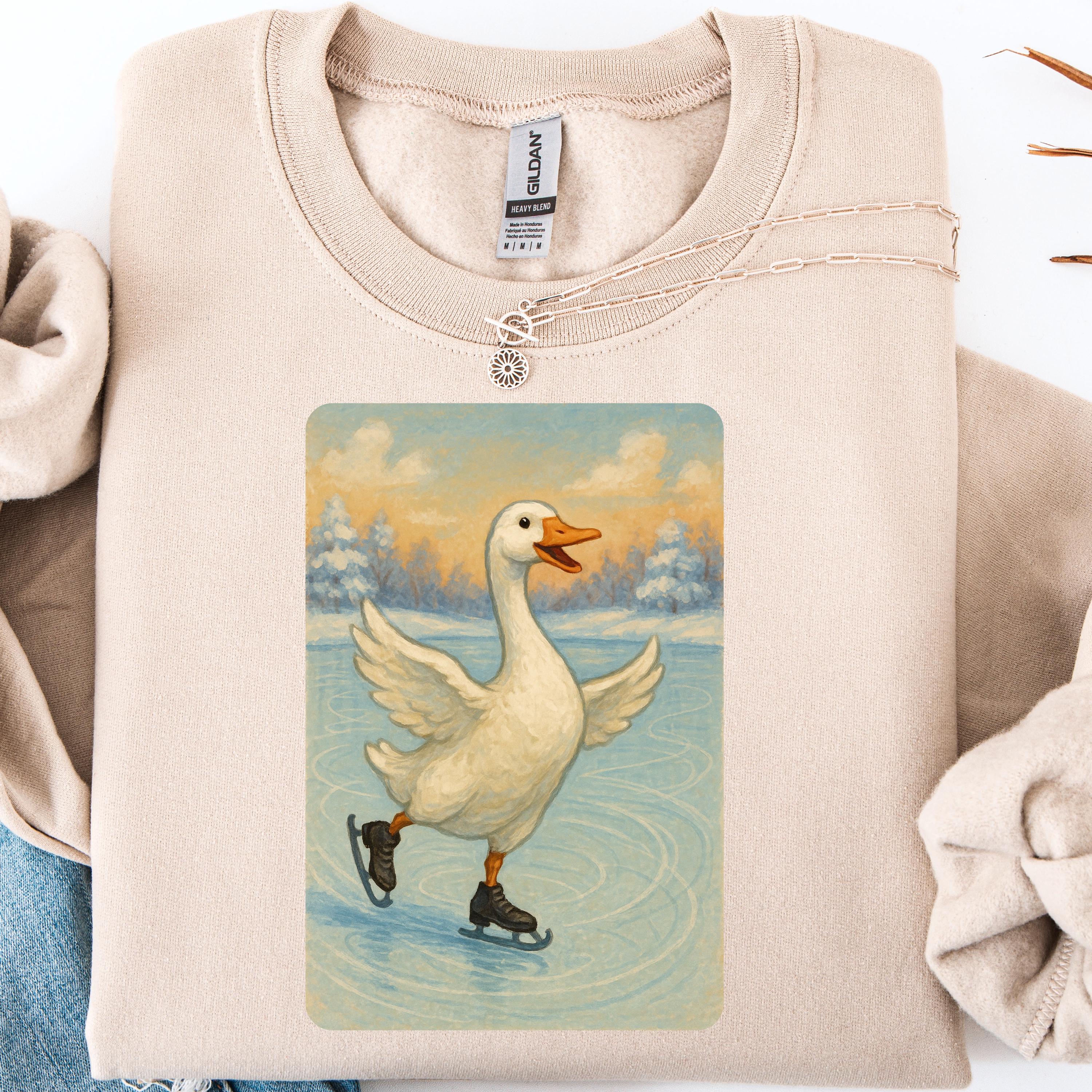 Ice Skating Goose Shirt, Funny Winter Sweatshirt