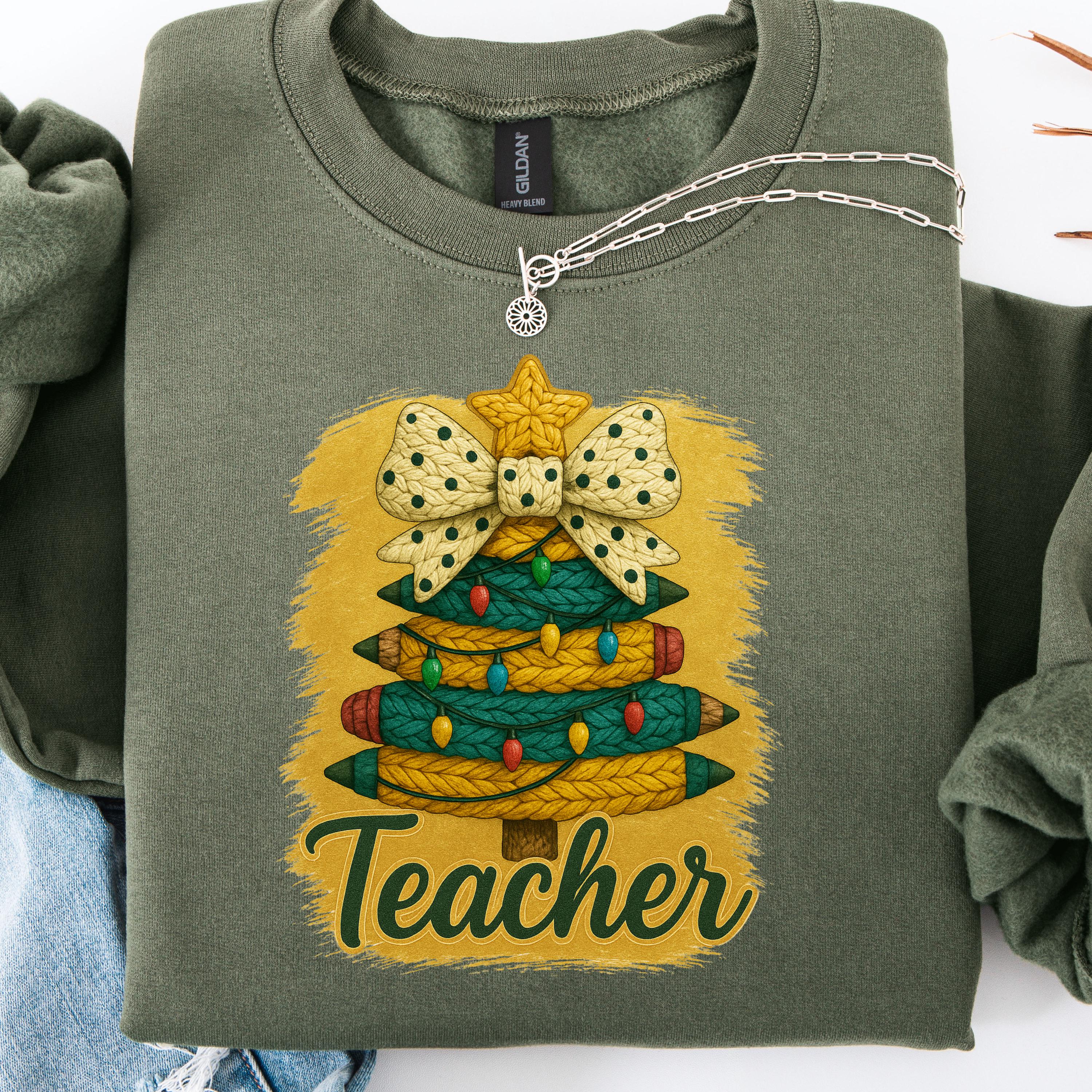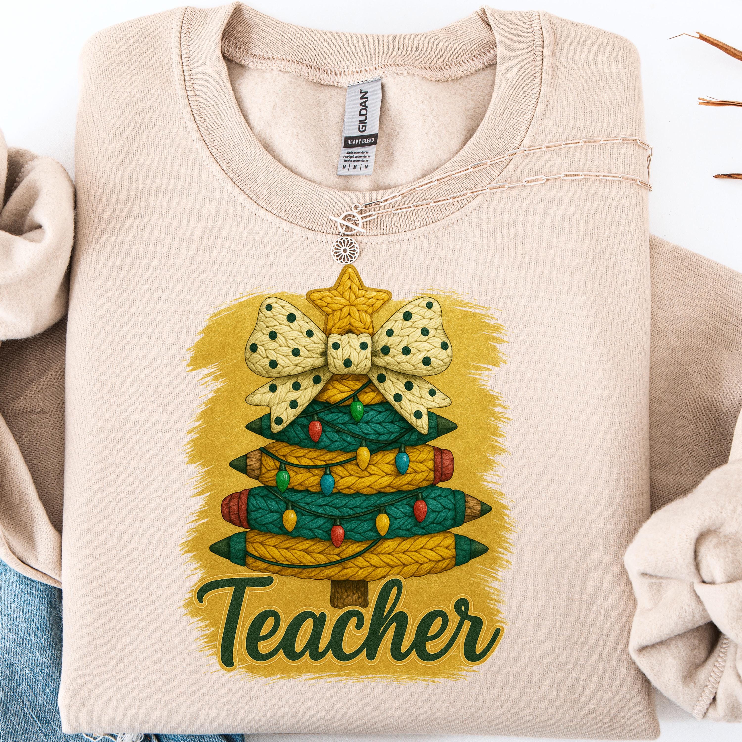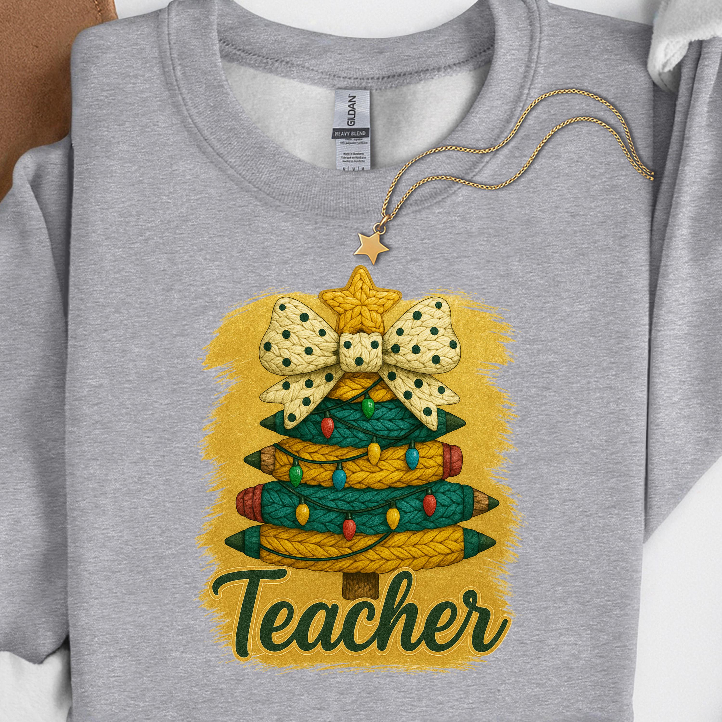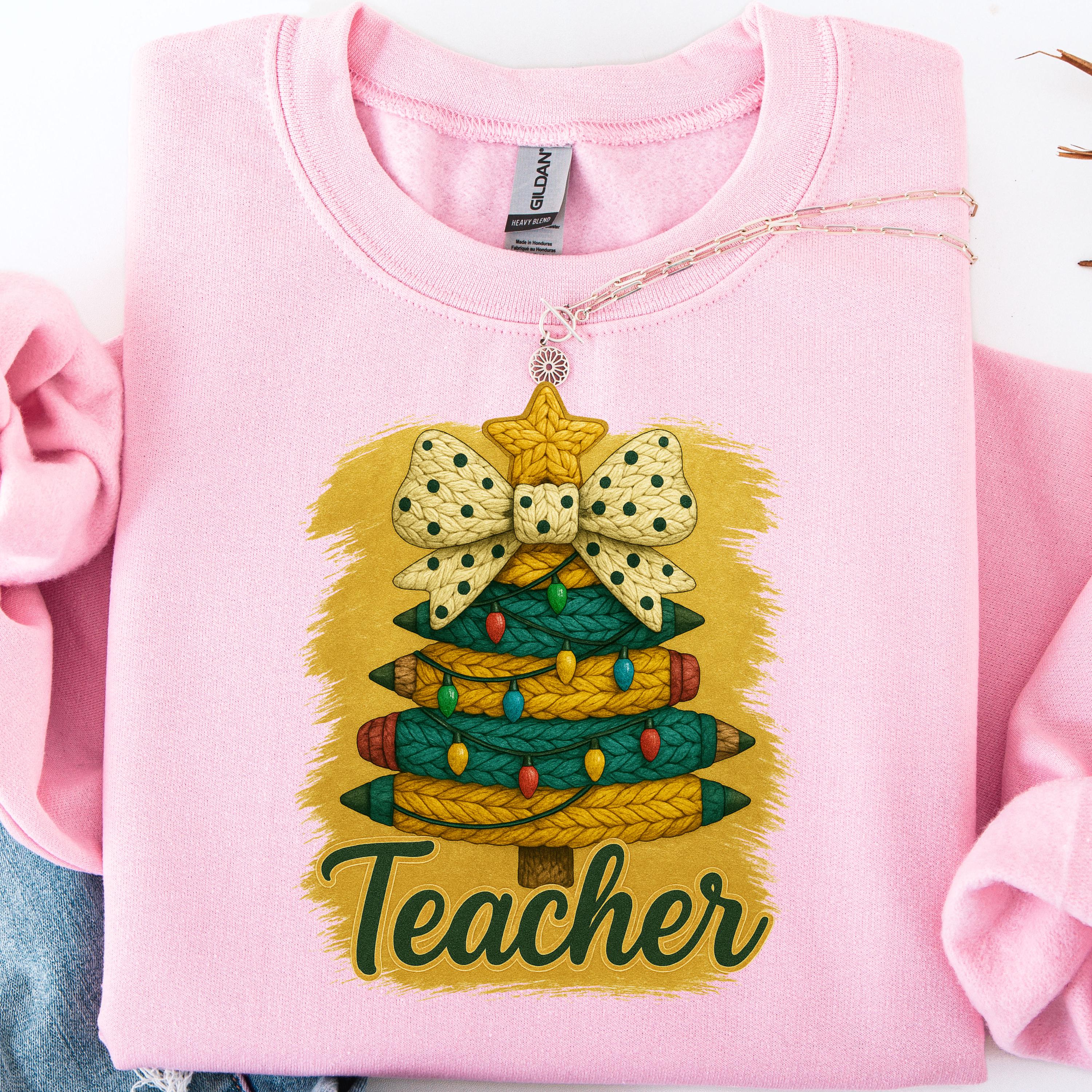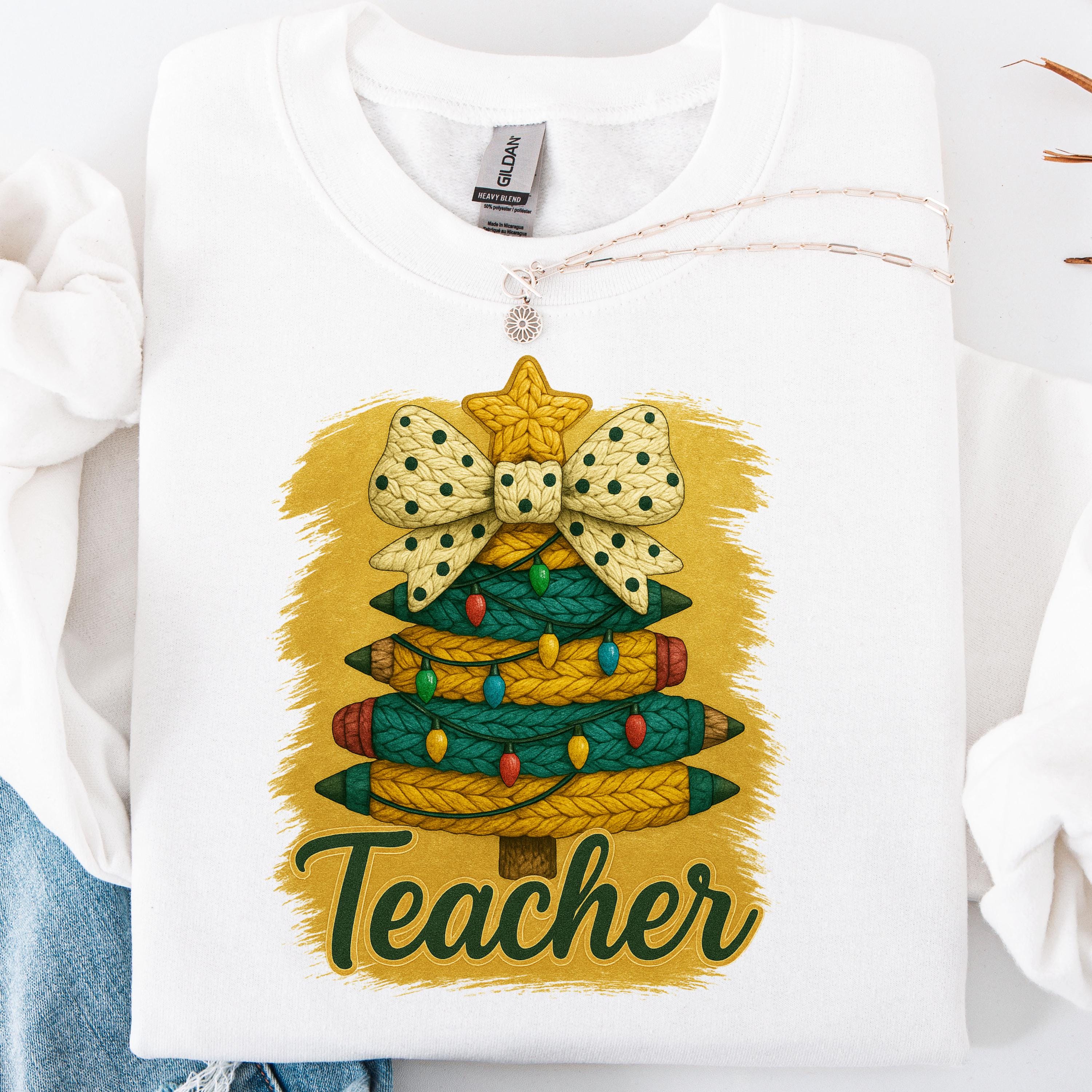 Faux Yarn Christmas Teacher Shirt, Festive Teacher Gift for Educators, Christmas Tree Teacher Holiday Gift