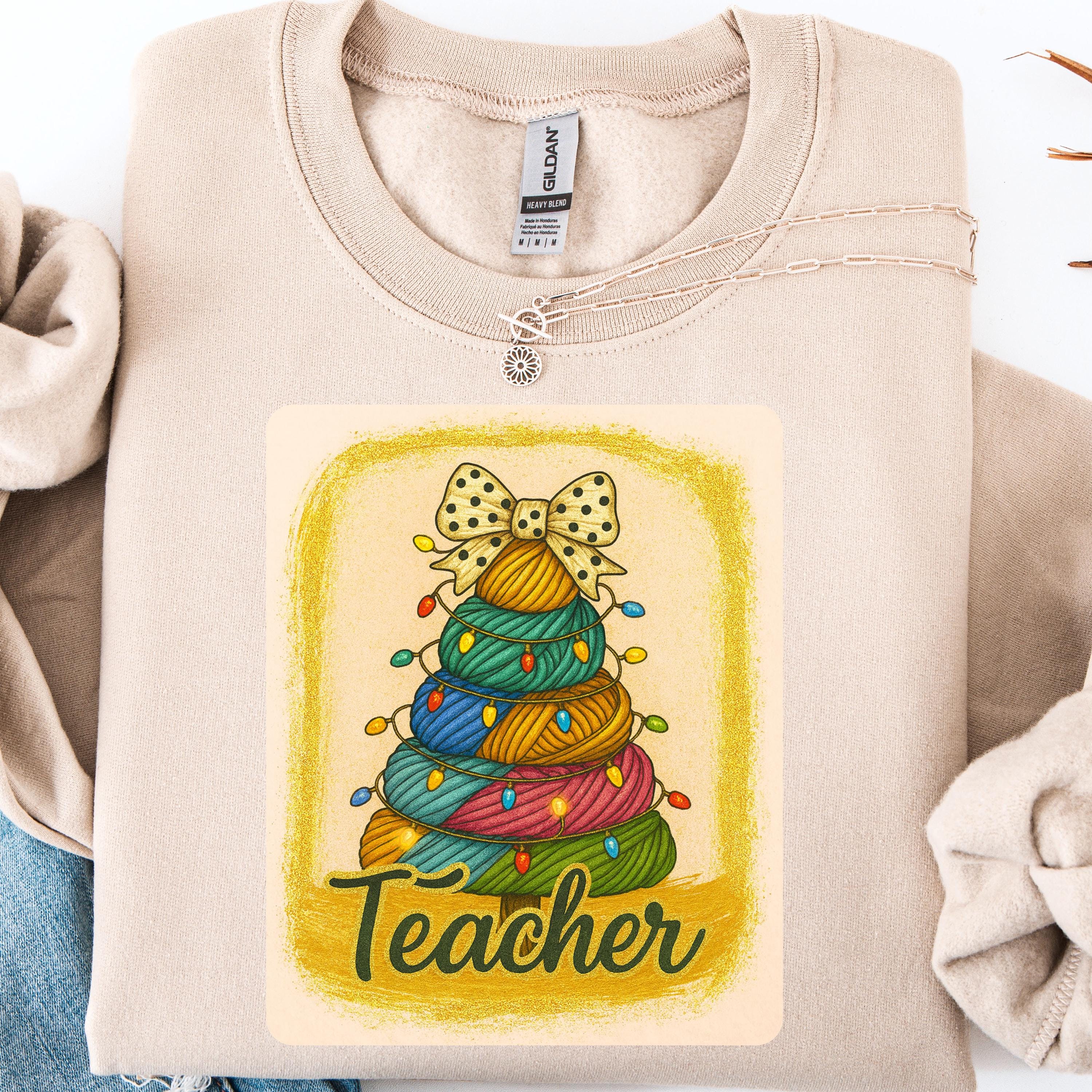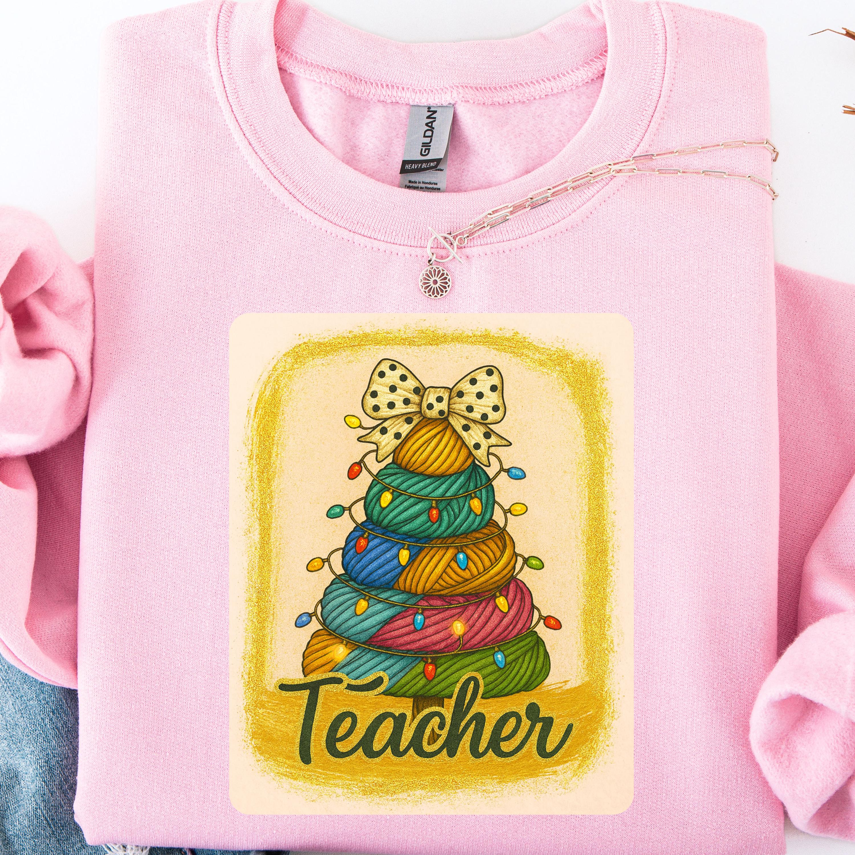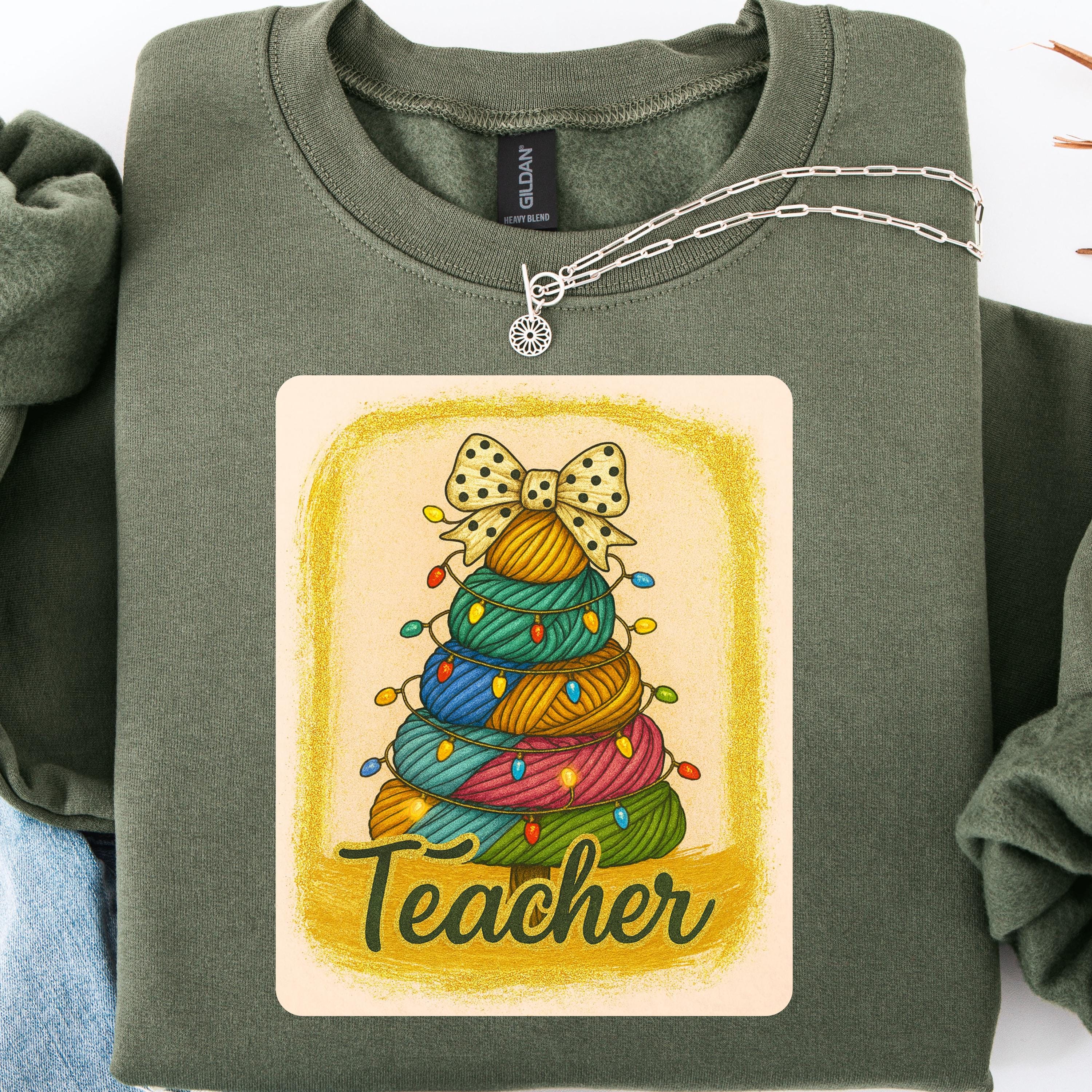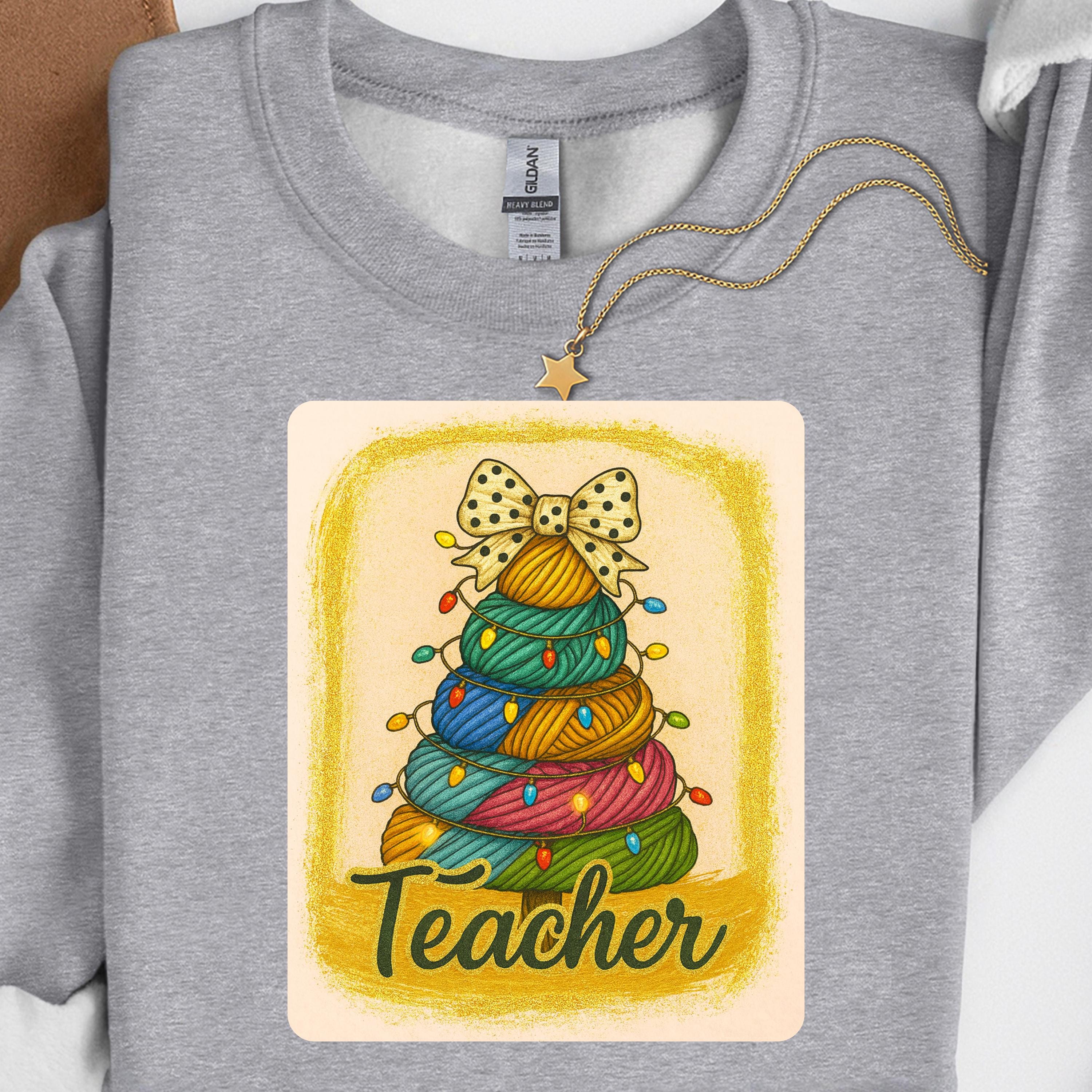 Faux Yarn Christmas Tree Teacher Shirt, Holiday Educator Gift