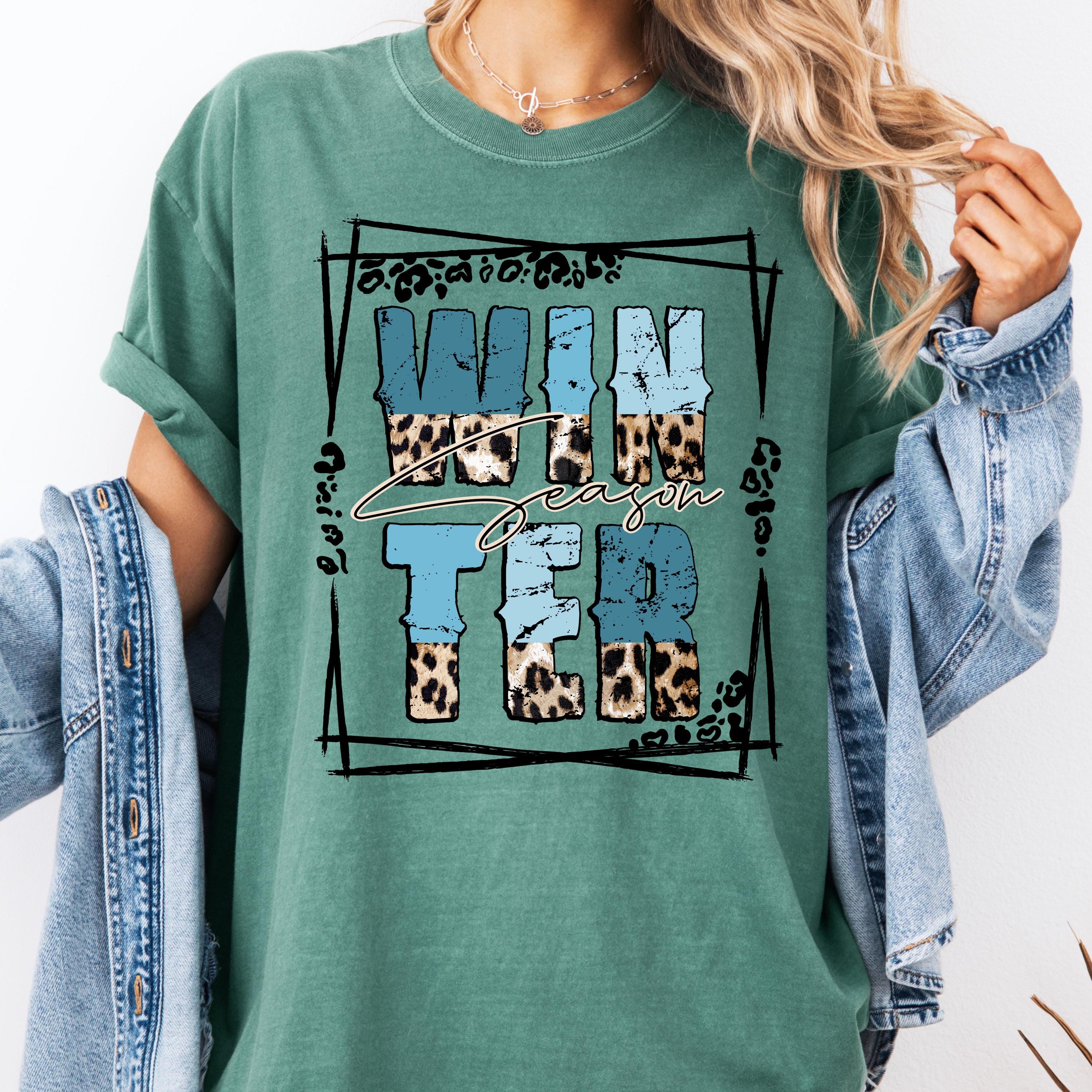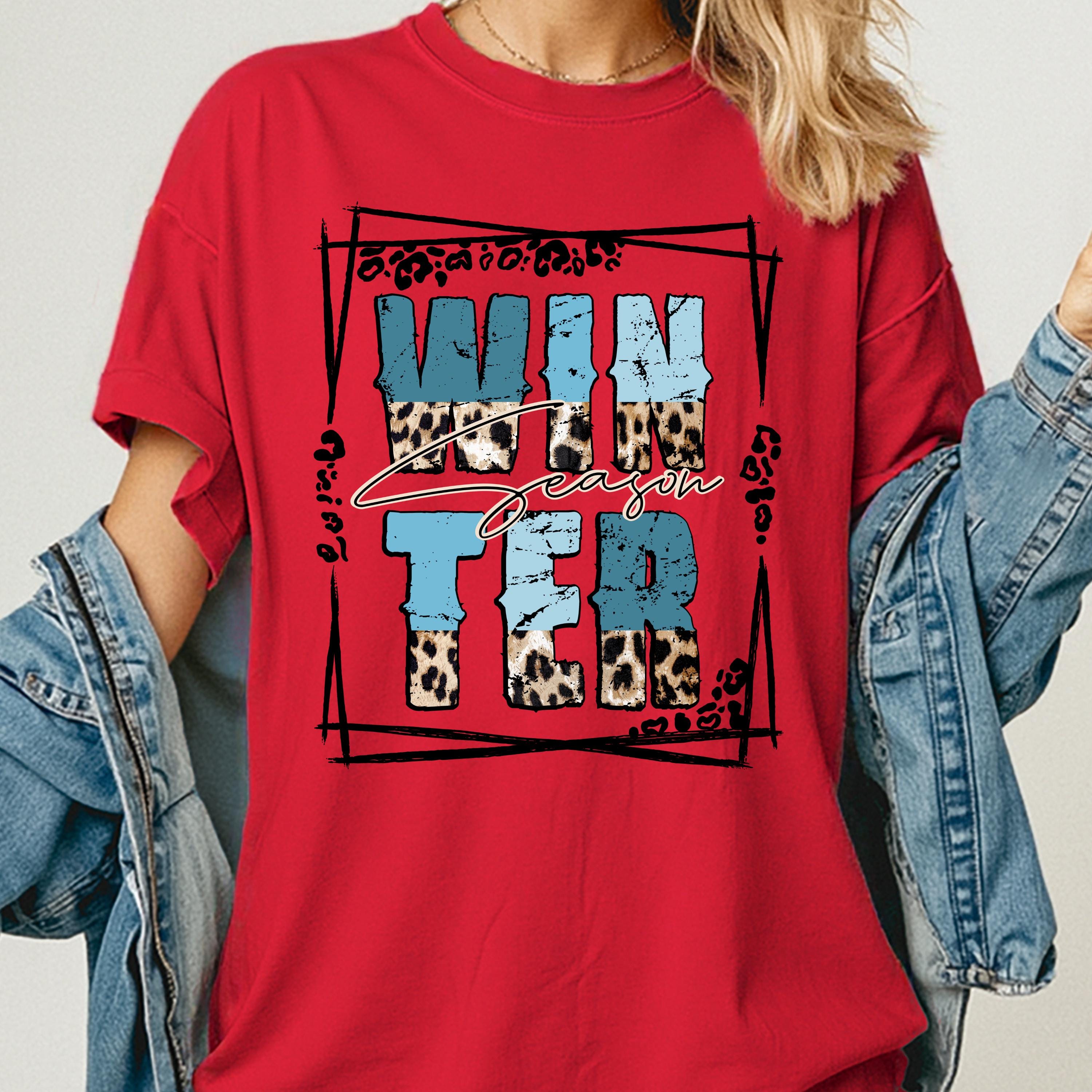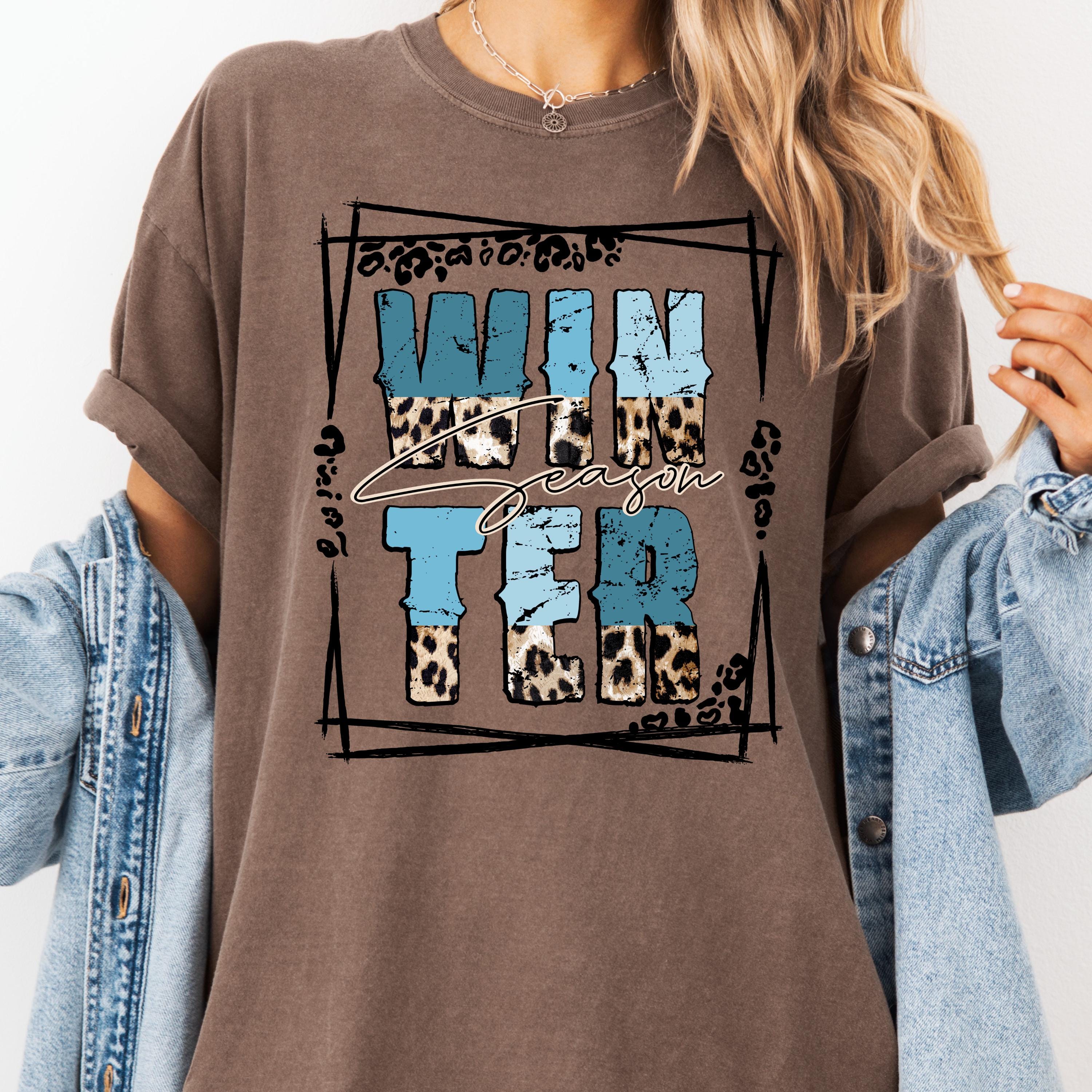 Winter Season Shirt, Leopard Print Tee for Fashion Lovers, Cozy Winter T-Shirt